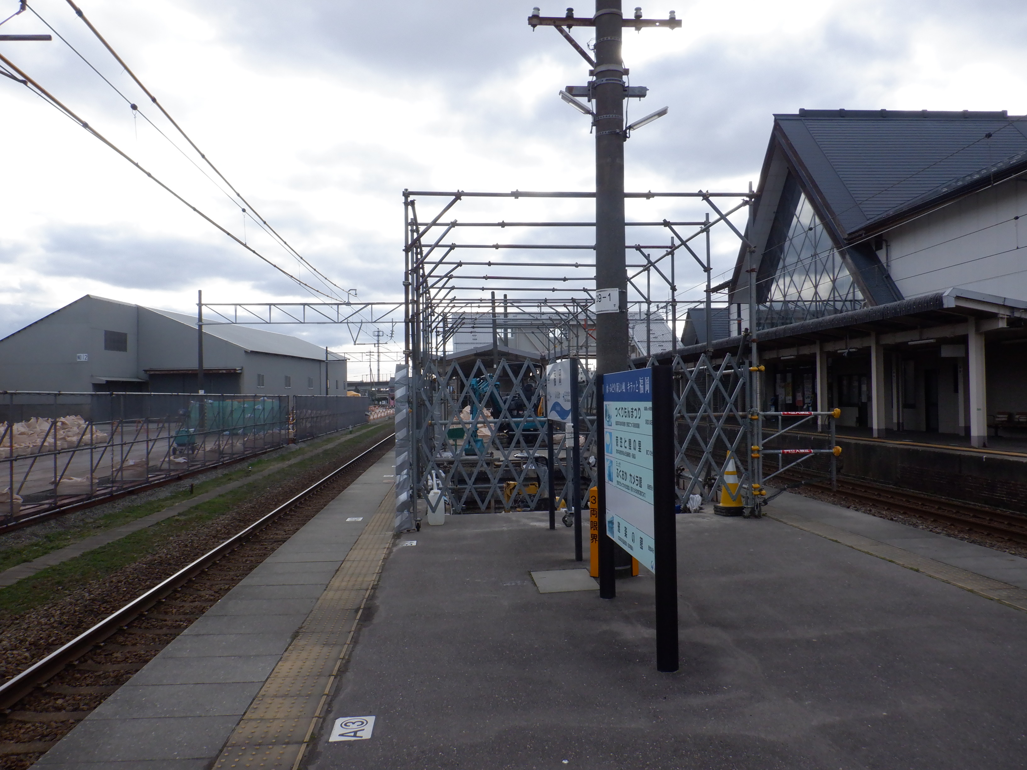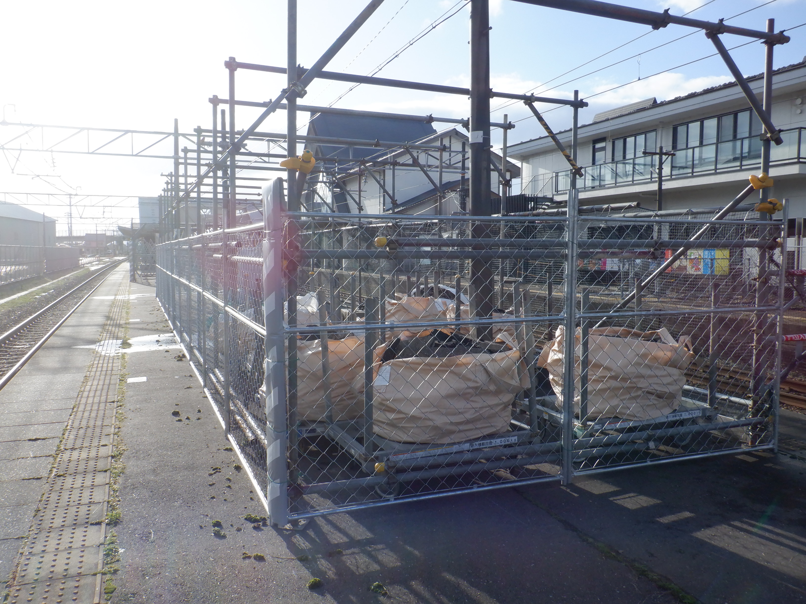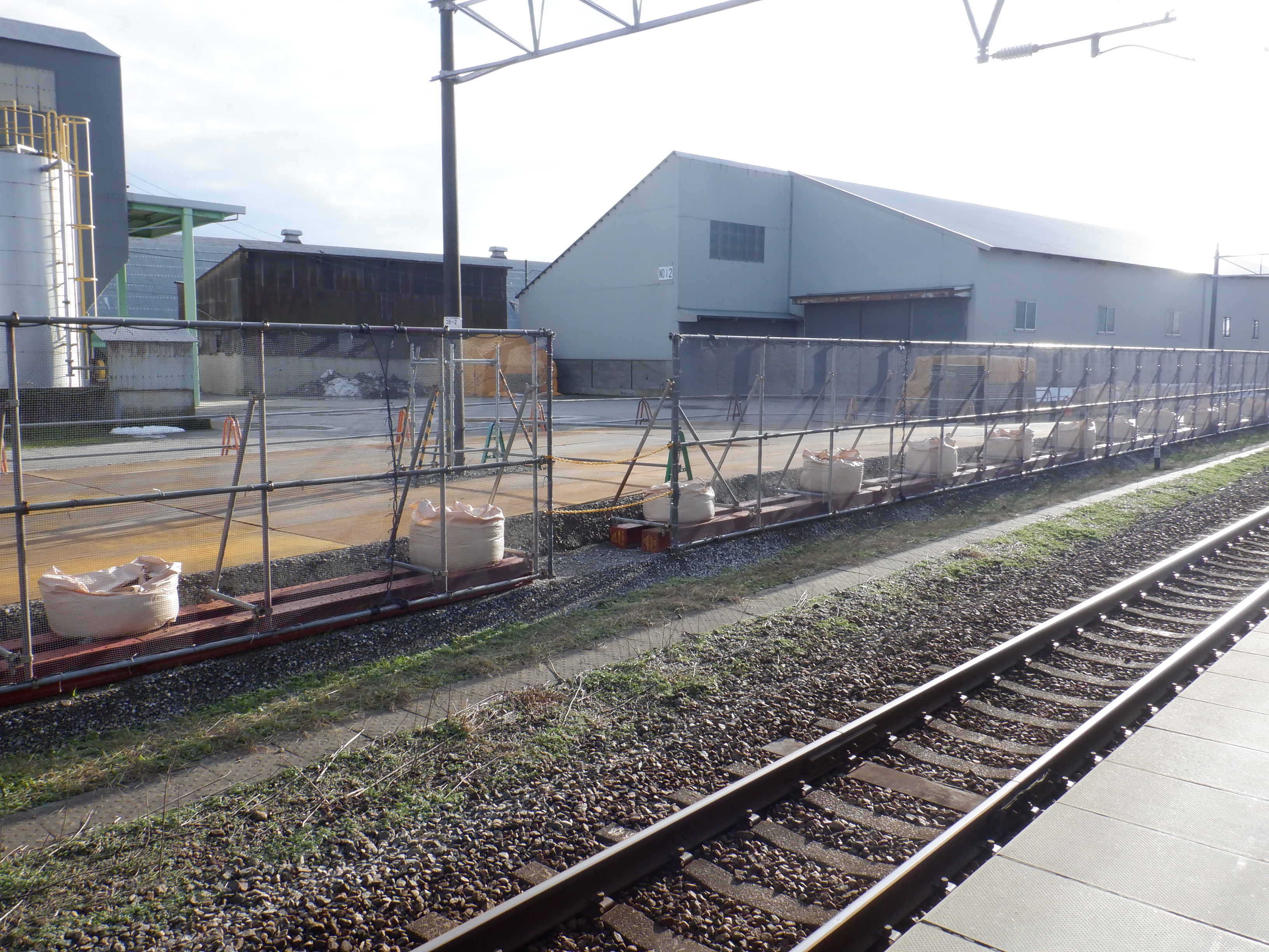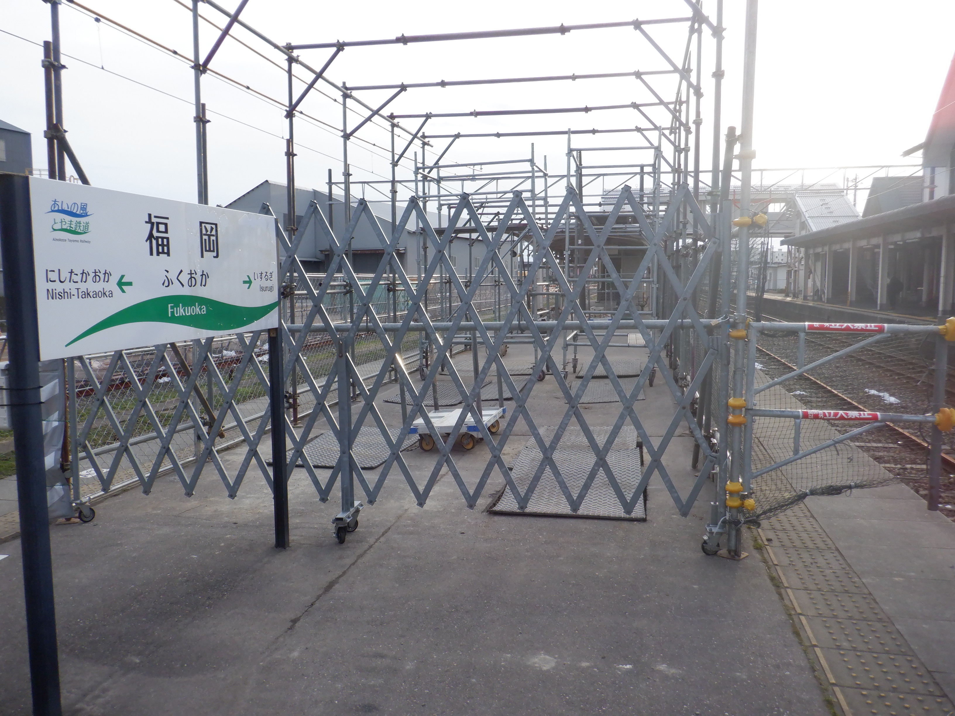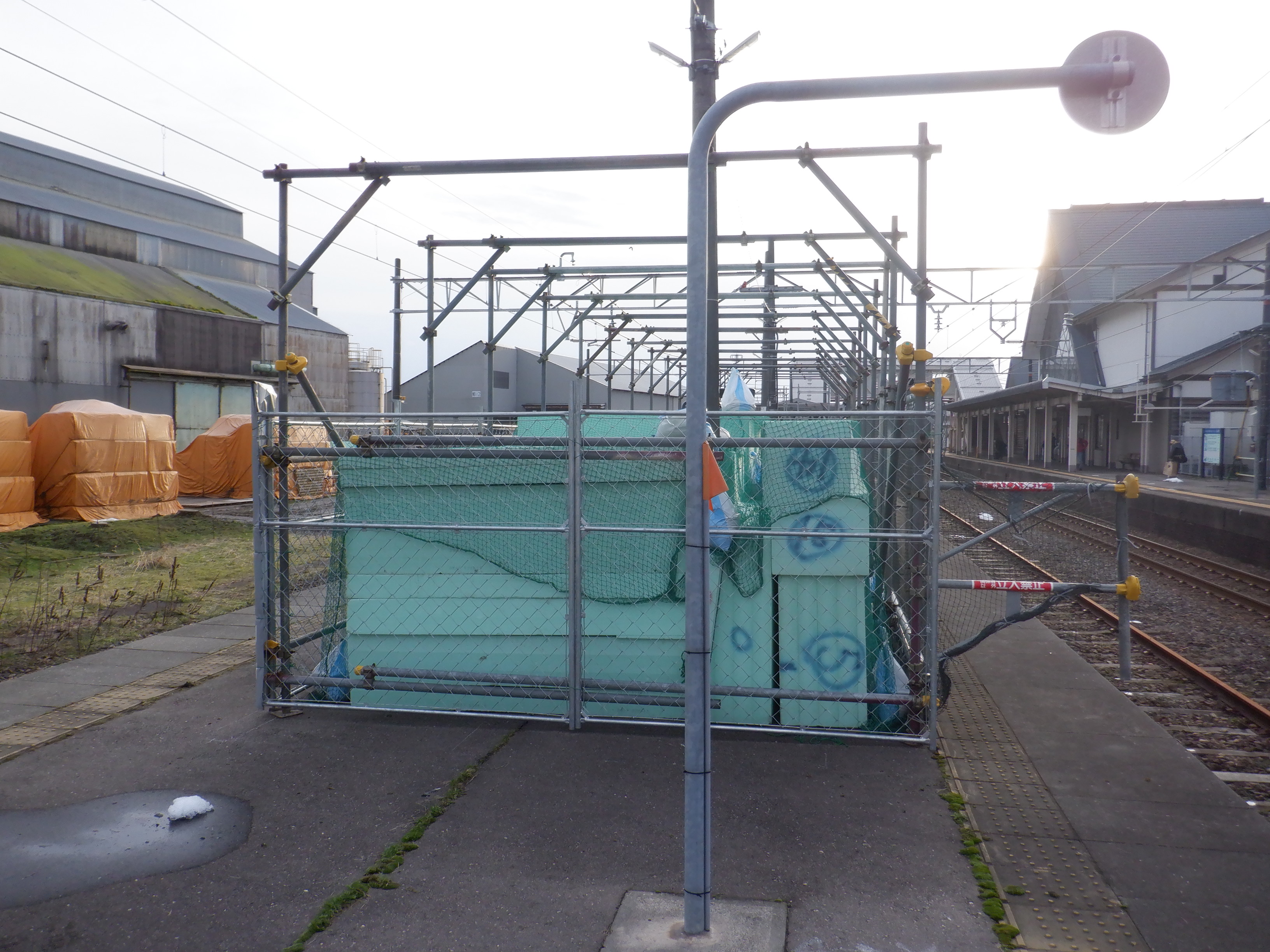 2・3番のりば西高岡駅側のエレベーター跨線橋建設のための囲い。