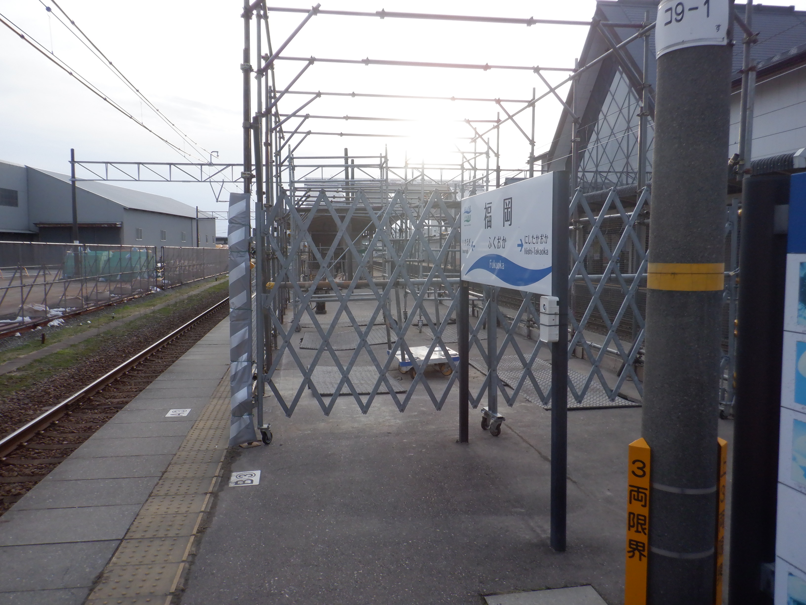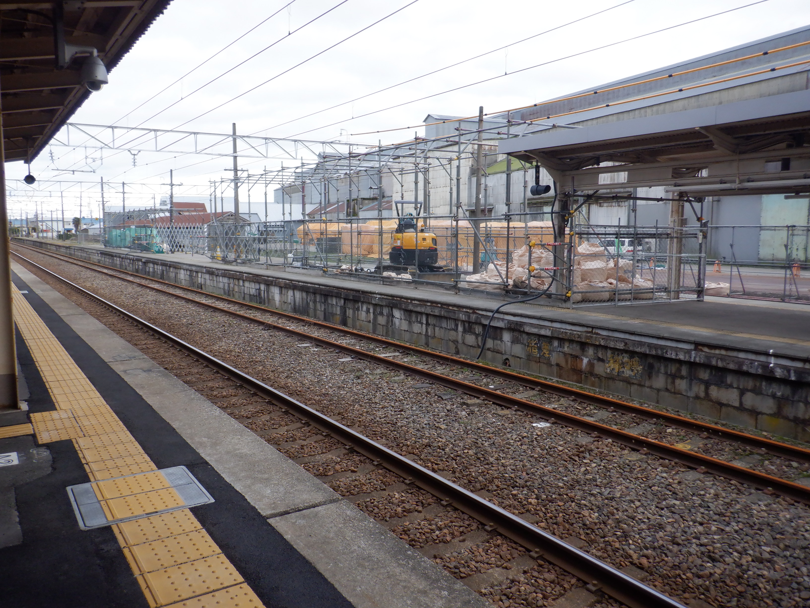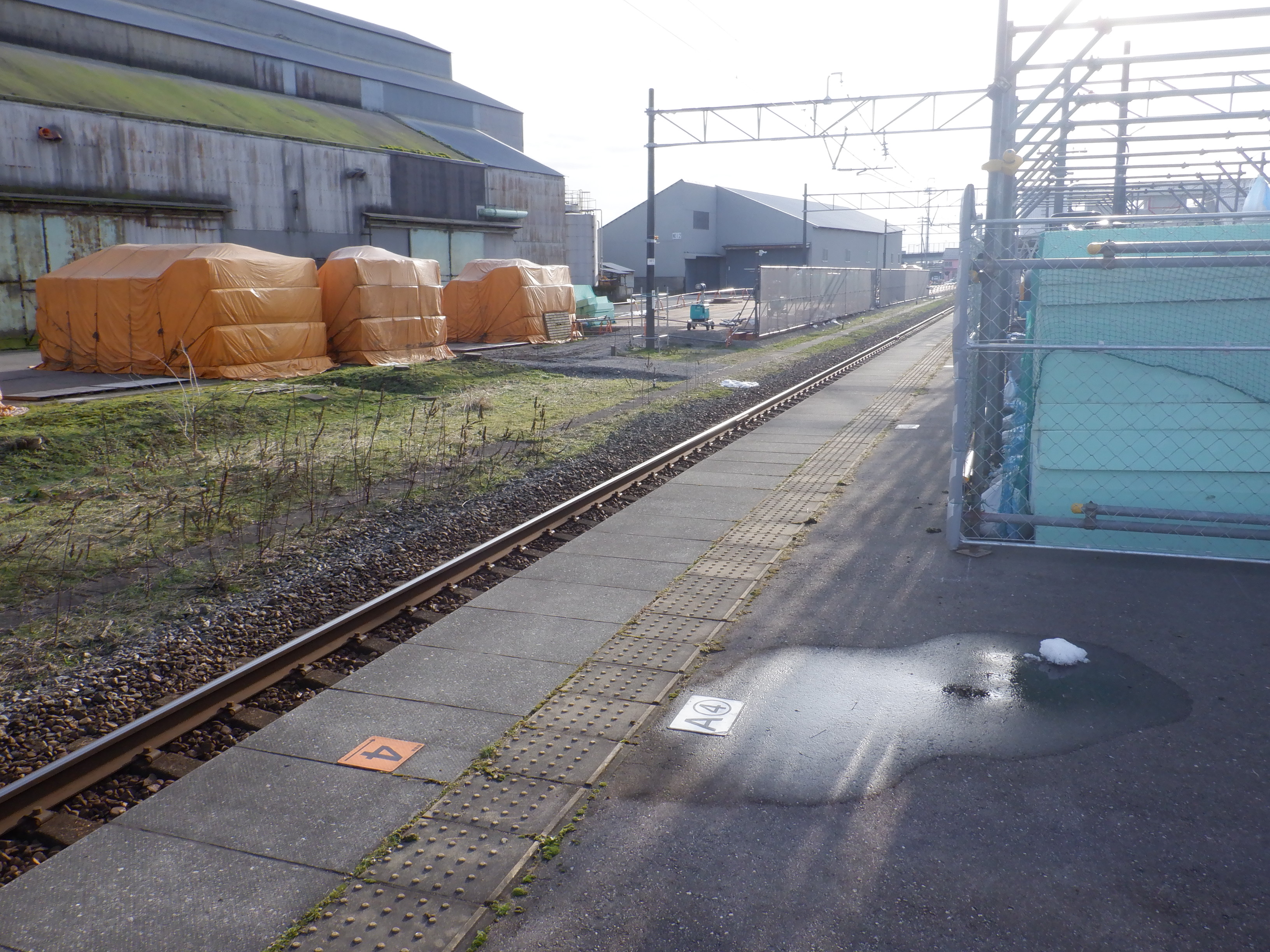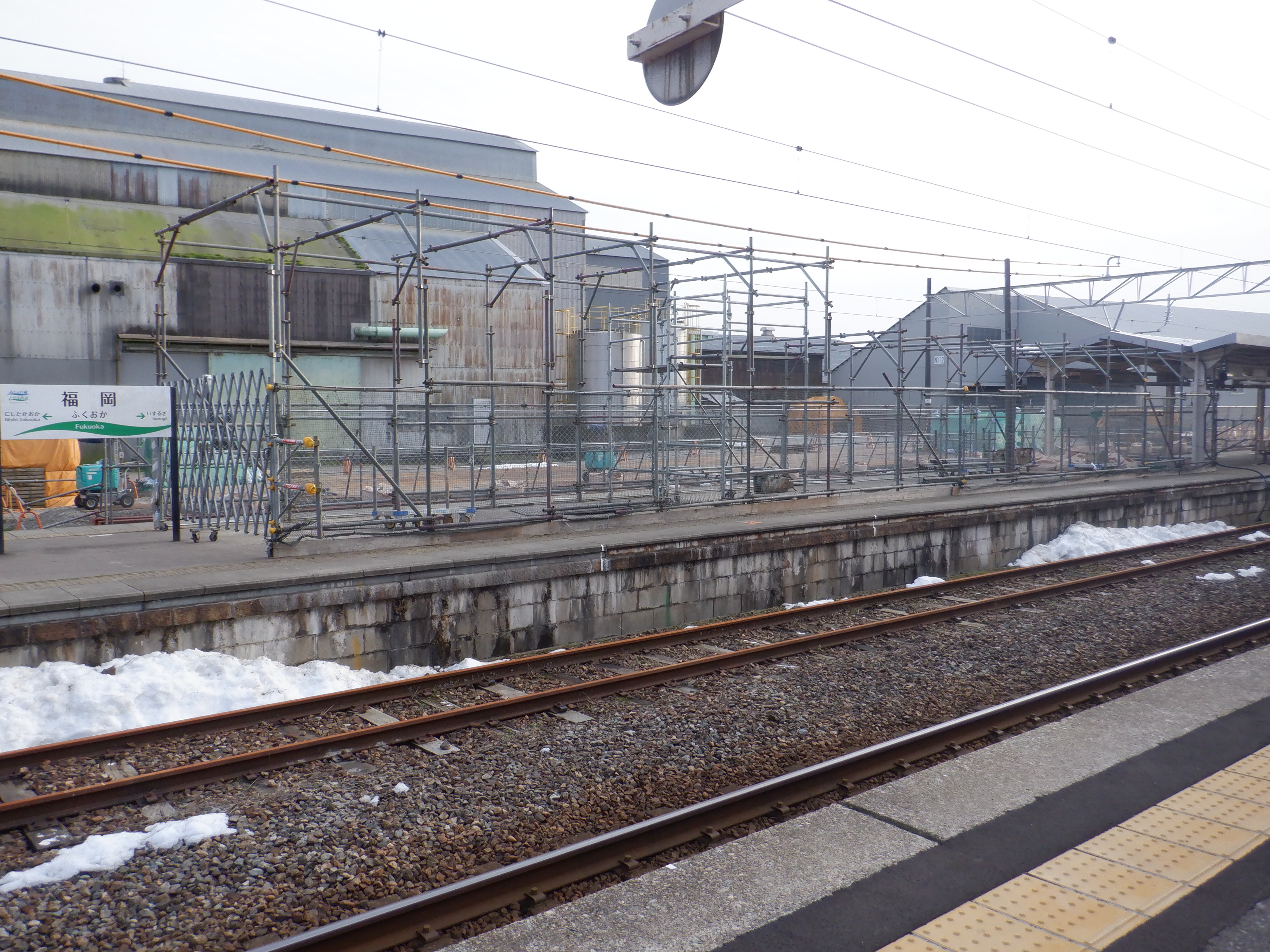 2・3番のりば西高岡駅側のエレベーター跨線橋建設のための囲い。