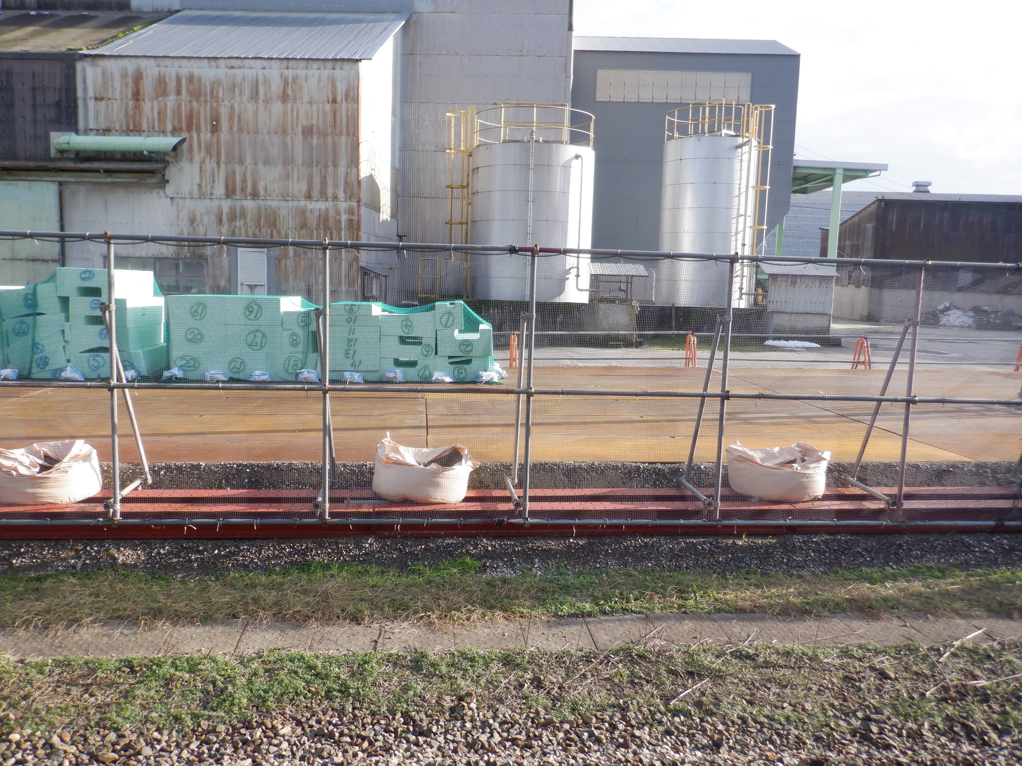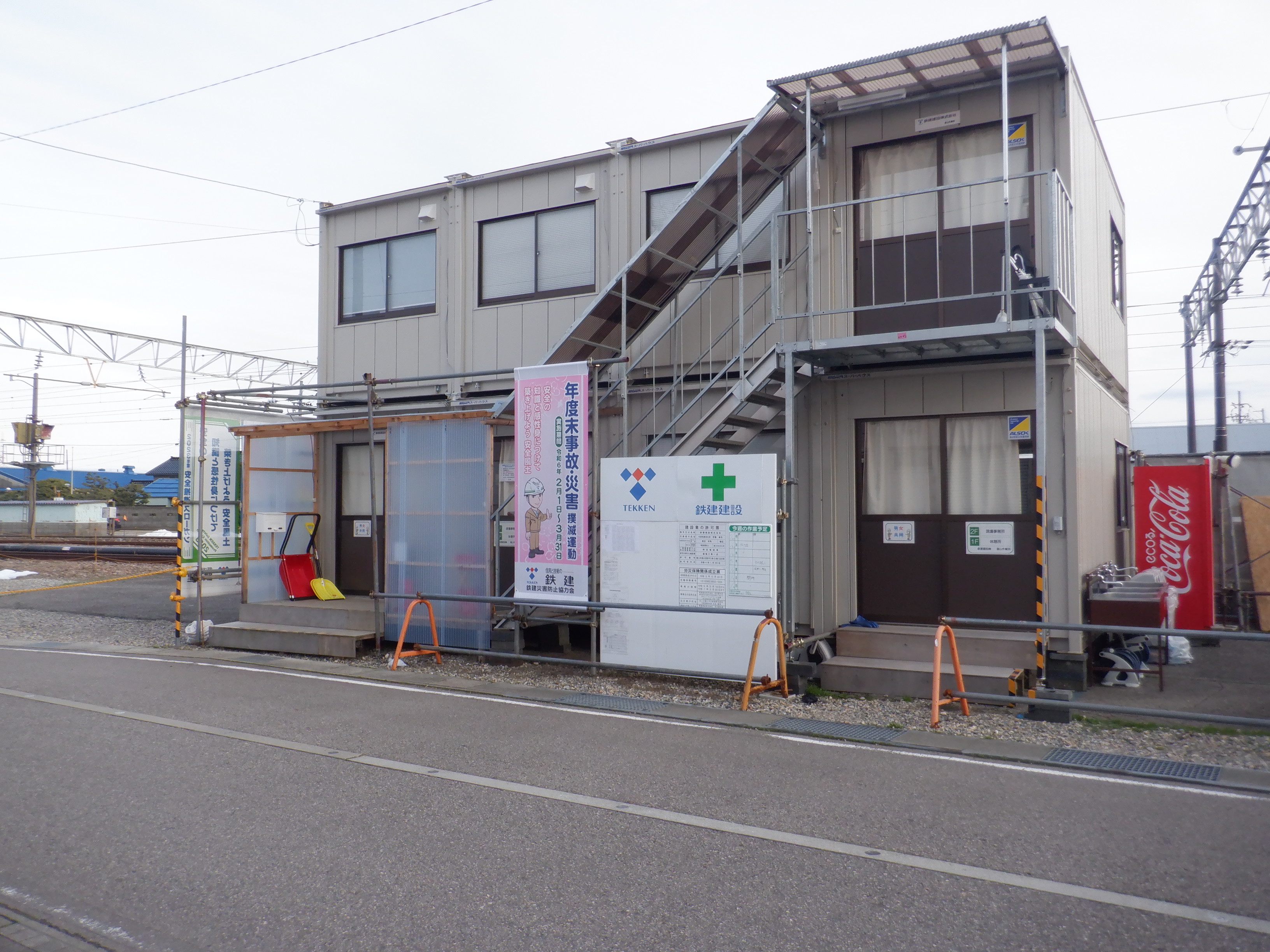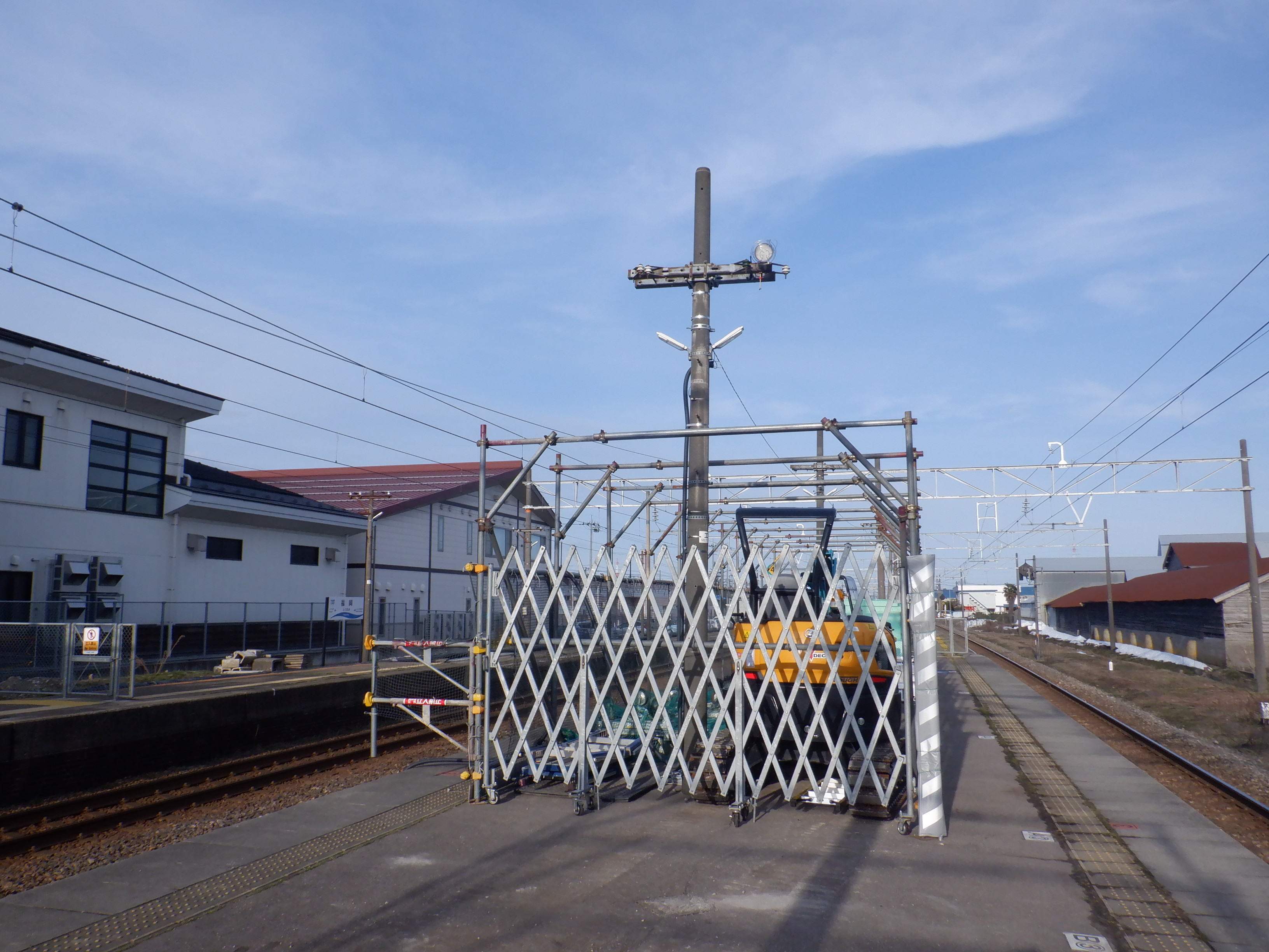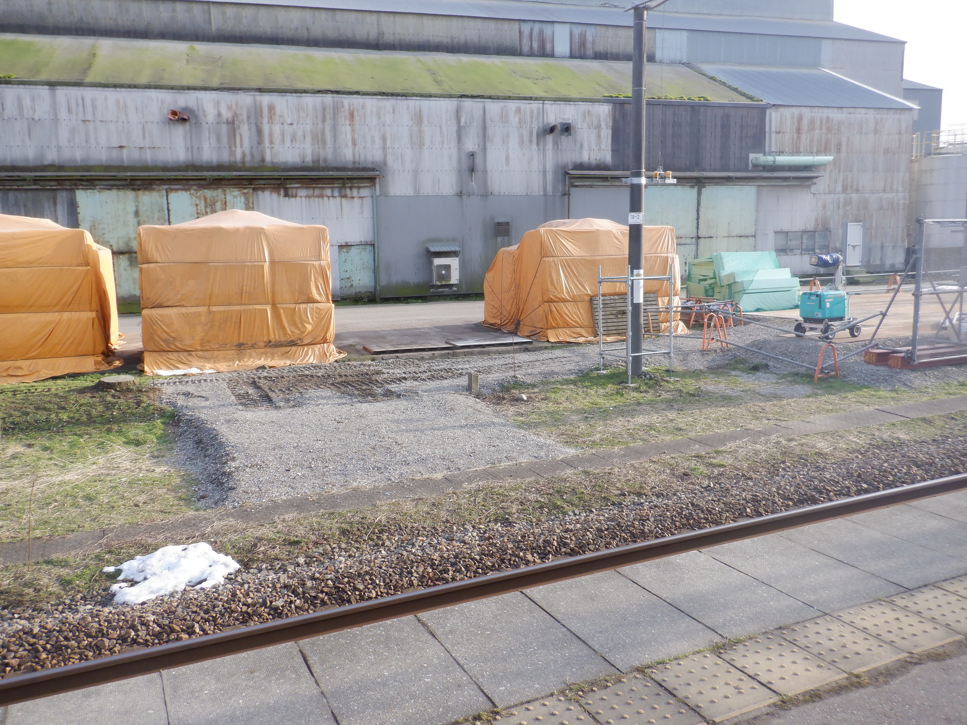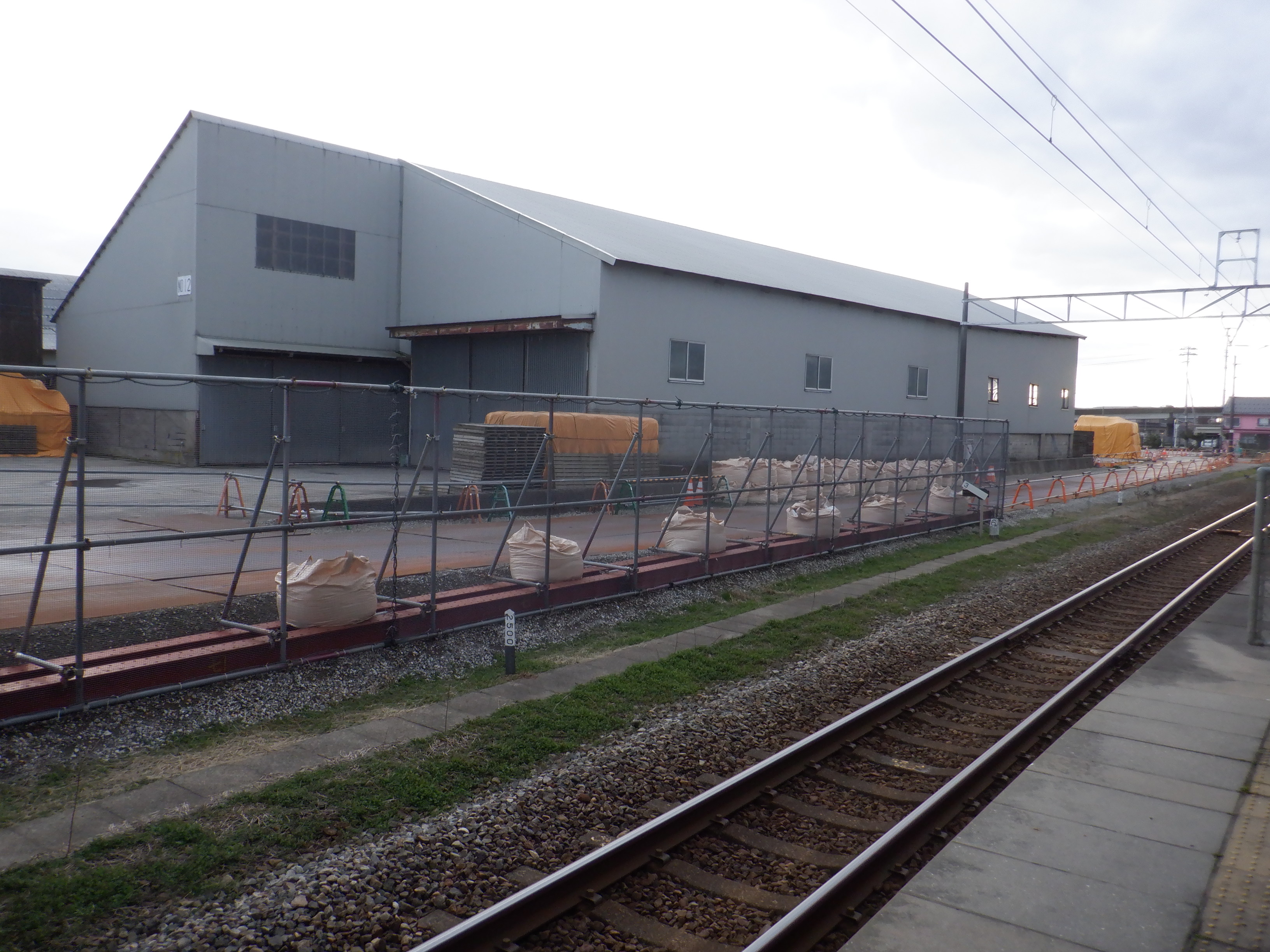 2・3番のりば西高岡駅側のエレベーター跨線橋建設のための囲い。