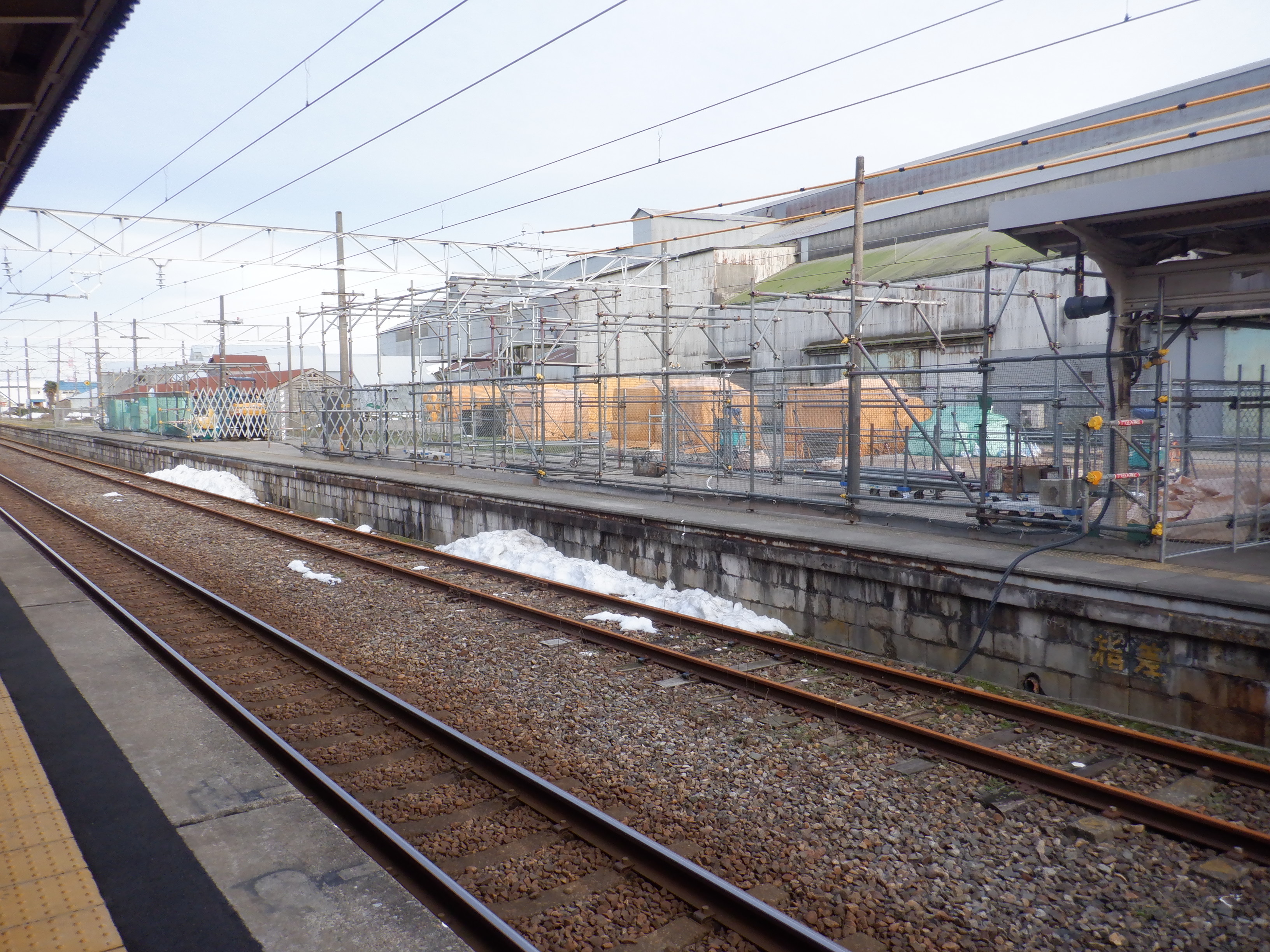 2024年元日の様子です。2・3番のりばのエレベーター跨線橋・上屋のところが少し掘られていて工事が本格的に始まったことが分かります。なお、この取材終了後乗車し、金沢駅に到着した直後に能登半島地震の揺れに遭遇しました。
