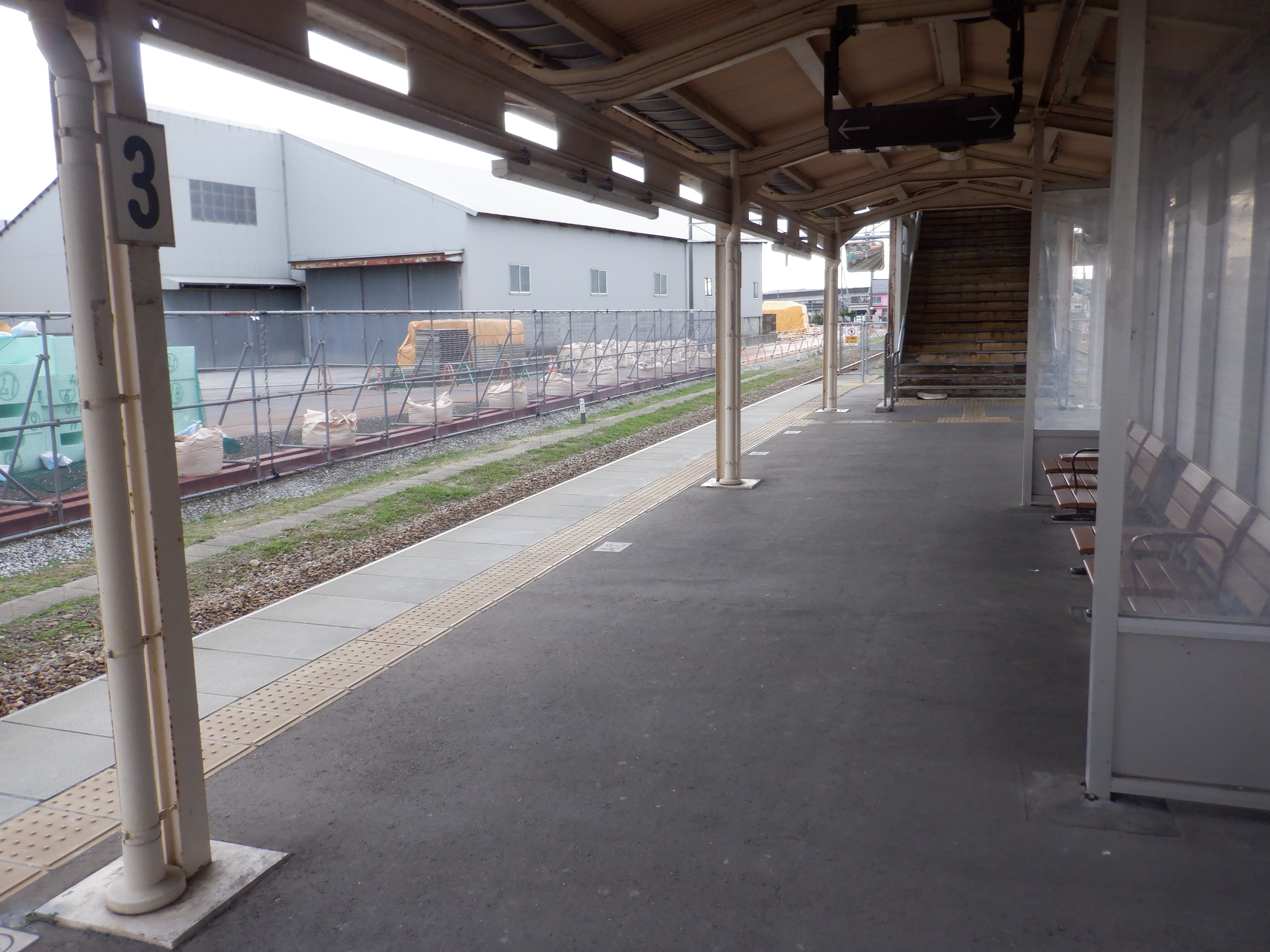 2・3番のりば上屋付近から見た1番のりば西高岡駅側。