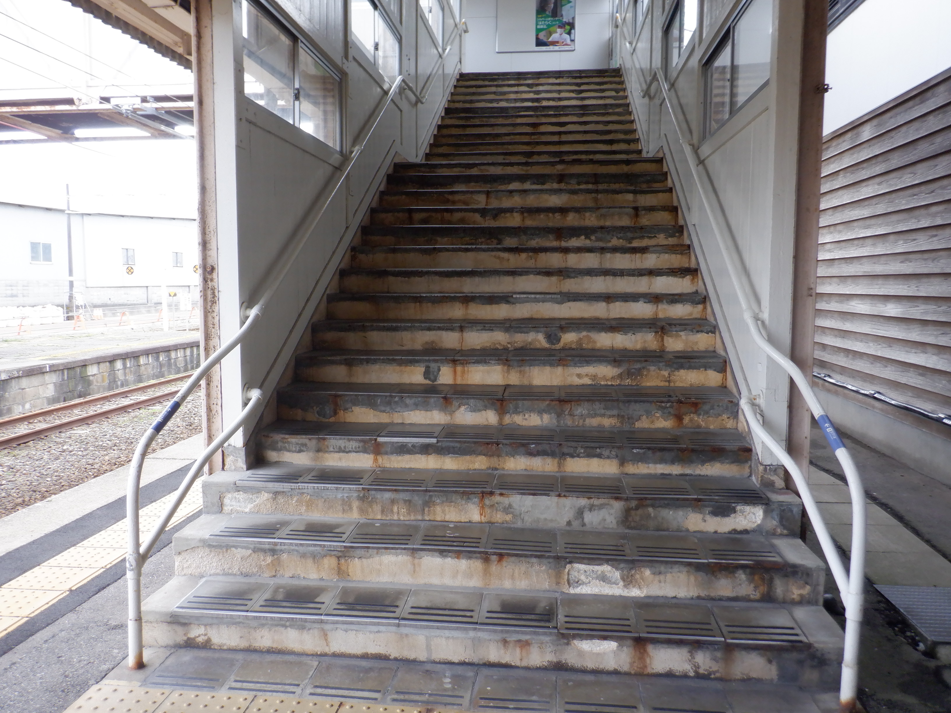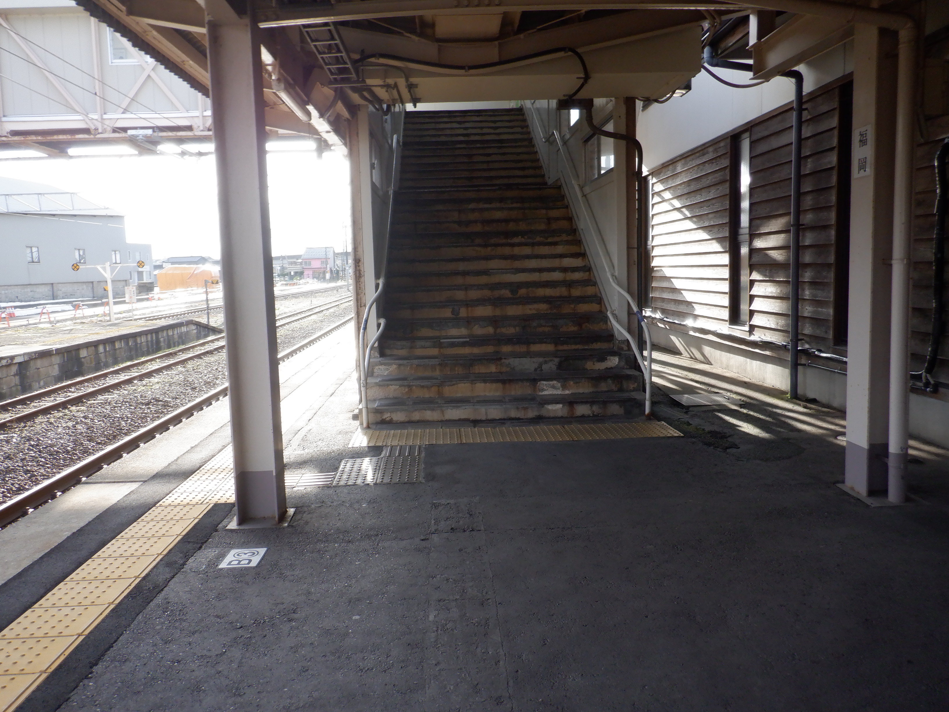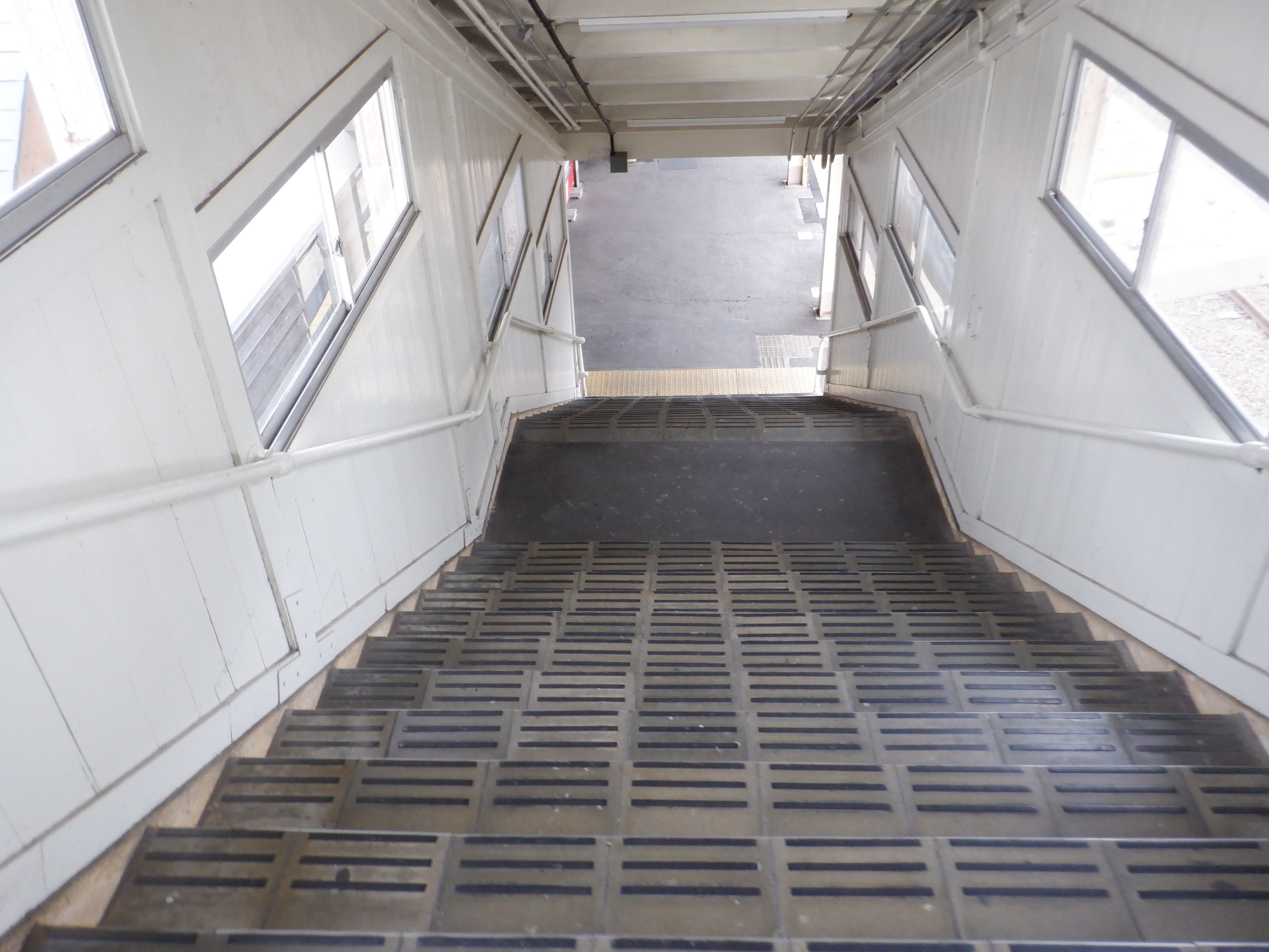 3番のりば側跨線橋階段に貼ってある番線標など。
