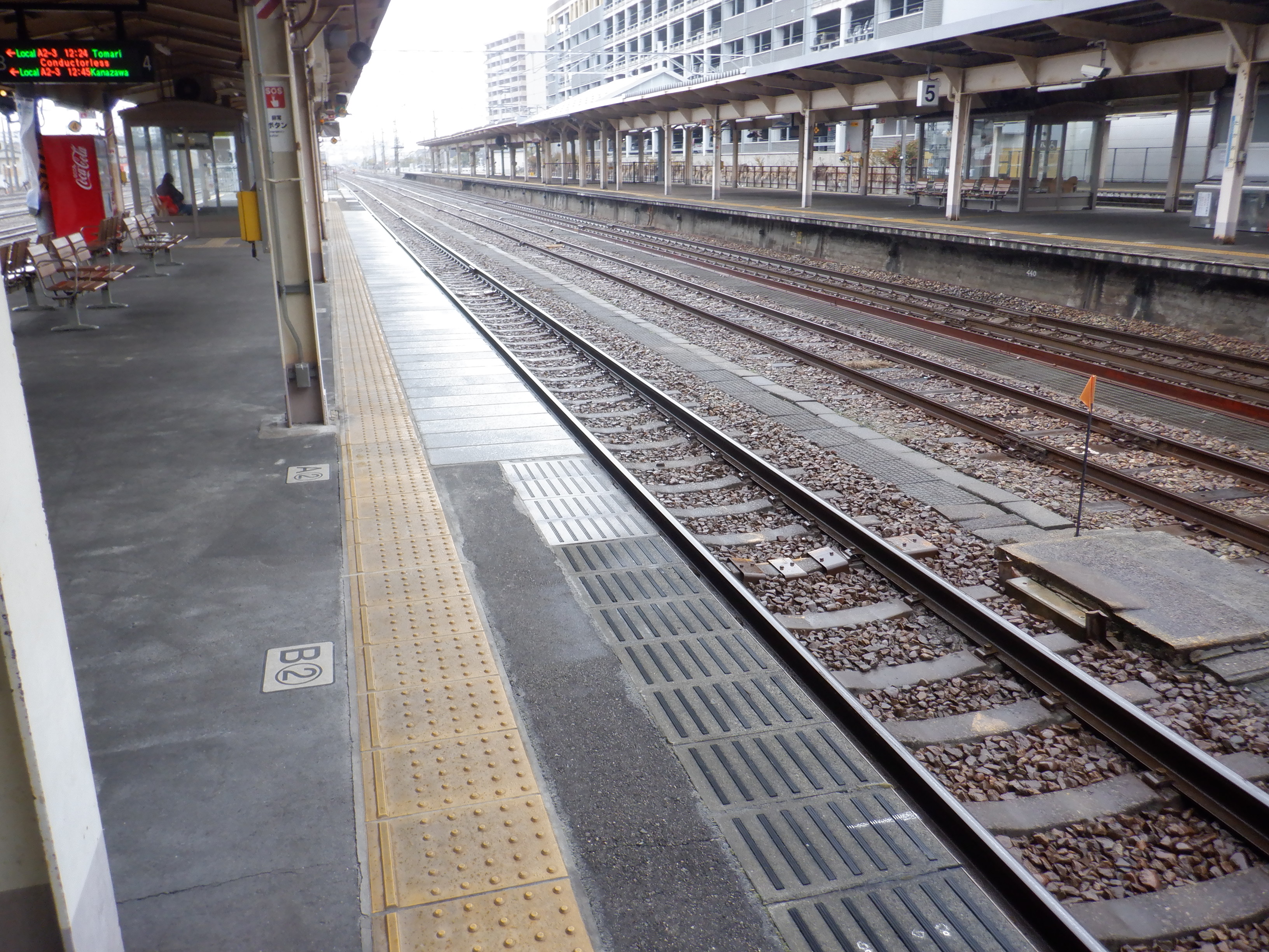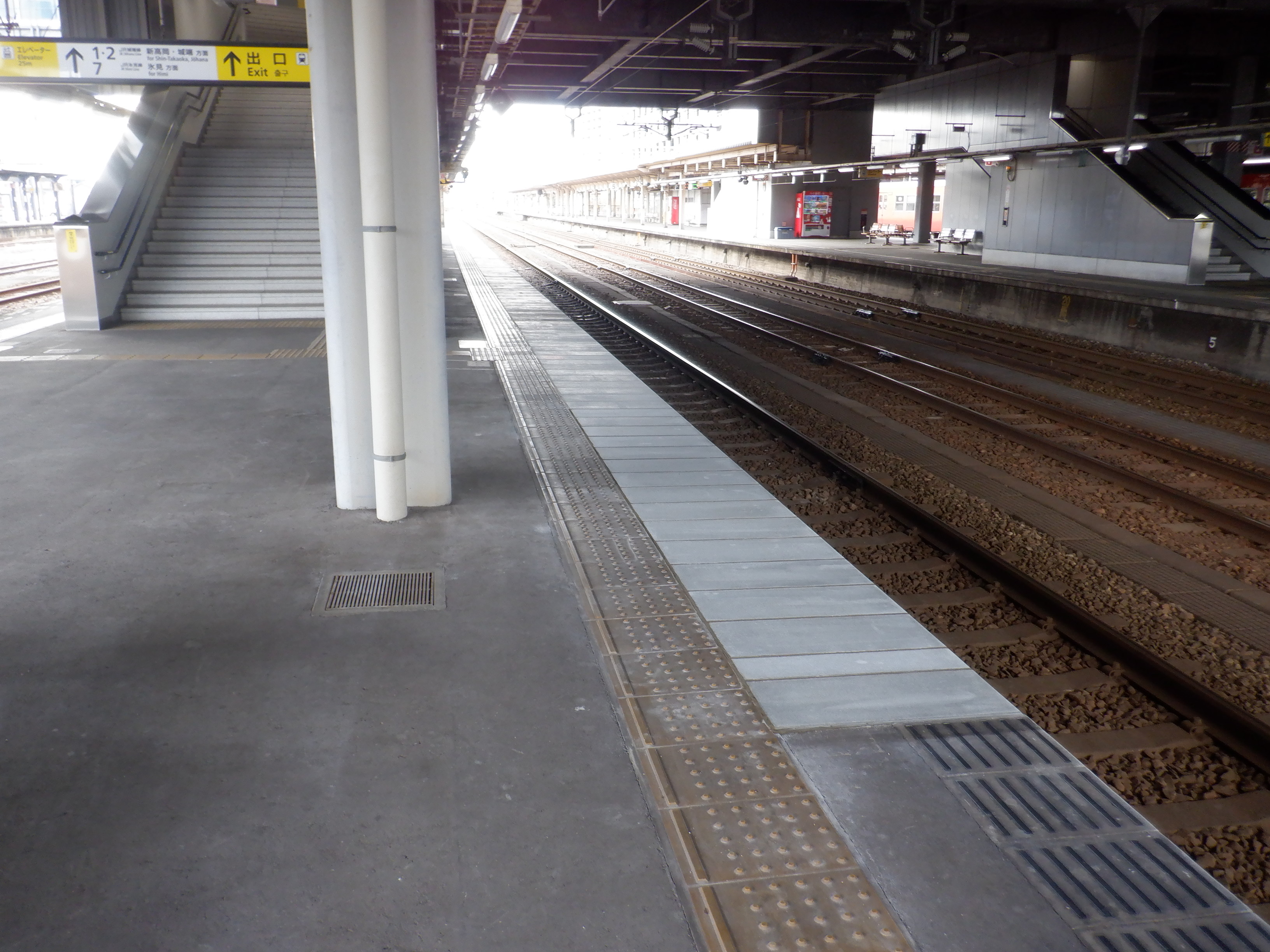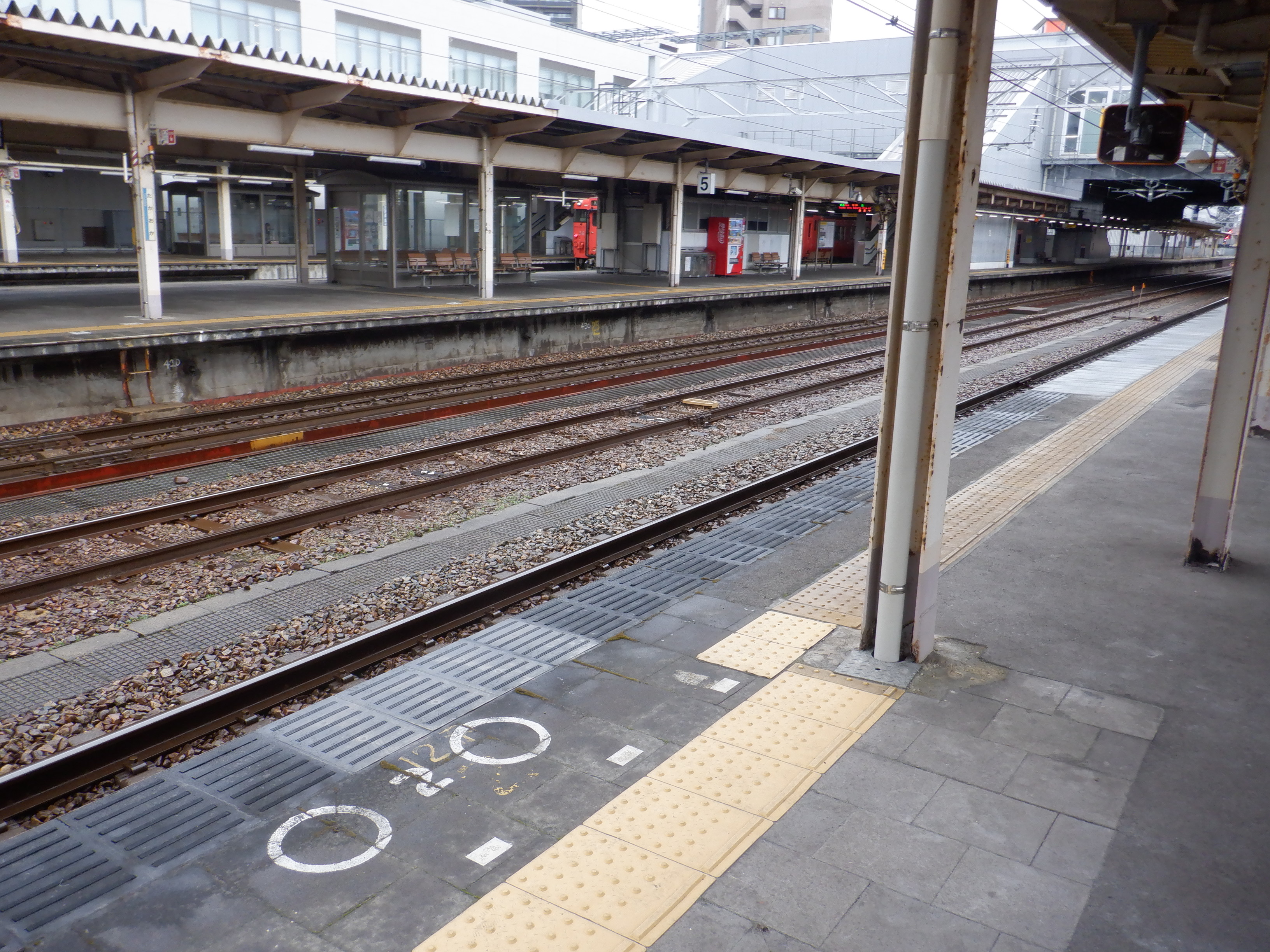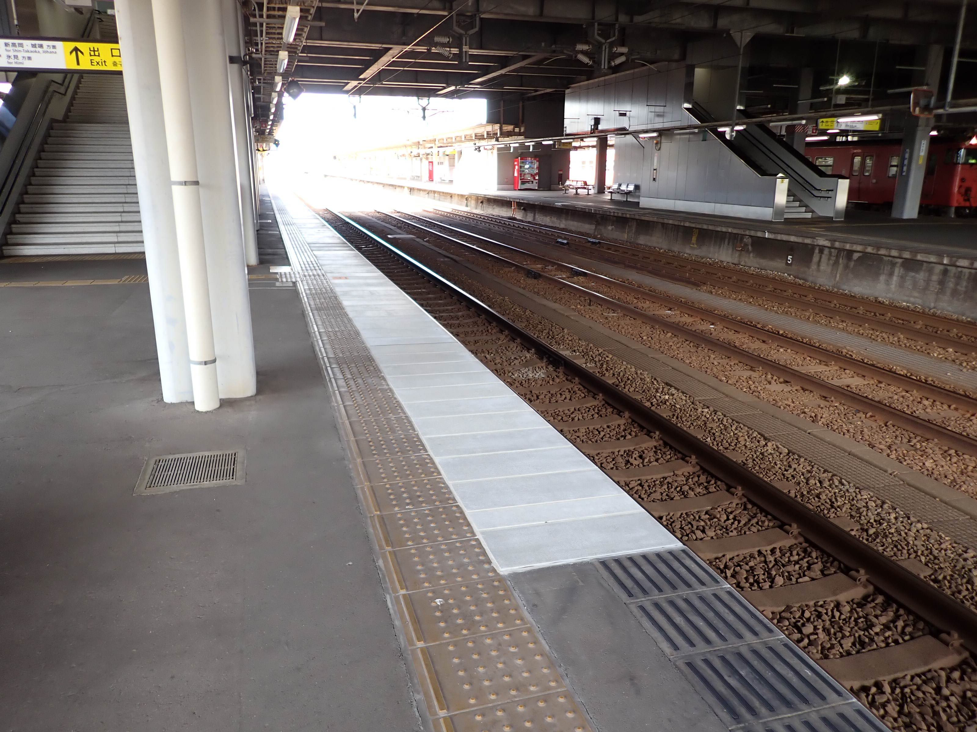 縁部がきれいになった4番のりば。その向かい側、5番のりばの階段のところに柱の番線標が見えませんが、次回変化があります。