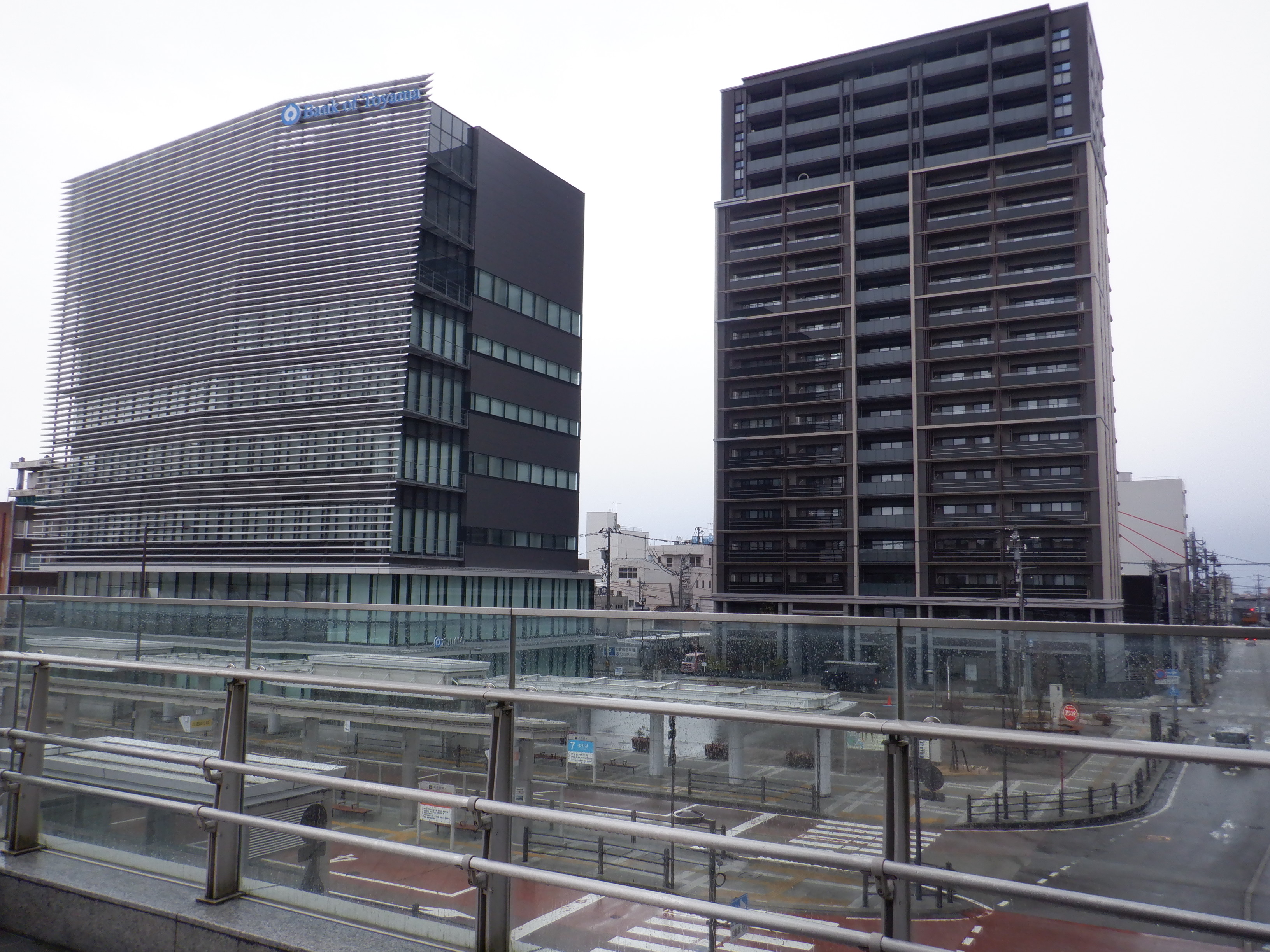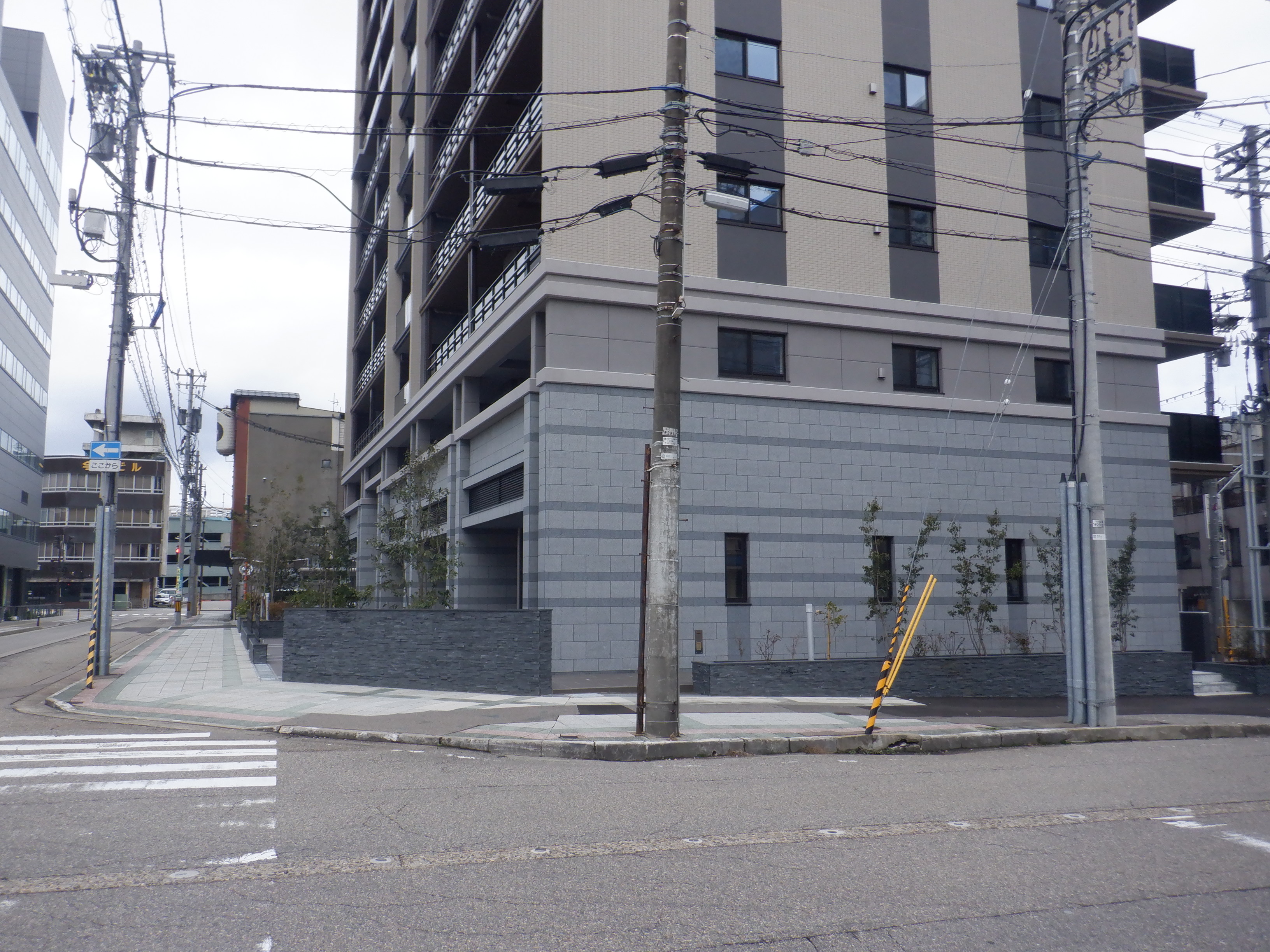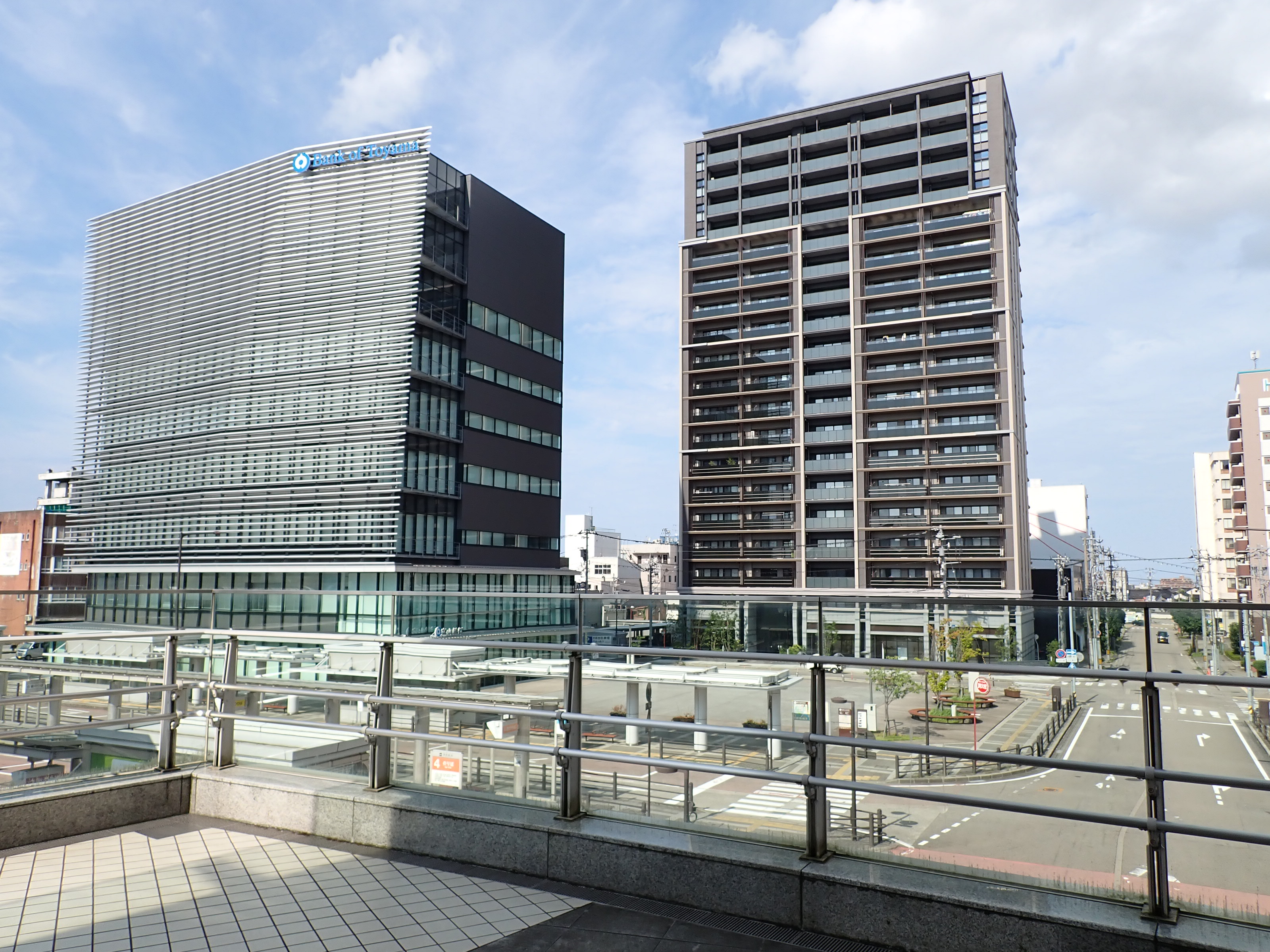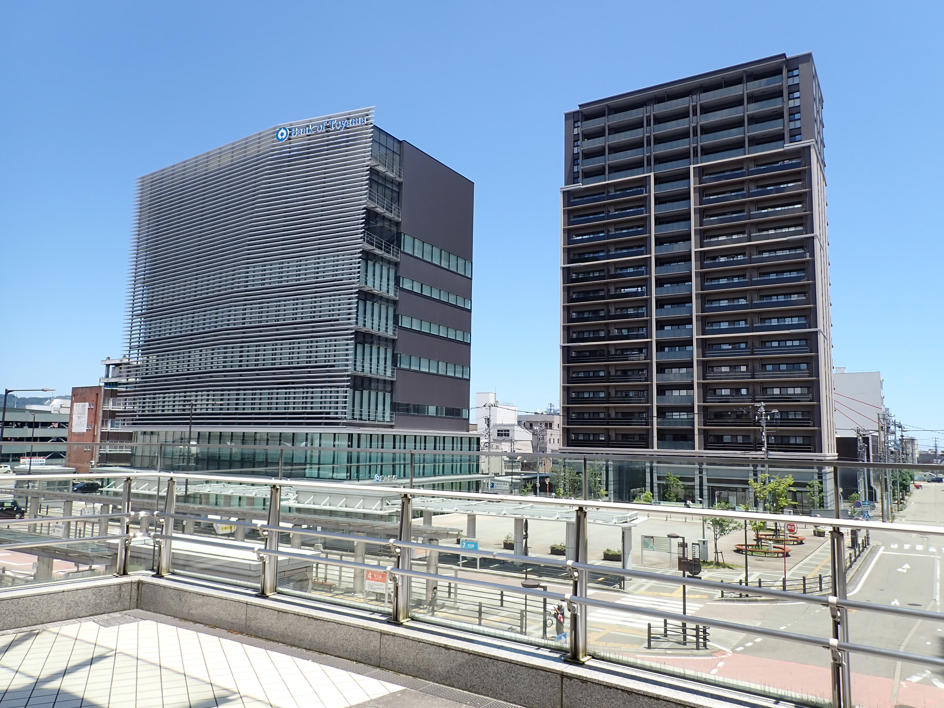 アドニスビル跡地のマンションと富山銀行。