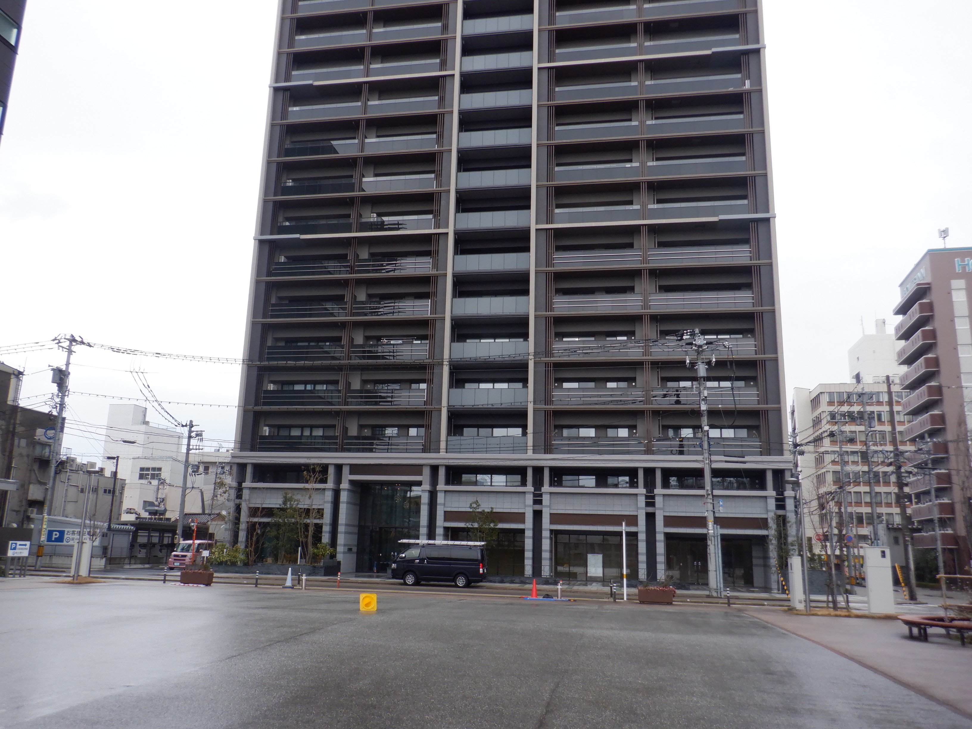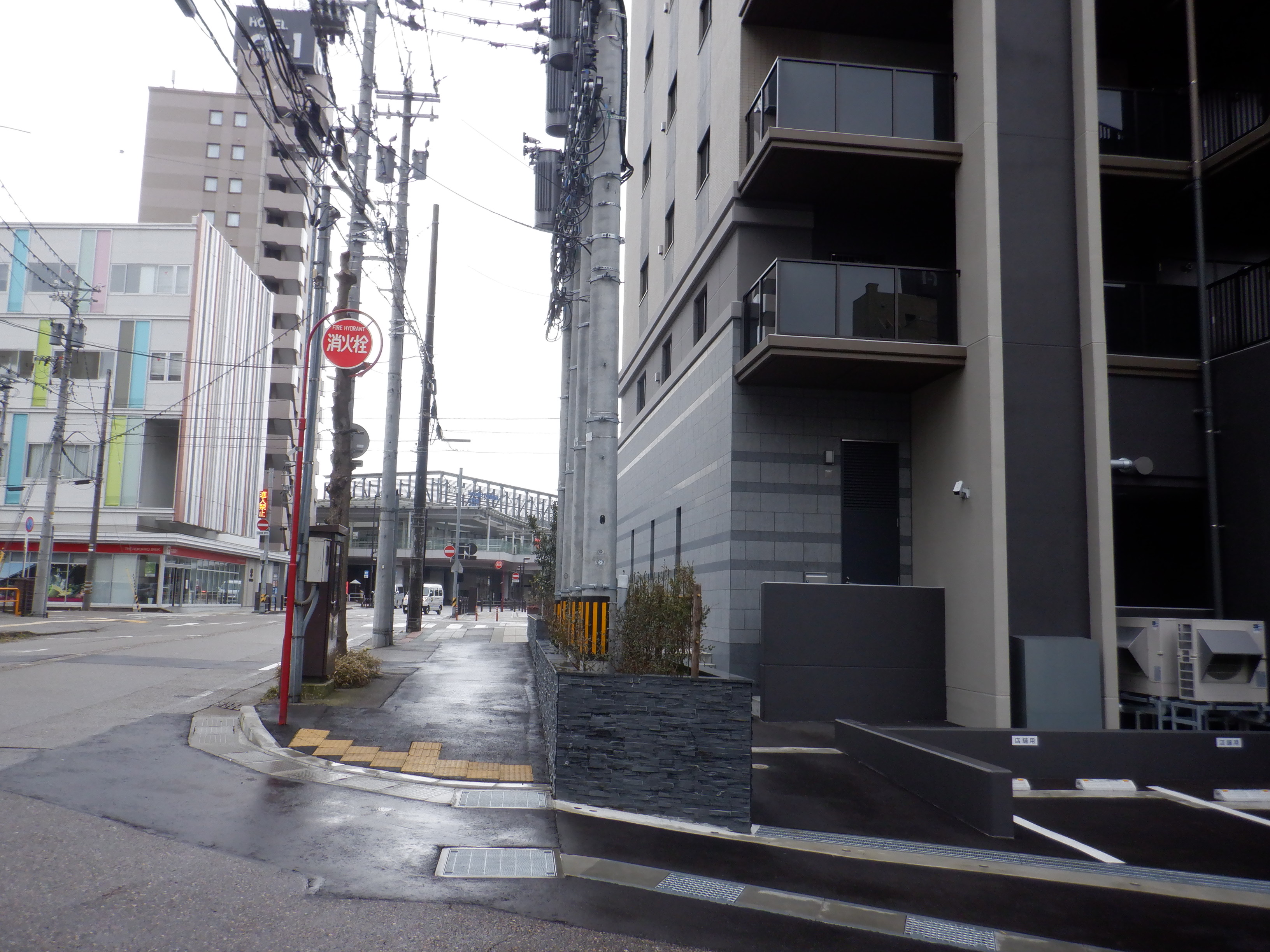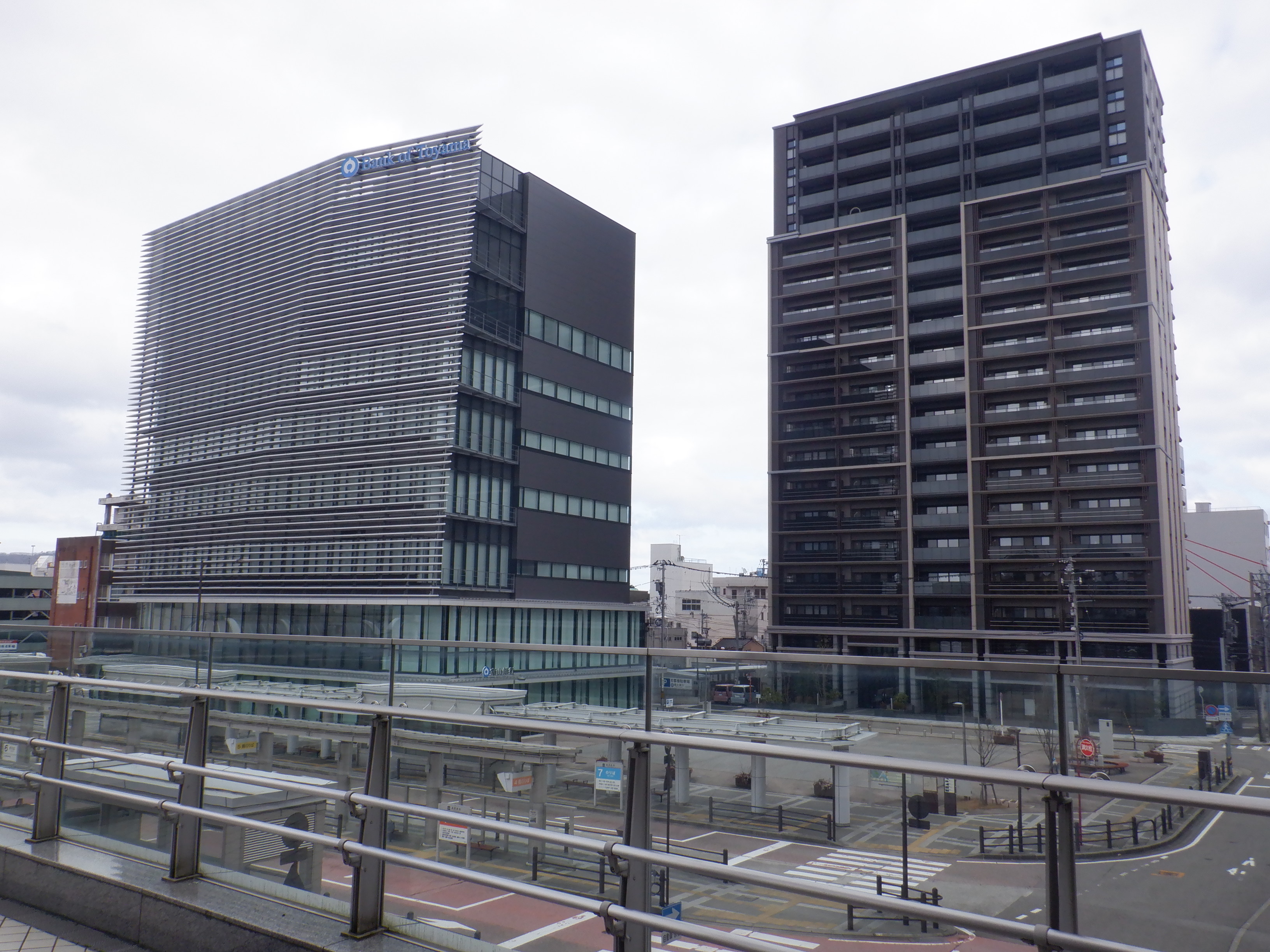 アドニスビル跡地のマンションと富山銀行。