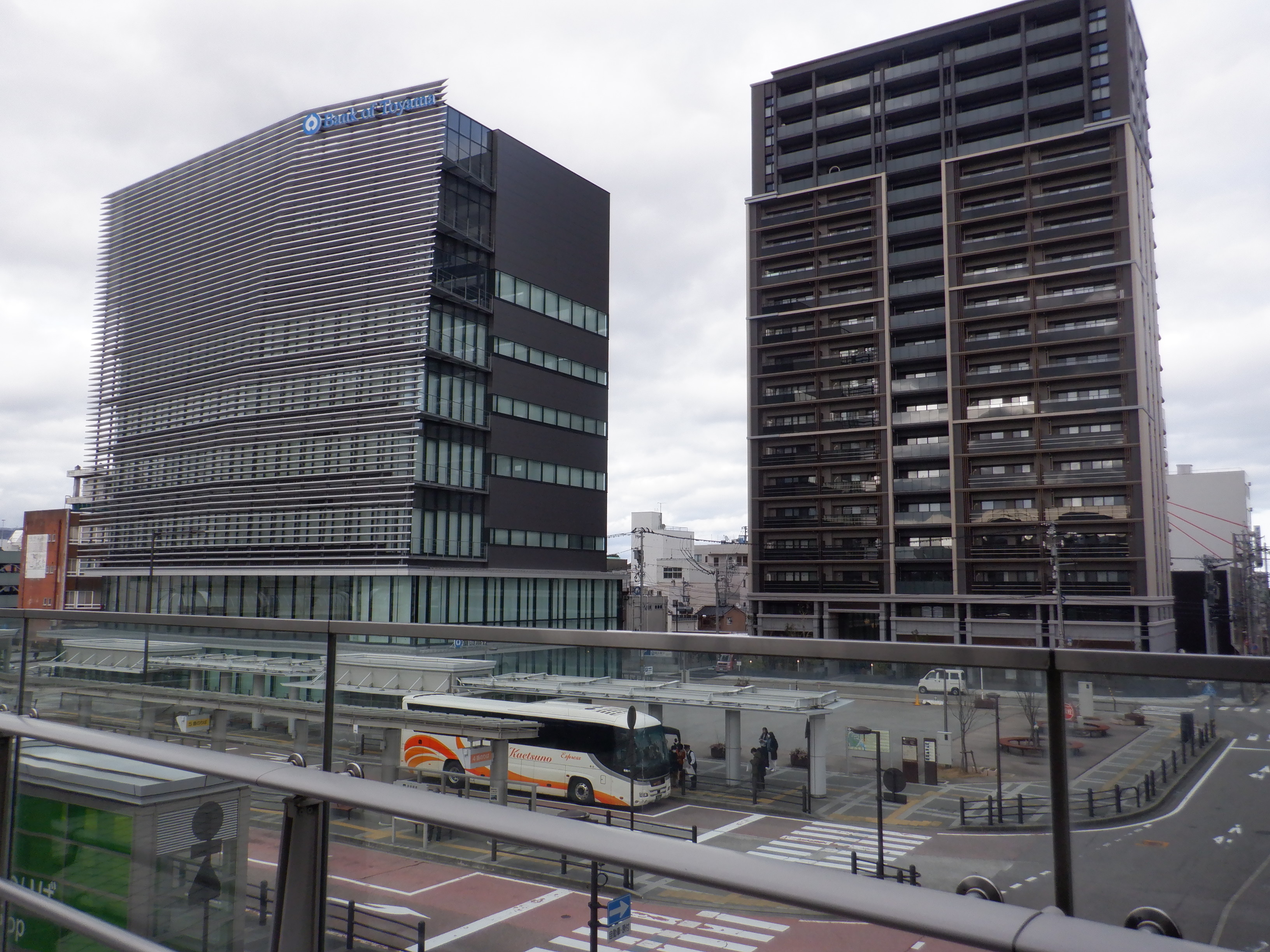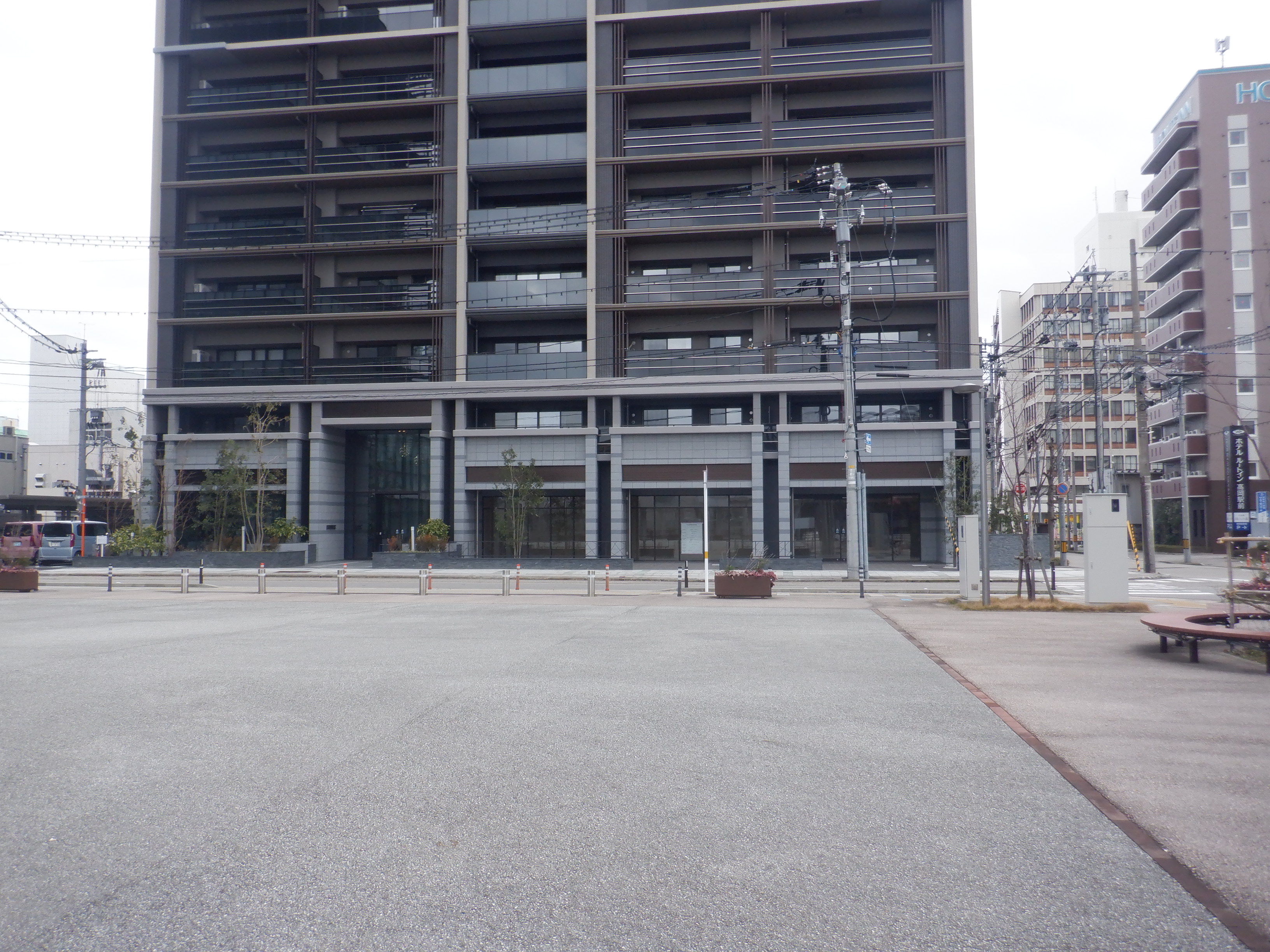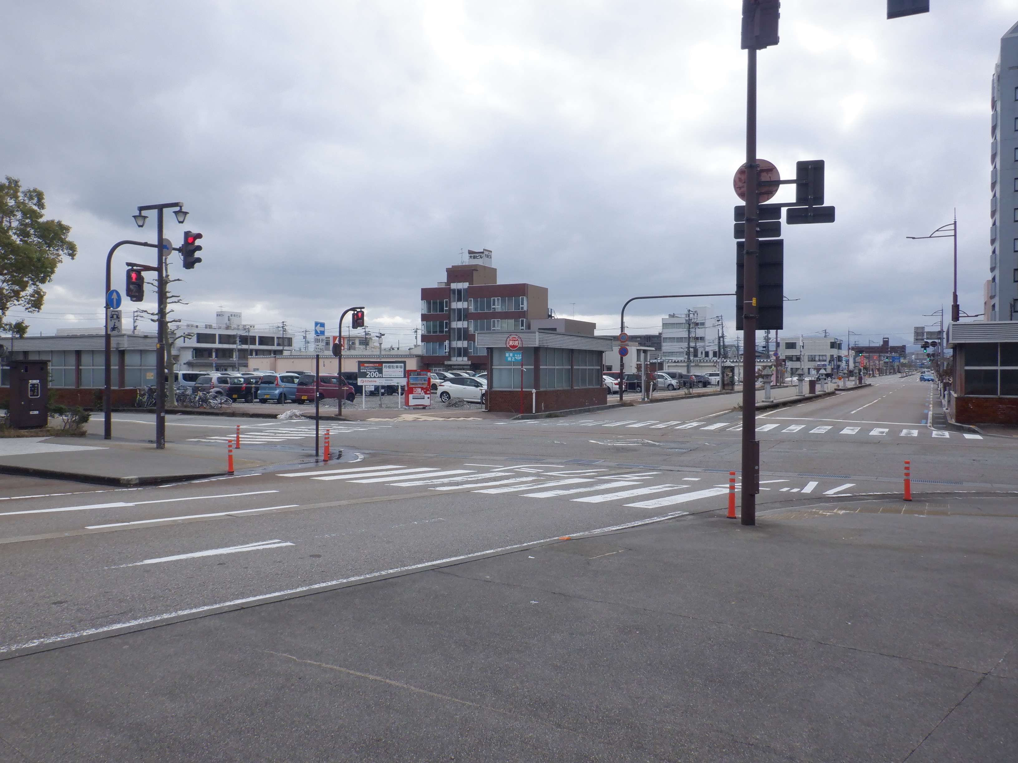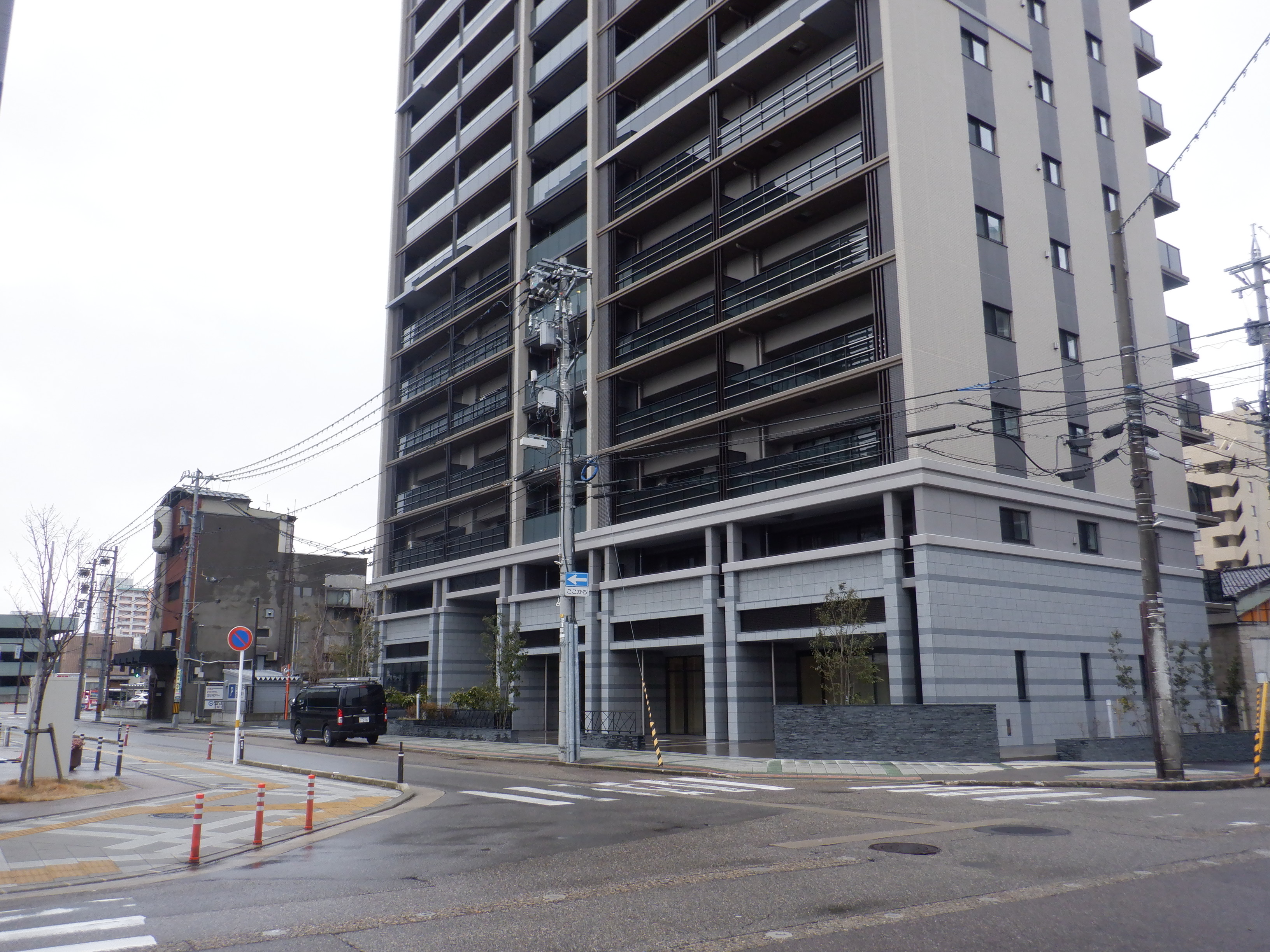 アドニスビル跡地のマンションと富山銀行。