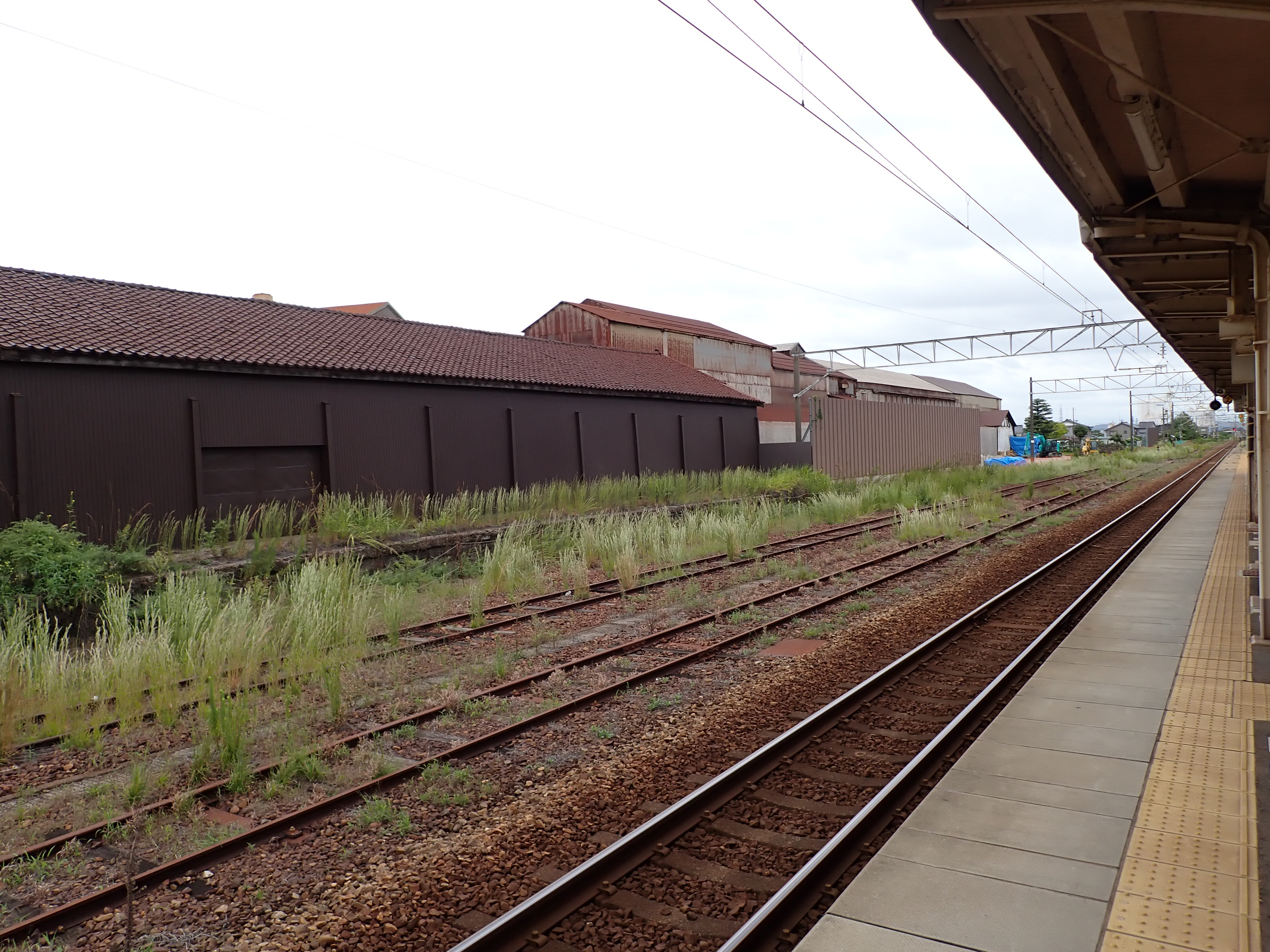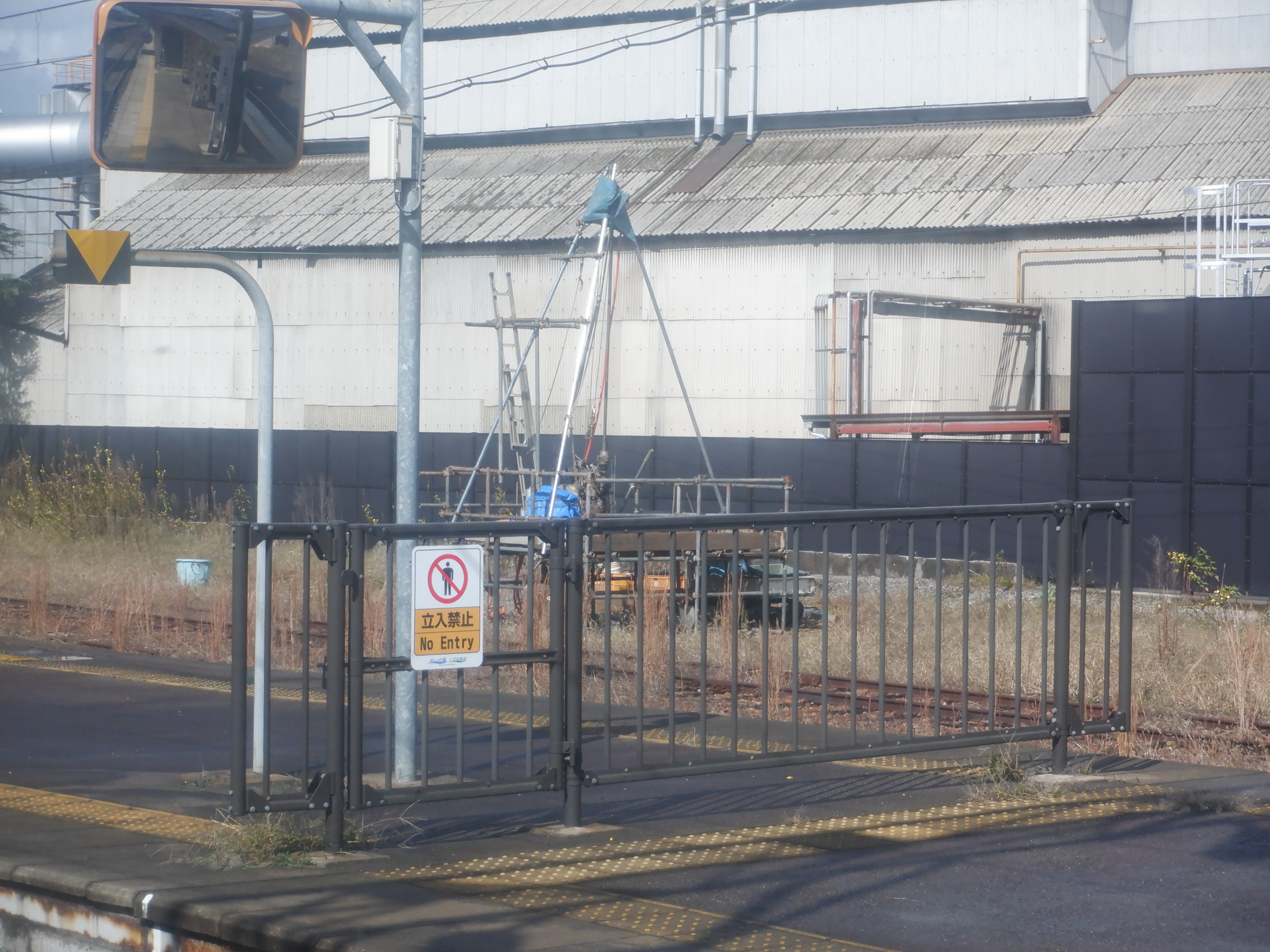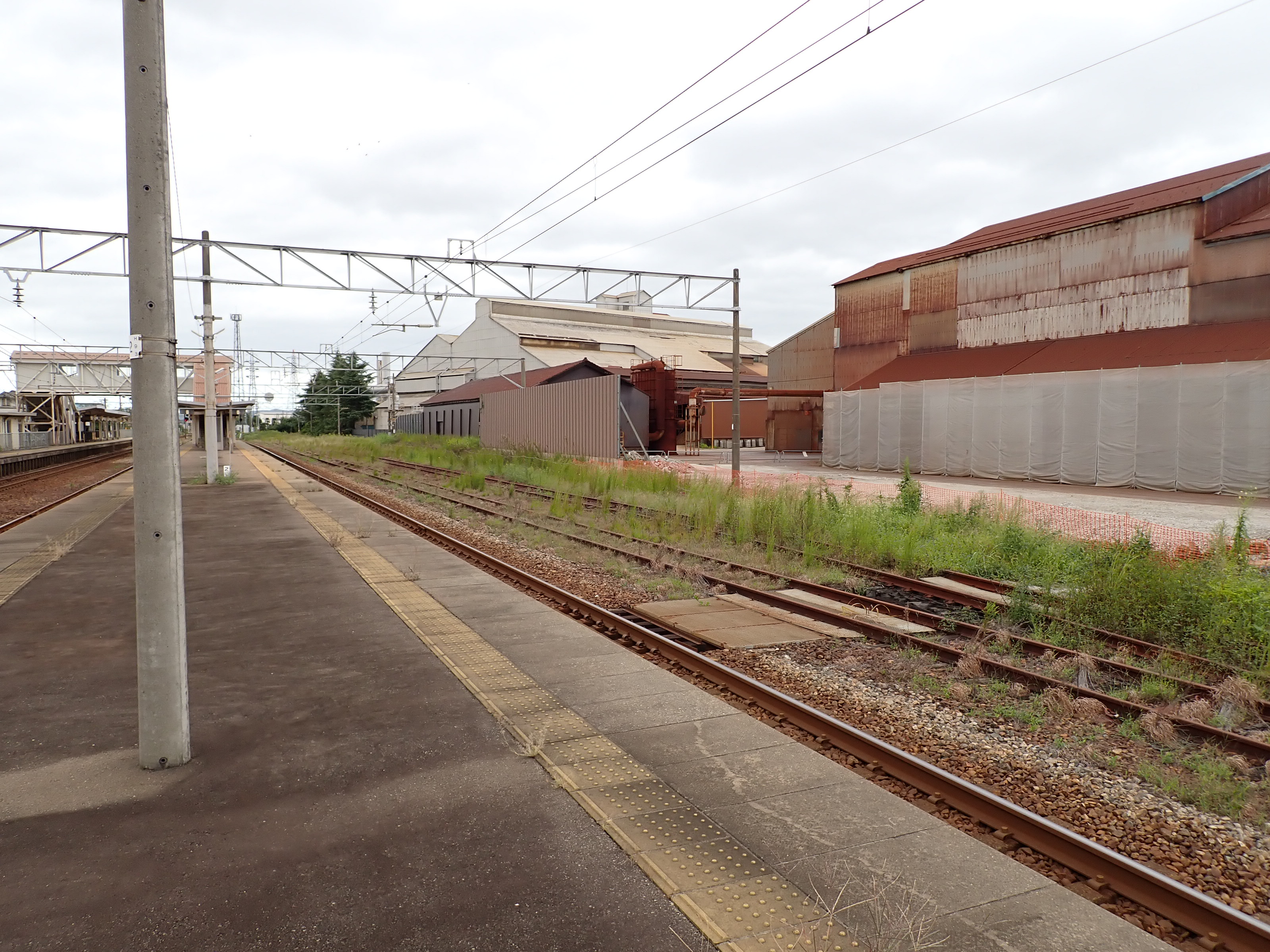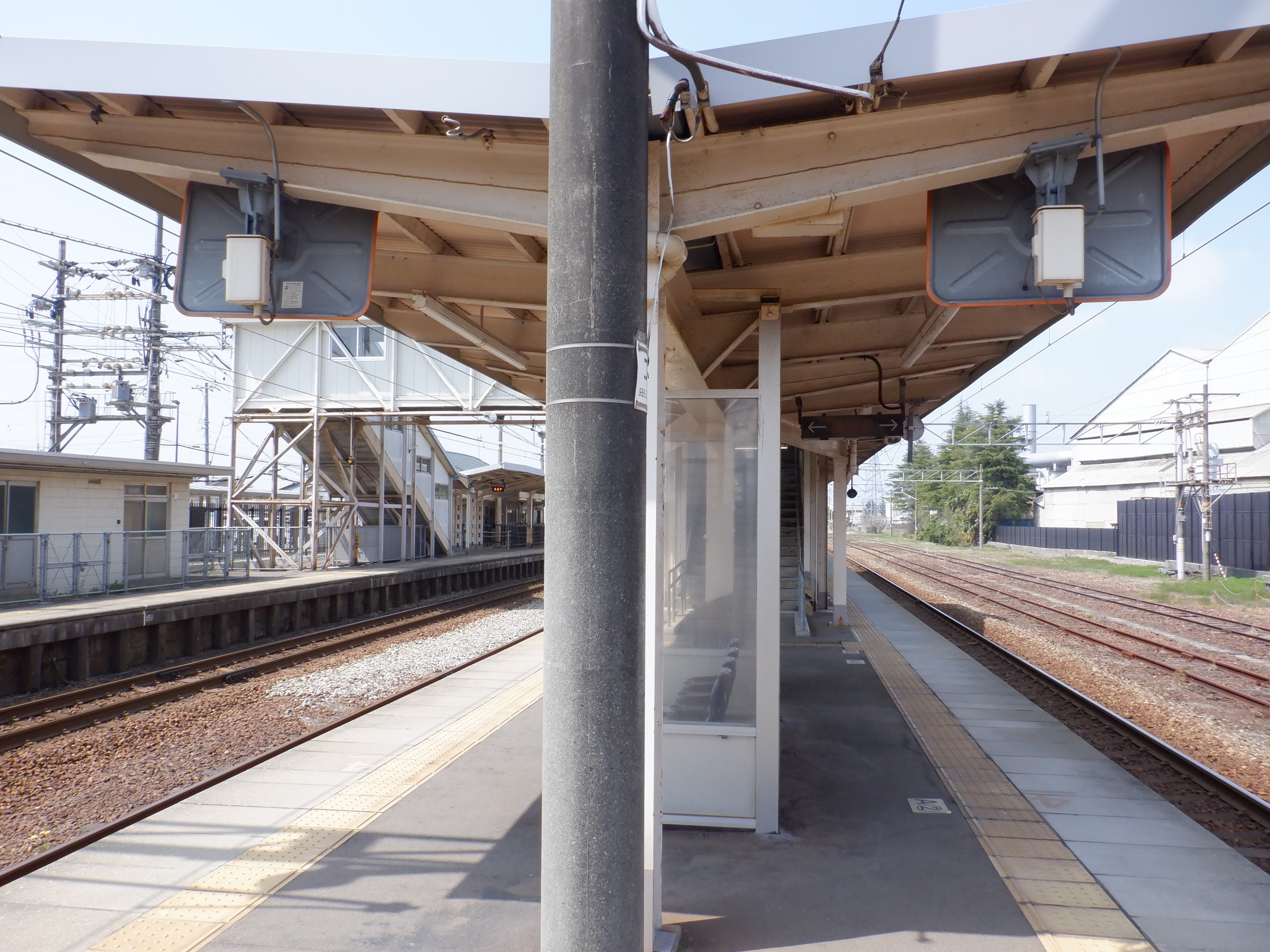 2・3番のりばから見た駅舎と反対側の工場。