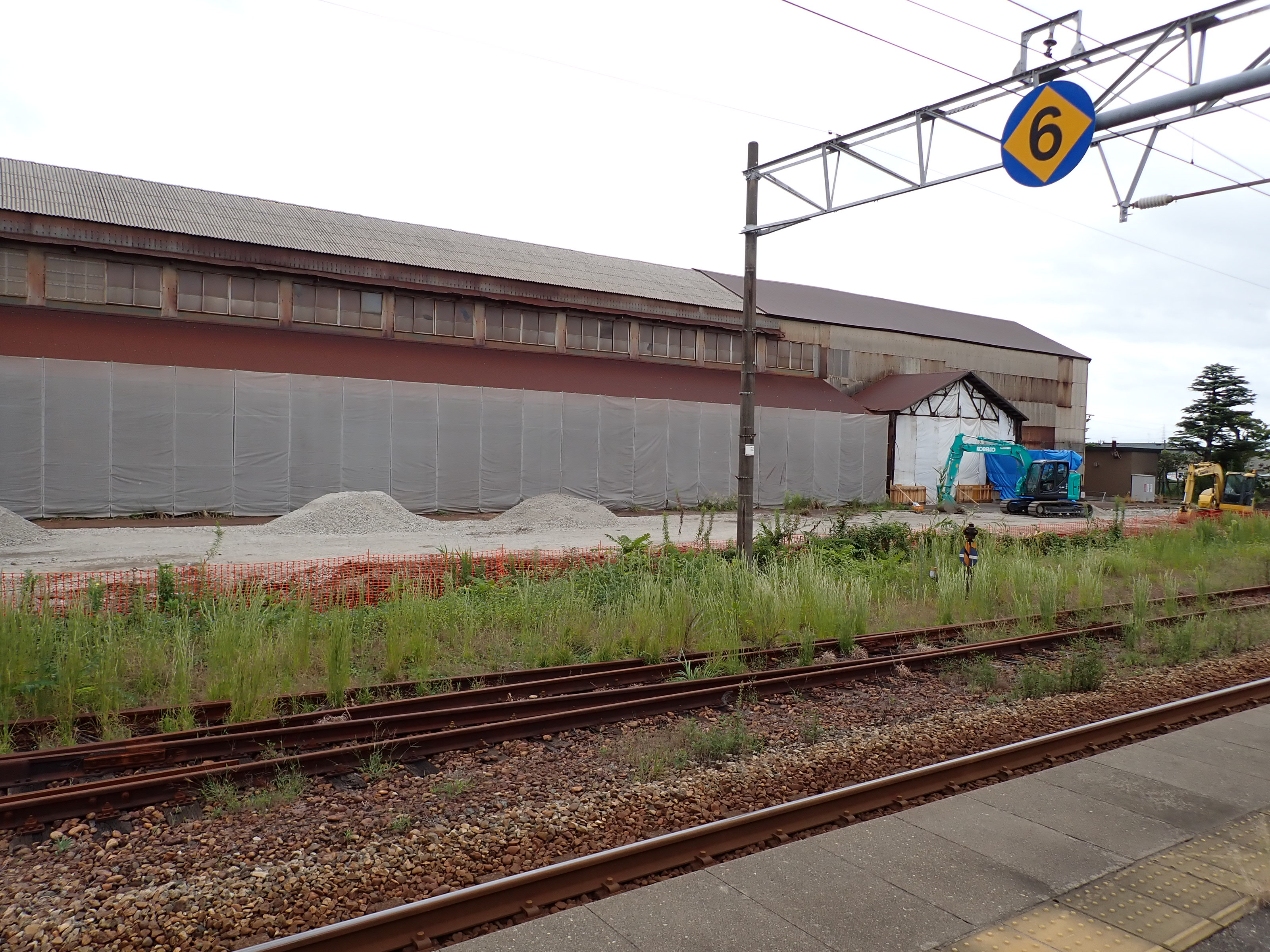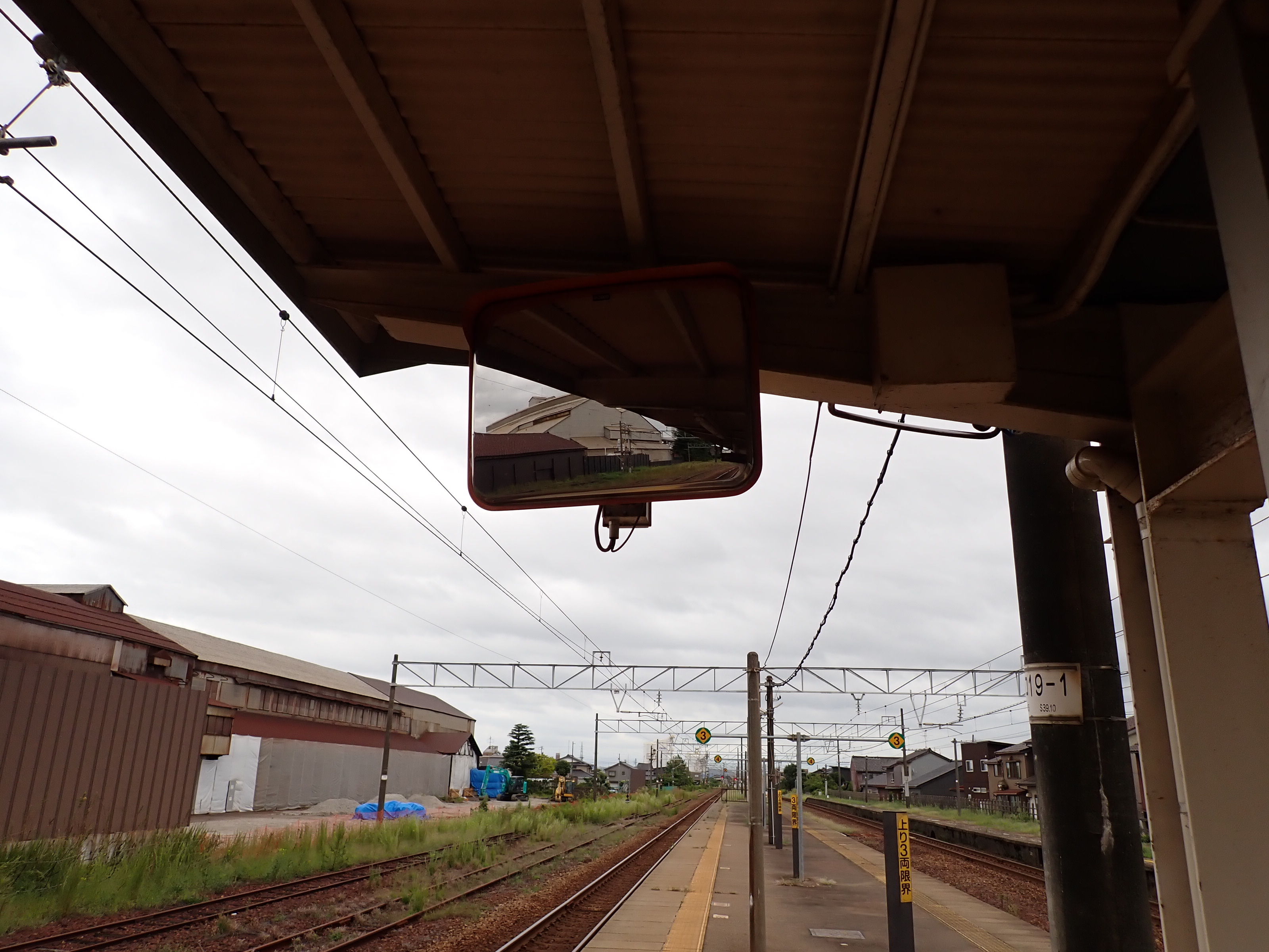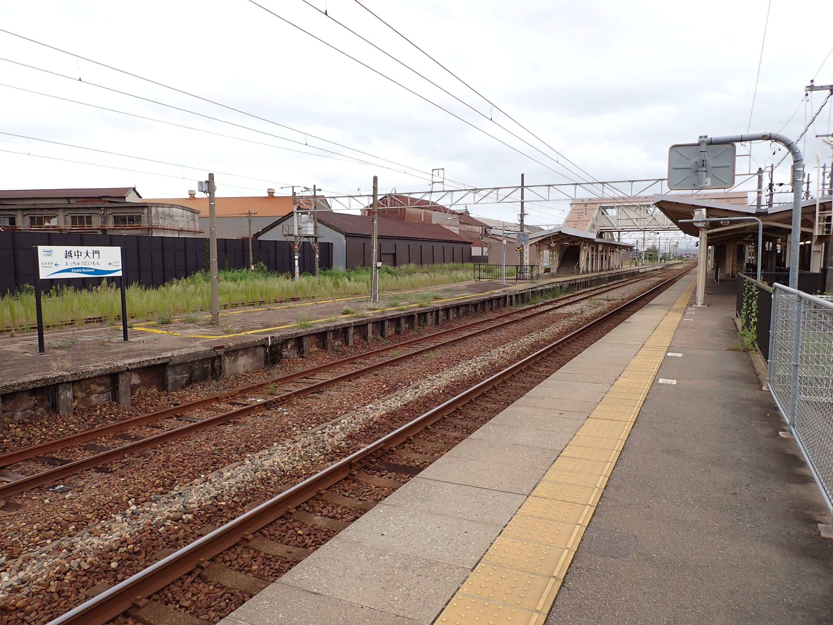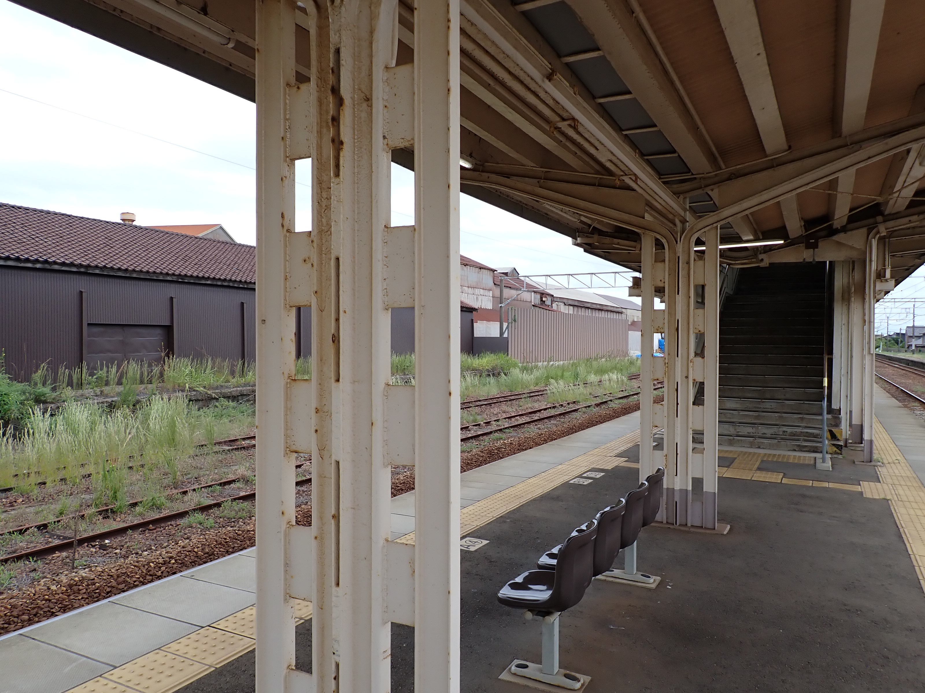 2・3番のりばから見た駅舎と反対側の工場。