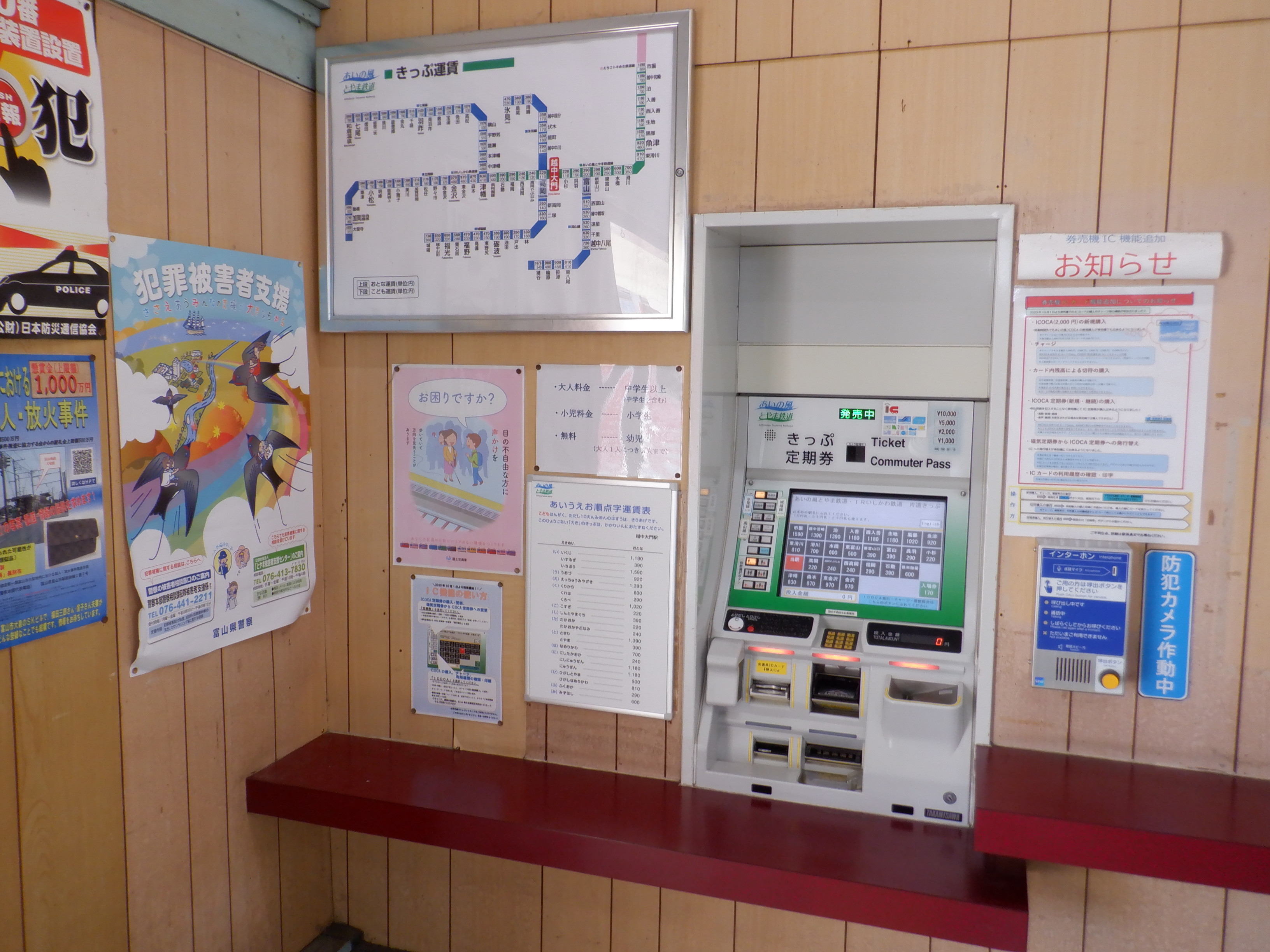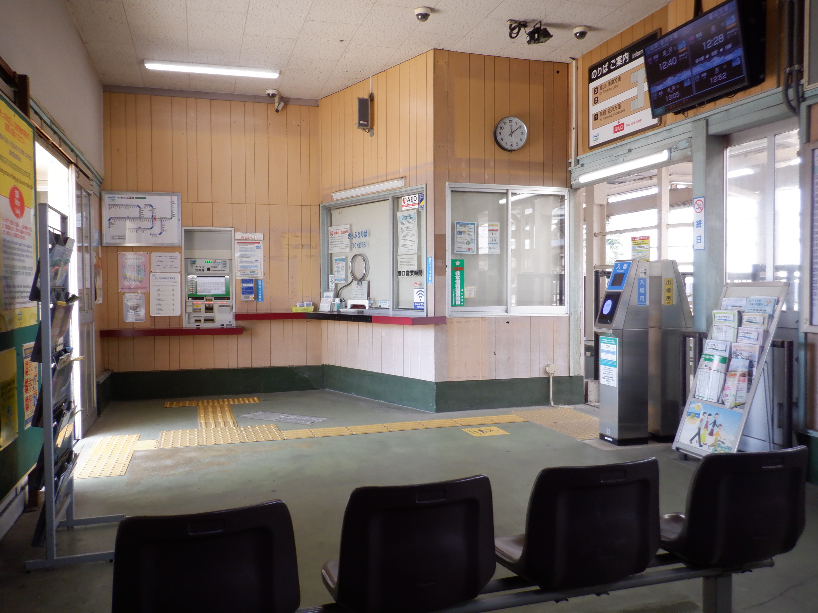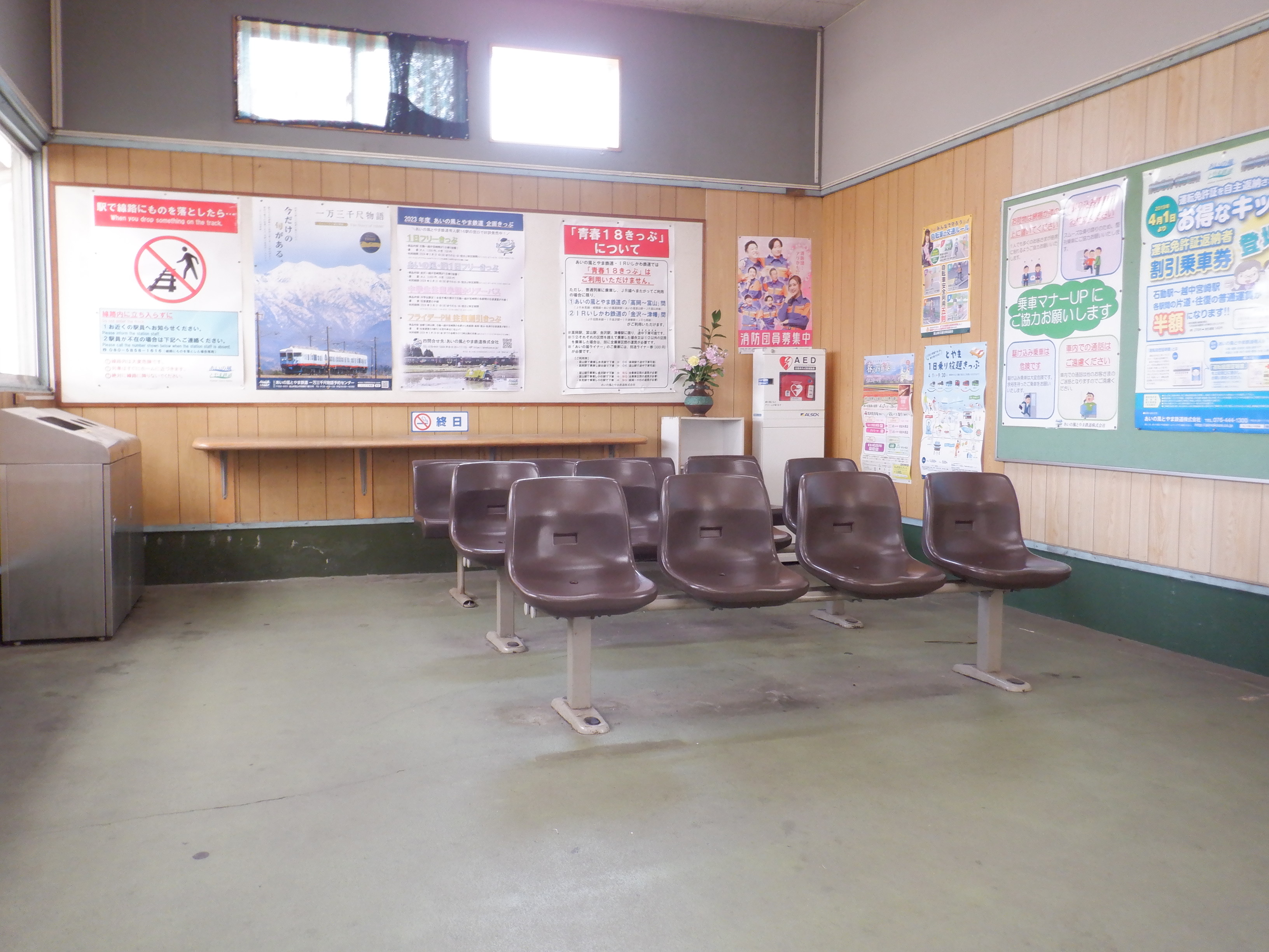 お昼時間帯で窓口が閉まっており、特段他の方もいらっしゃらなかったので駅舎内の様子。