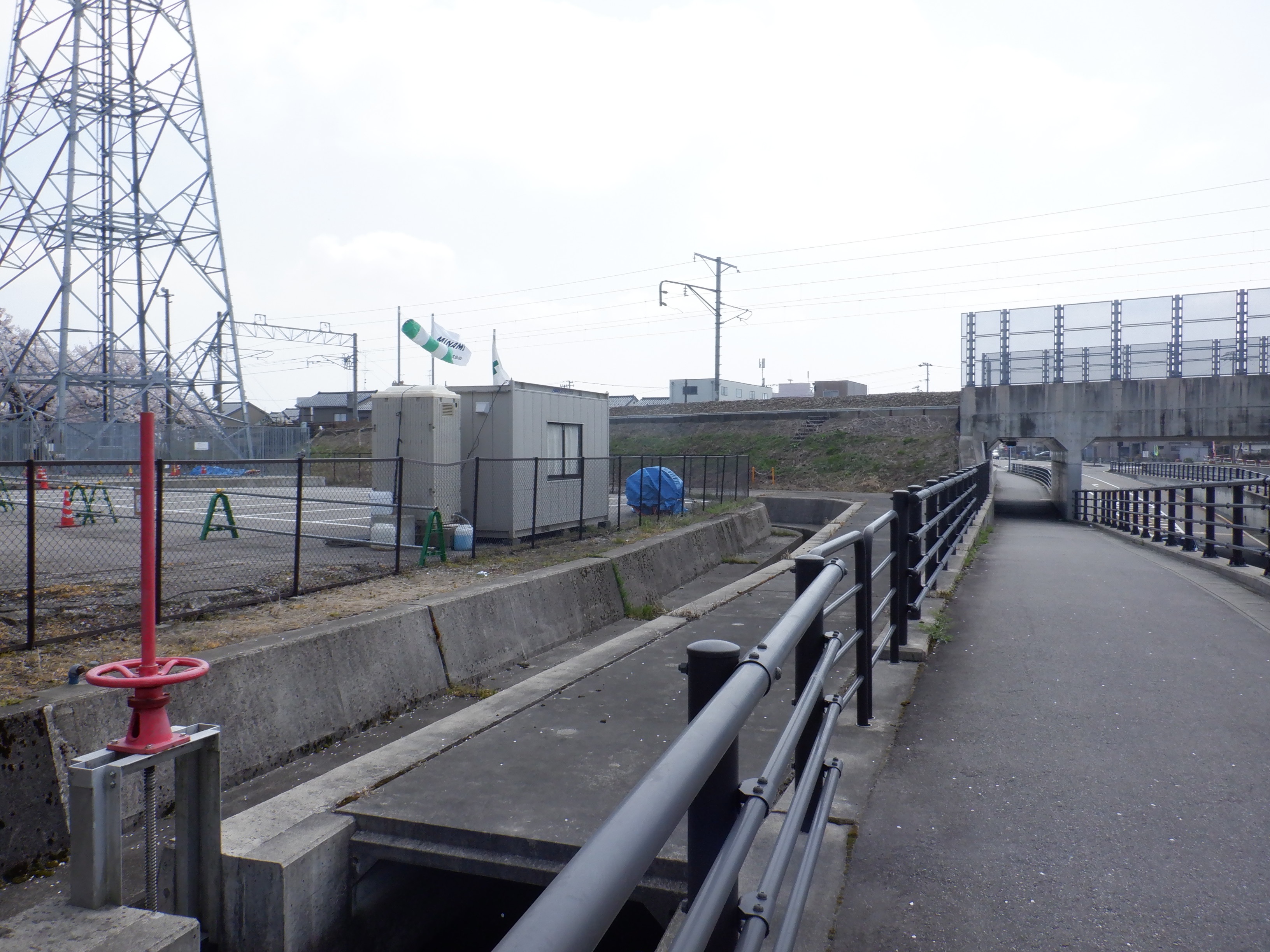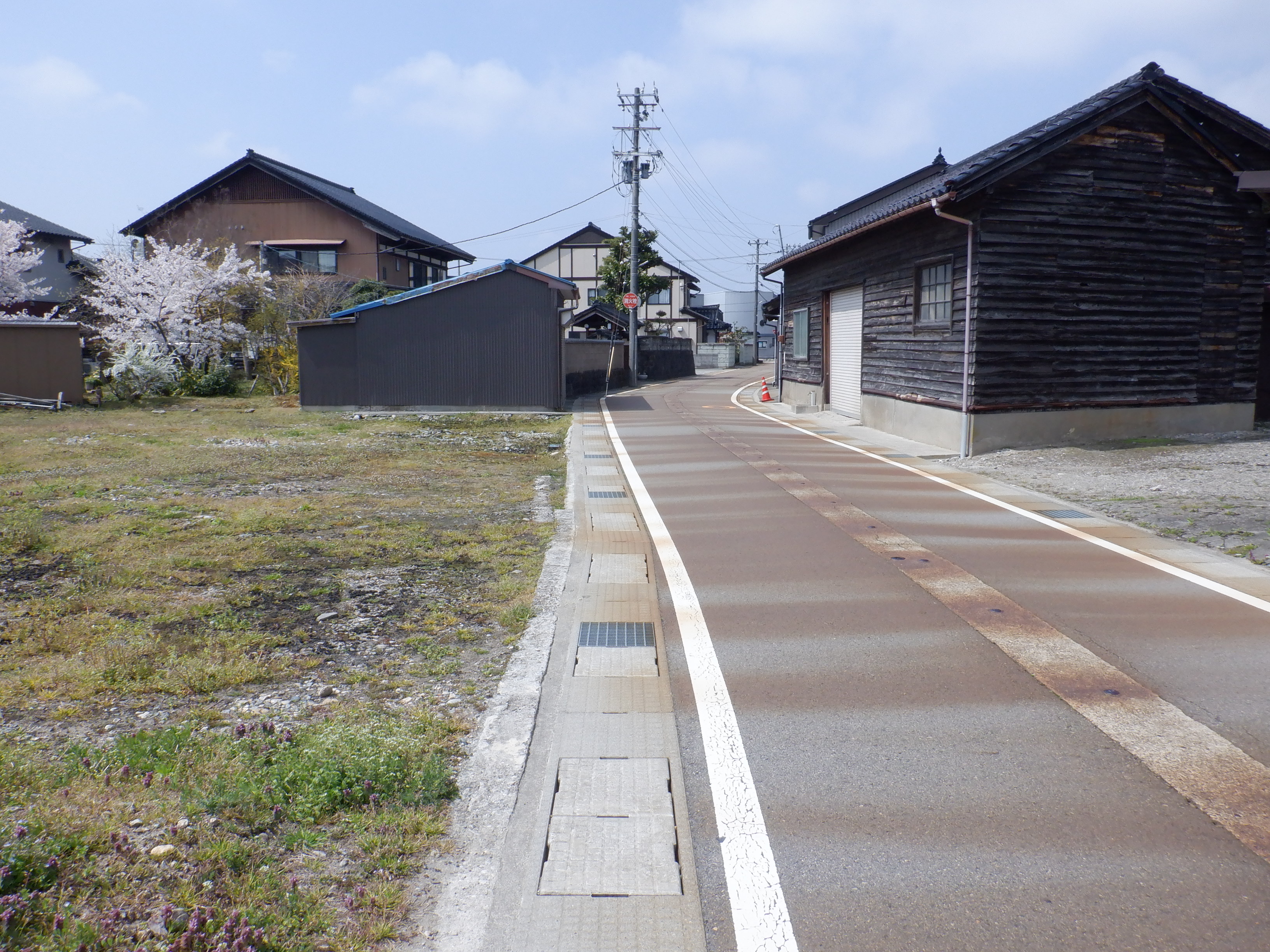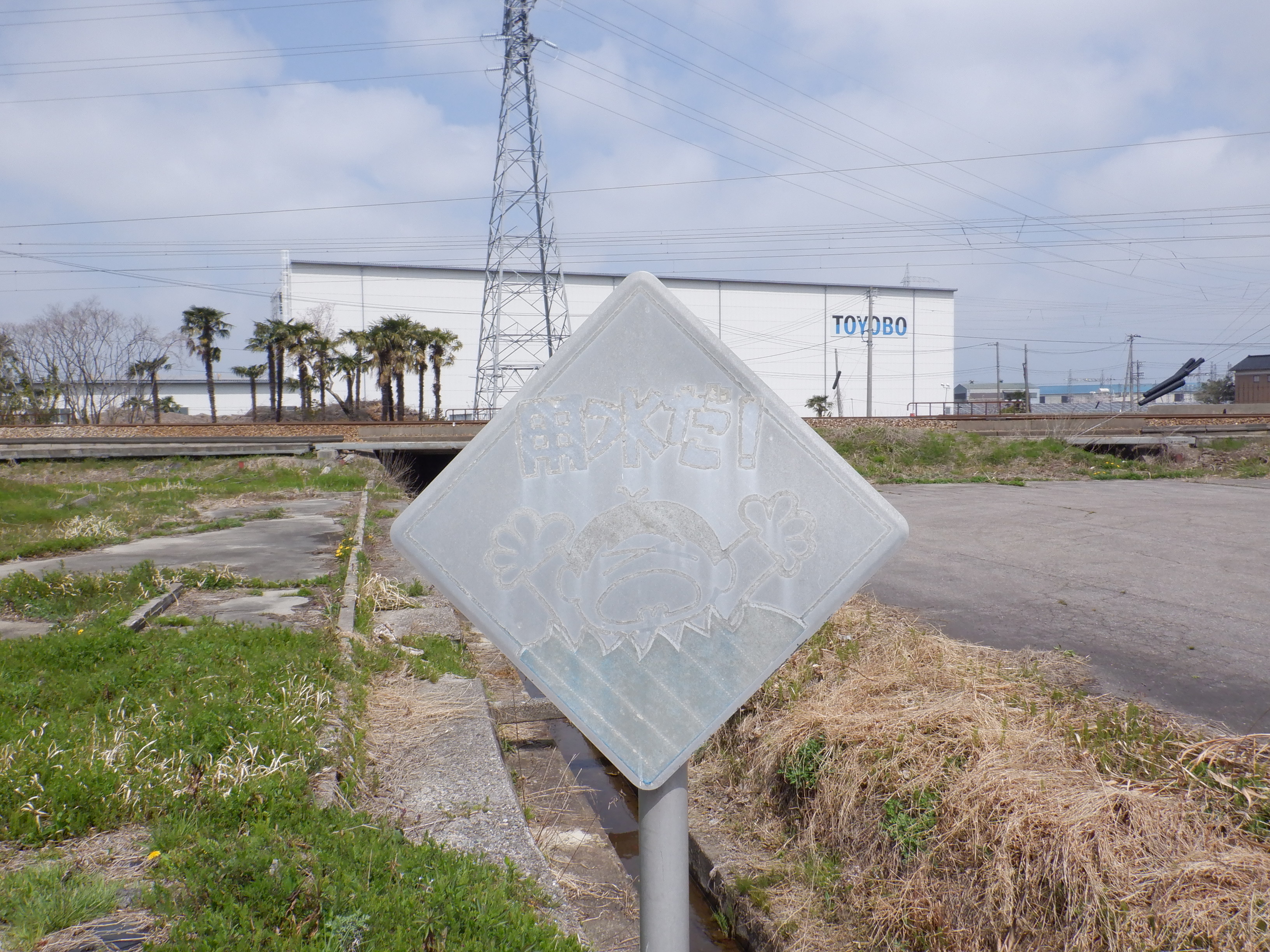 踏切を渡ってしばらく進んだところにも「用水だ!」の看板があります。