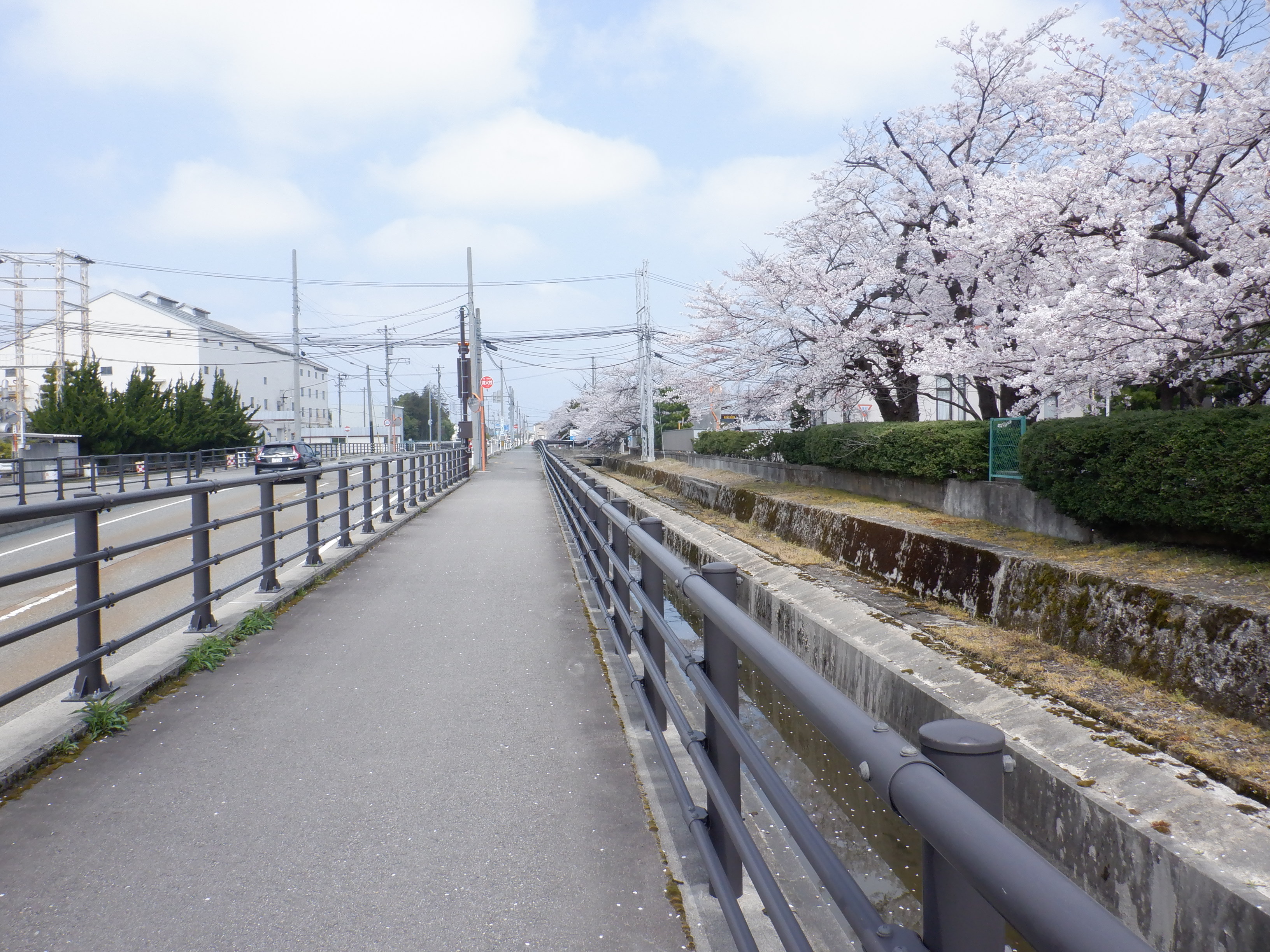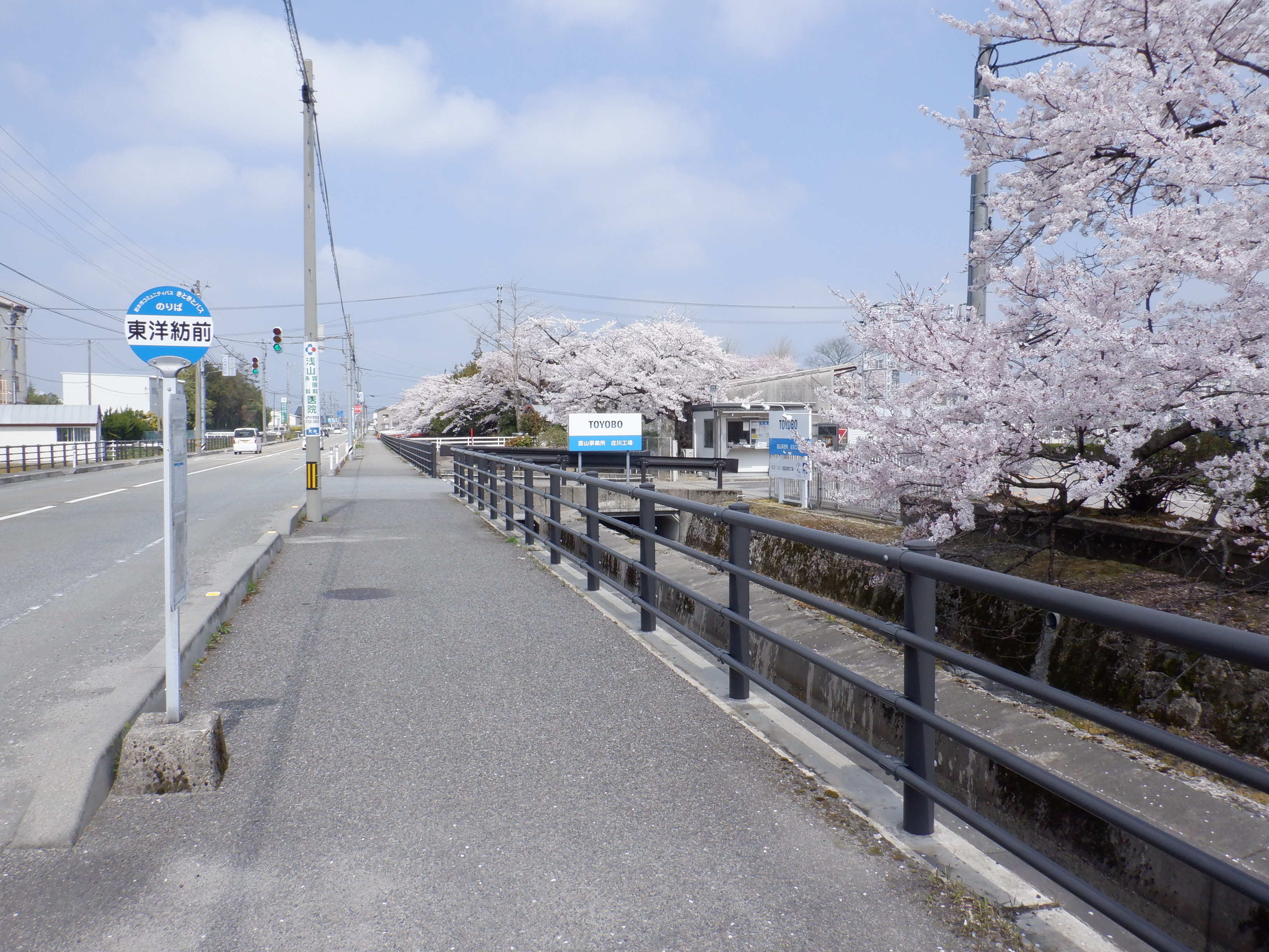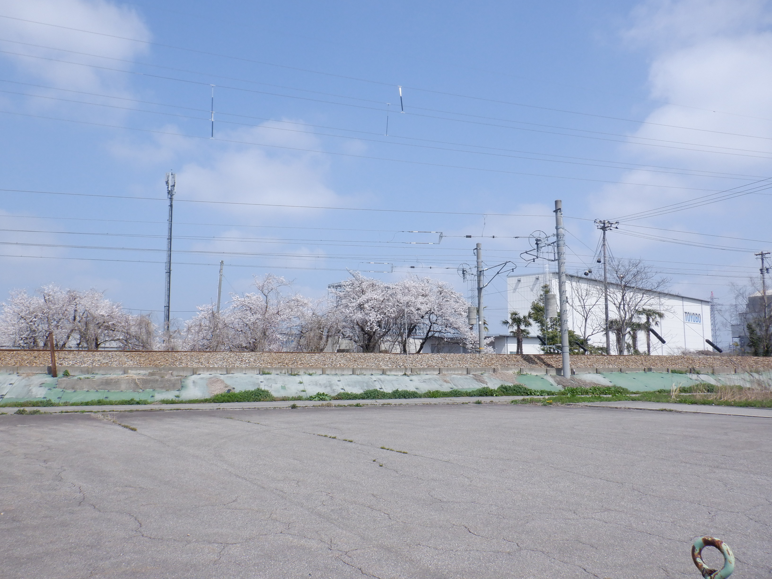 駅前の整備ができてからしばらく経ちました。桜の花の時期なので、東洋紡の工場のそばに見に行って来ました。