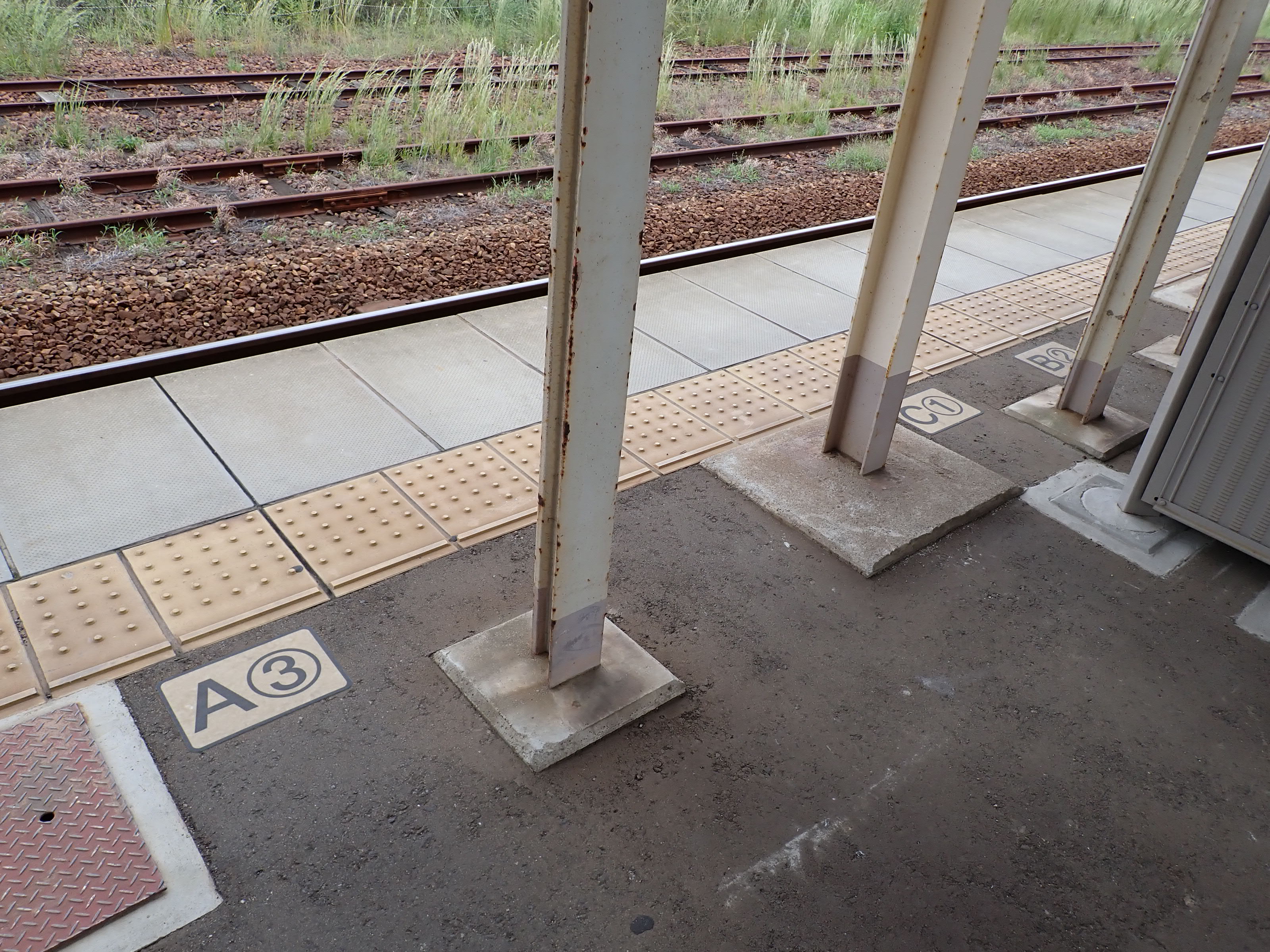 2・3番のりば高岡駅側の上屋と資産標。