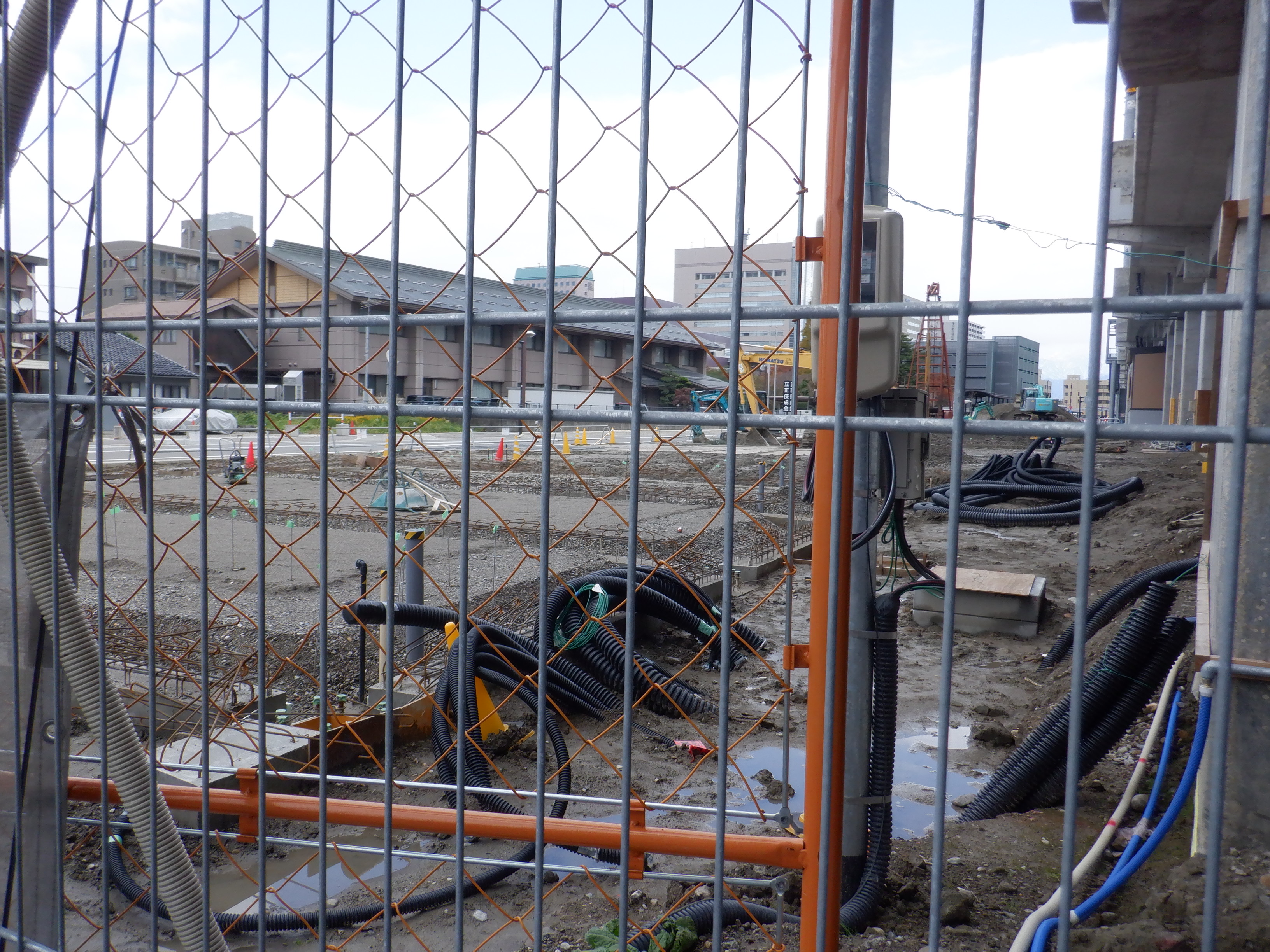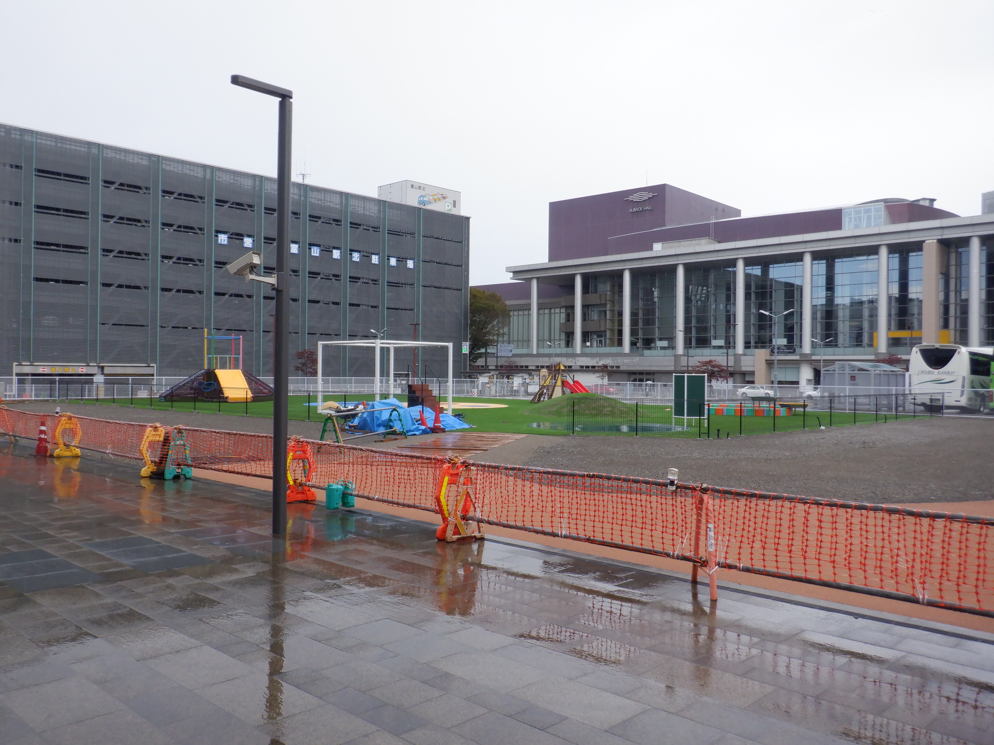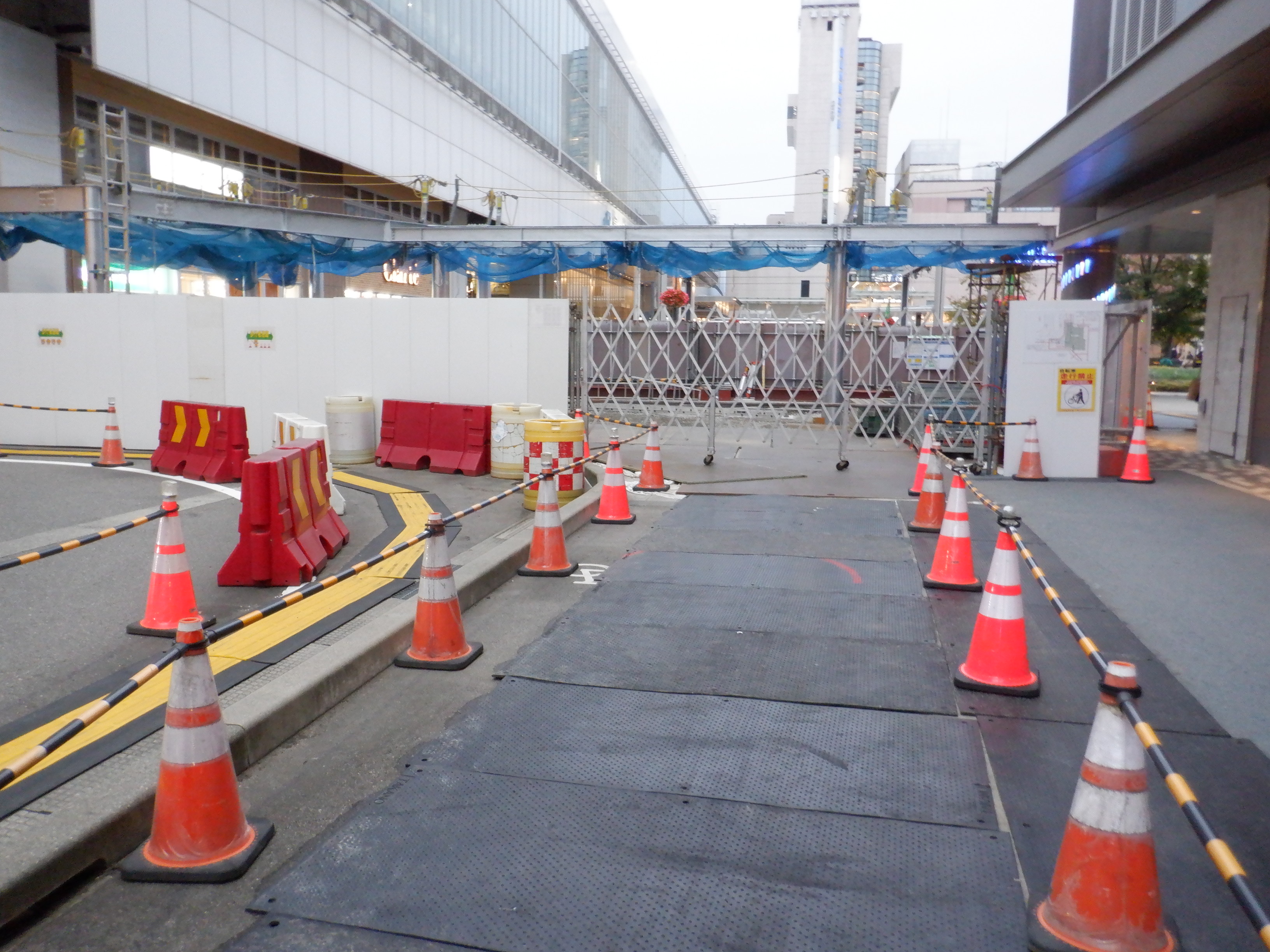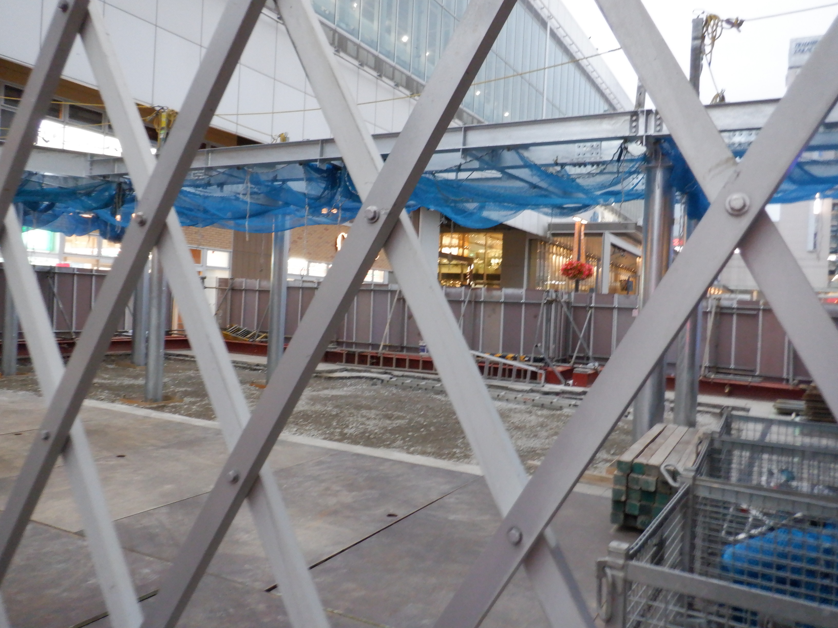 ごっこぱーくが正式にオープンした後です。また、東口とマルートとの間のシェルター建設中のところは建設が進んでいました。