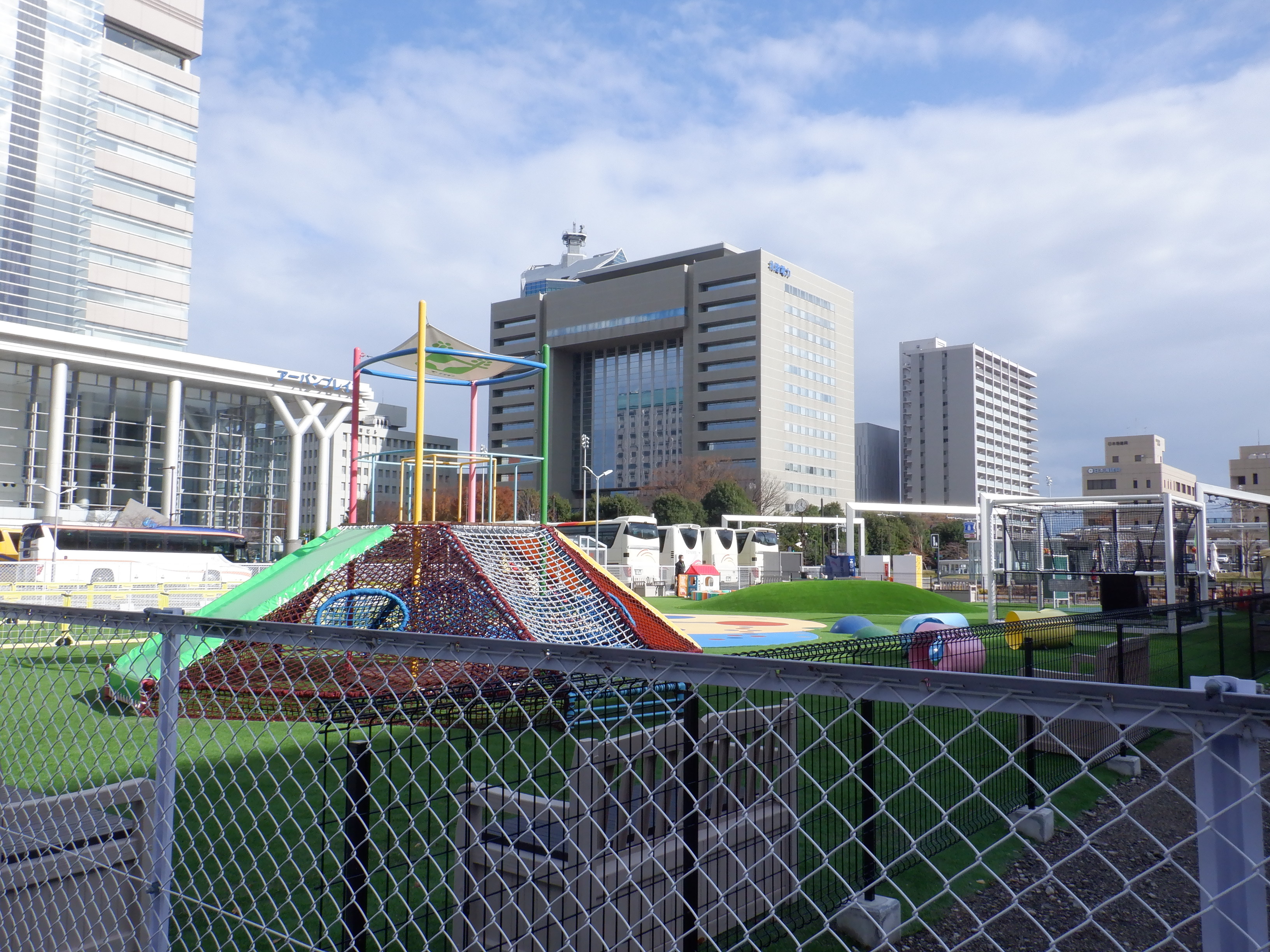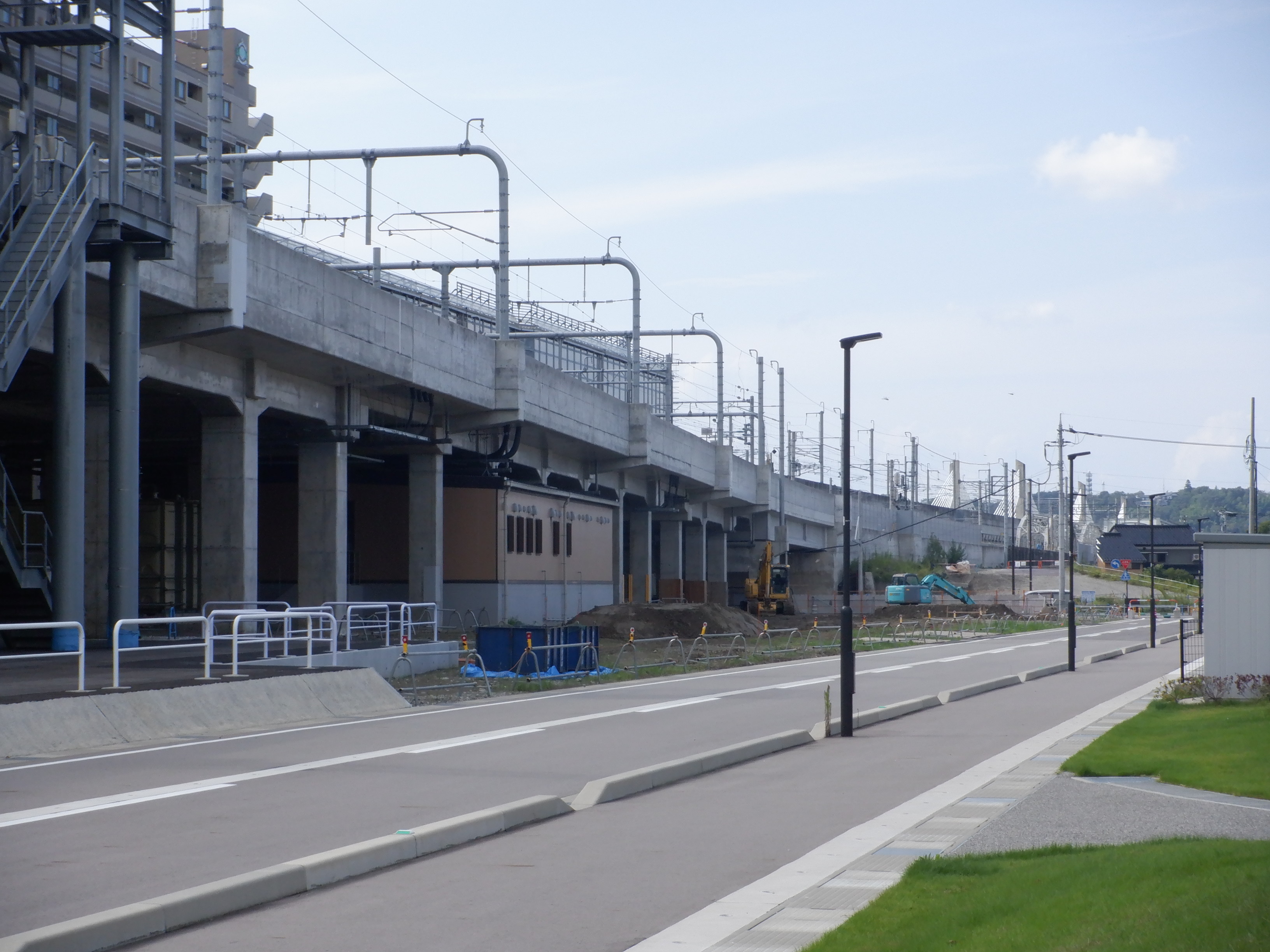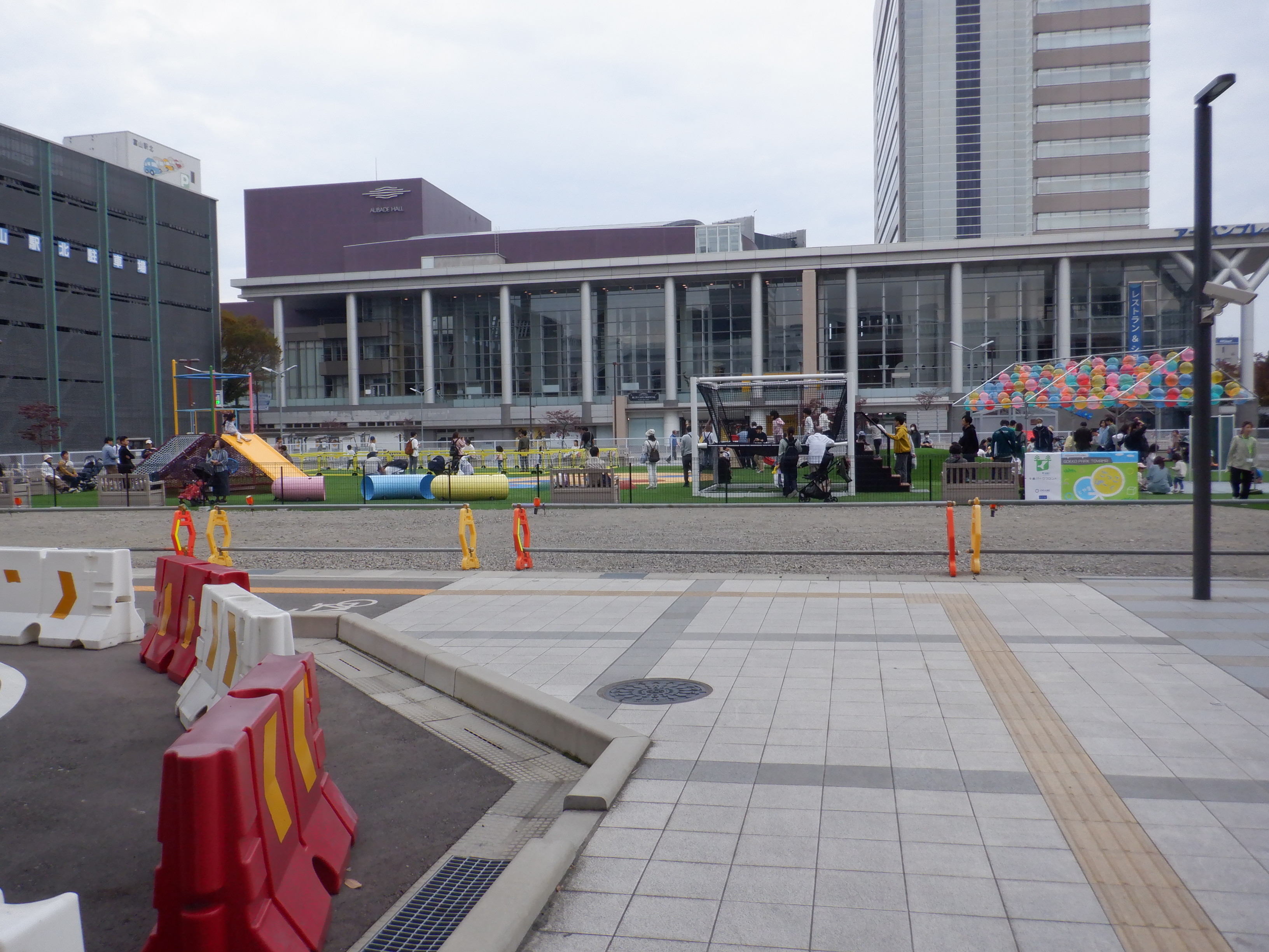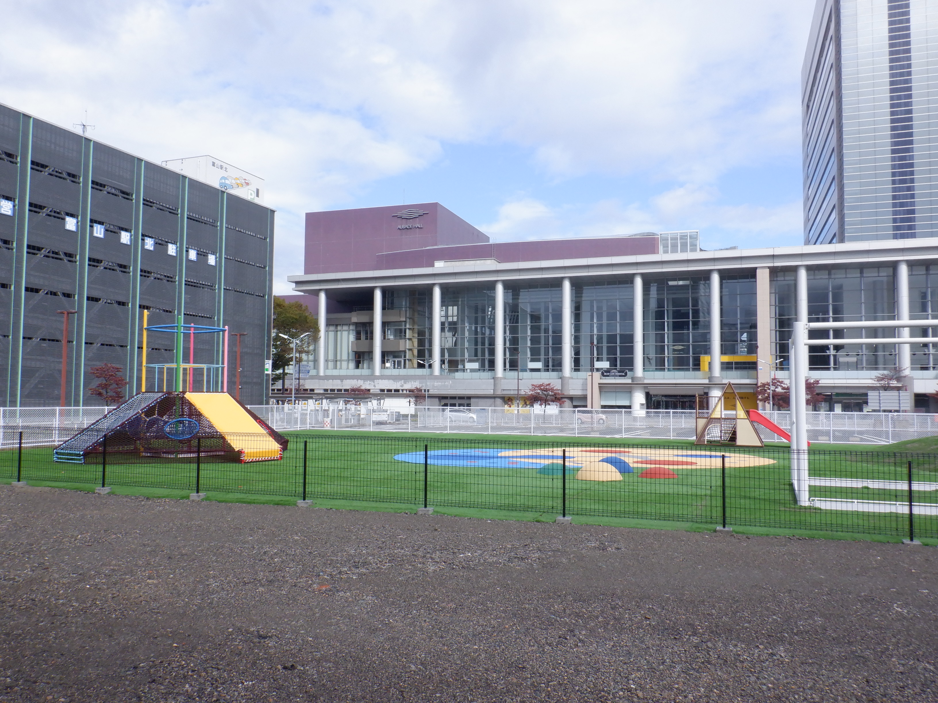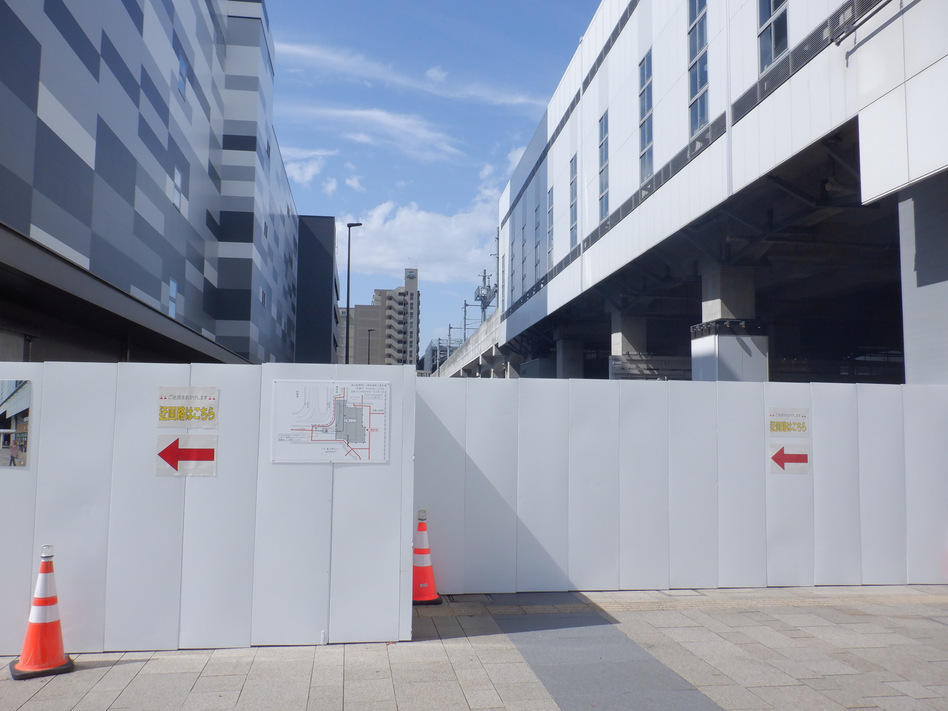ごっこぱーくが正式にオープンした後です。また、東口とマルートとの間のシェルター建設中のところは建設が進んでいました。