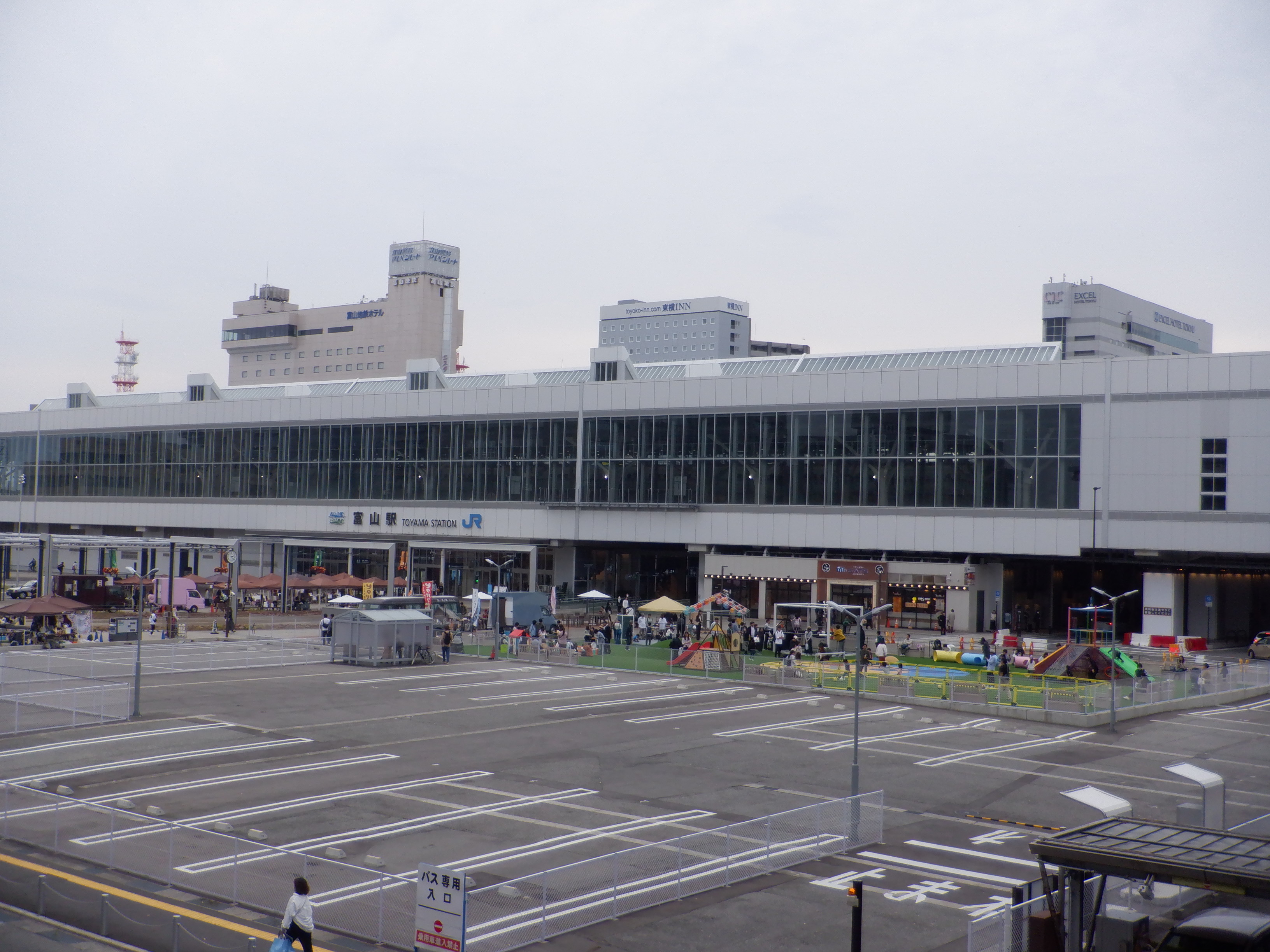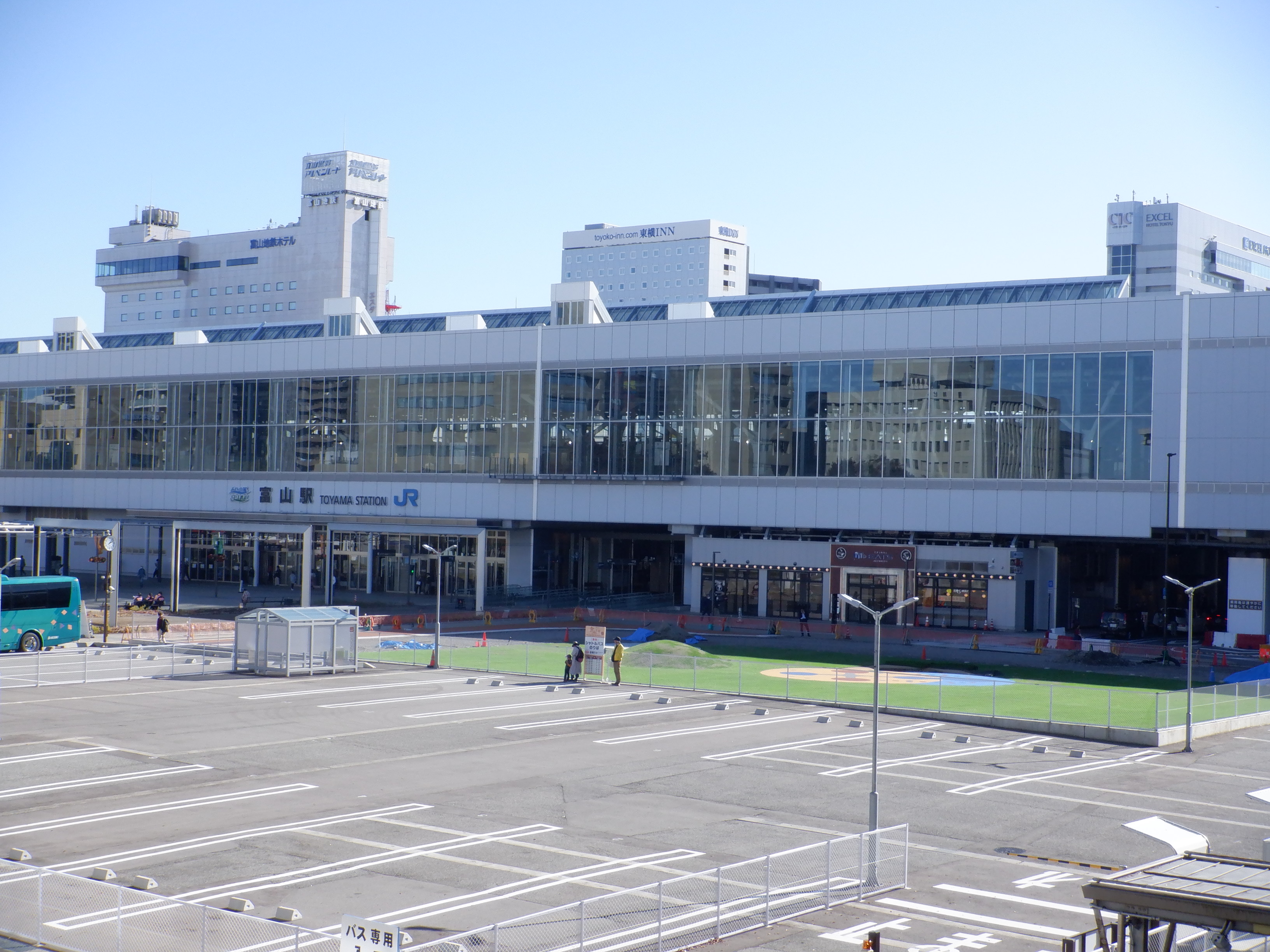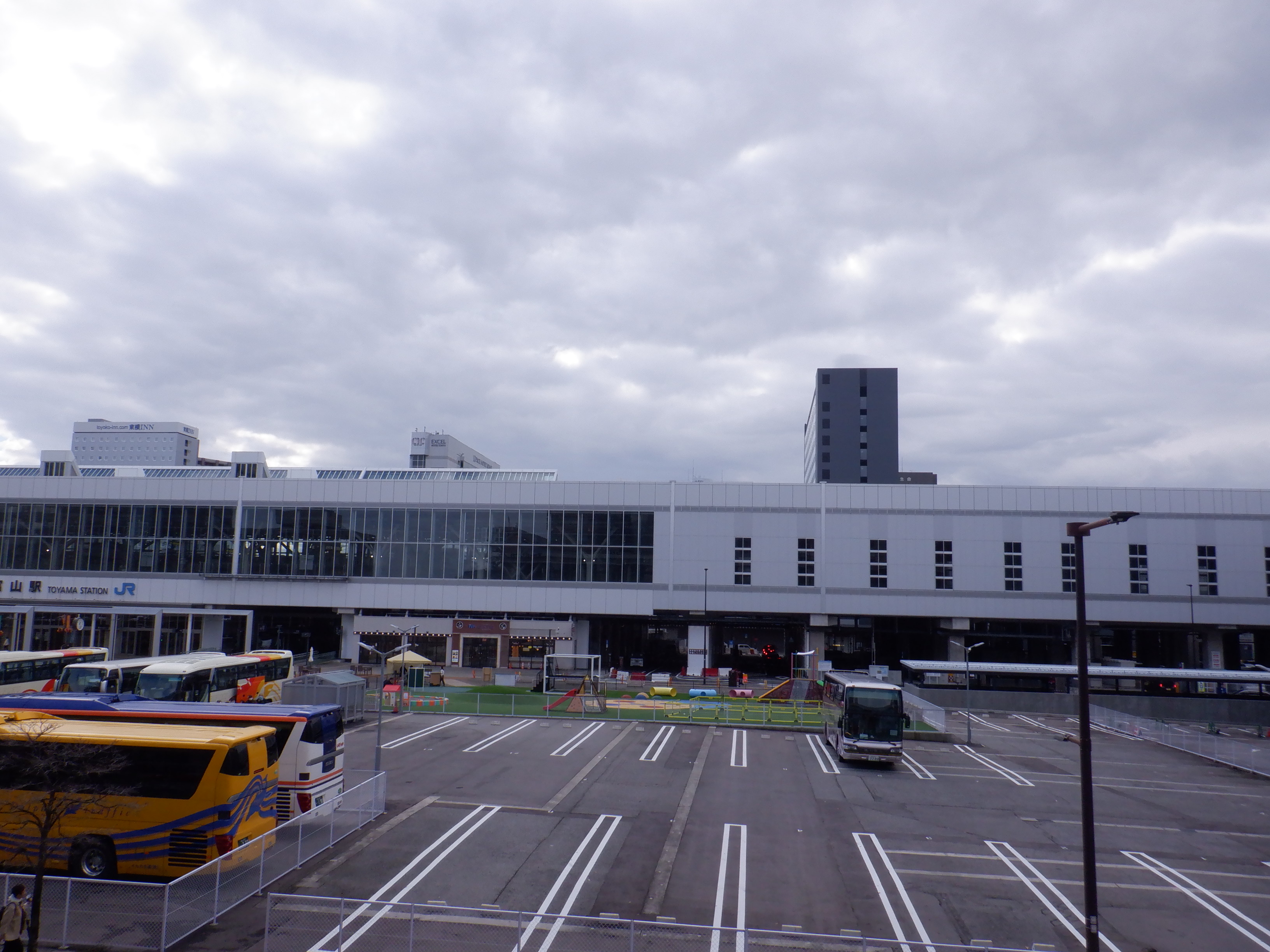 北口の用途保留の土地は、暫定的に「ごっこぱーく」が作られることになり、建設が始まりました。今回岐阜方面からの帰りで「ひだ」で富山駅に入っており、夕方の時間帯となりました。