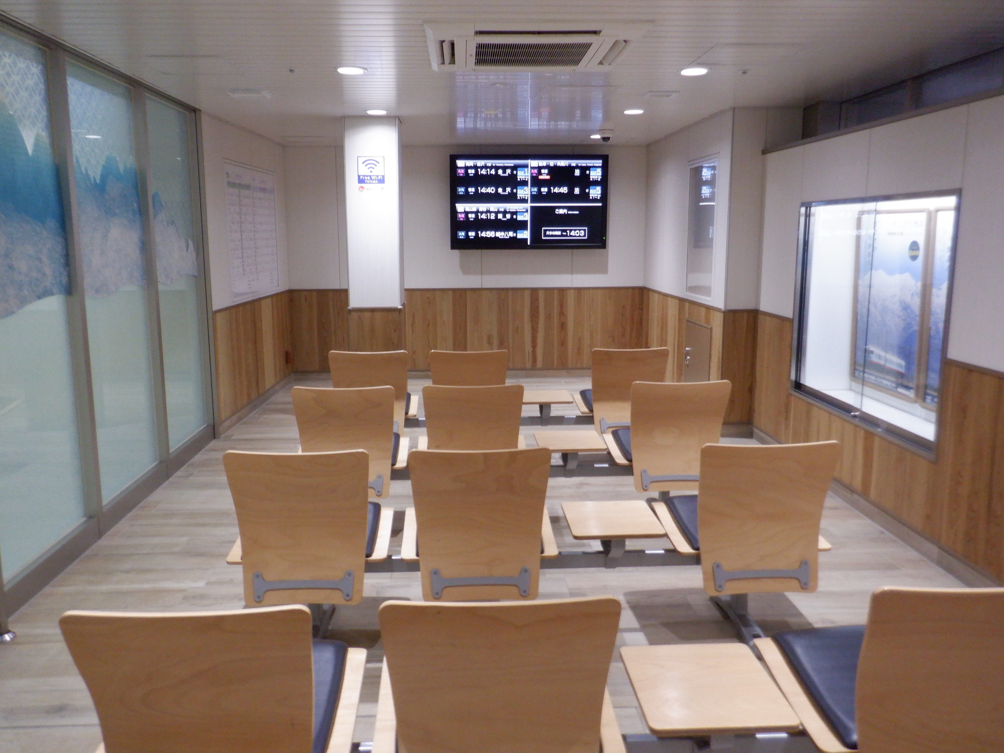 中二階4・5番のりば側のモニターは時間の経過で左側が緑色になってそして急に戻る、ということが繰り返される症状になりました。