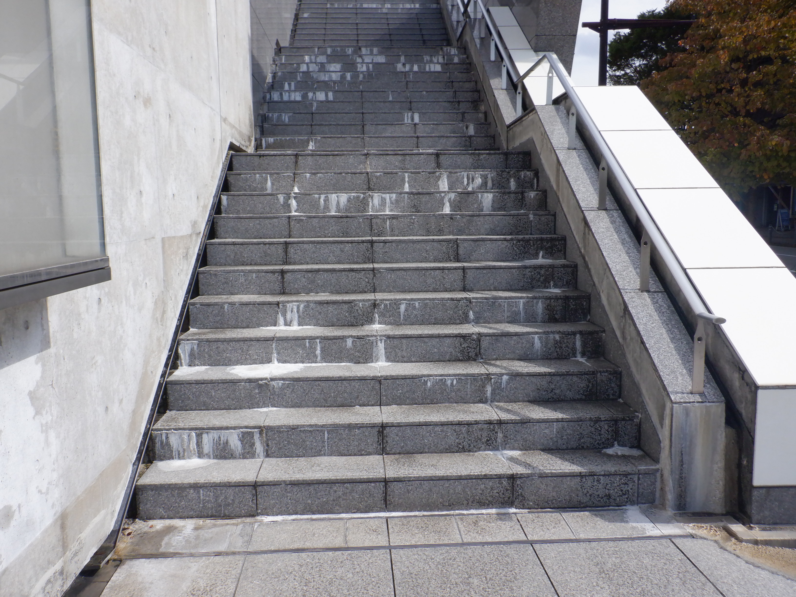 オーバードホールの建物の横への階段は工事中のため上がって行くことができません。