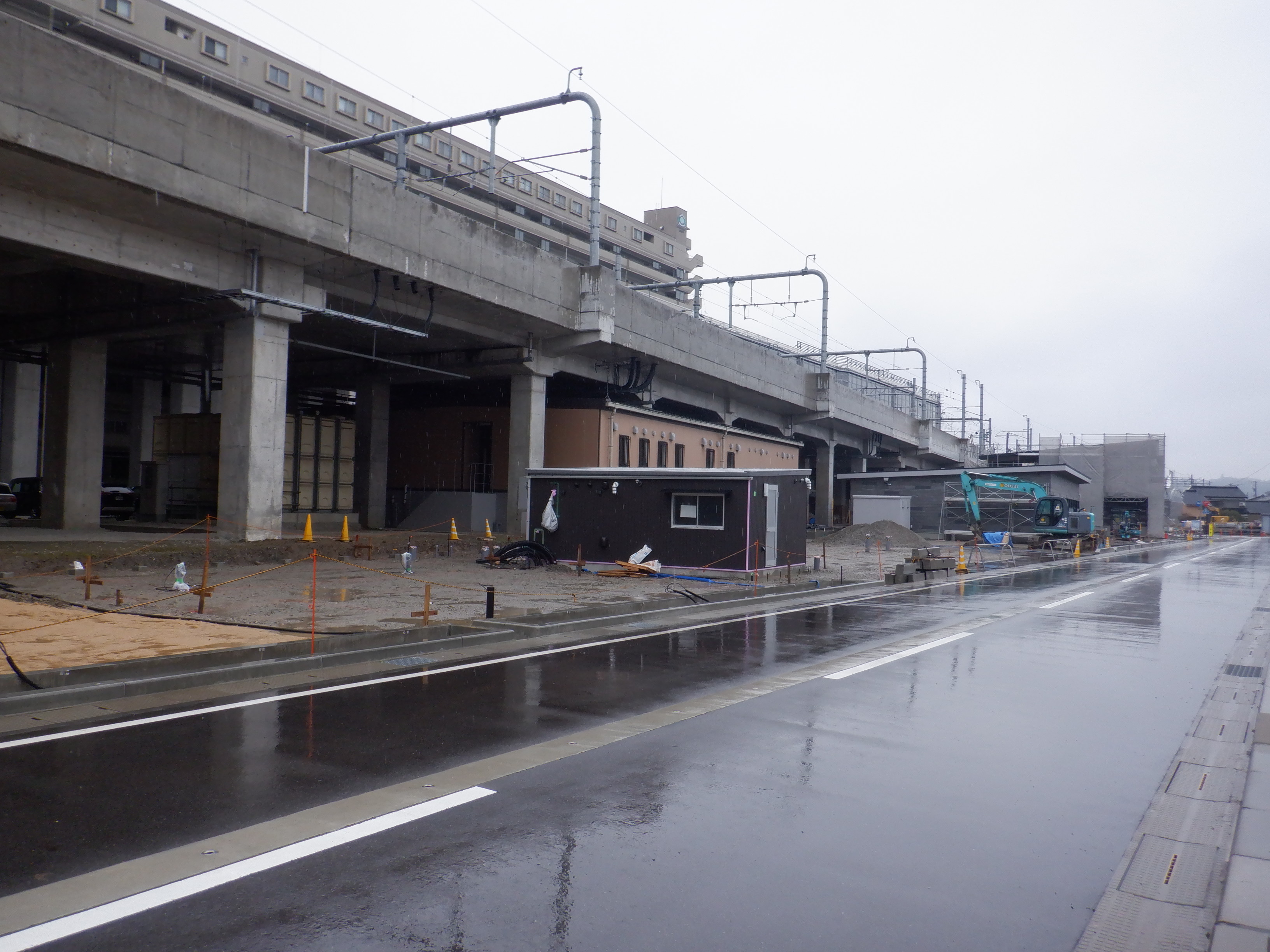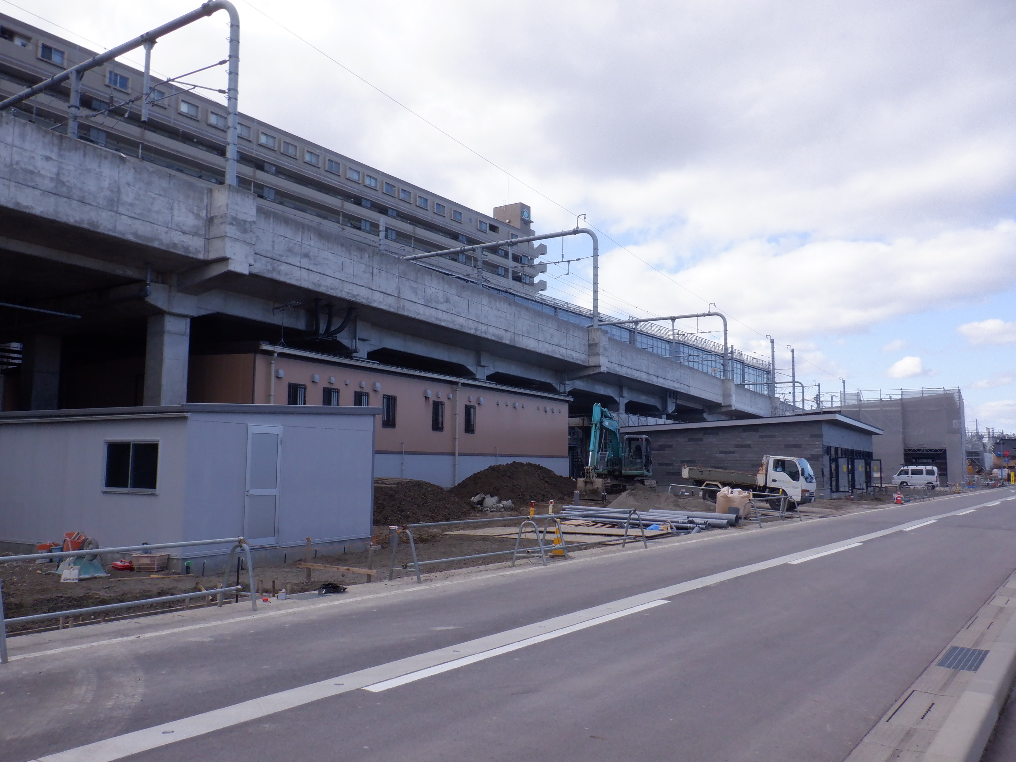 仮設線路跡地に商業施設(牛島パークウエスト)の建設が進んでいて、4月26日にオープンしました。その後はしばらくこの駅の動きが少なくなりますが、その後動くところを少し撮っています。