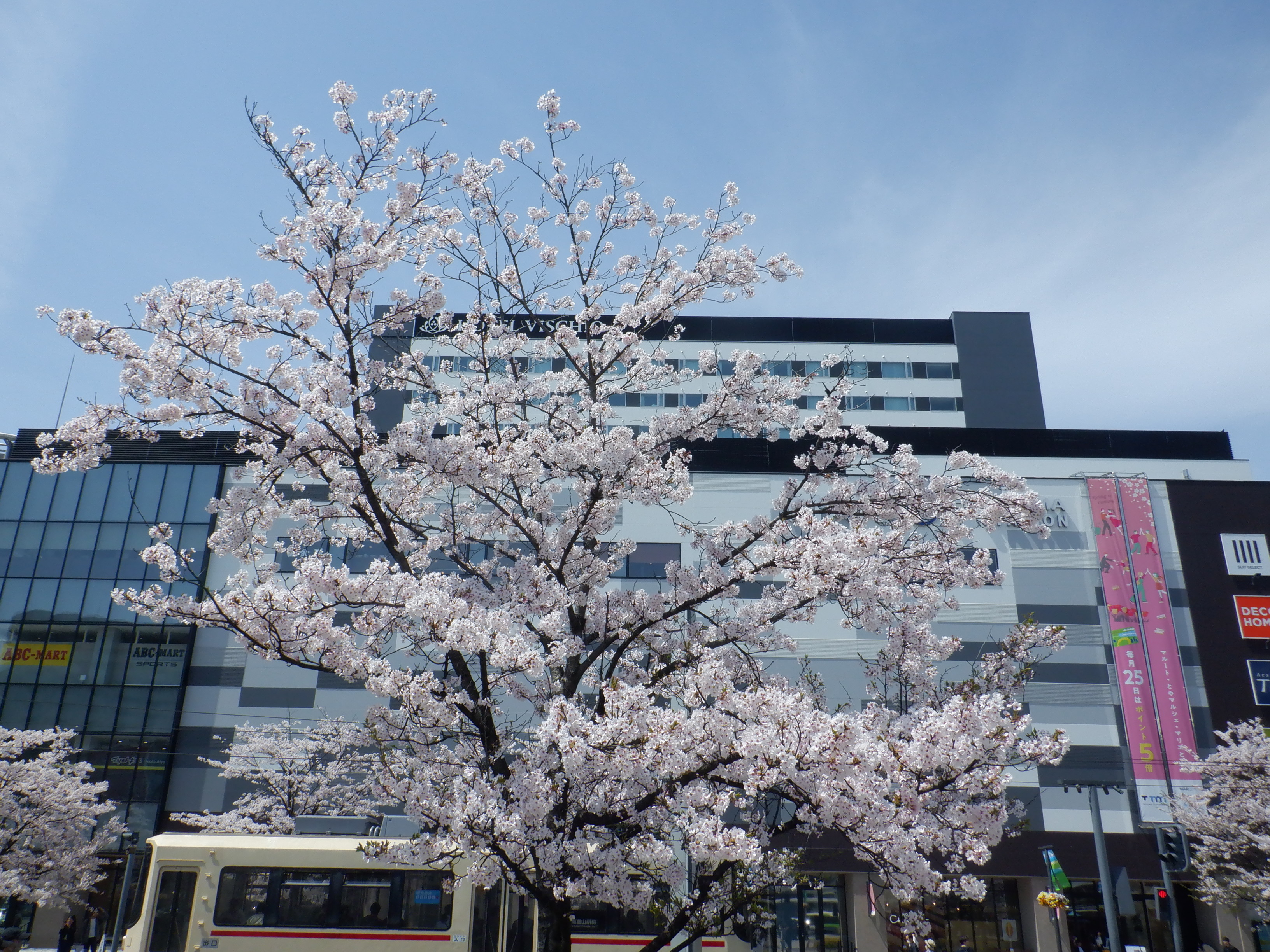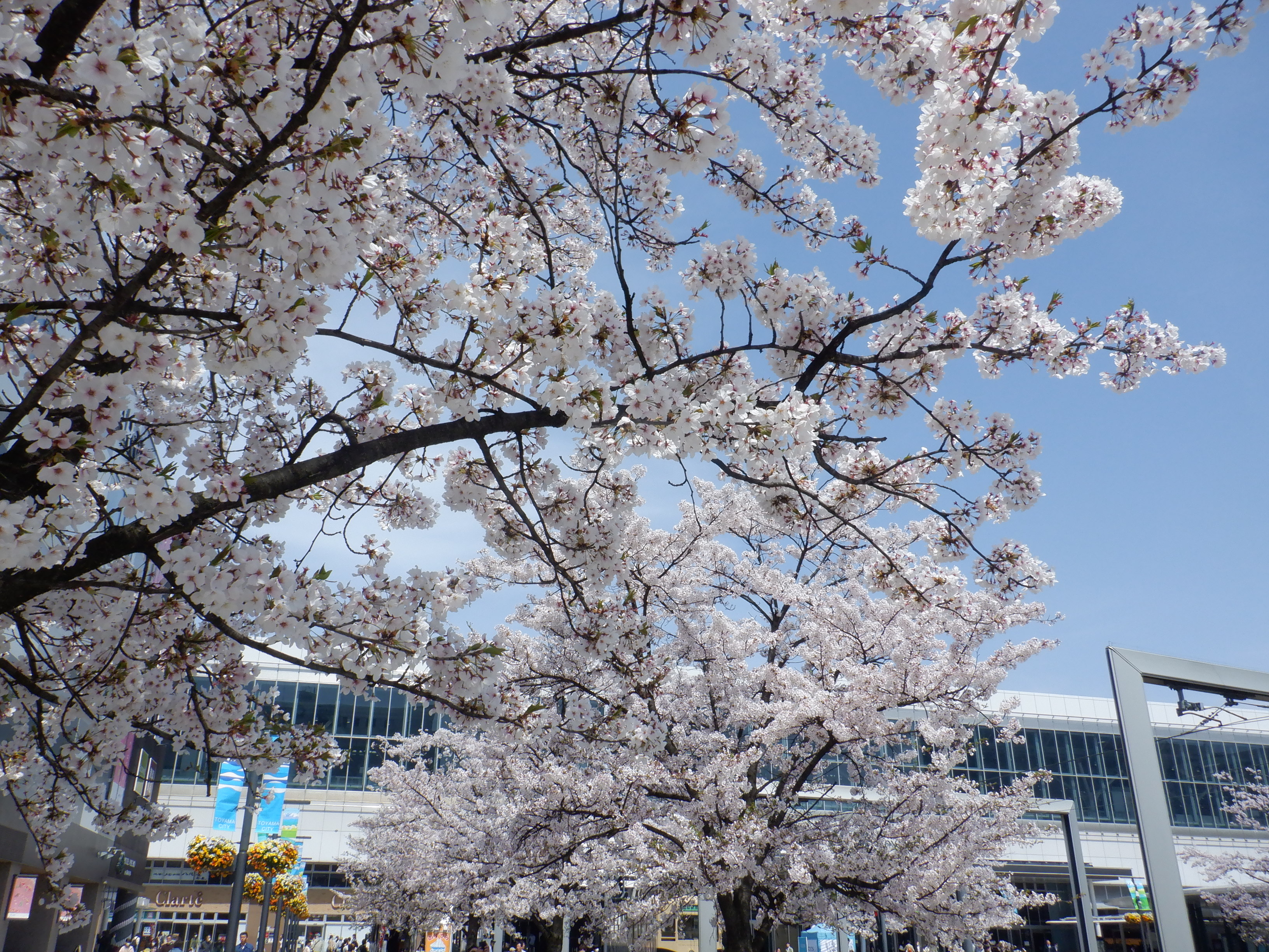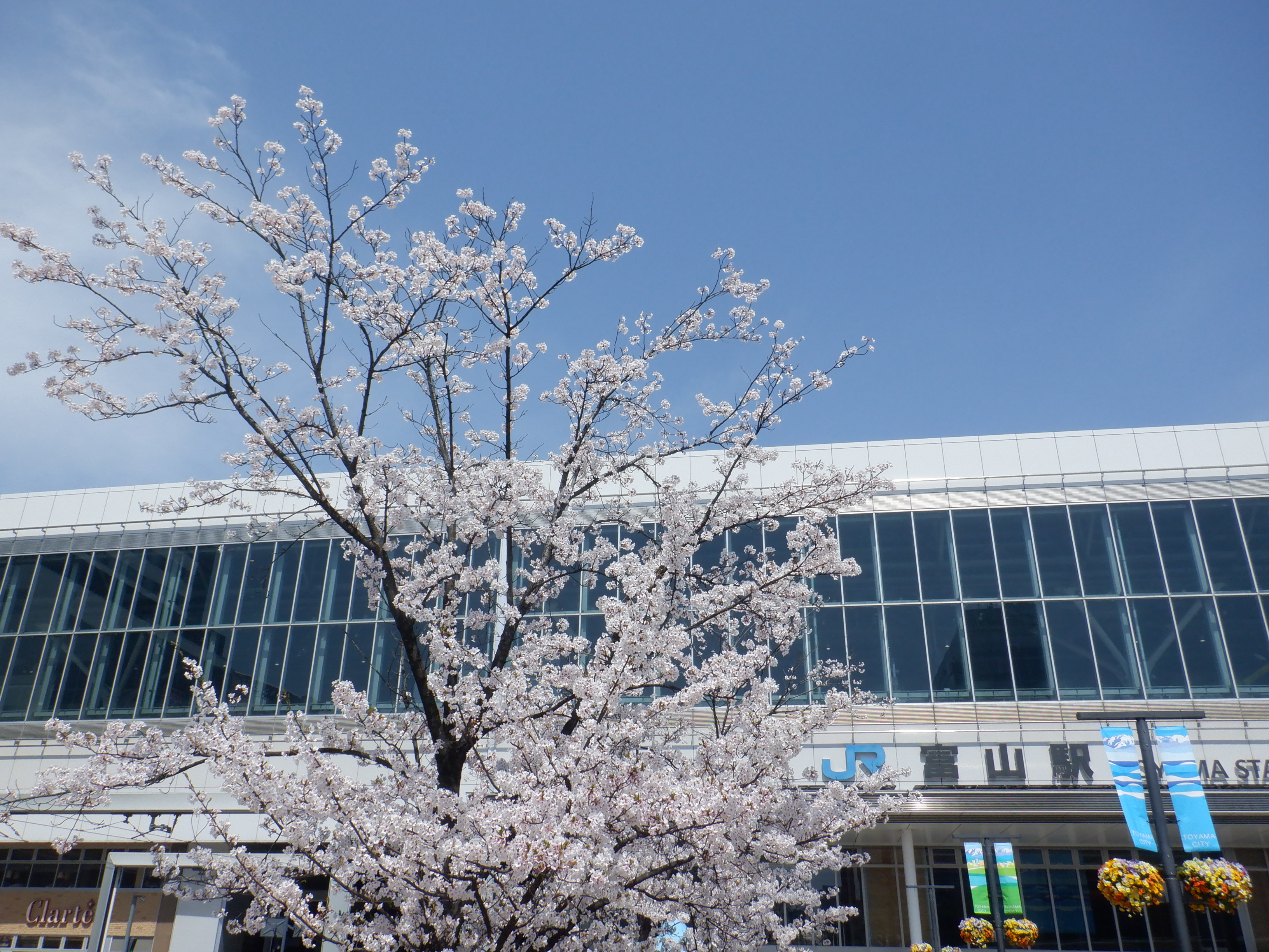 桜が咲いた南口の様子。
