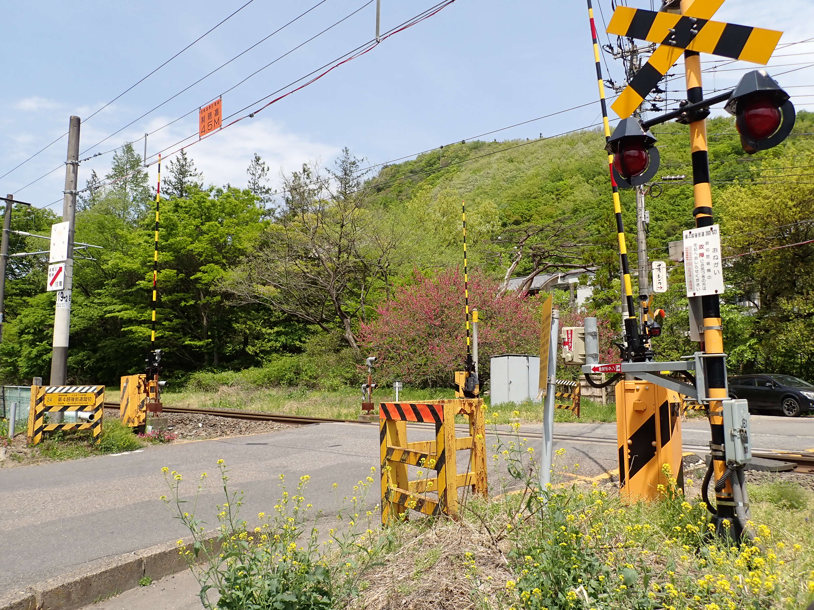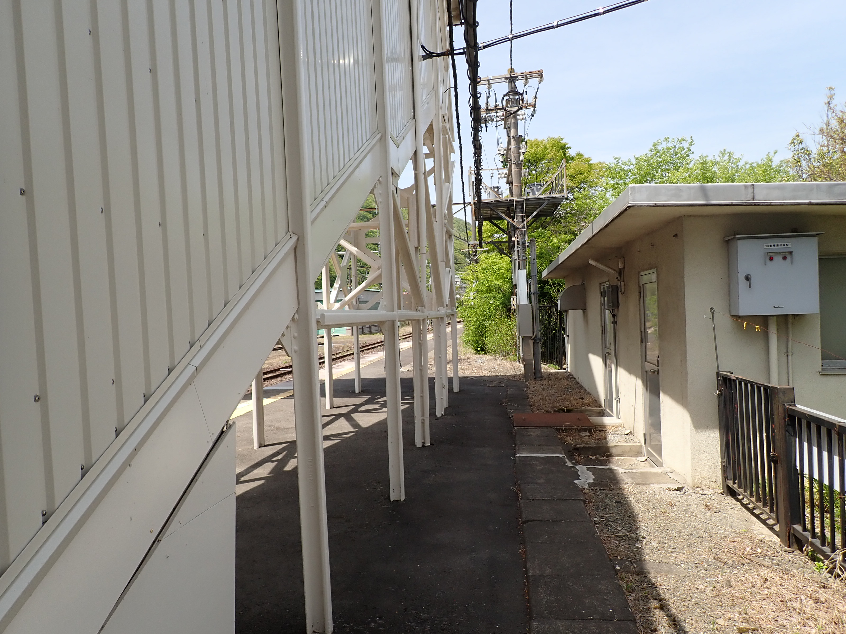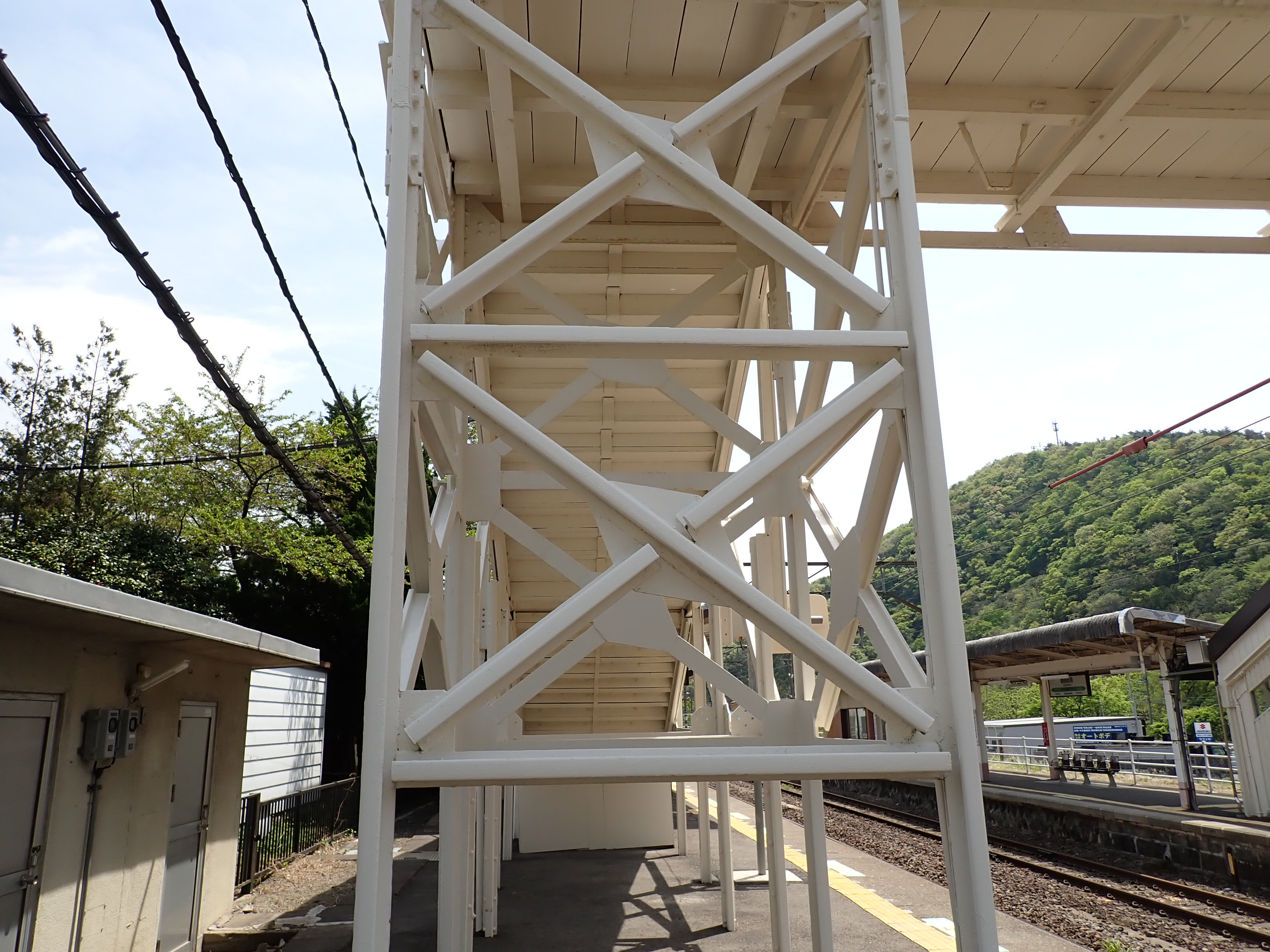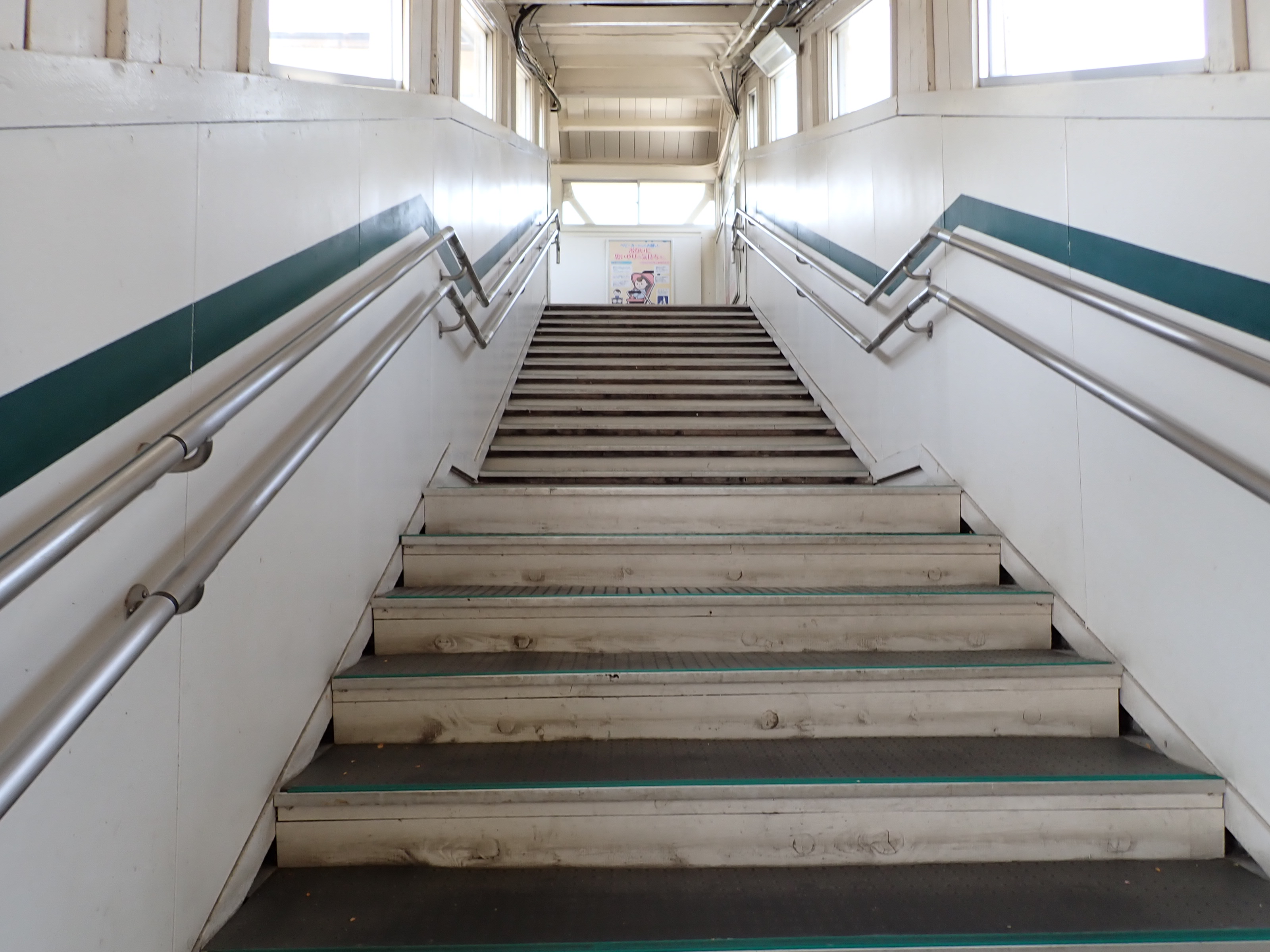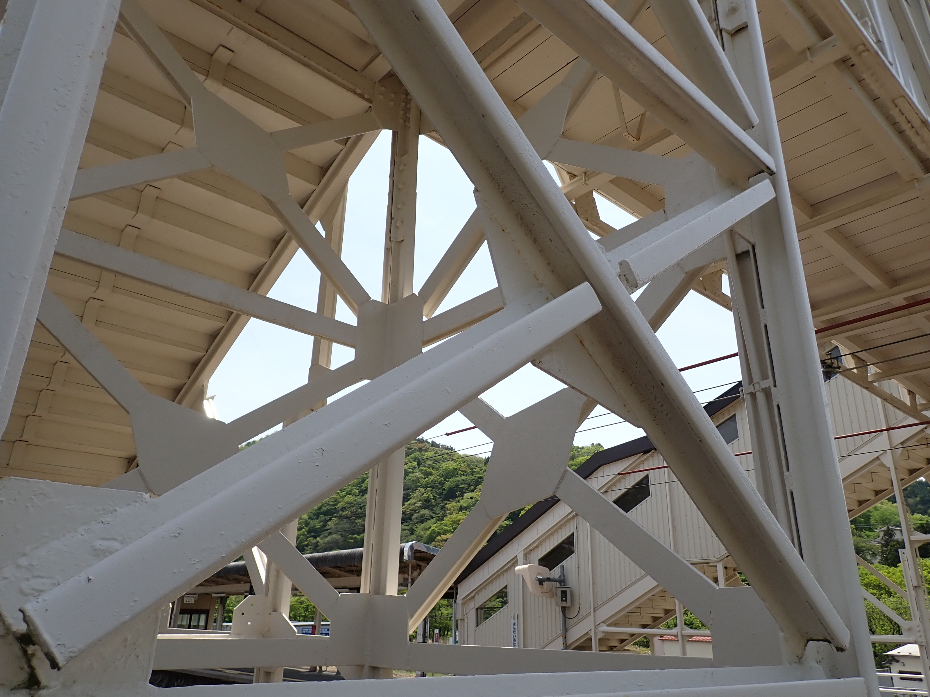 会津若松駅から来ると、この駅近くから開けてきて、この駅を過ぎると急激に広がってくる印象です。駅のそばに磐梯熱海温泉の温泉街が少しありますが、さらに中山宿駅側に進んだ五百川沿いに温泉街が広がっています。跨線橋が印象的な駅です。