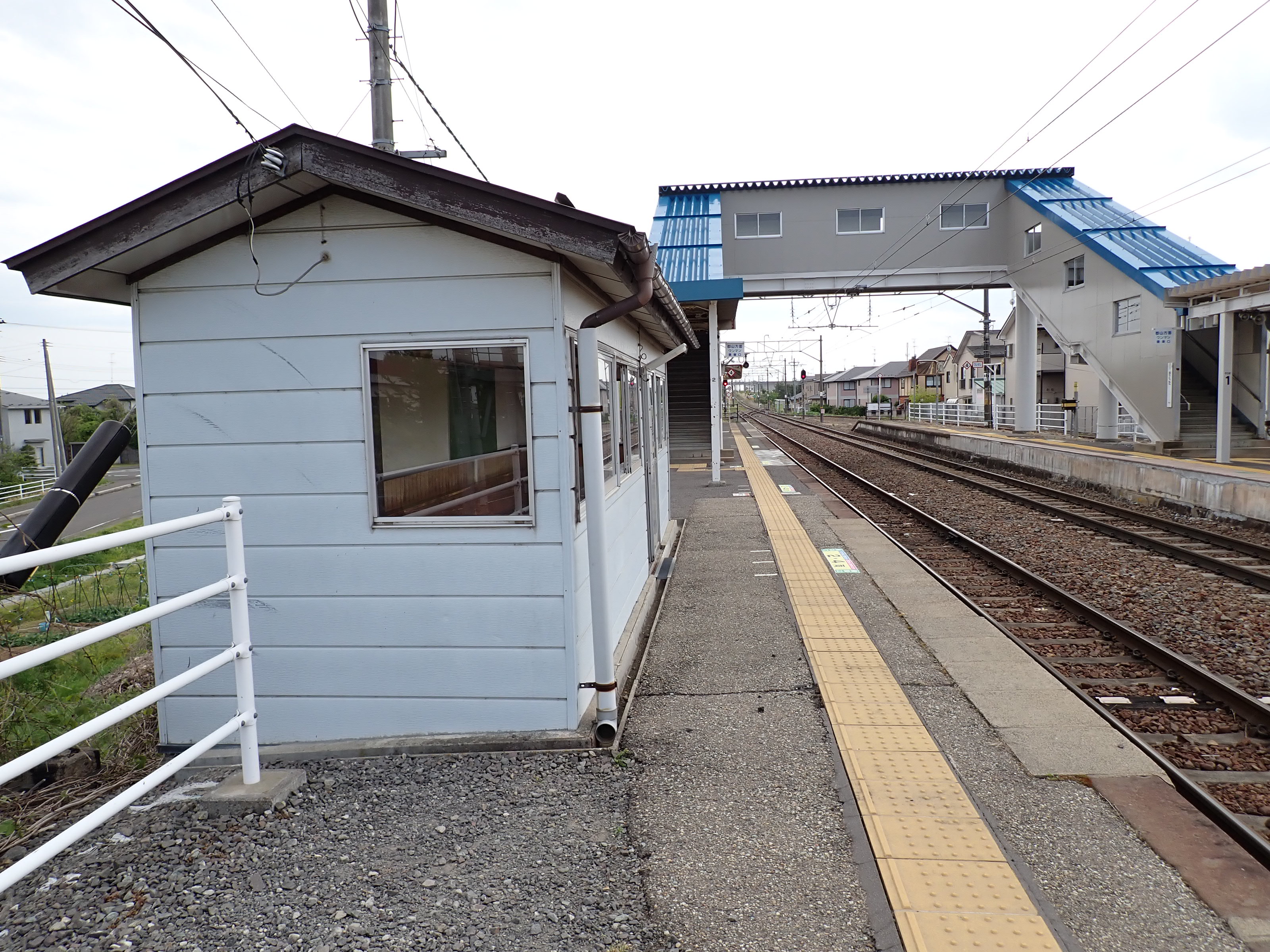 1番線から見た2番線の待合室と跨線橋。