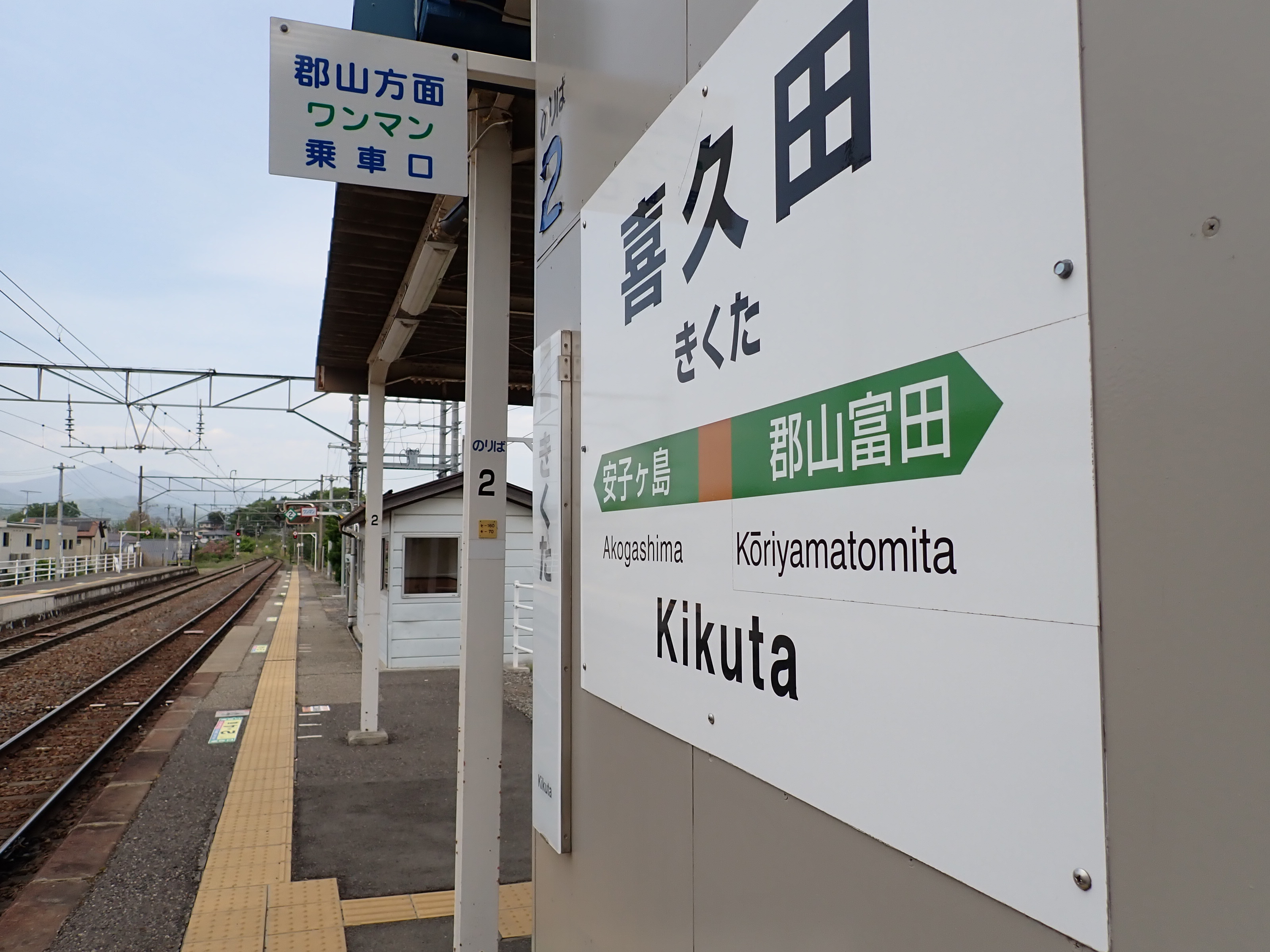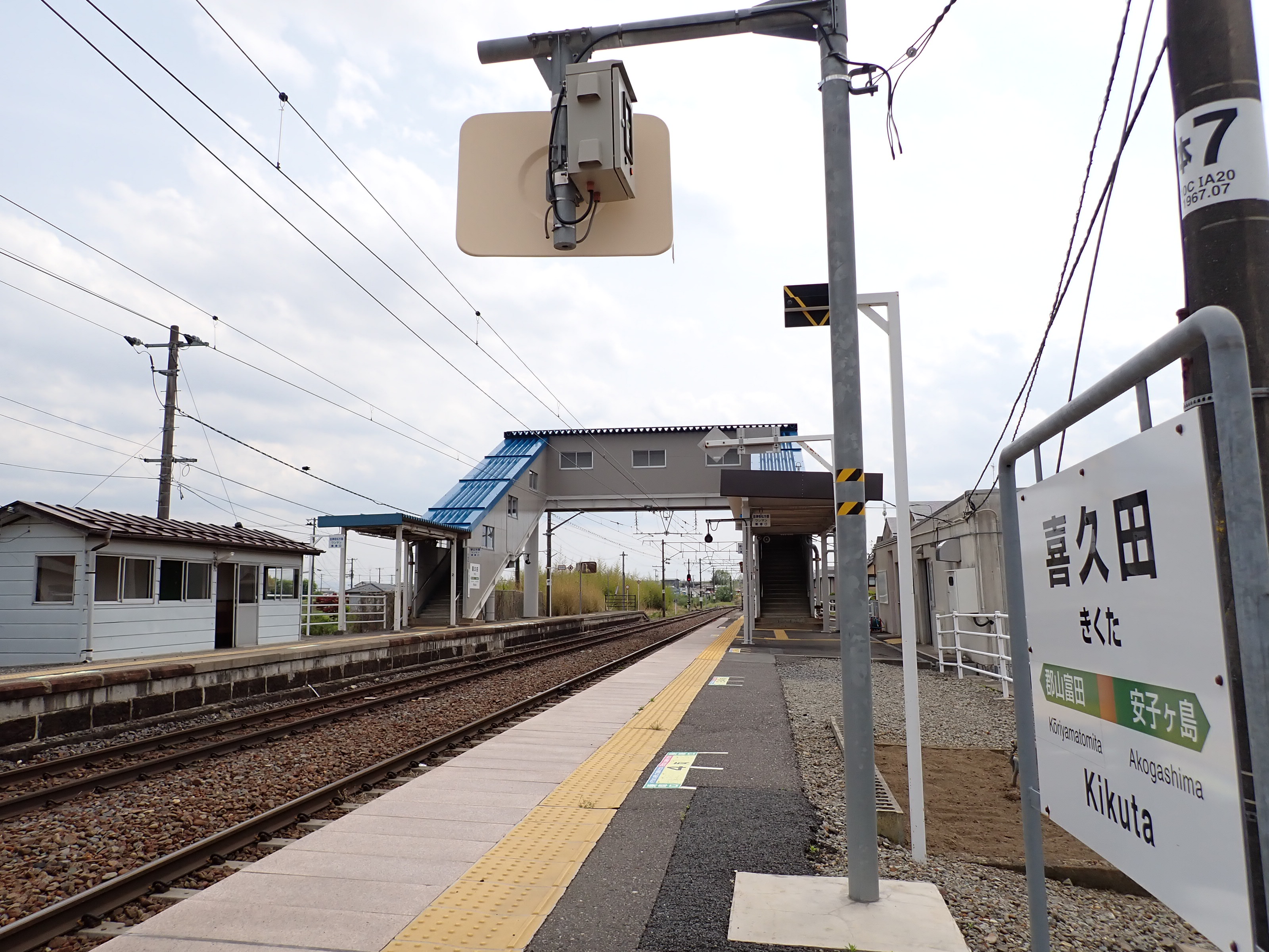 駅舎の前を通り跨線橋から郡山富田駅側へ。