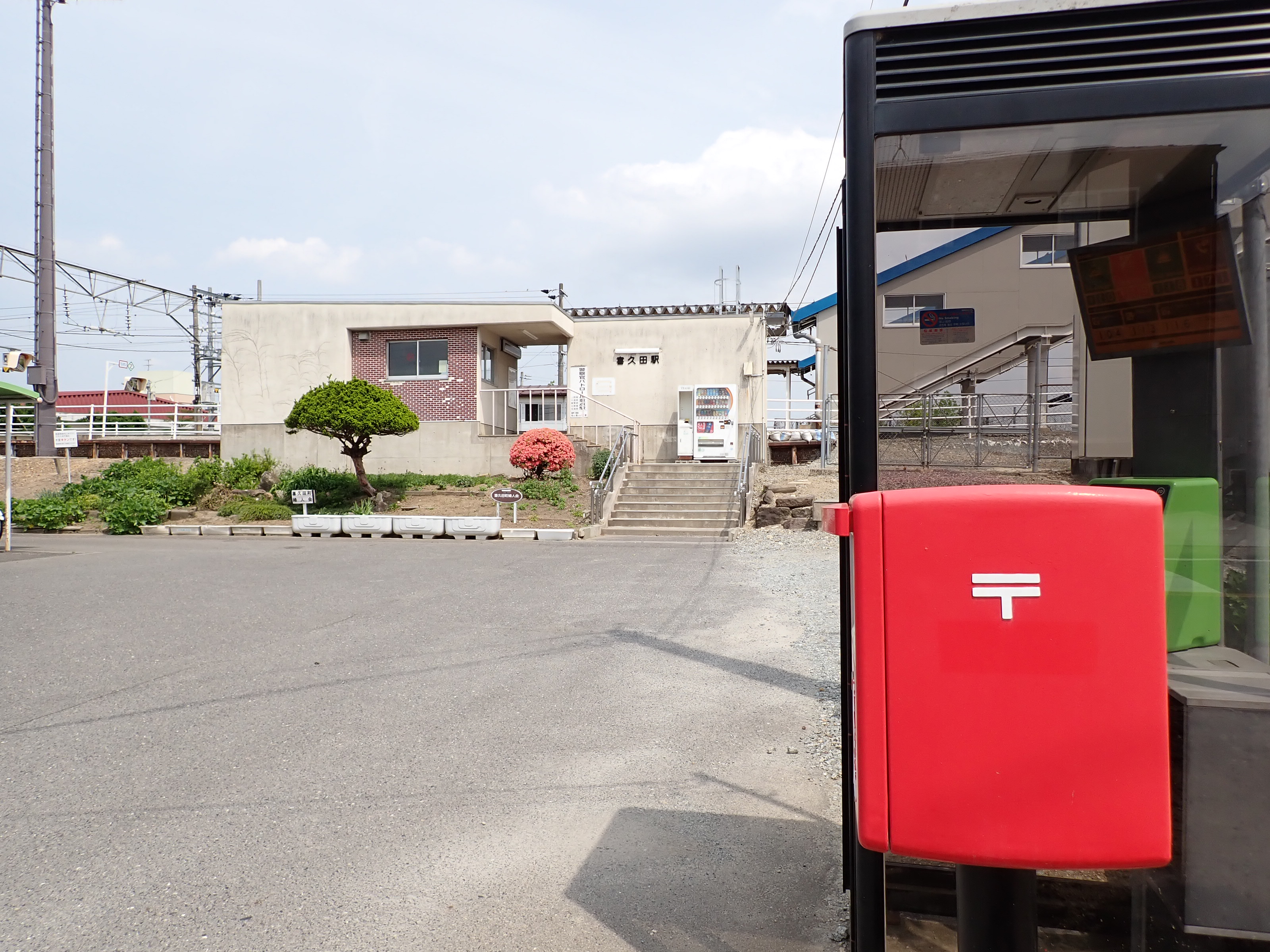 ポストと駅舎。
