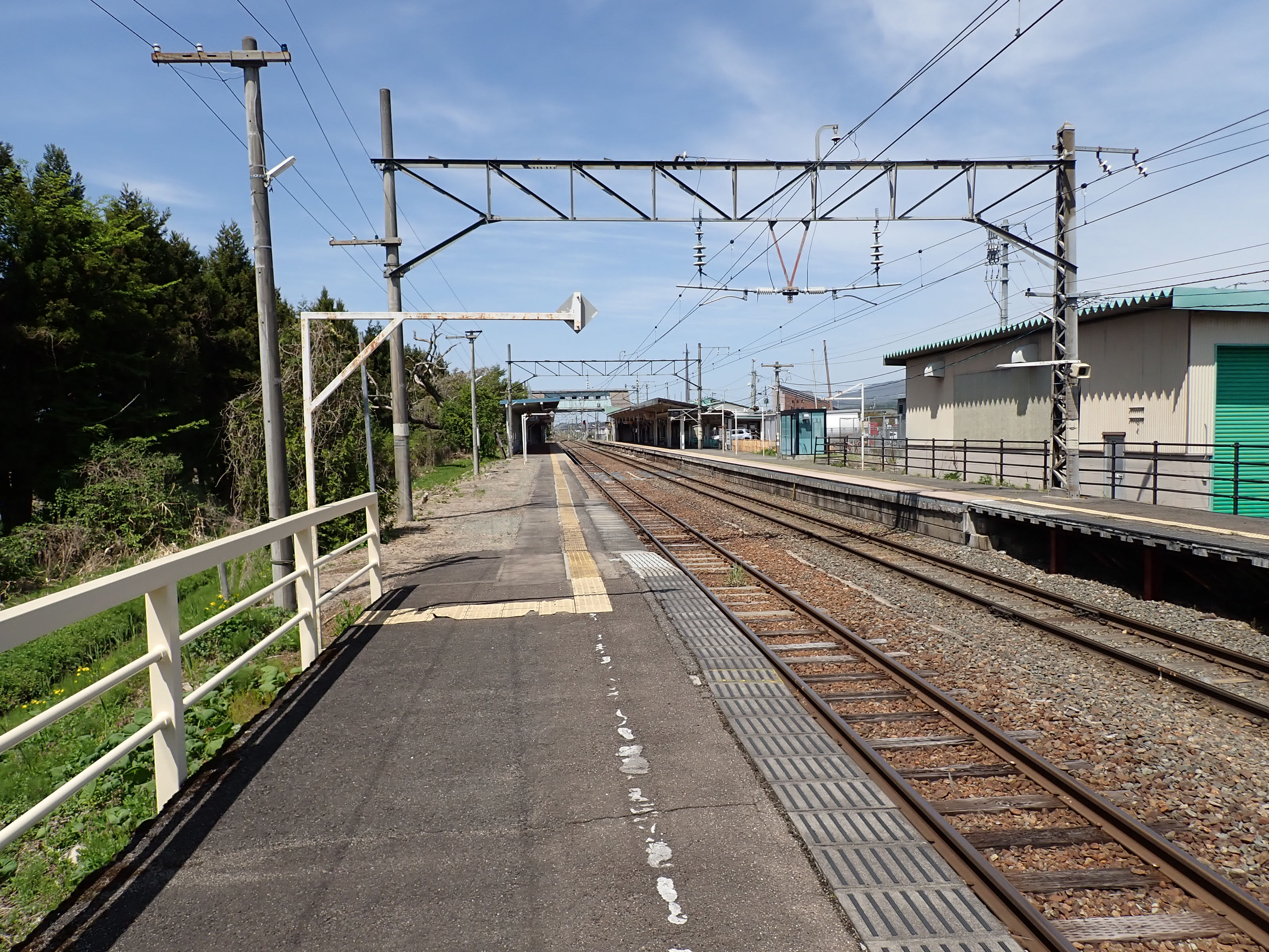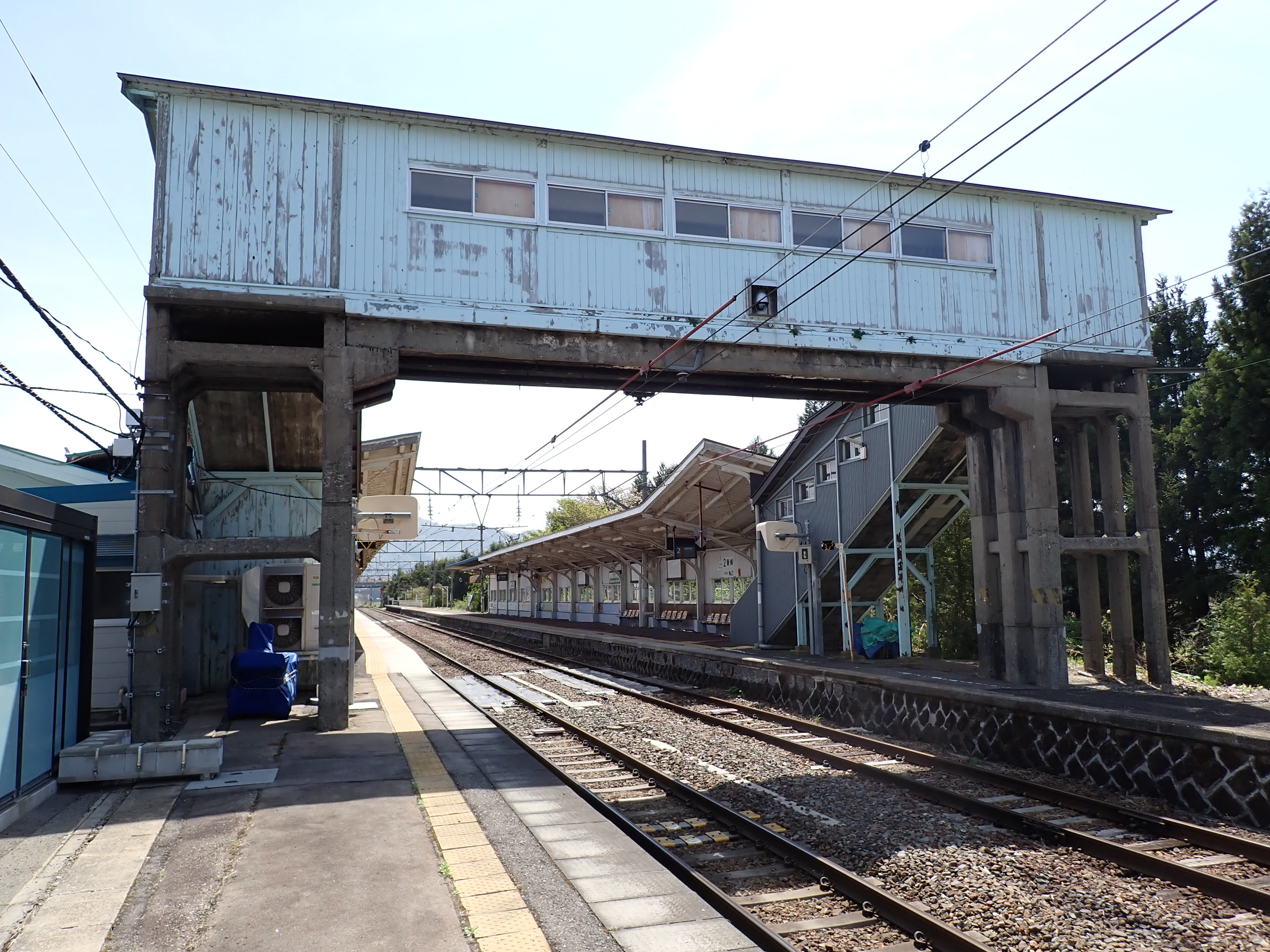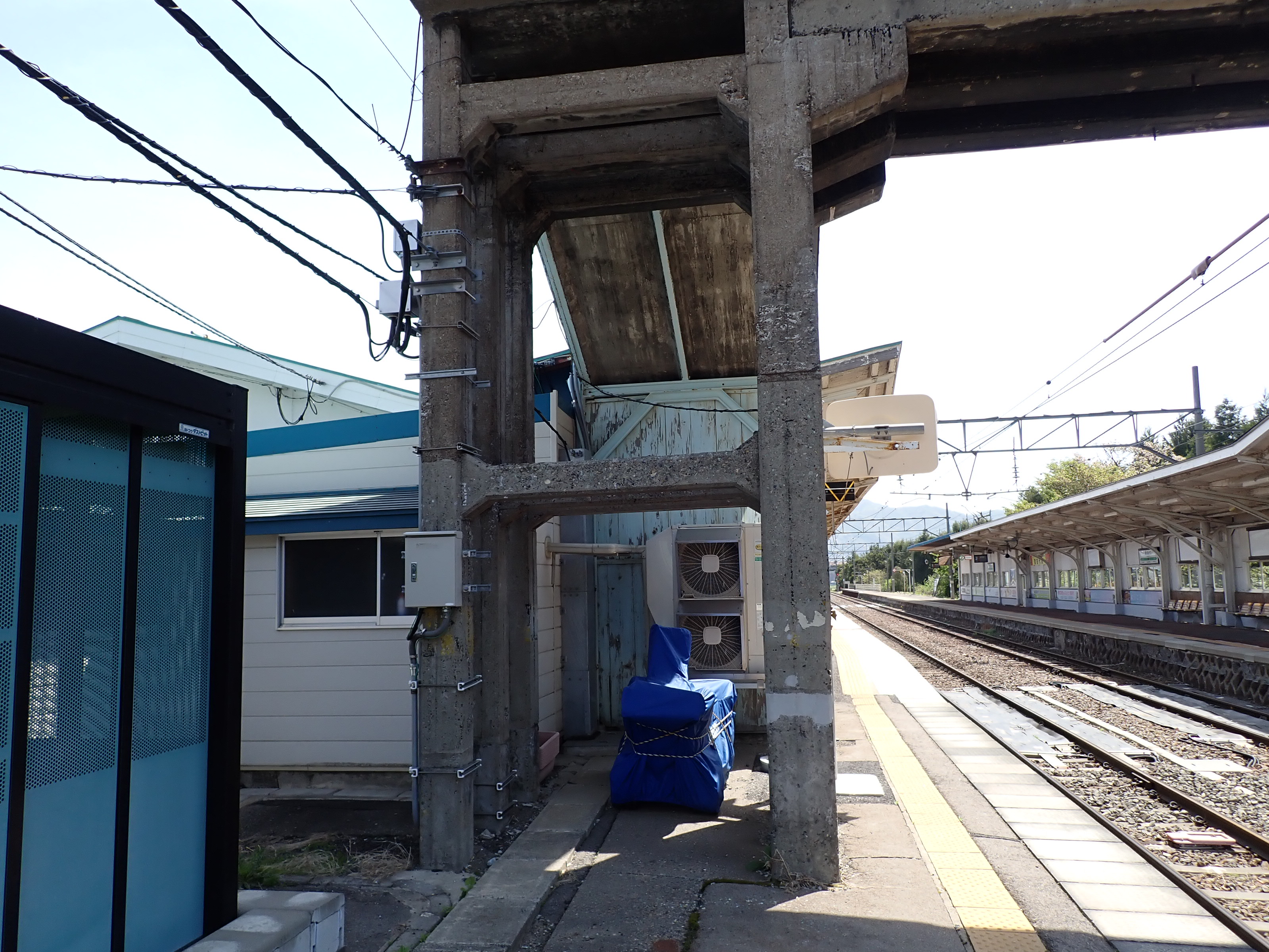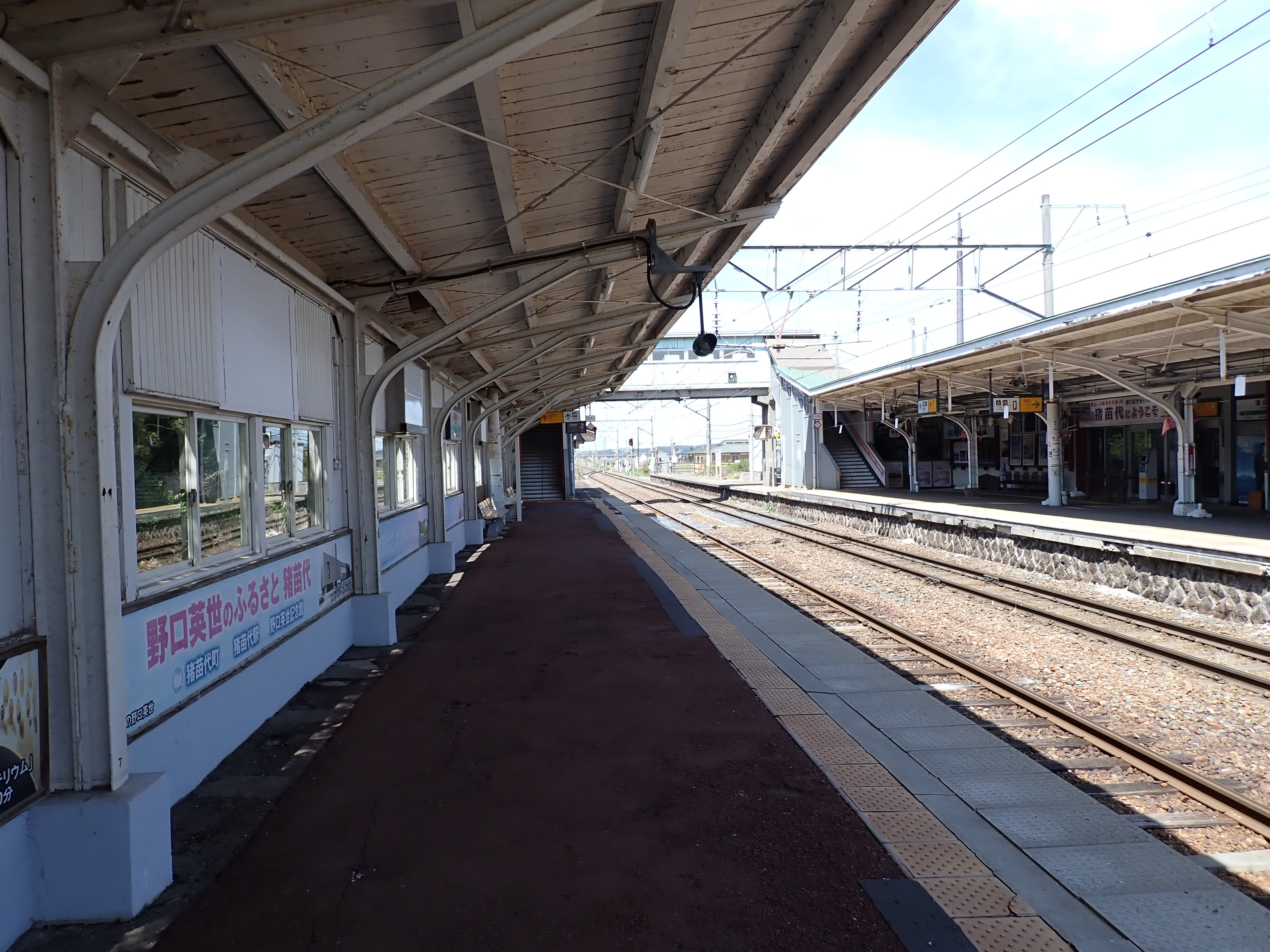 猪苗代湖に近く、また、磐梯朝日国立公園・磐梯高原・磐梯山などへの多くの観光客で賑わう駅です。駅前は観光地らしい佇まいです。両ホームとも上屋と跨線橋の接続部分に特徴がある造りです。