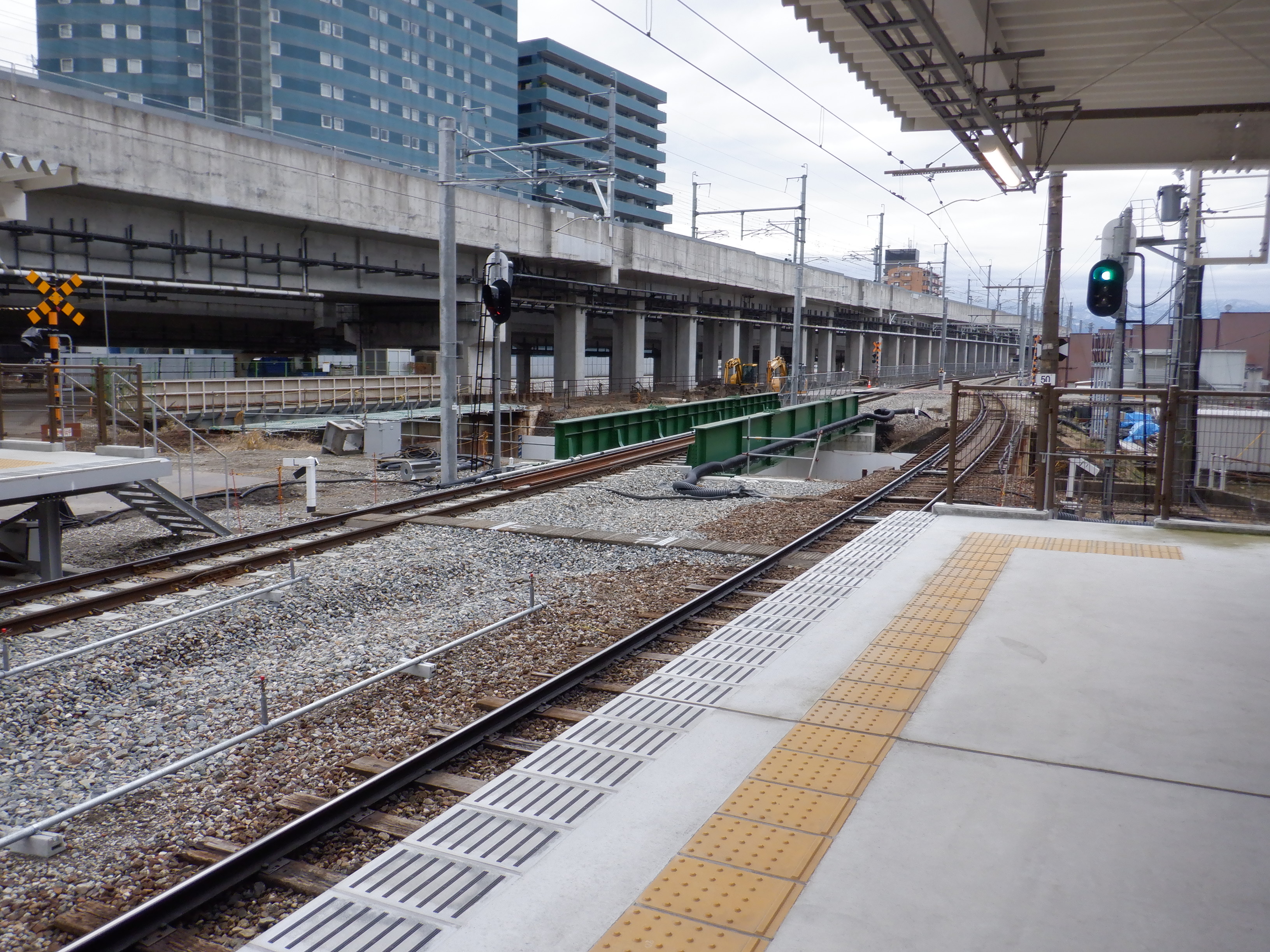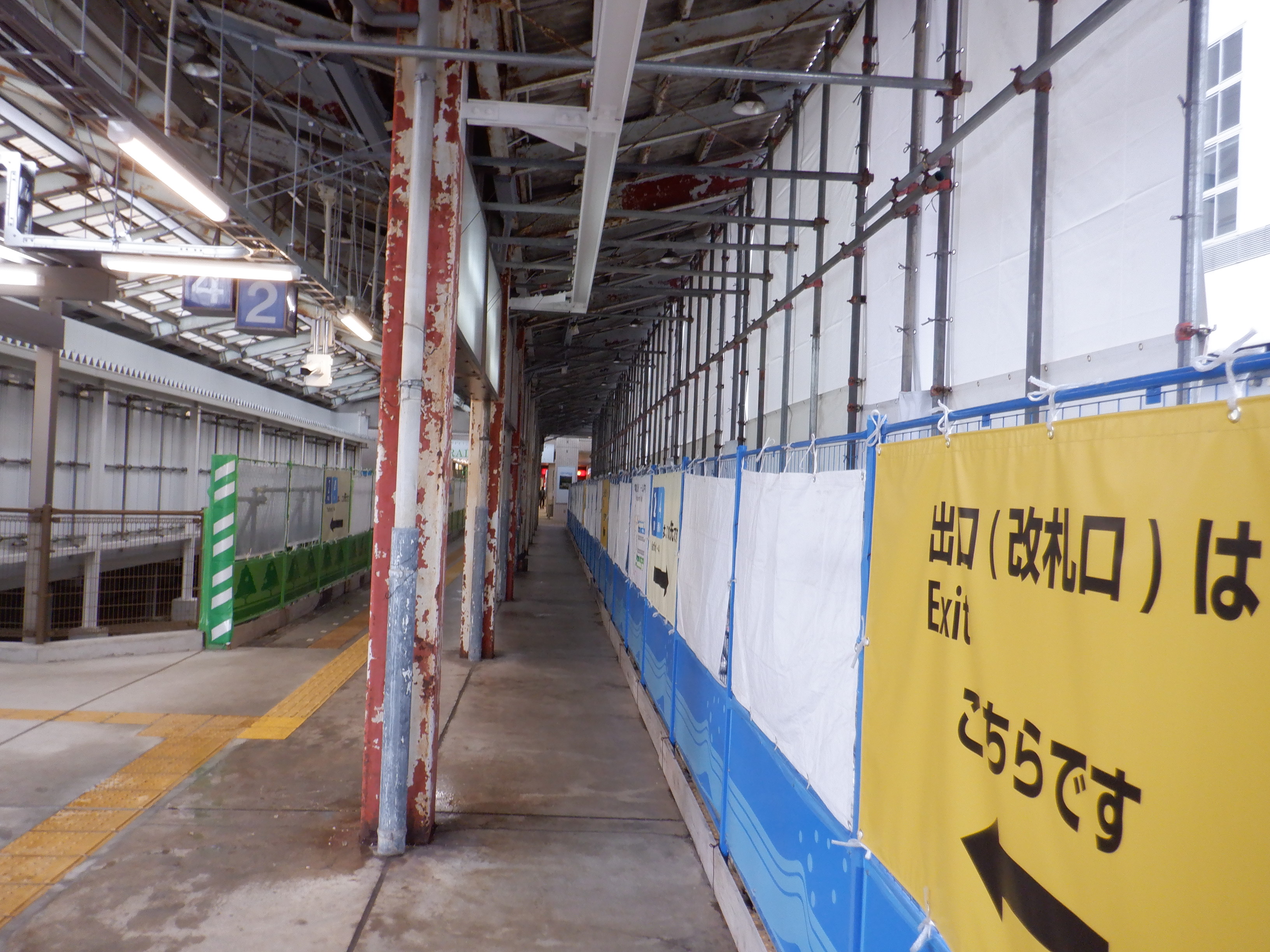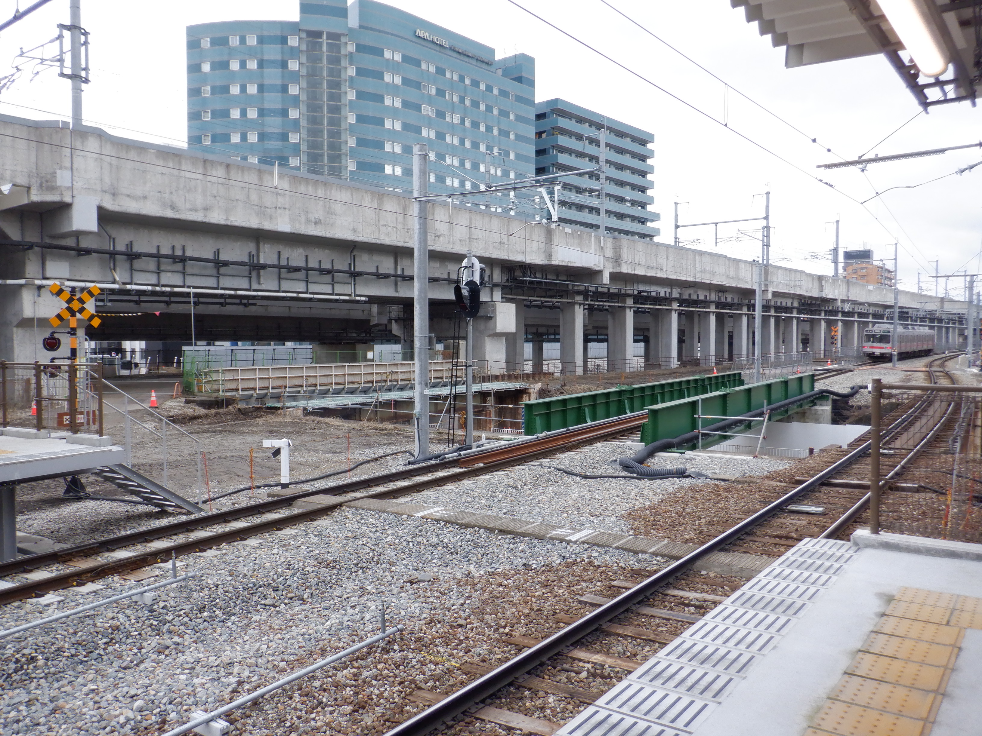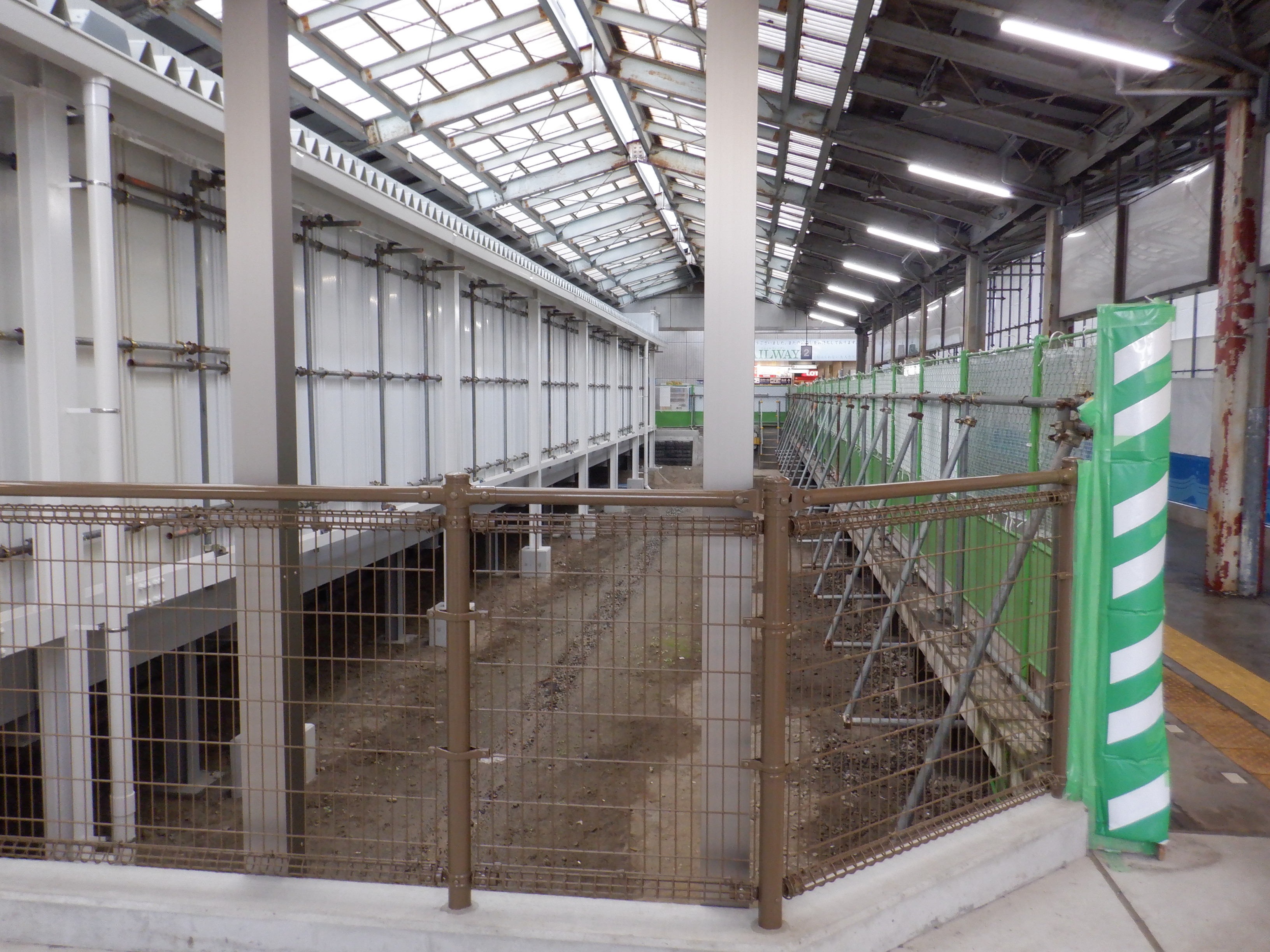 3番のりばの稲荷町駅側から見た高架工事が行われるところ。