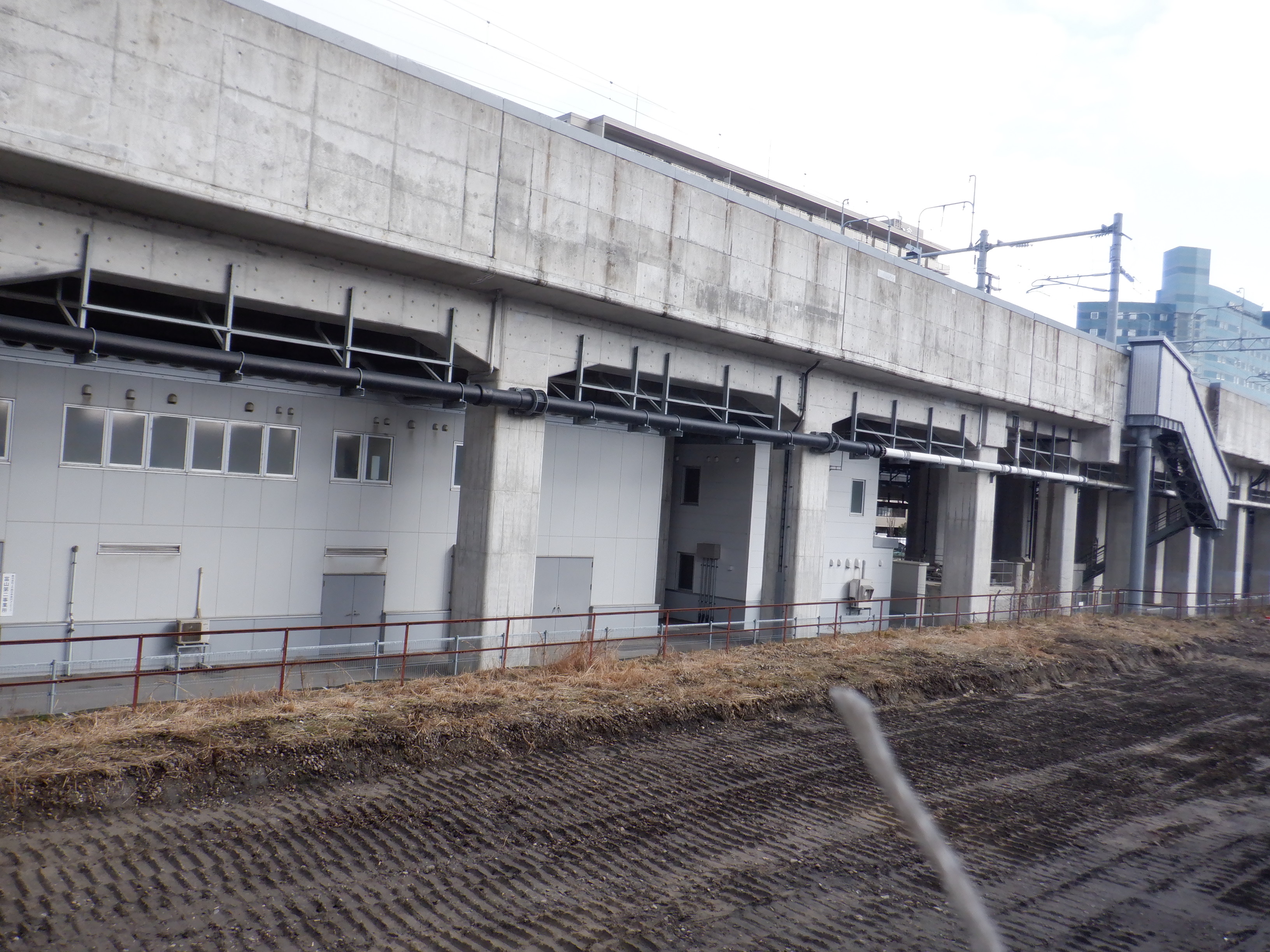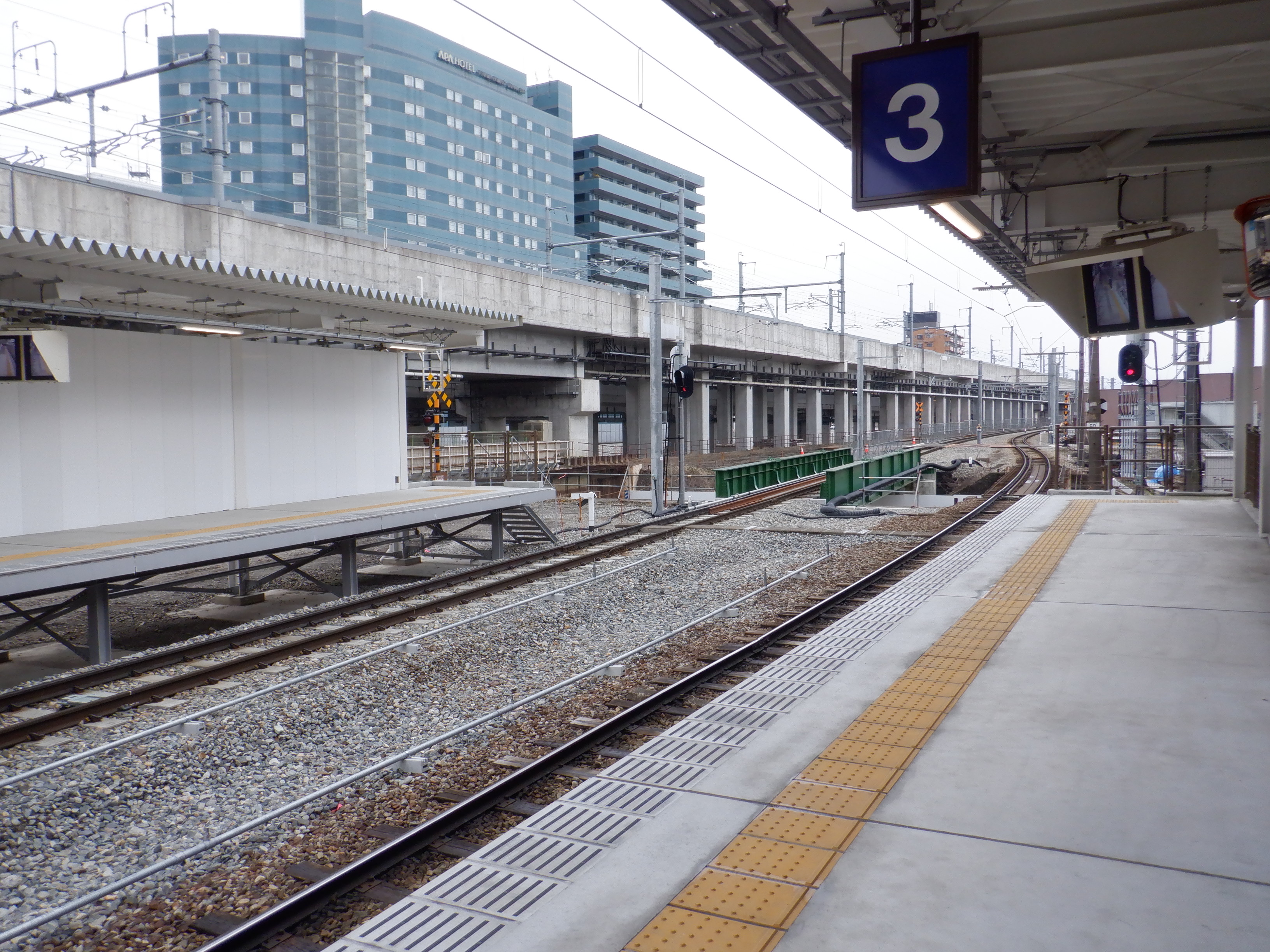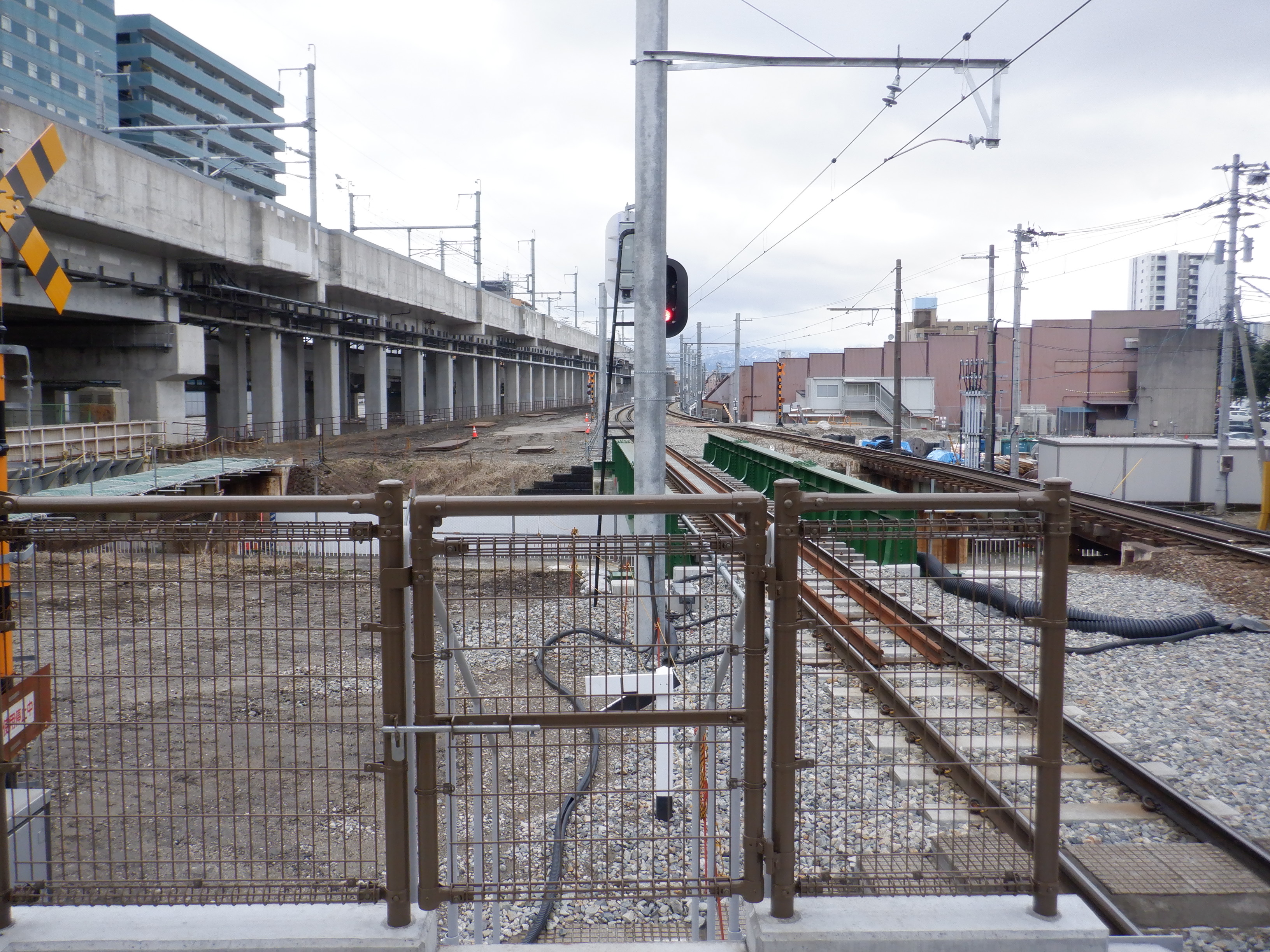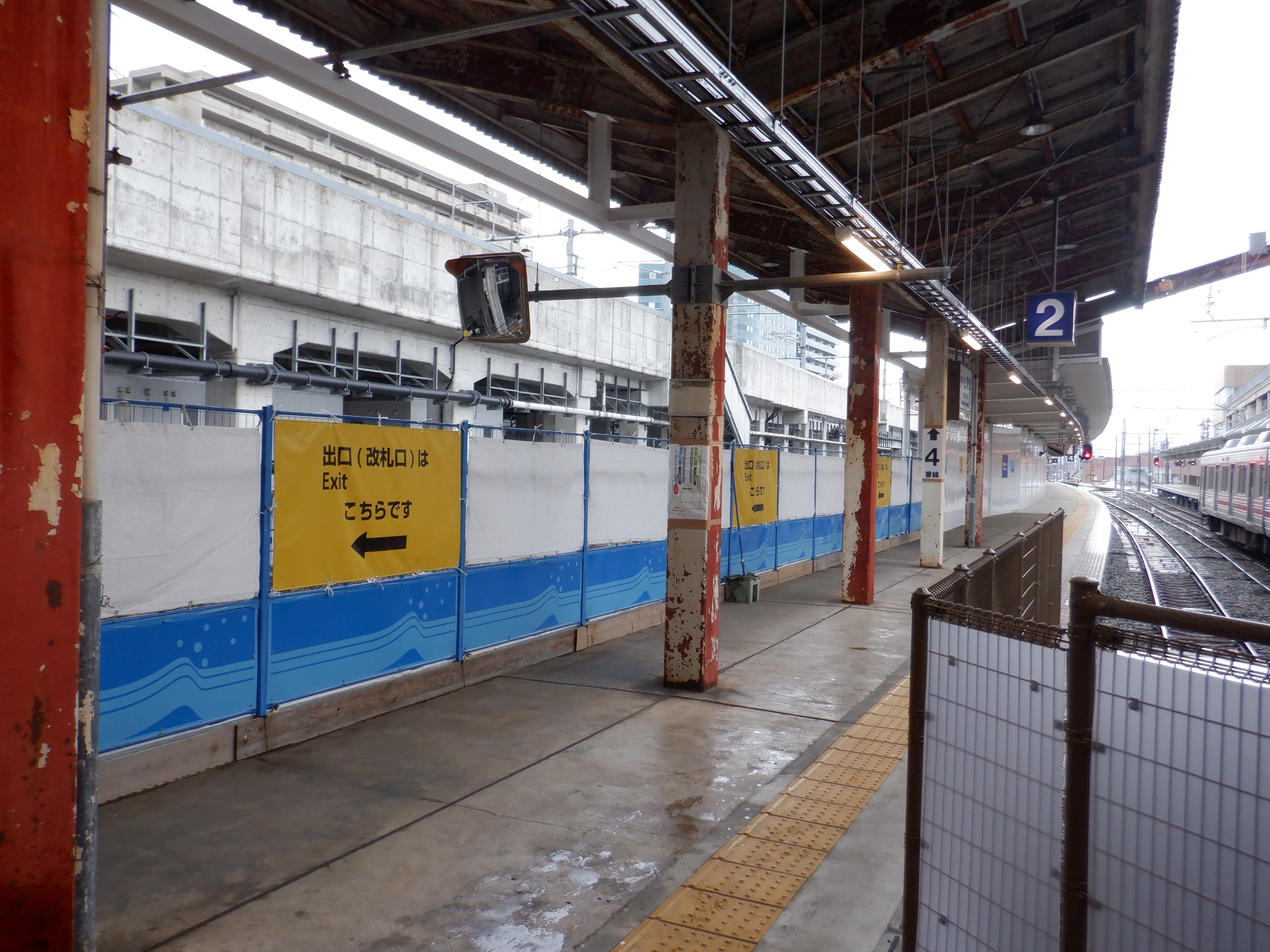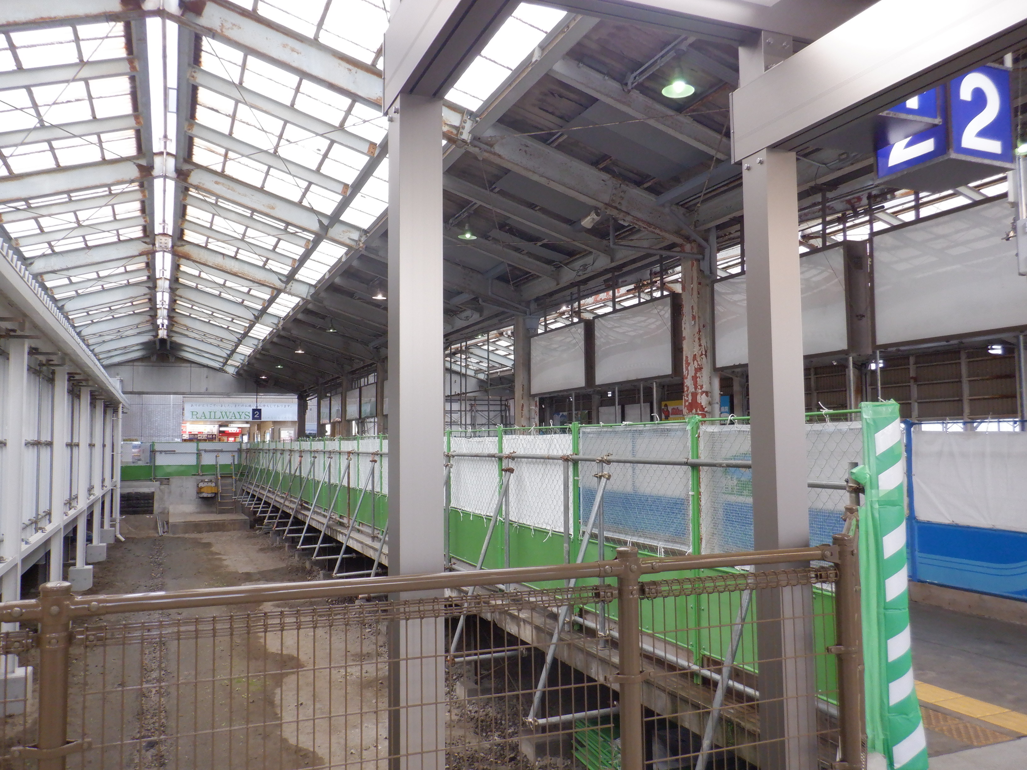 3番のりばの稲荷町駅側から見た高架工事が行われるところ。