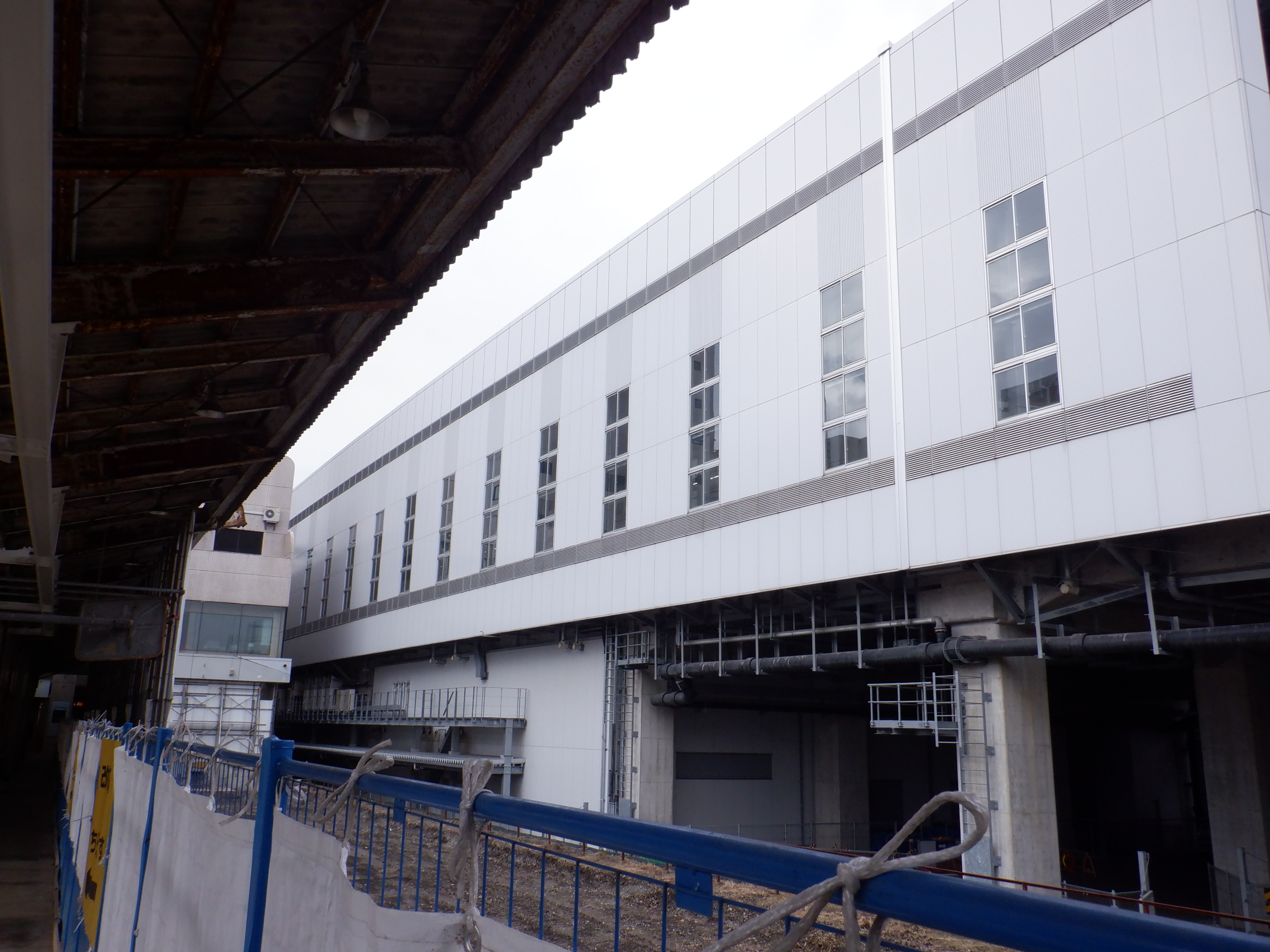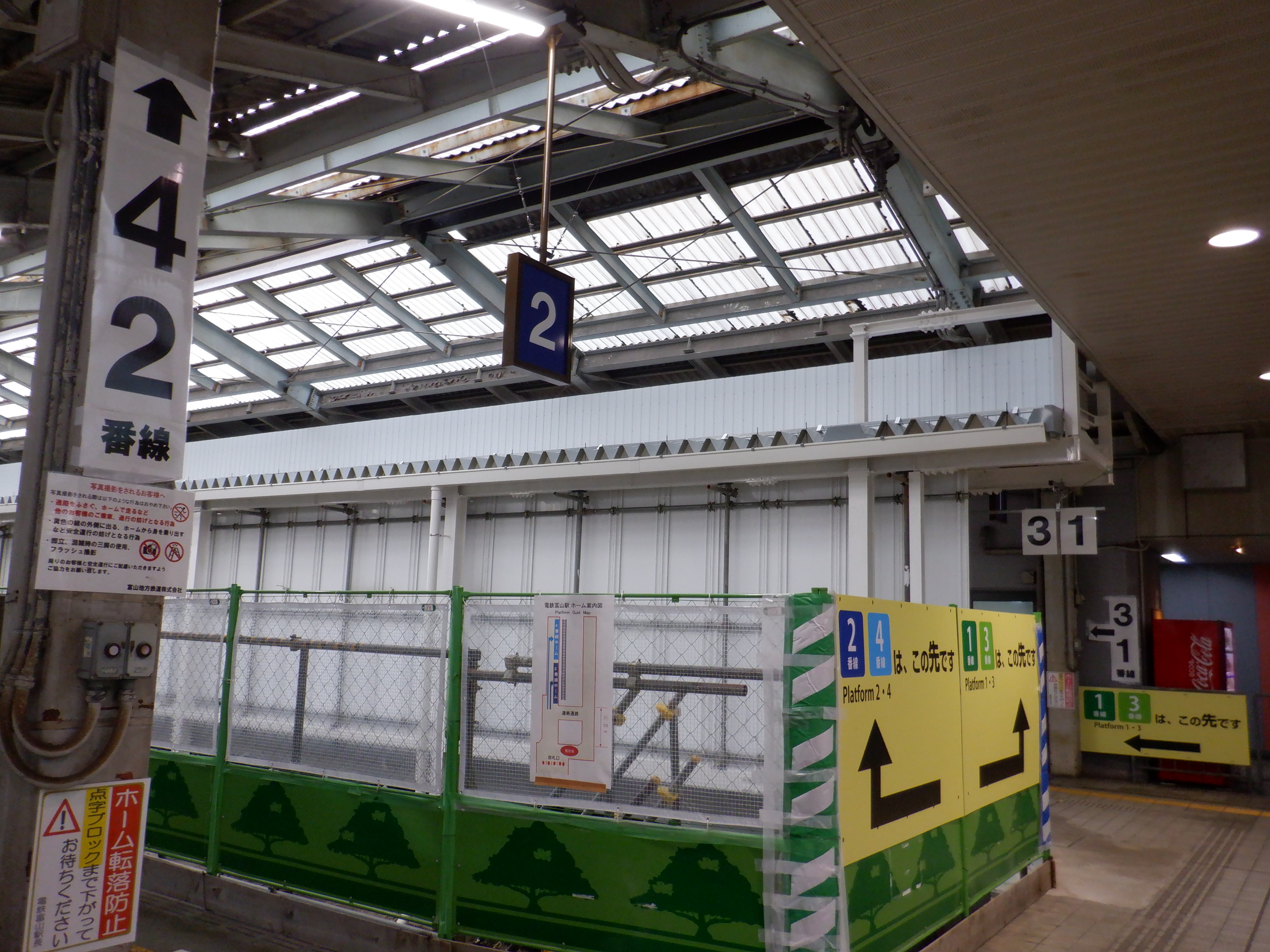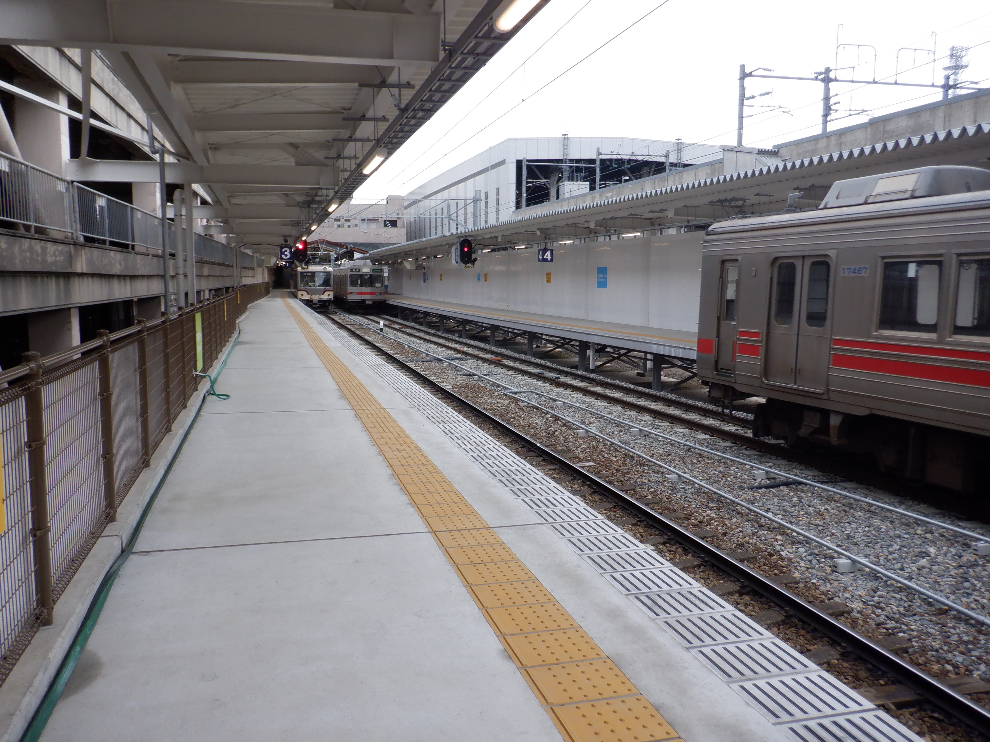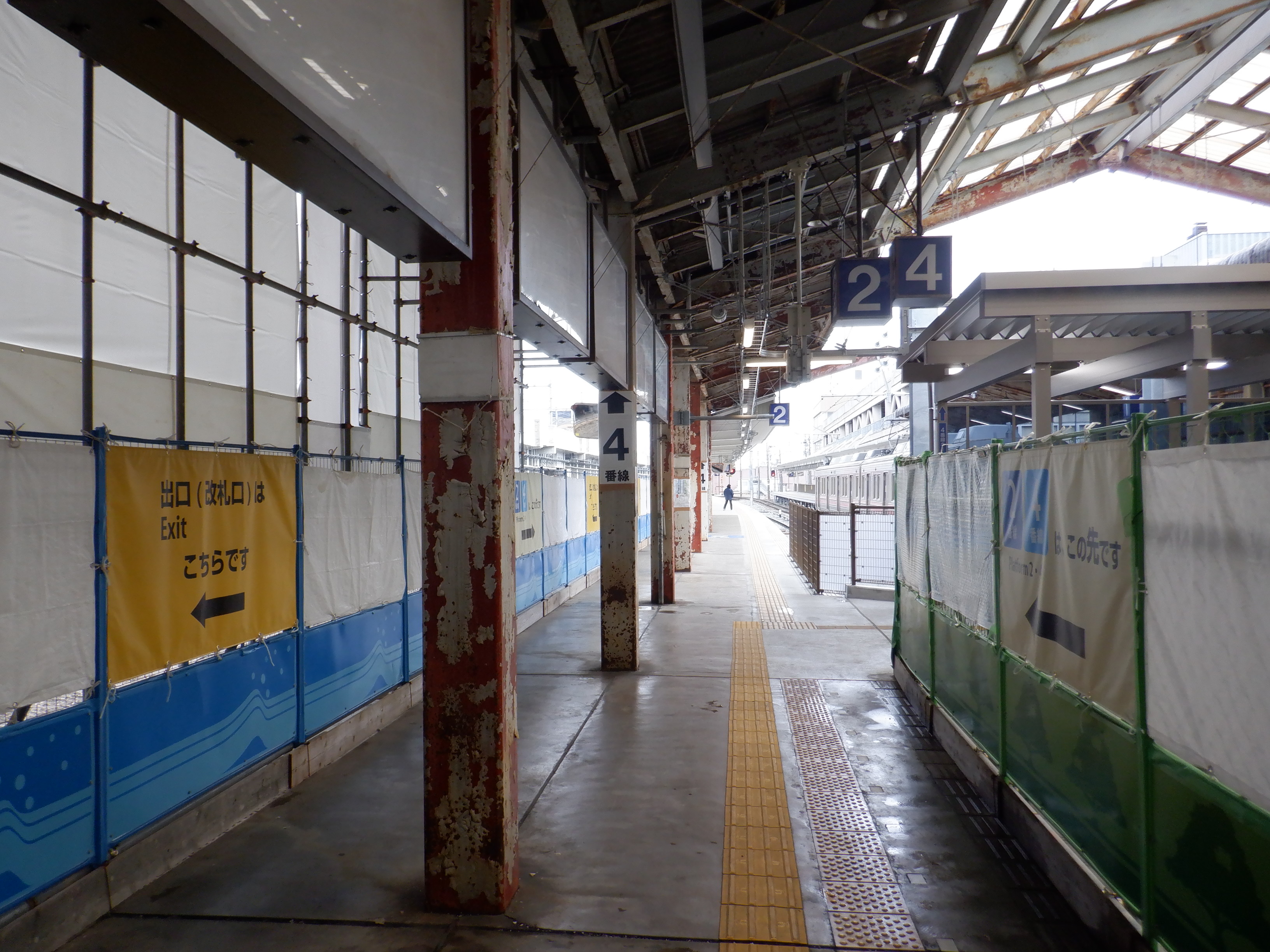 3番のりばの稲荷町駅側から見た高架工事が行われるところ。