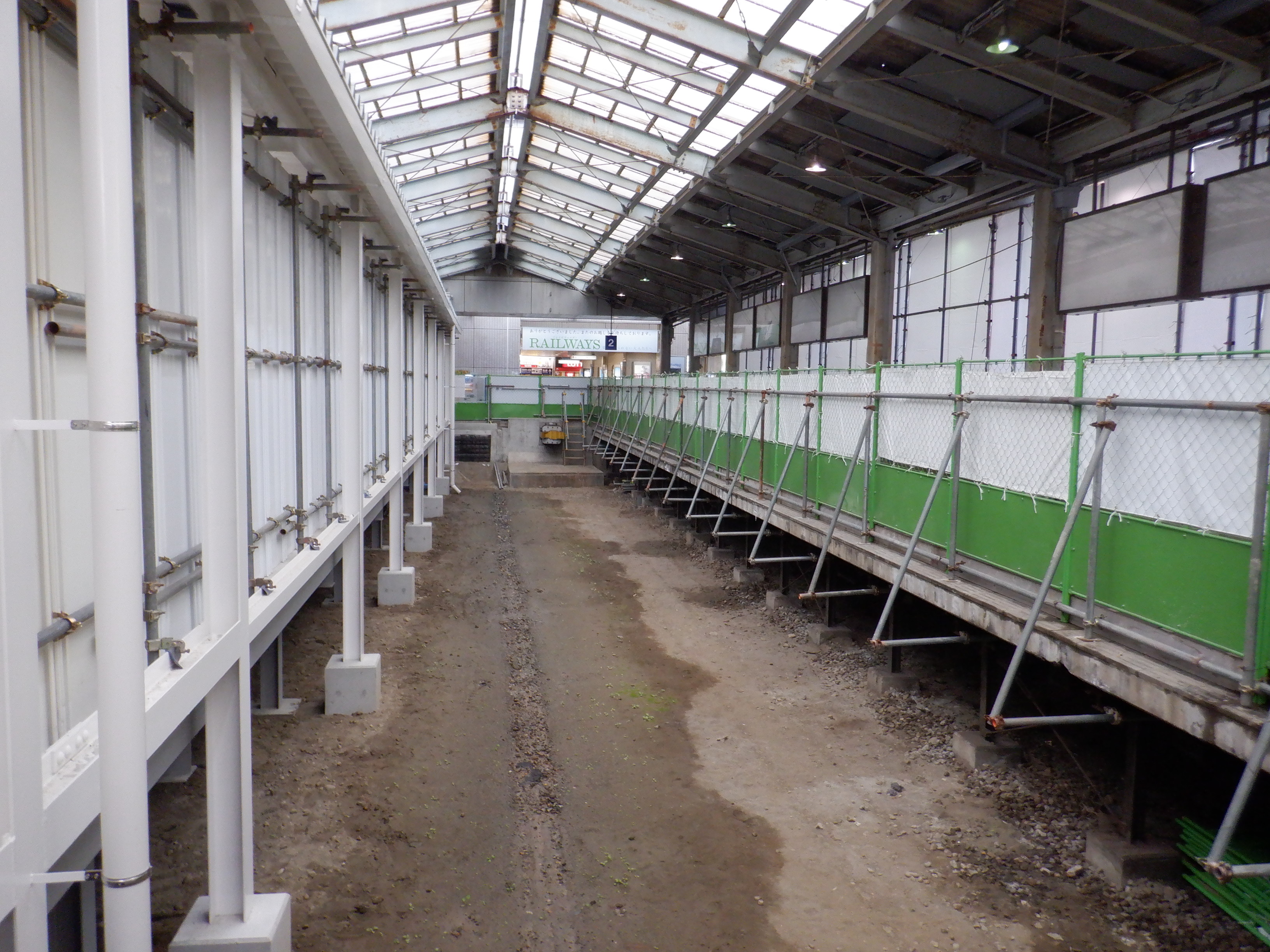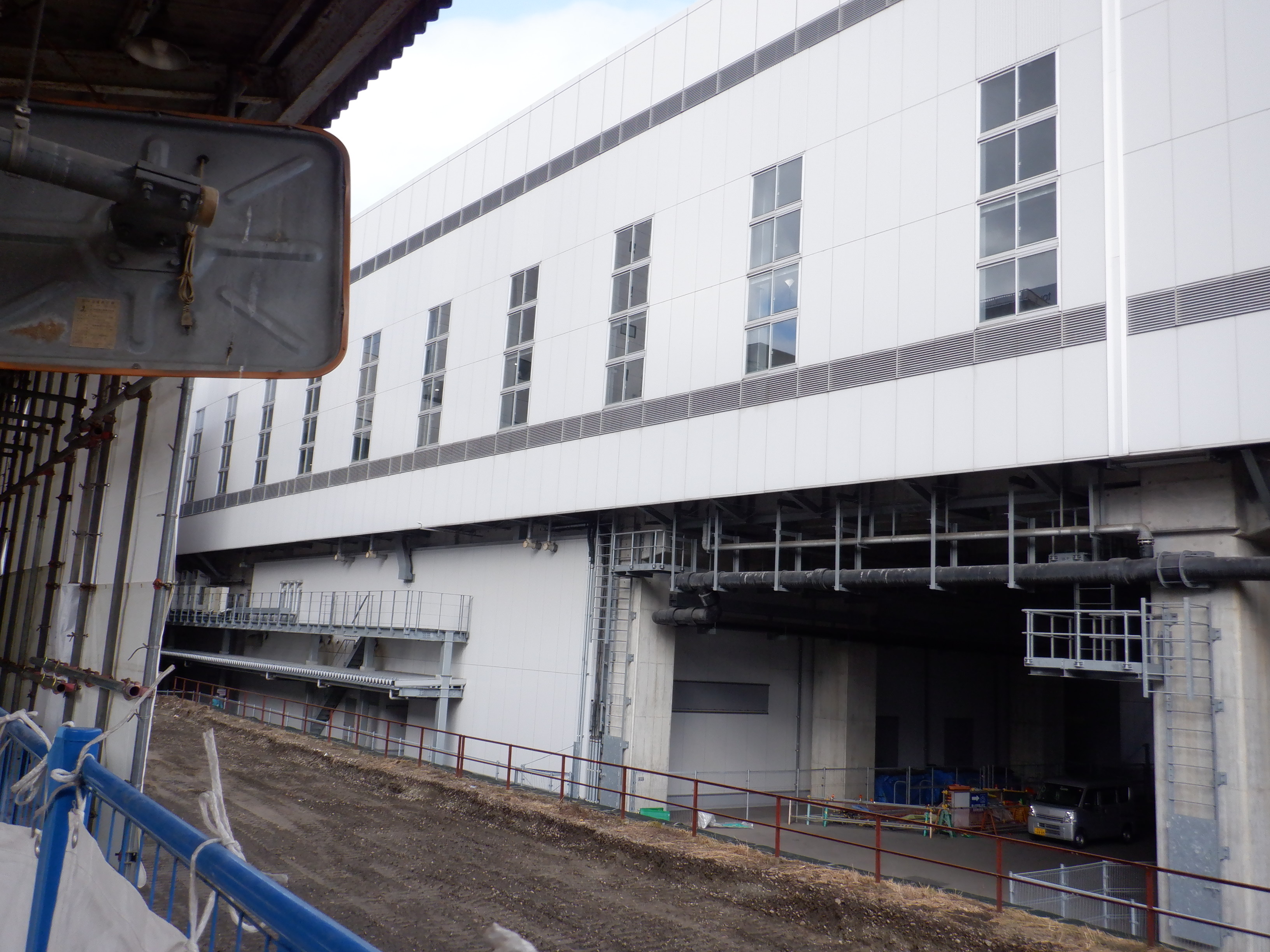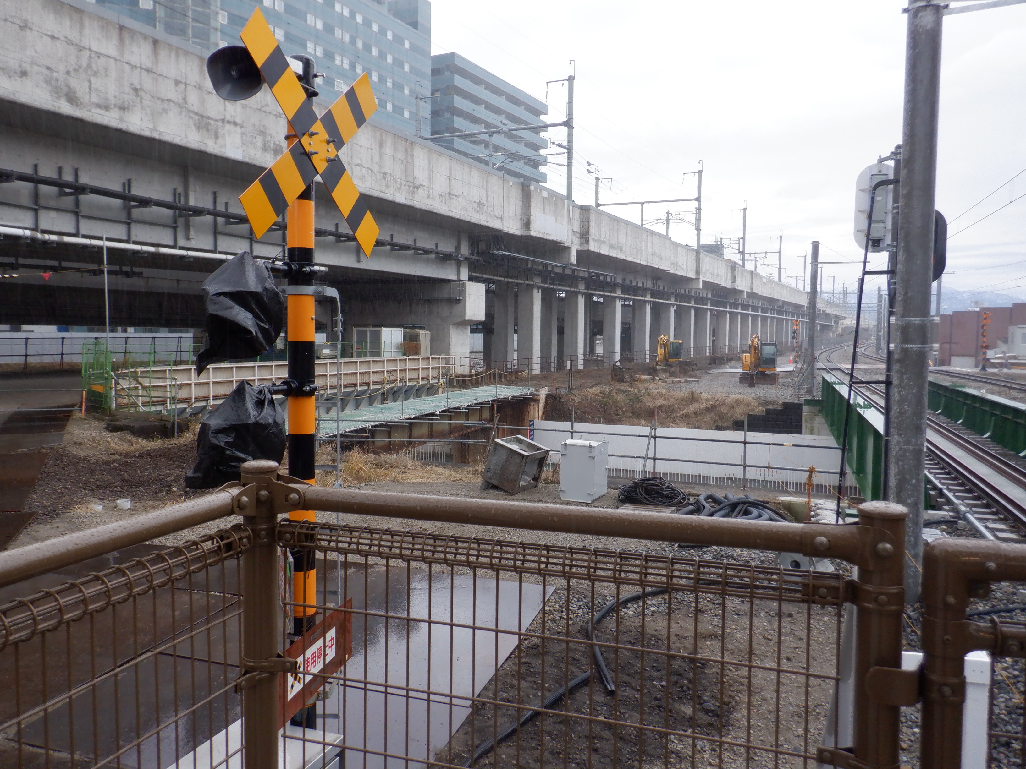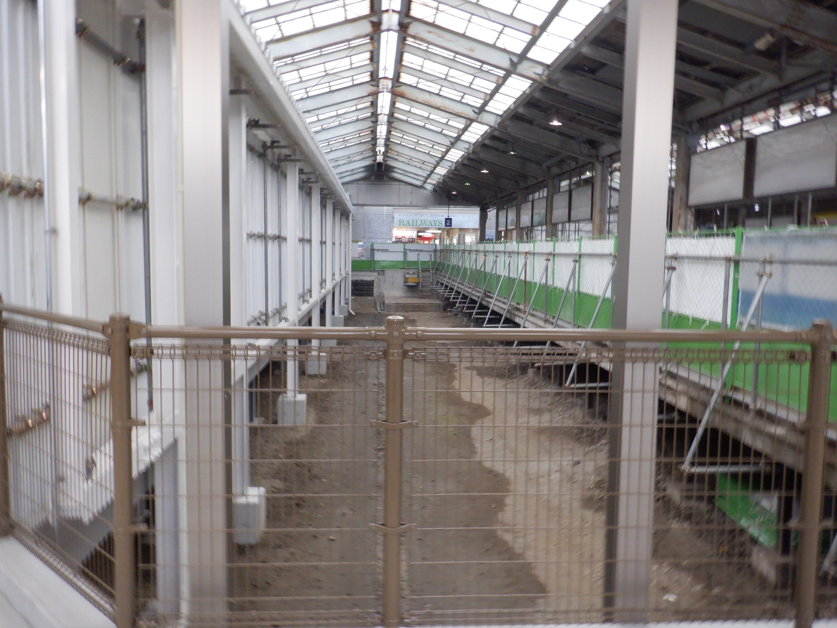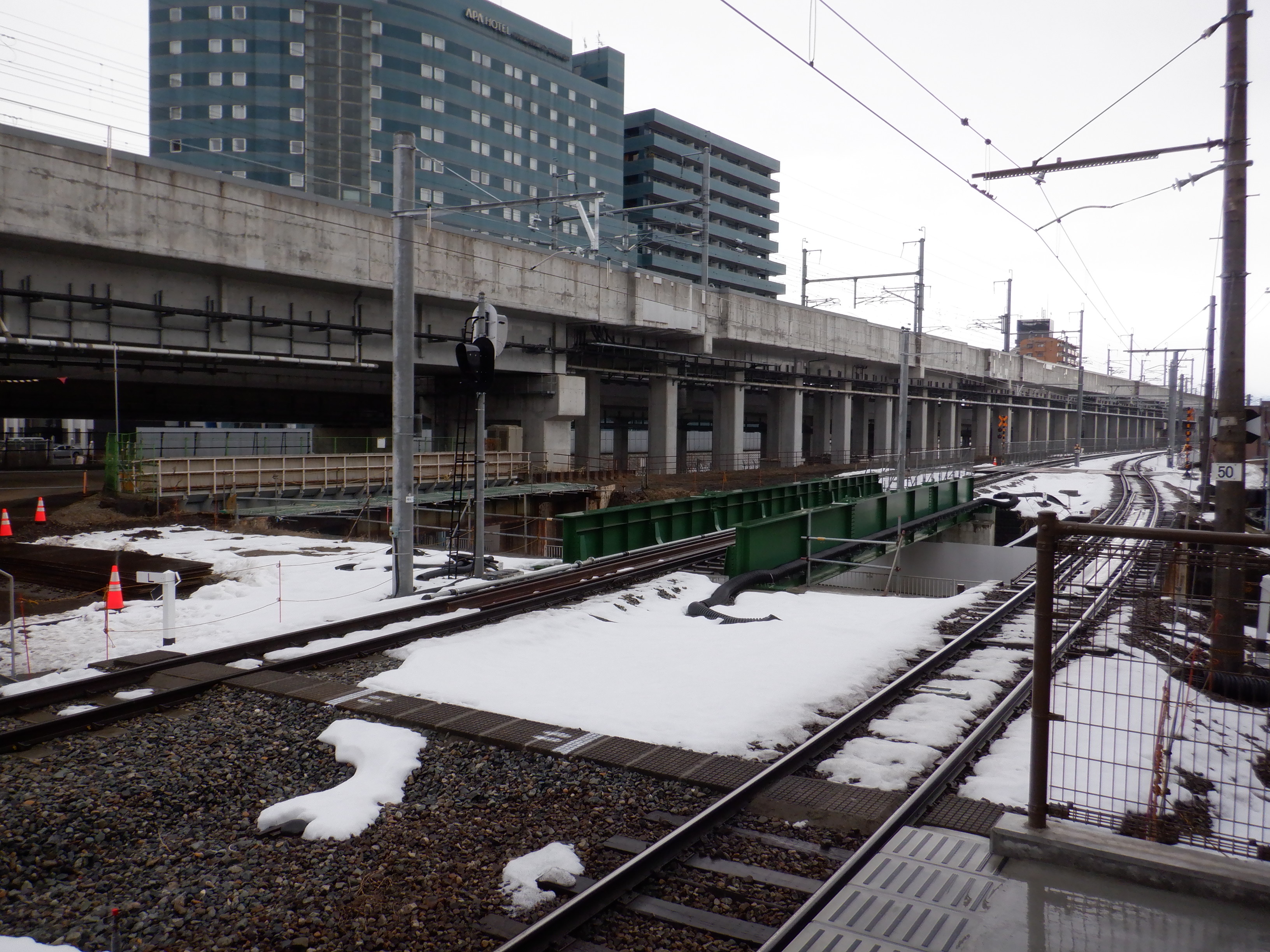 3番のりばの稲荷町駅側から見た高架工事が行われるところ。