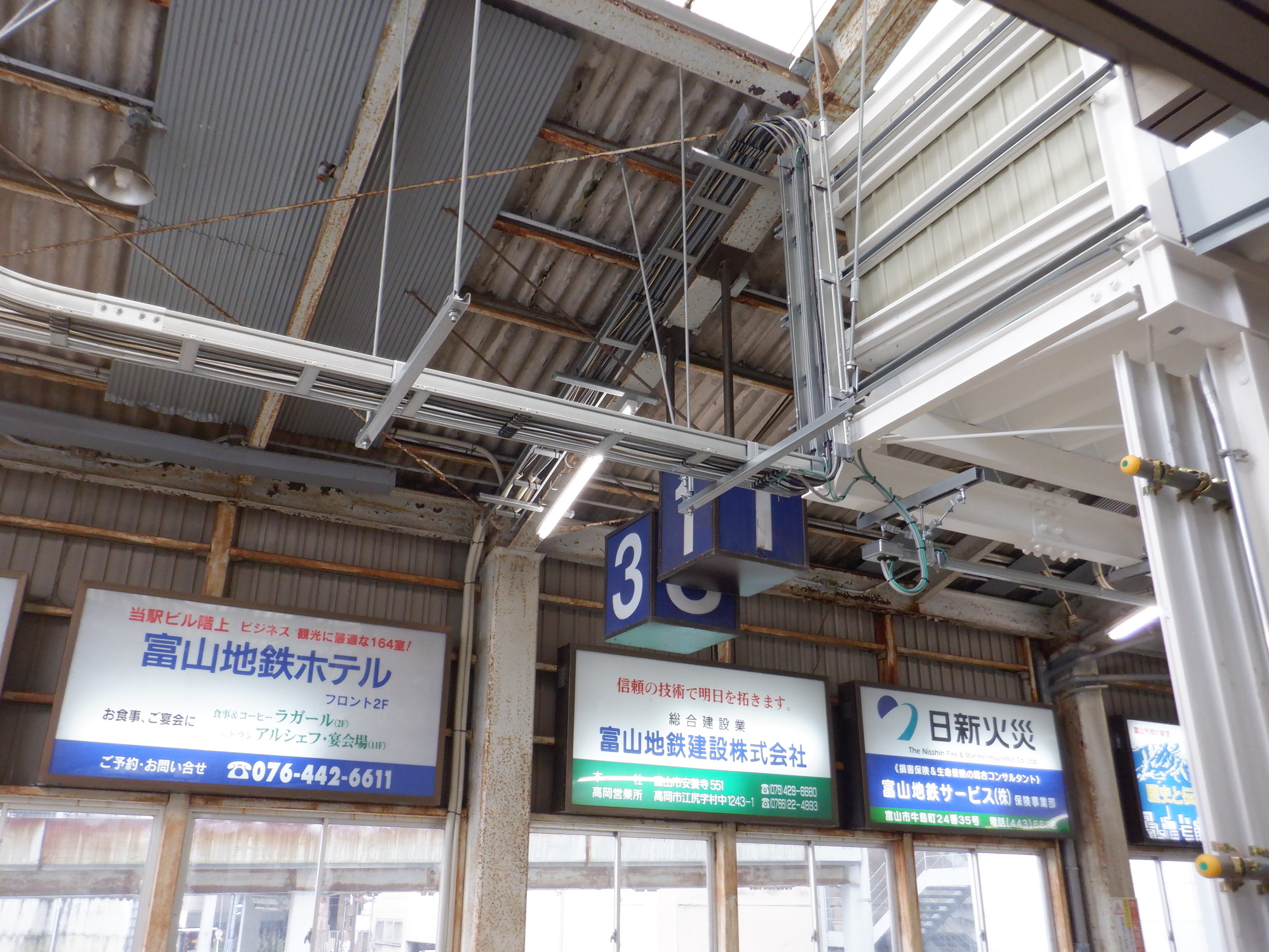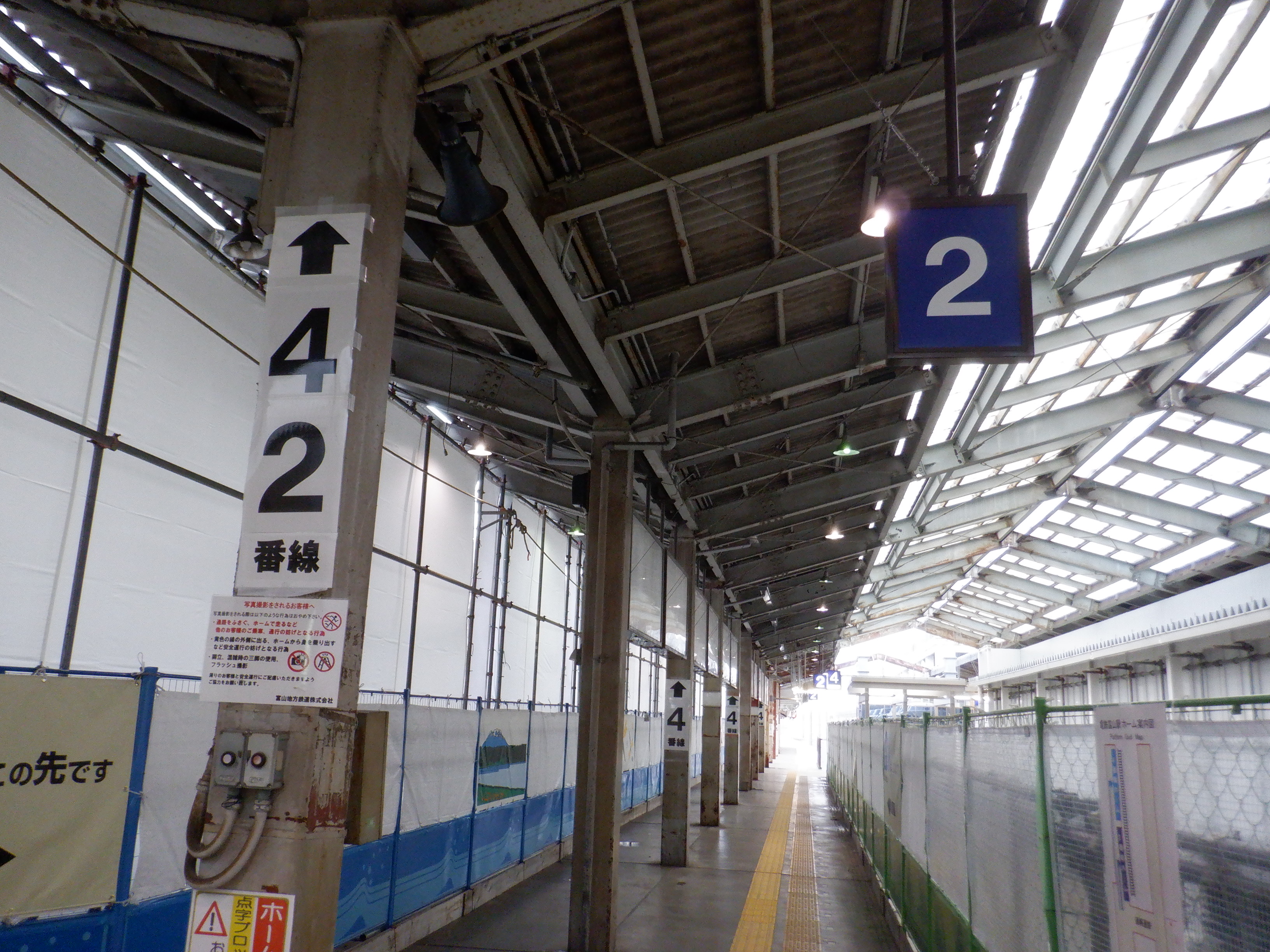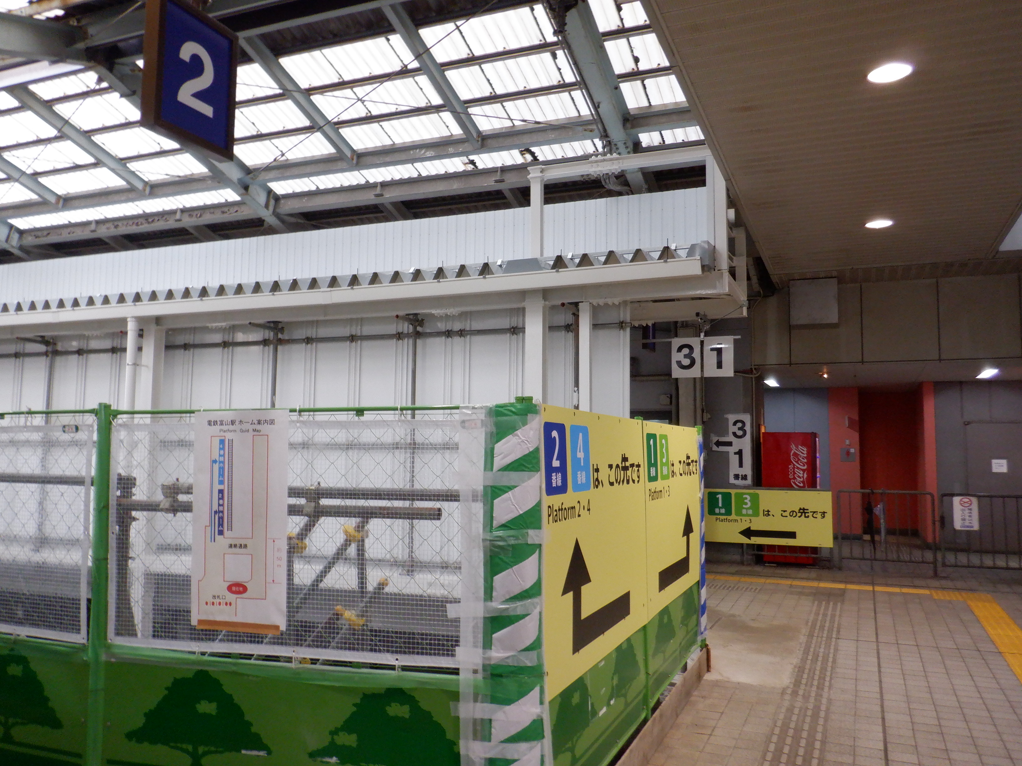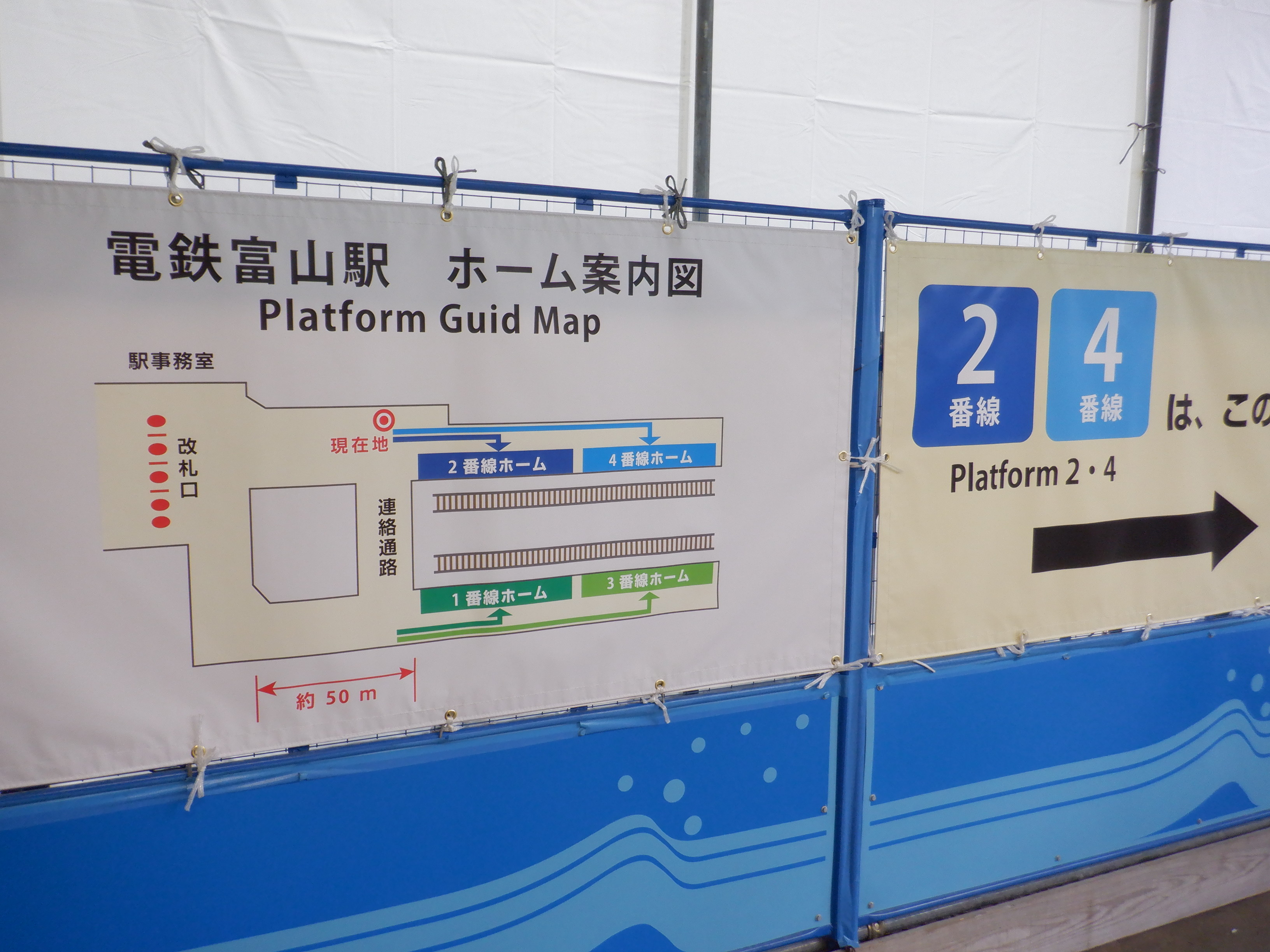 電鉄富山駅の高架化にあたり、縦列停車の仮設ホームが2本作られましたが、ここでは2本目が供用された2022年12月からの様子をご紹介します。ここでは2023年3月までの様子までご紹介します。この間に各のりばの案内が整備されていきました。