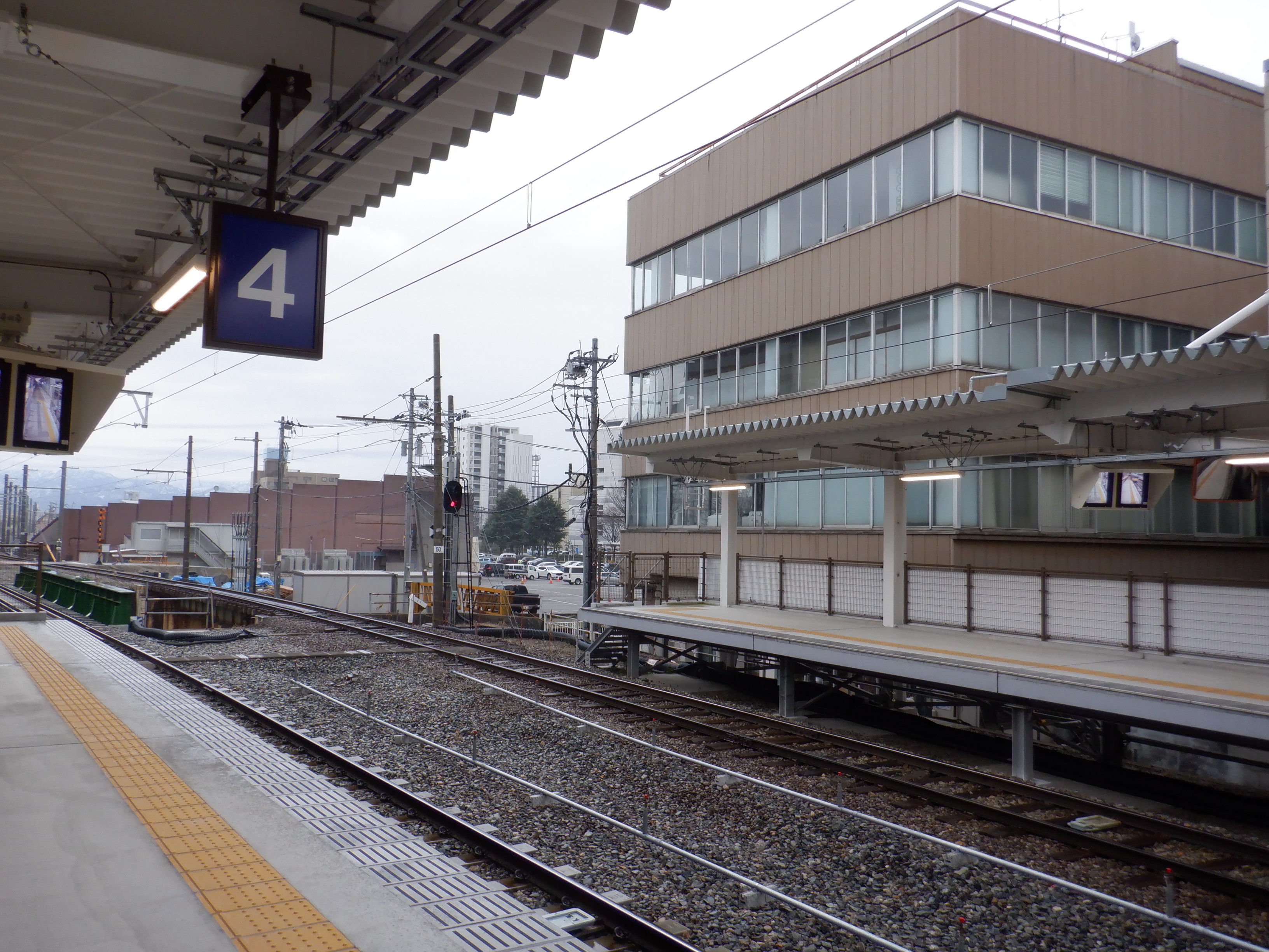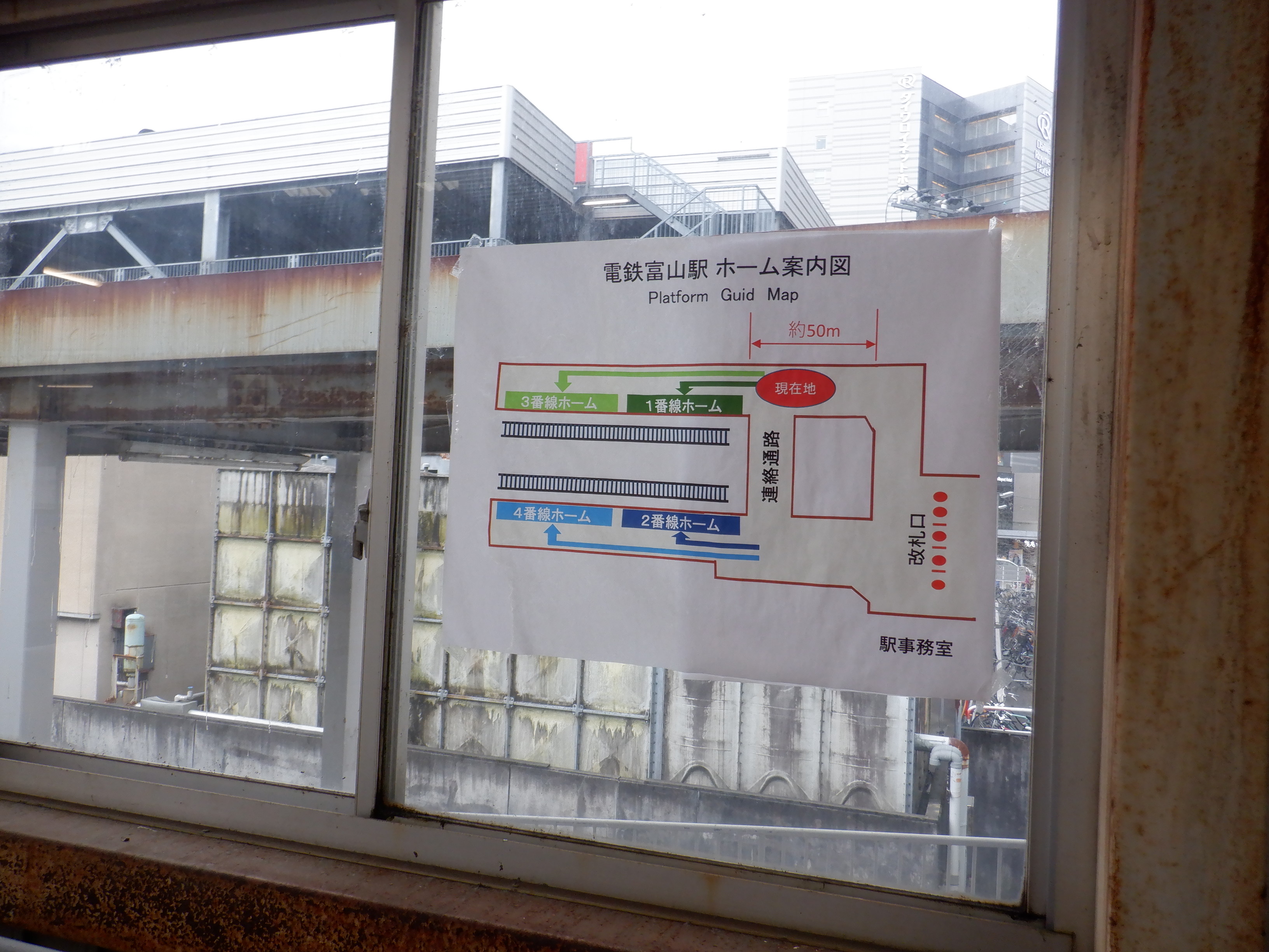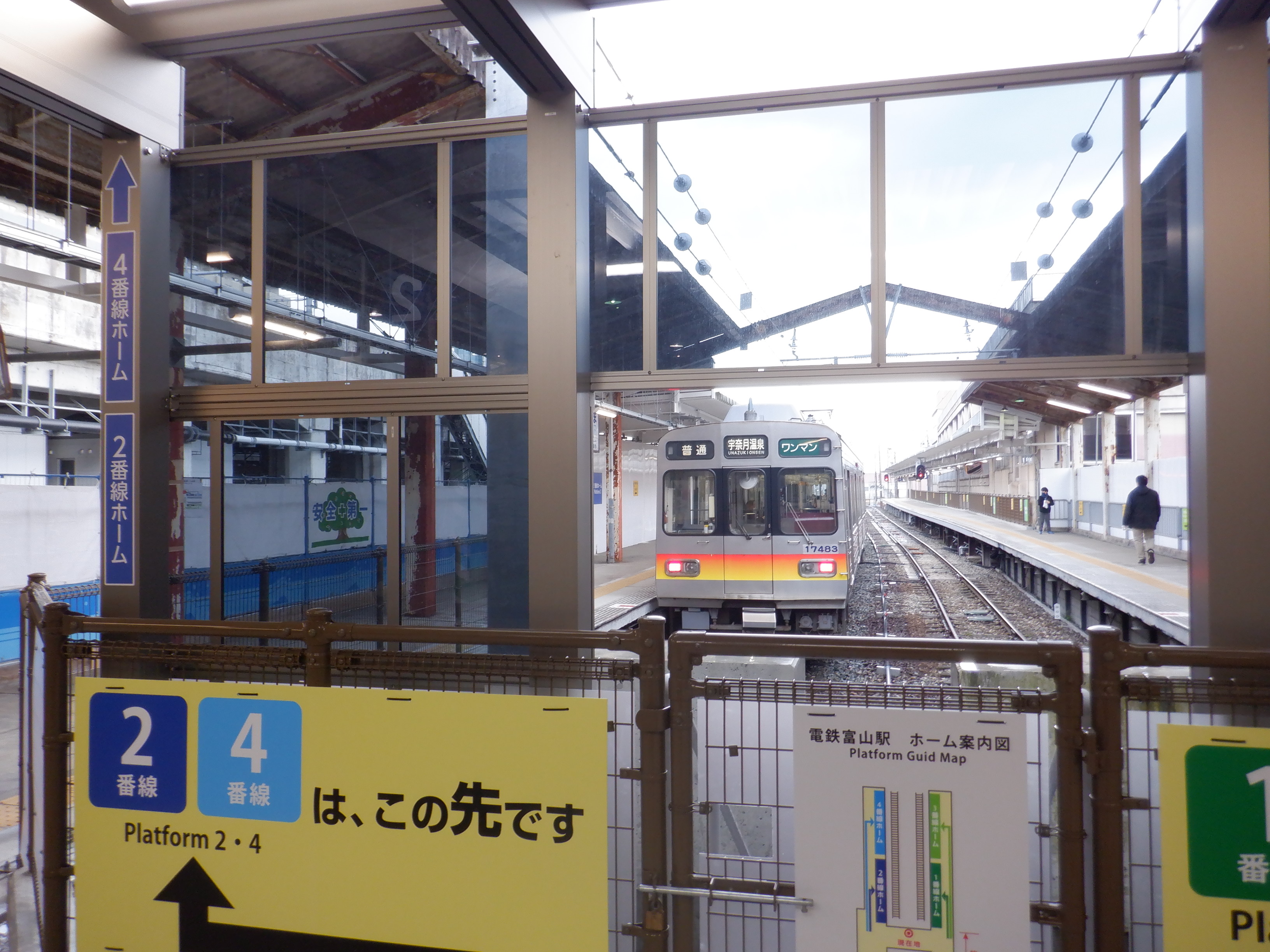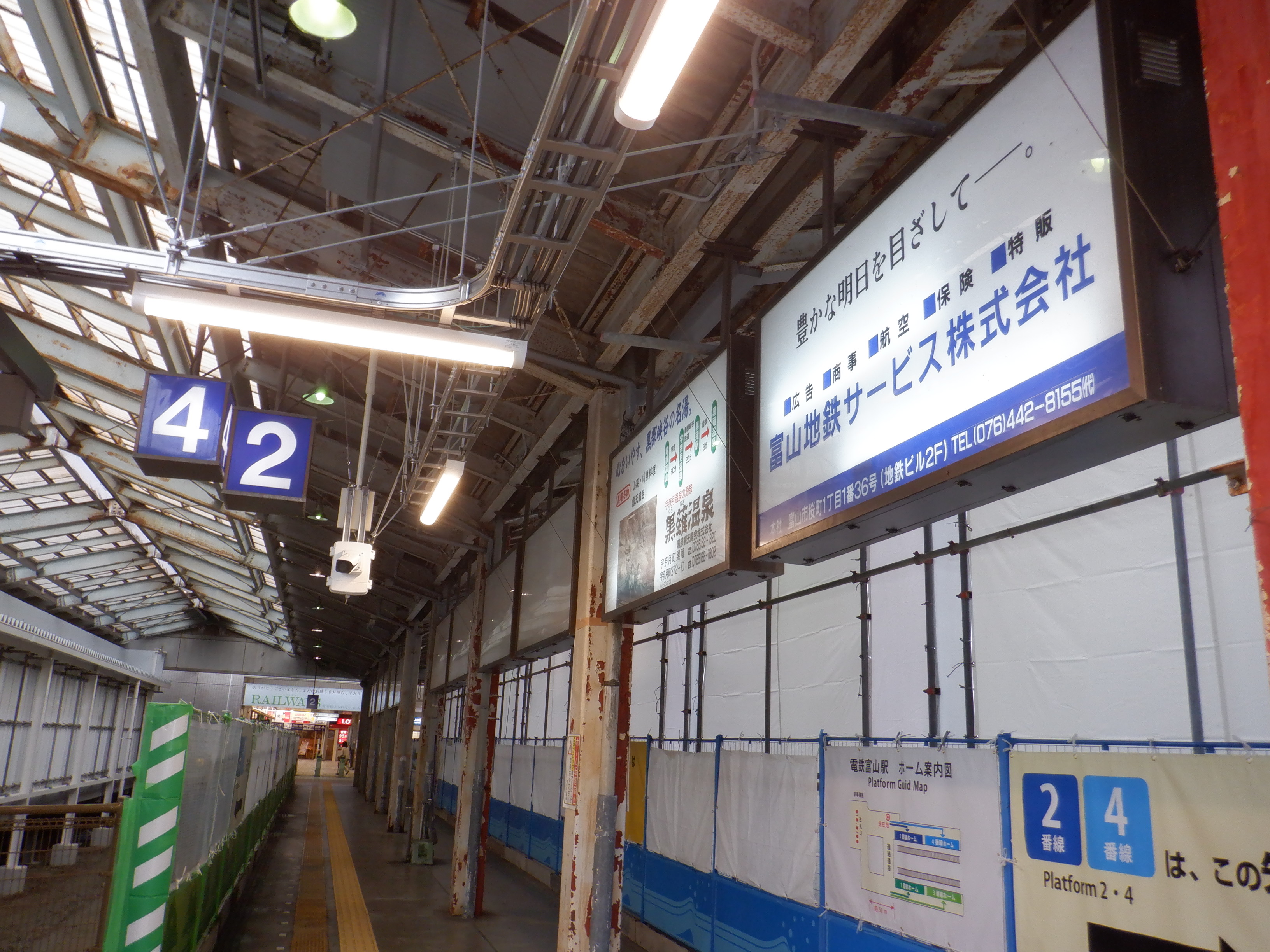 電鉄富山駅の高架化にあたり、縦列停車の仮設ホームが2本作られましたが、ここでは2本目が供用された2022年12月からの様子をご紹介します。ここでは2023年3月までの様子までご紹介します。この間に各のりばの案内が整備されていきました。