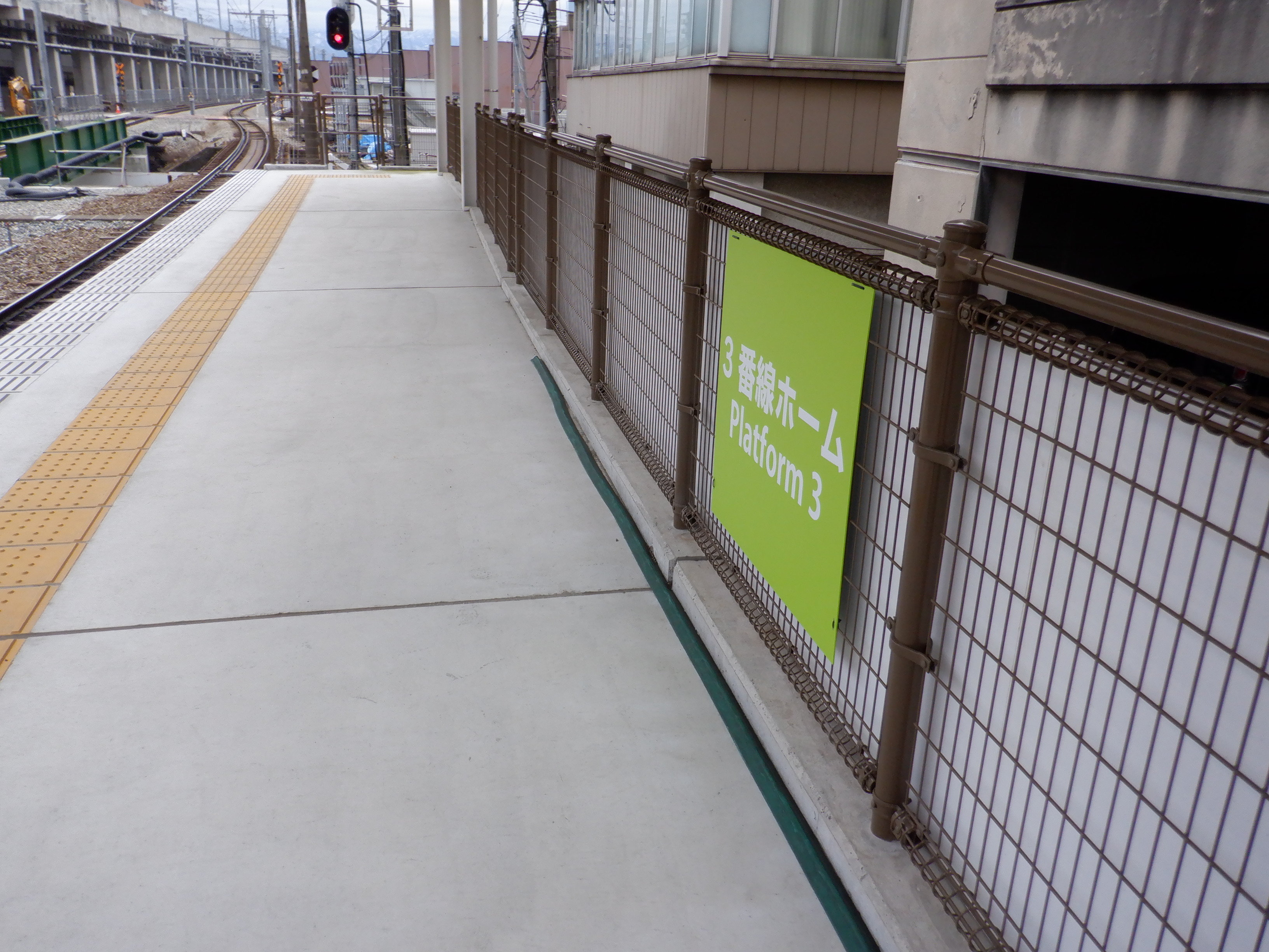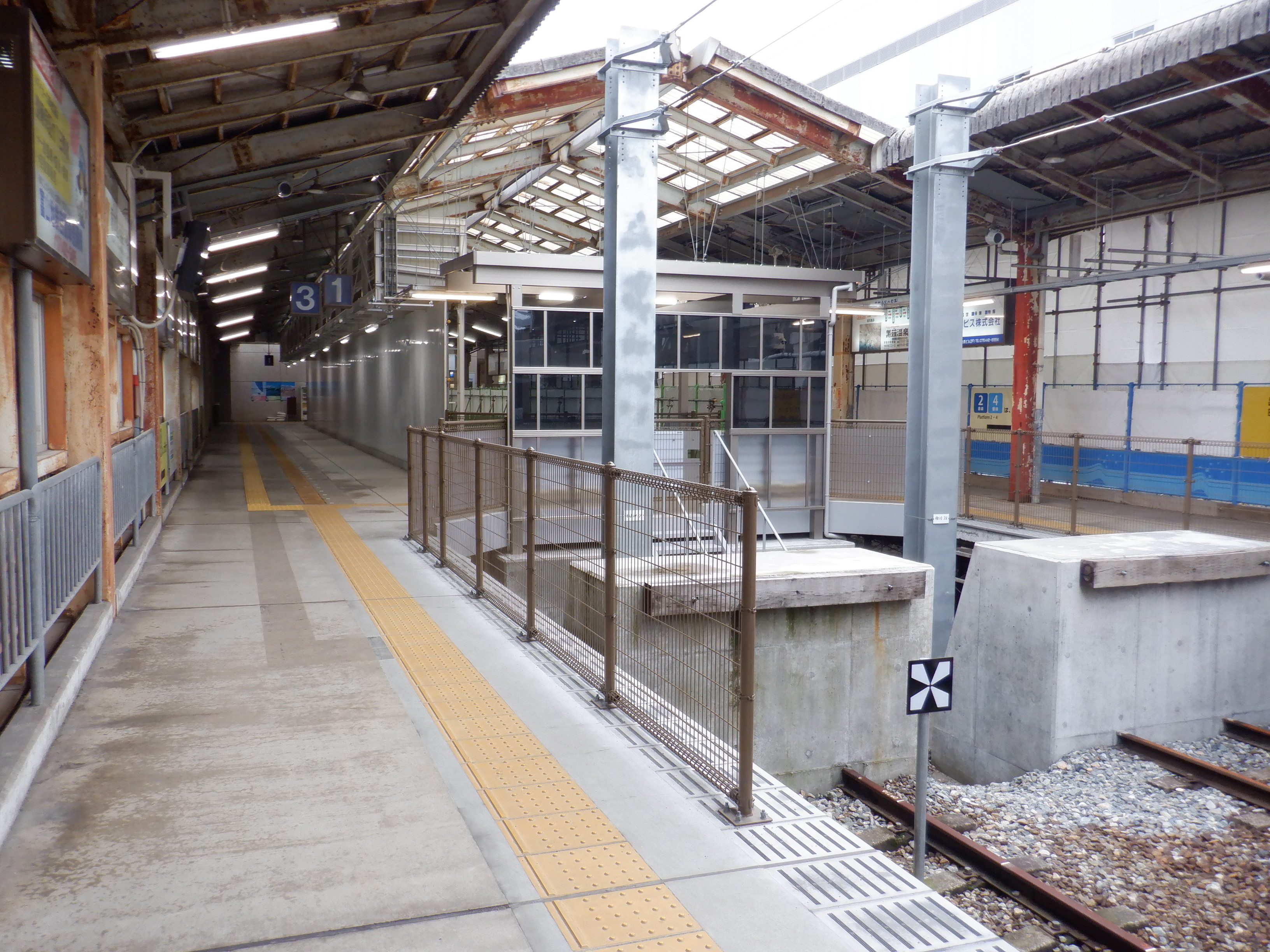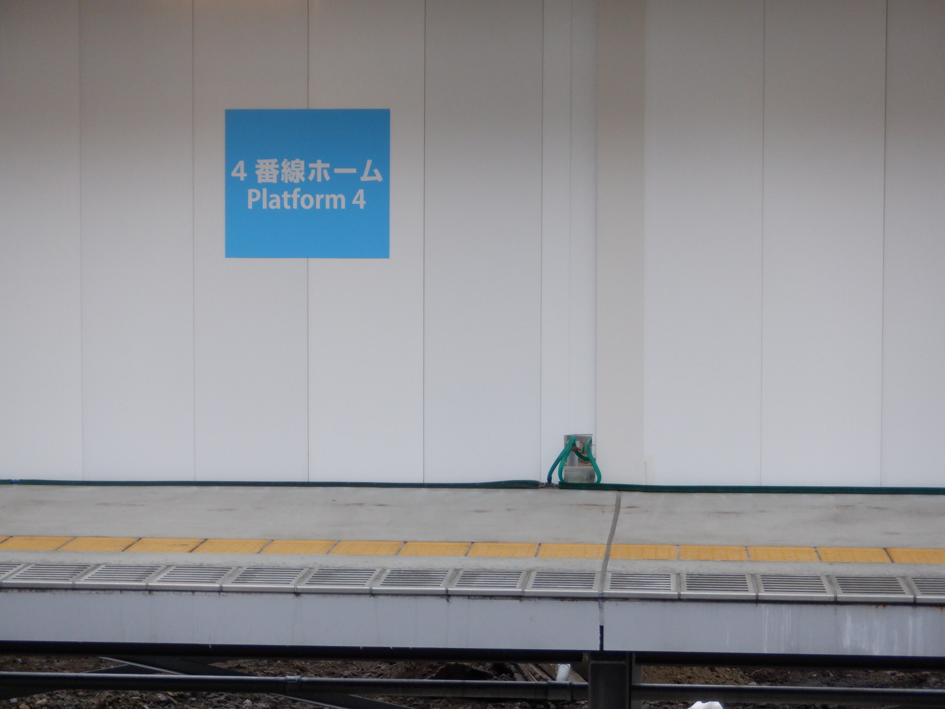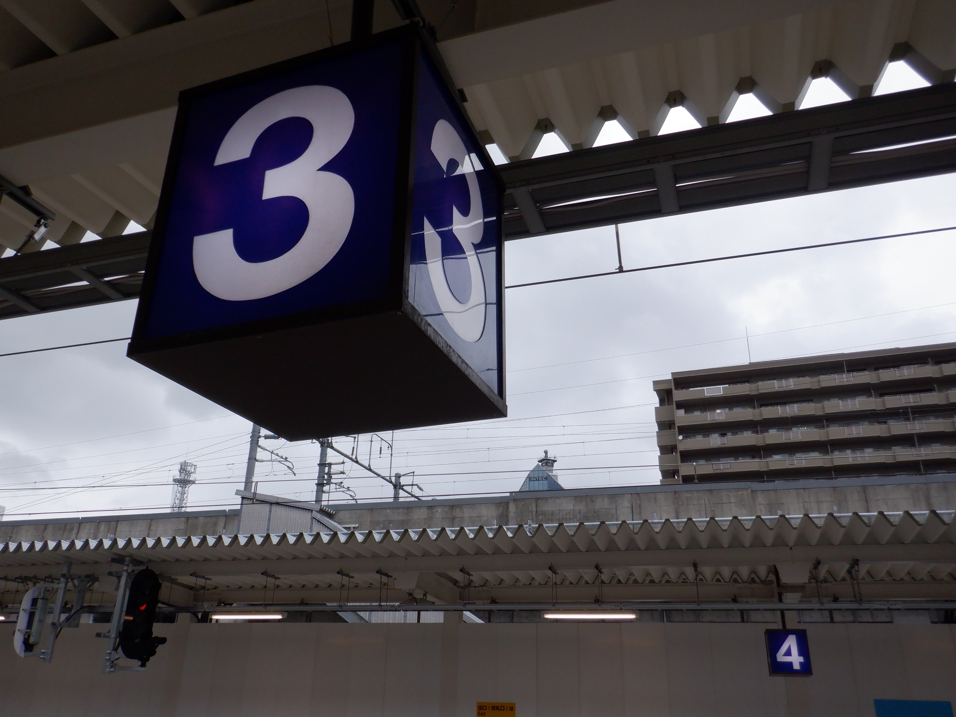 3番のりば、向こうに見える4番のりばは入口付近が立方体の番線標になりました。