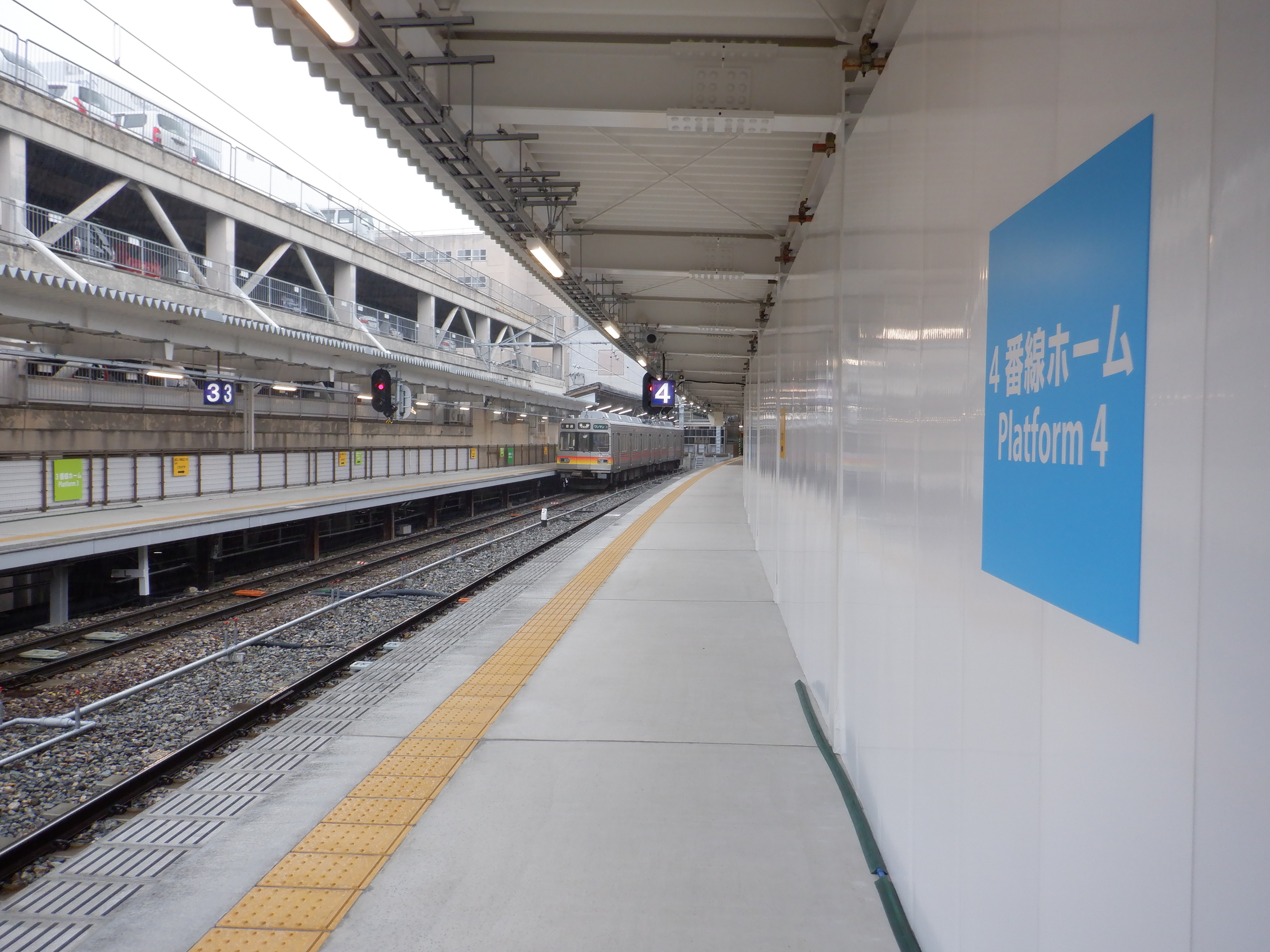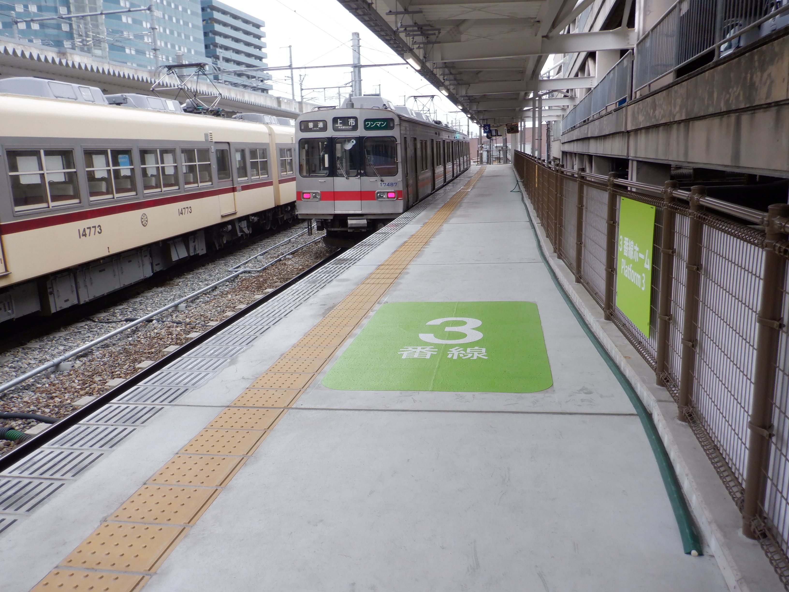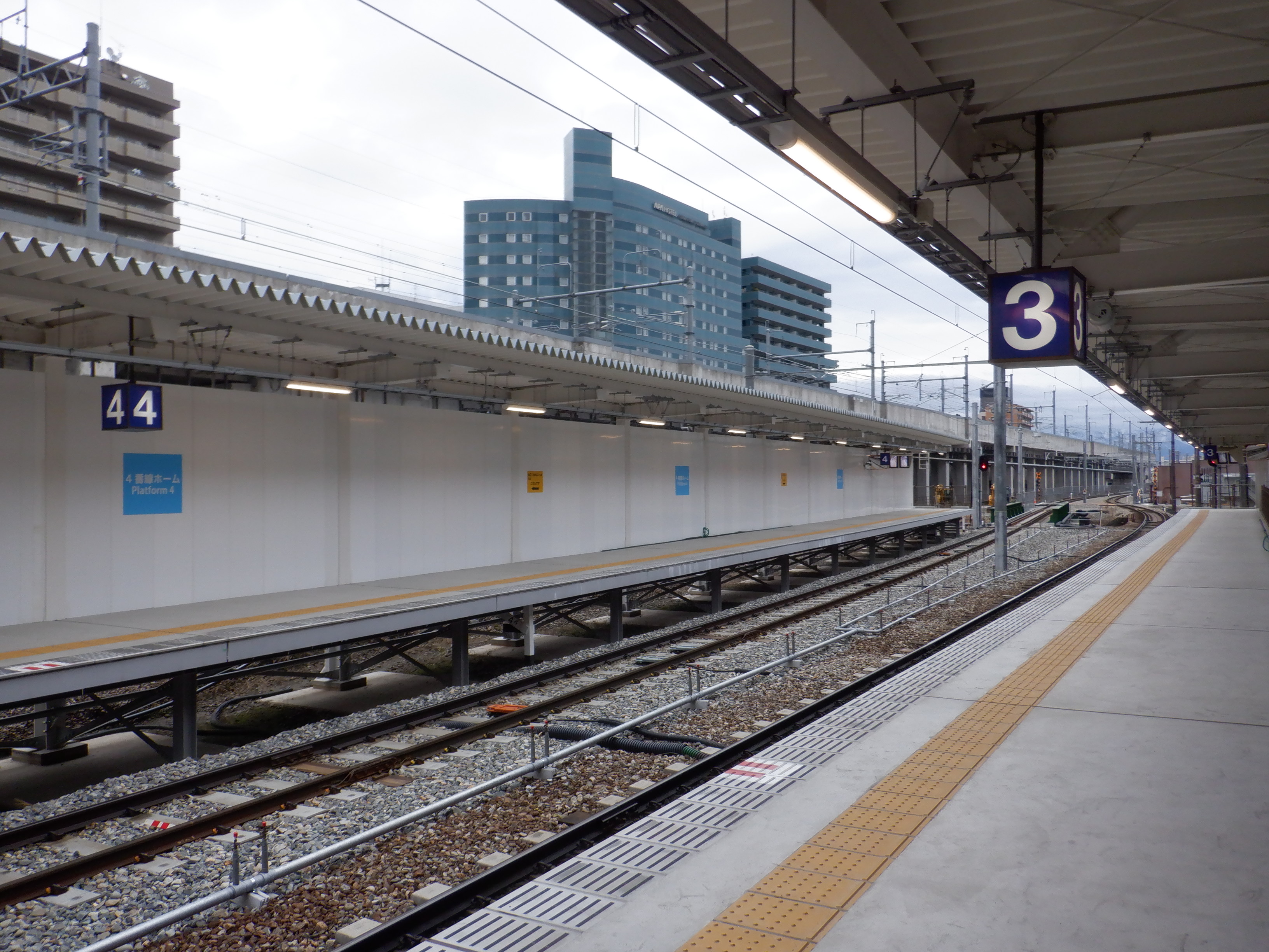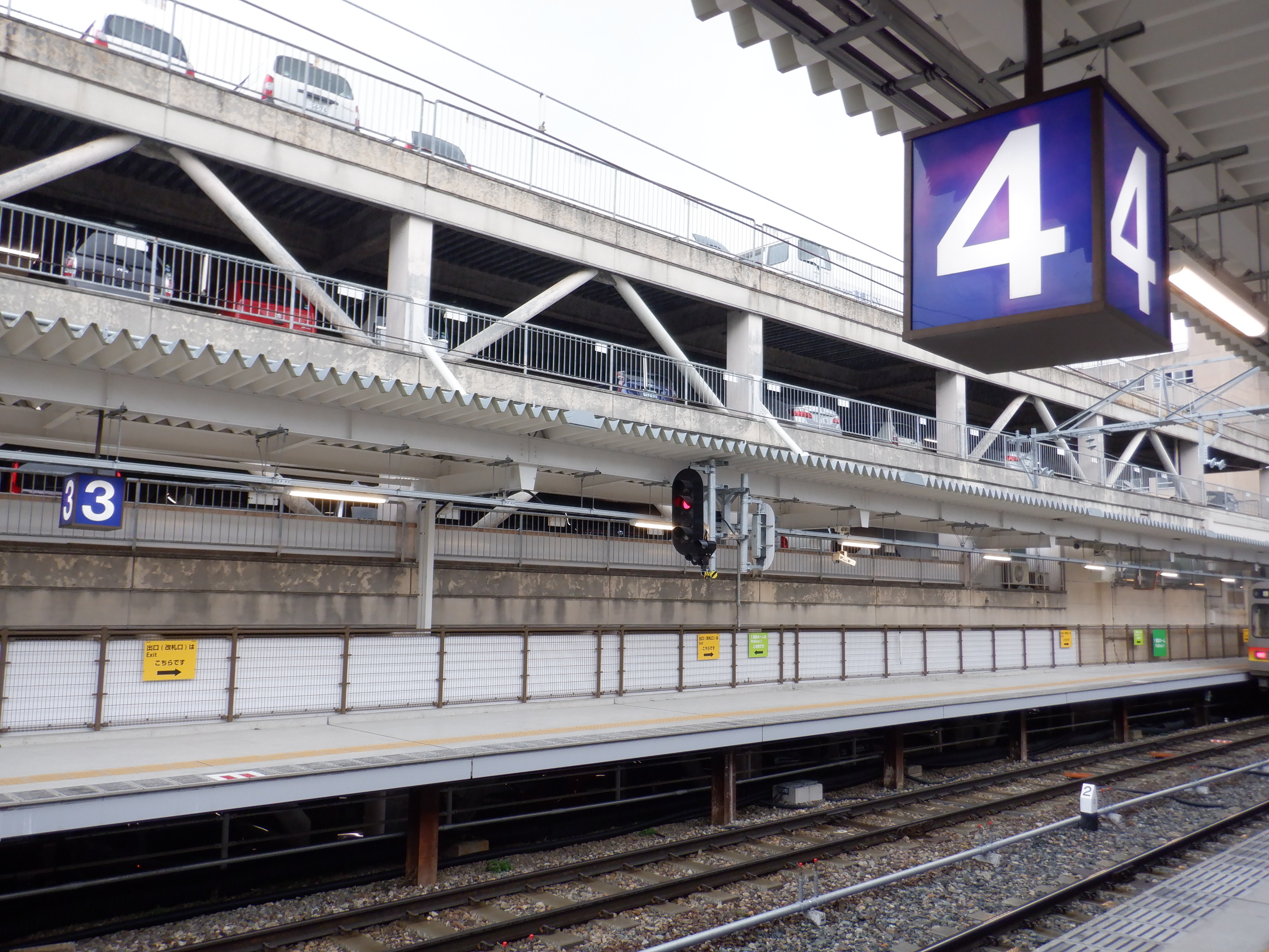3番のりば、向こうに見える4番のりばは入口付近が立方体の番線標になりました。