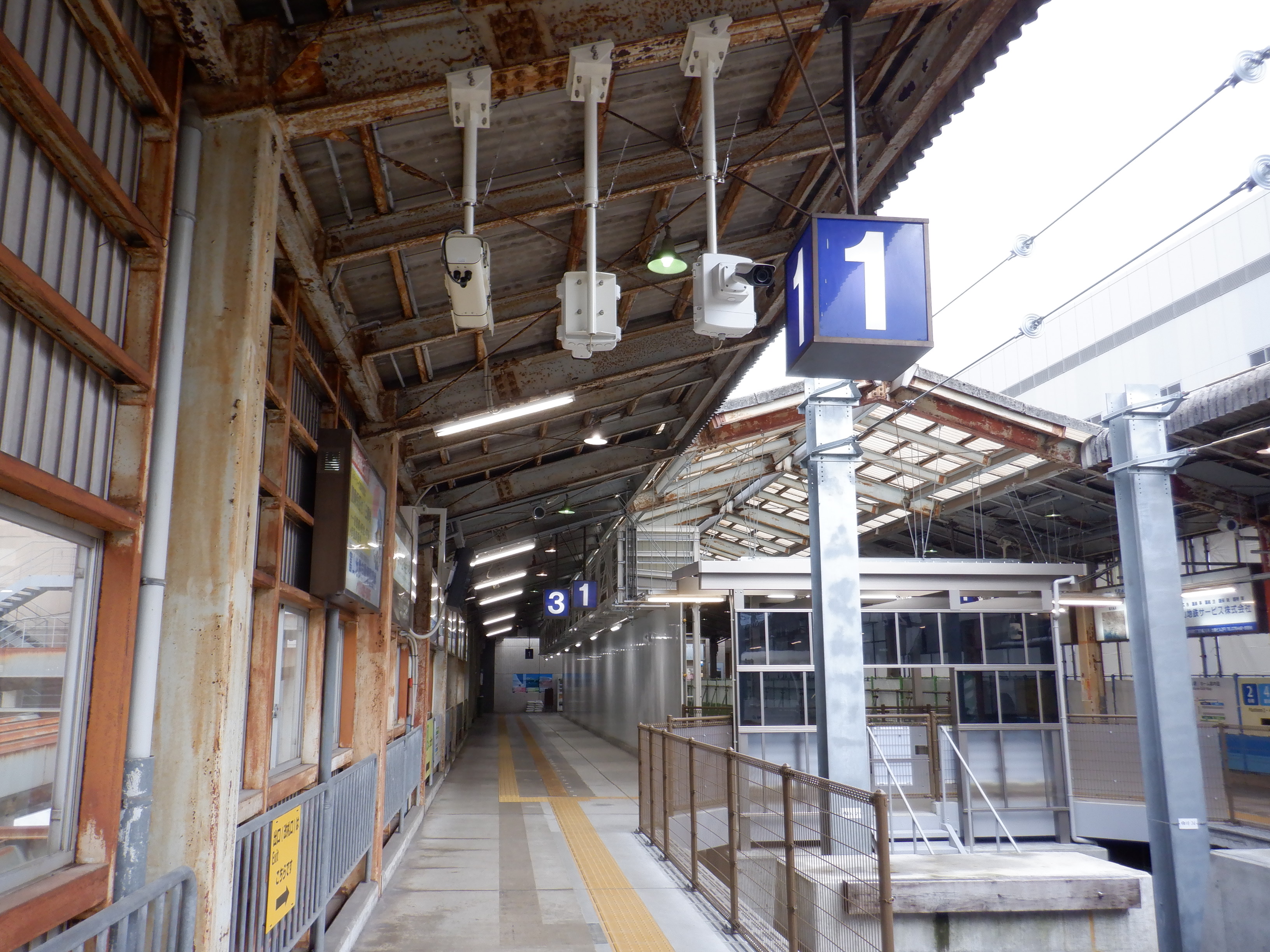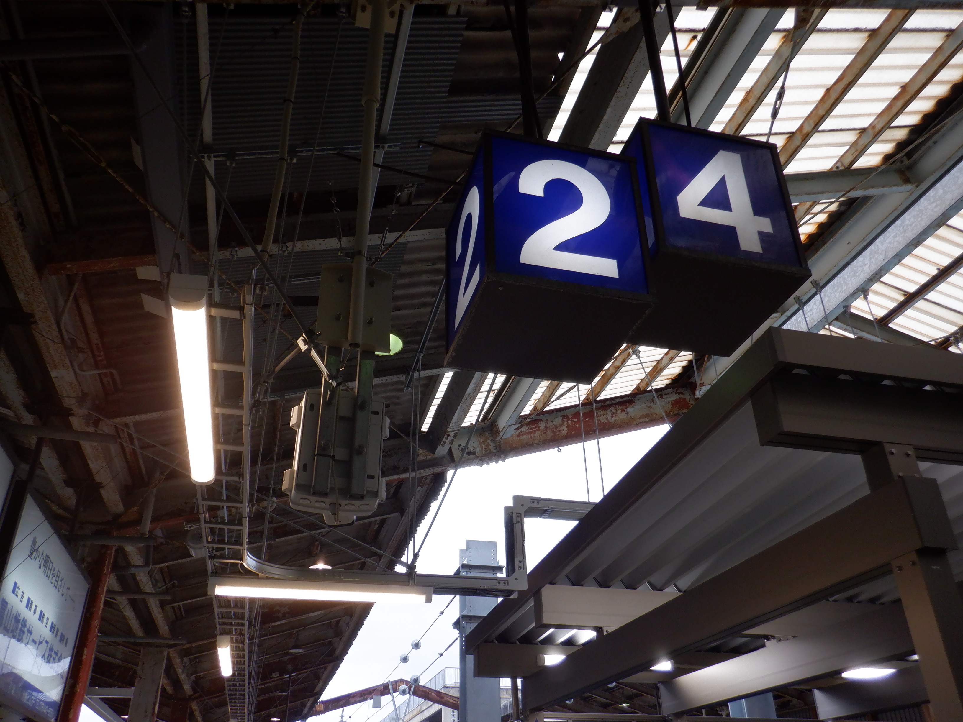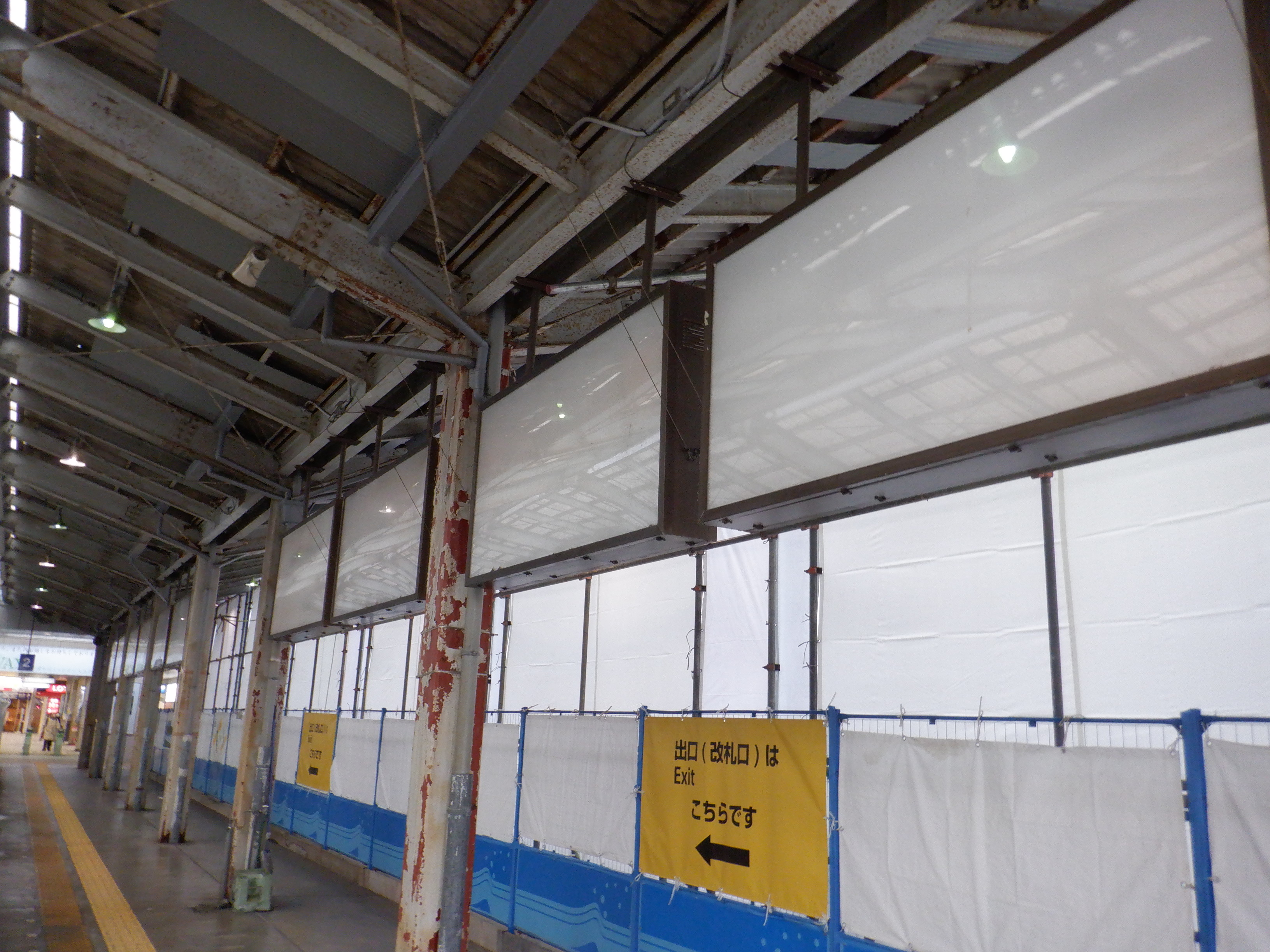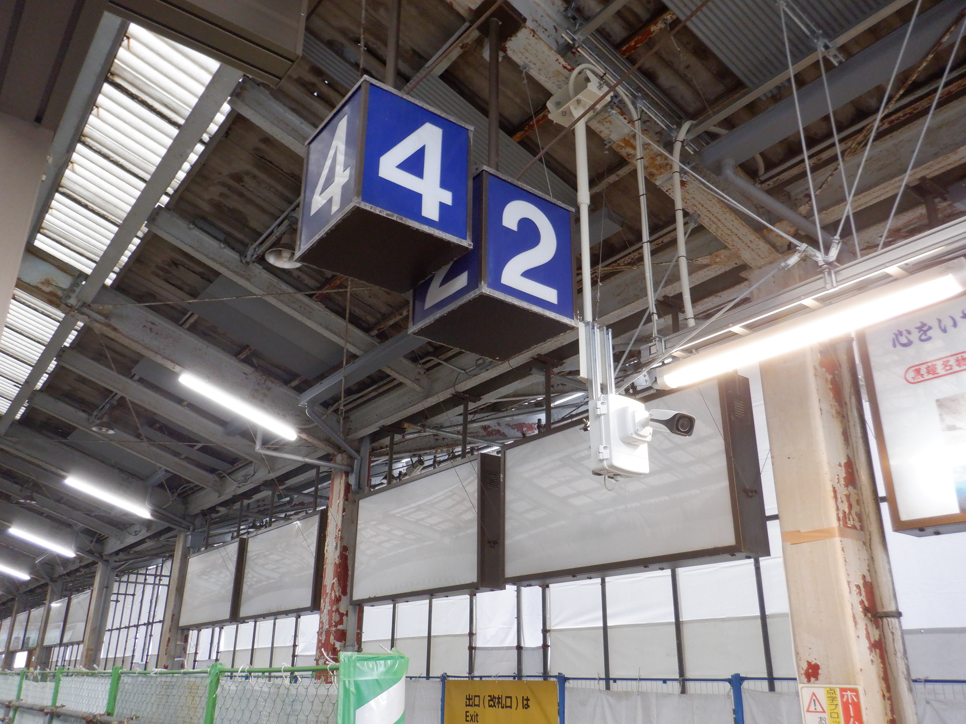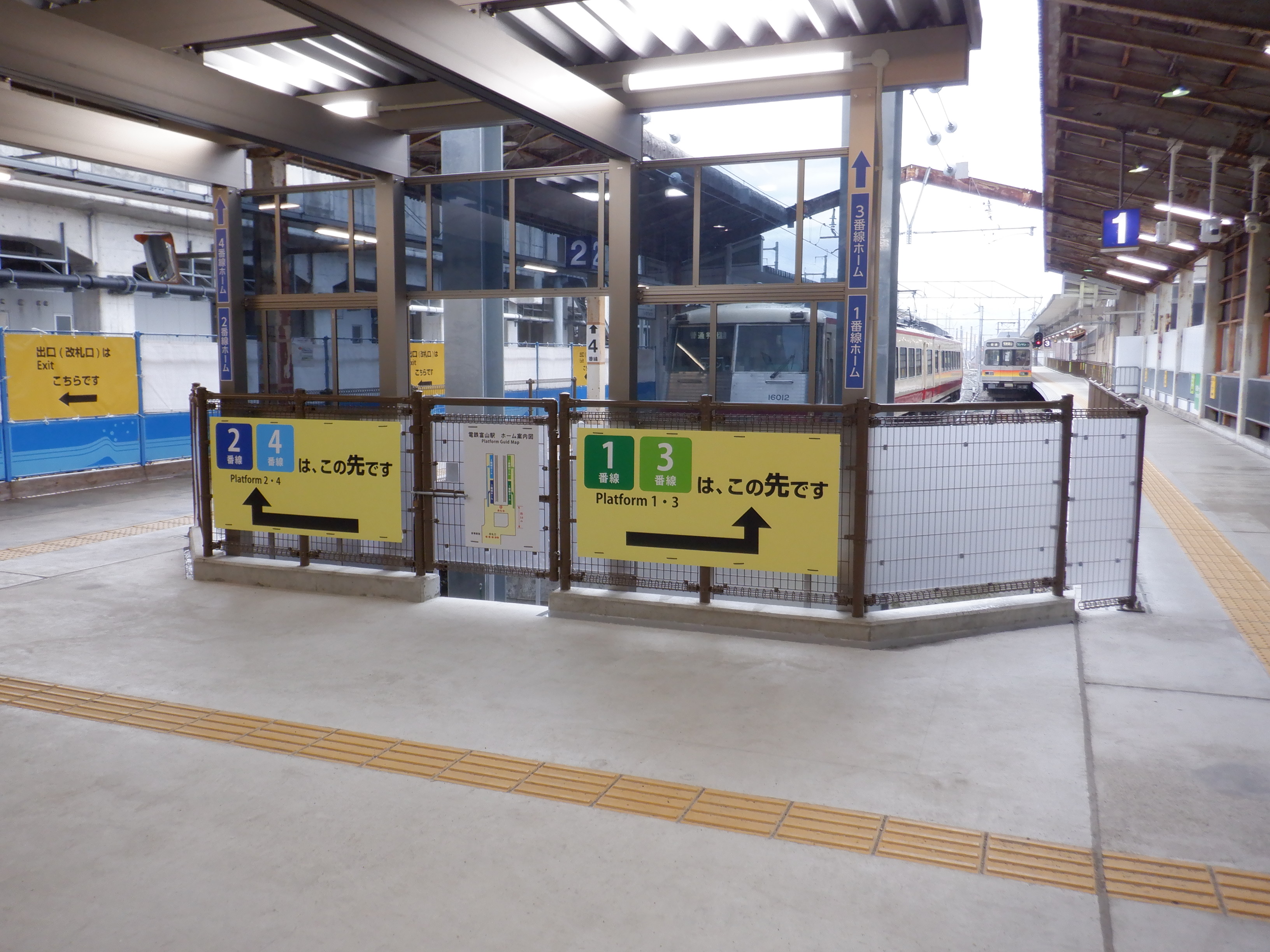 改札から入って旧ホームを抜けていく通路の所の番線標が立方体のものから板状のものに変わりました。