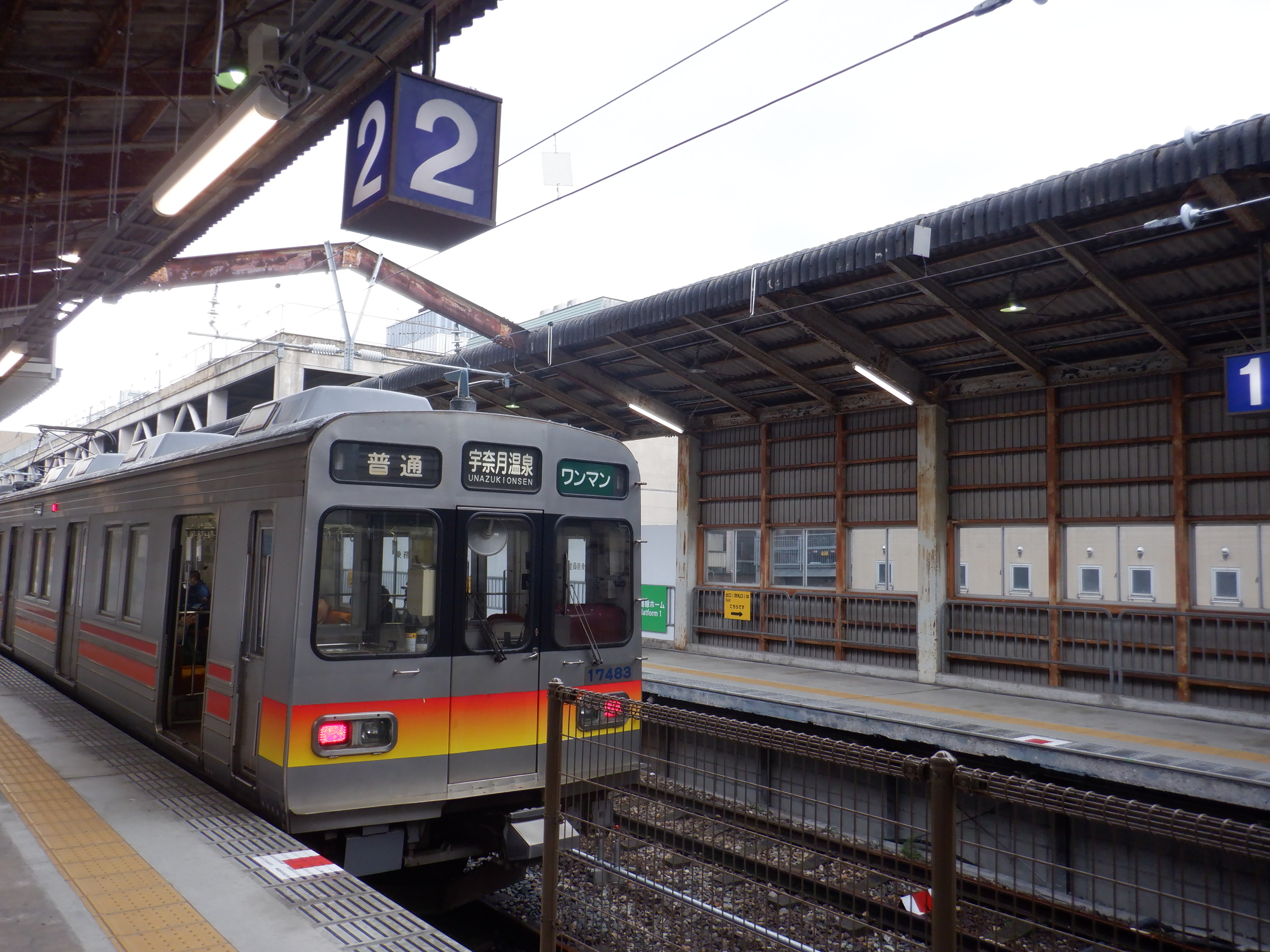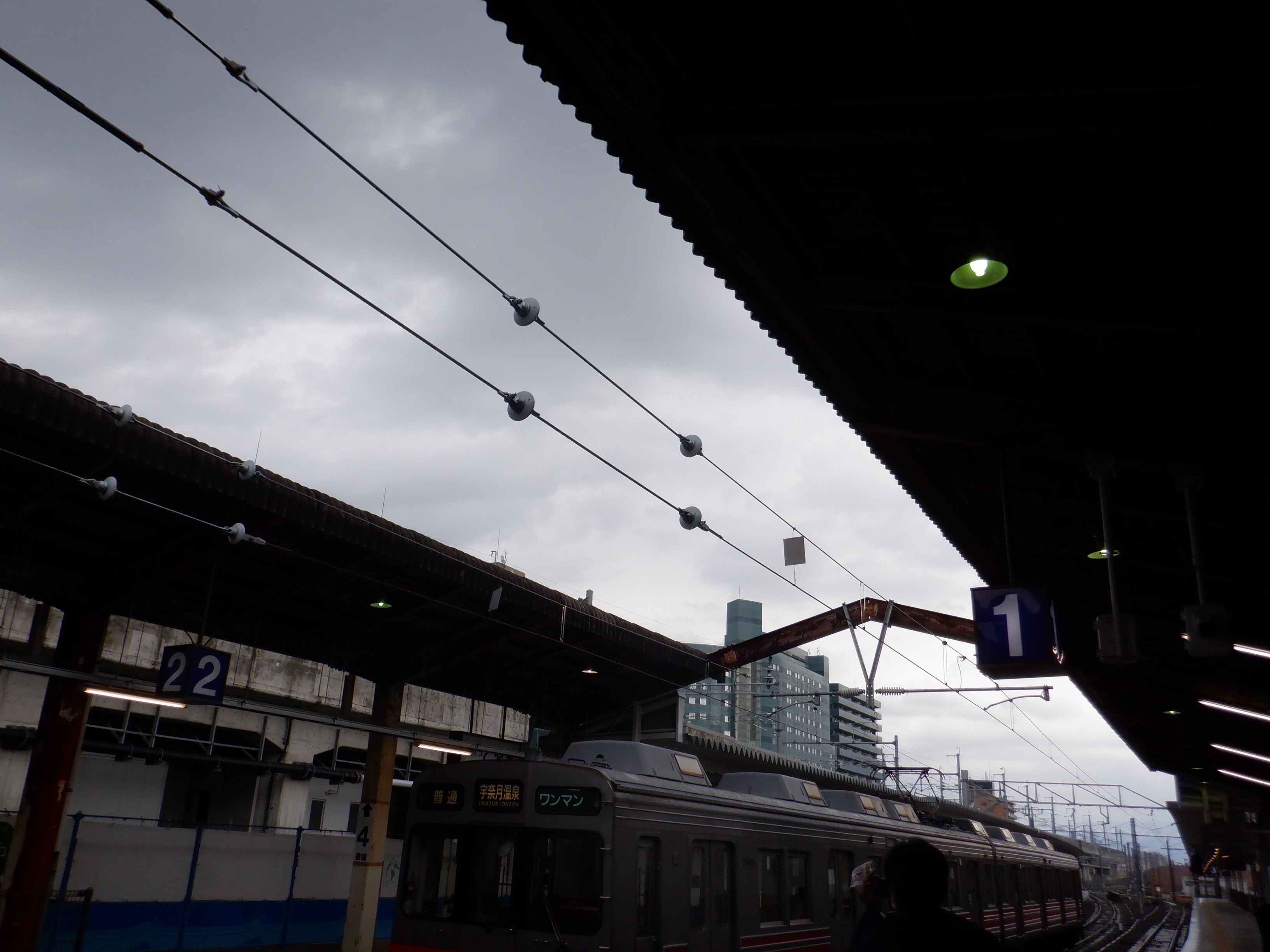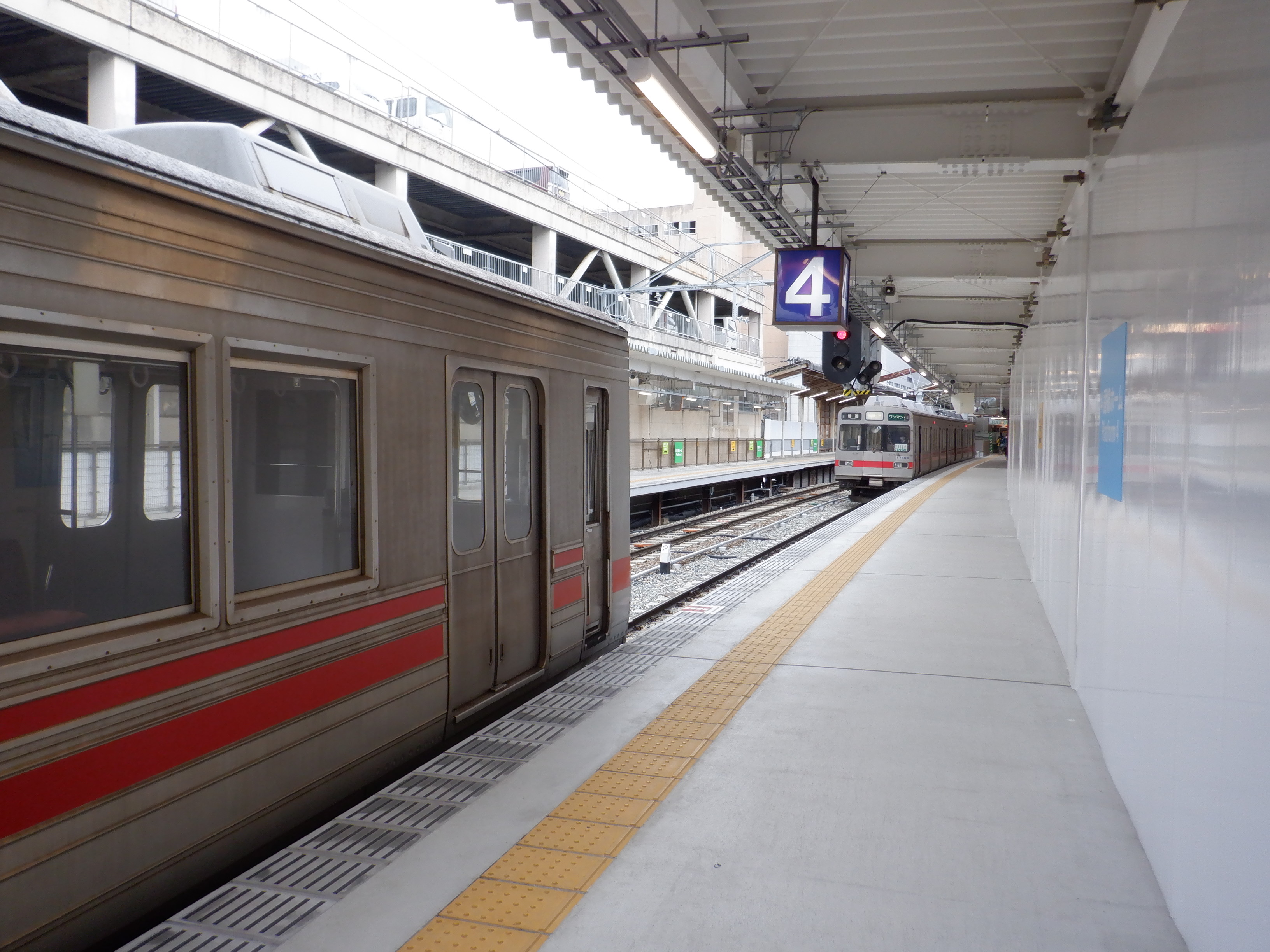 2→4番のりばへ。2・4番のりば両方に電車が停まっているところ。