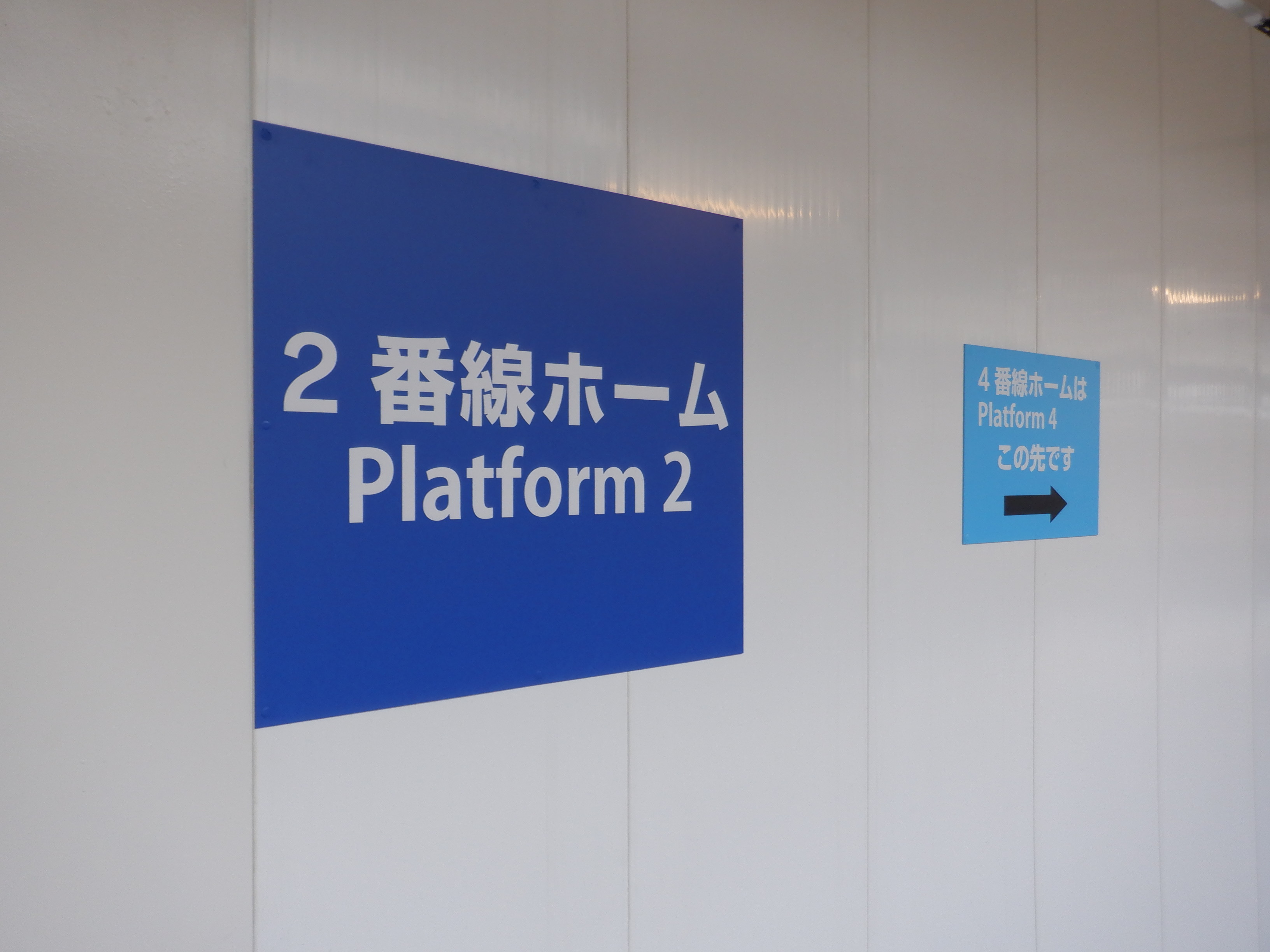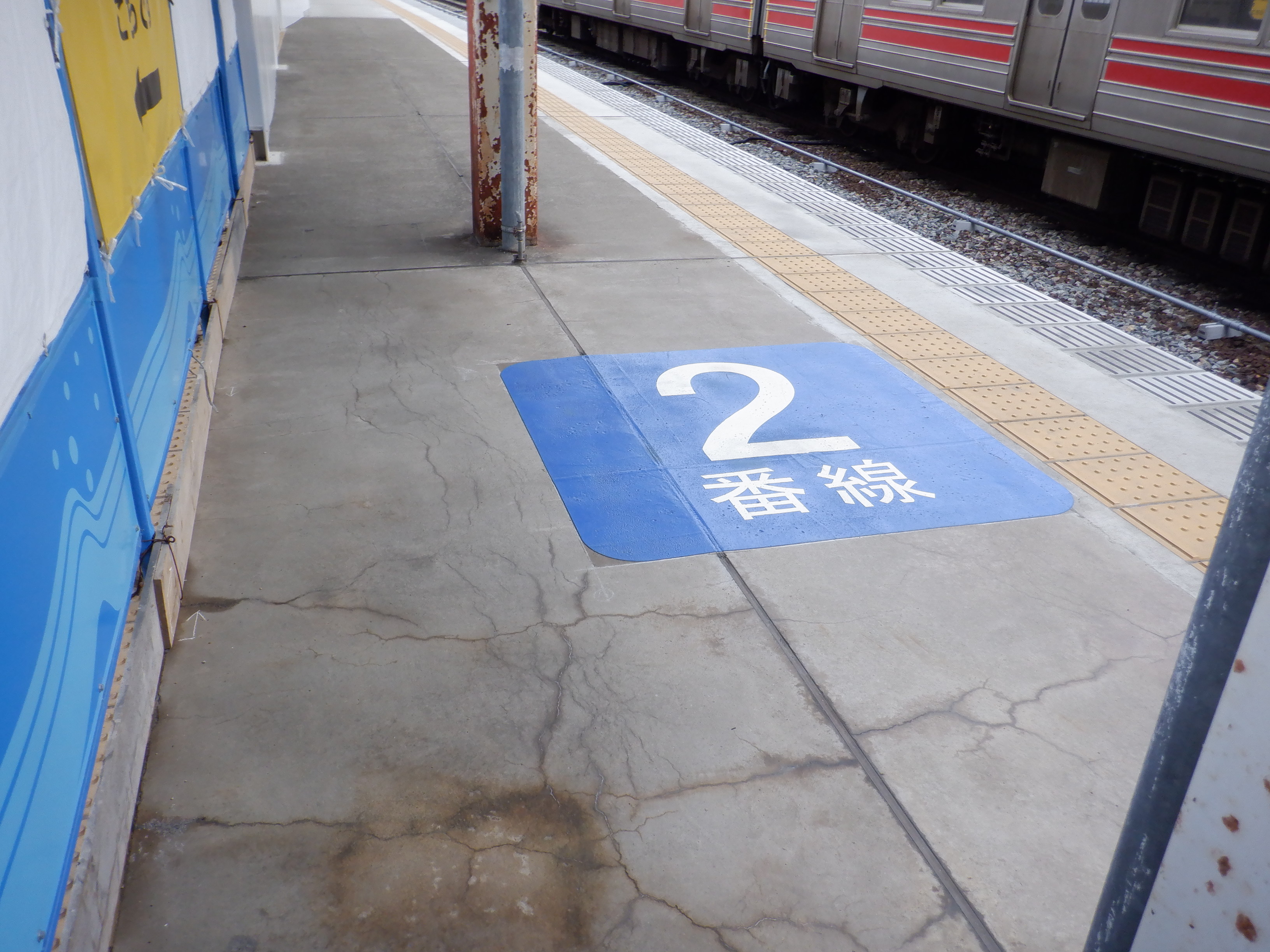 2番のりばの新しい番線標。先日は白かったのですが、青くなっています。
