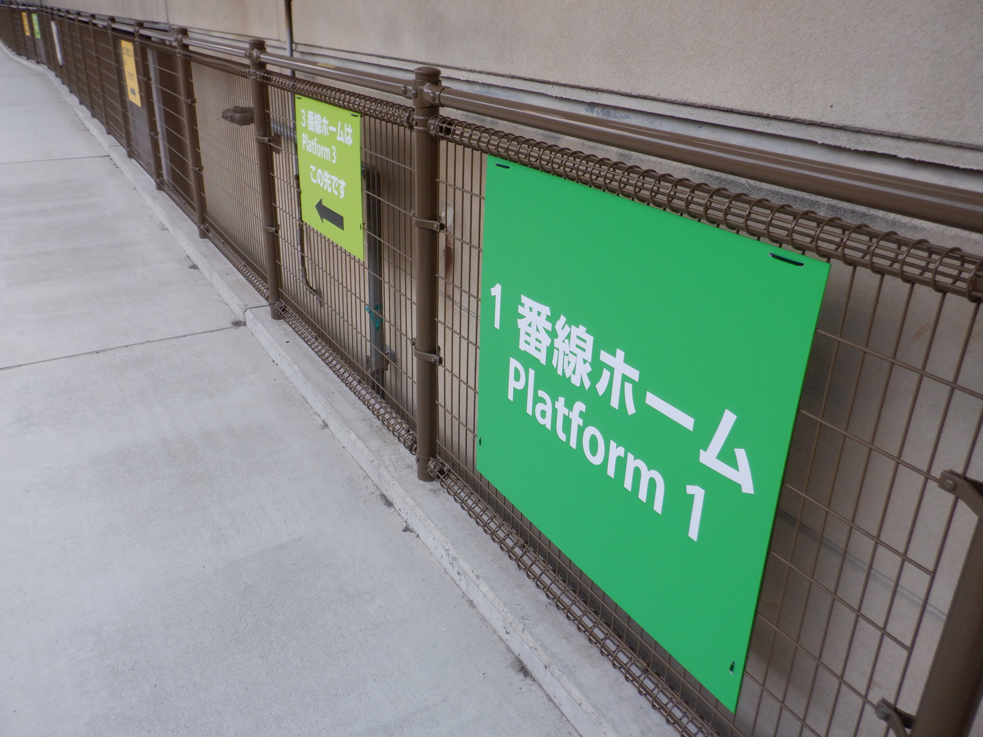 1番のりば・3番のりばの横にある案内。奇数のりばは緑色系統のカラーになっています。