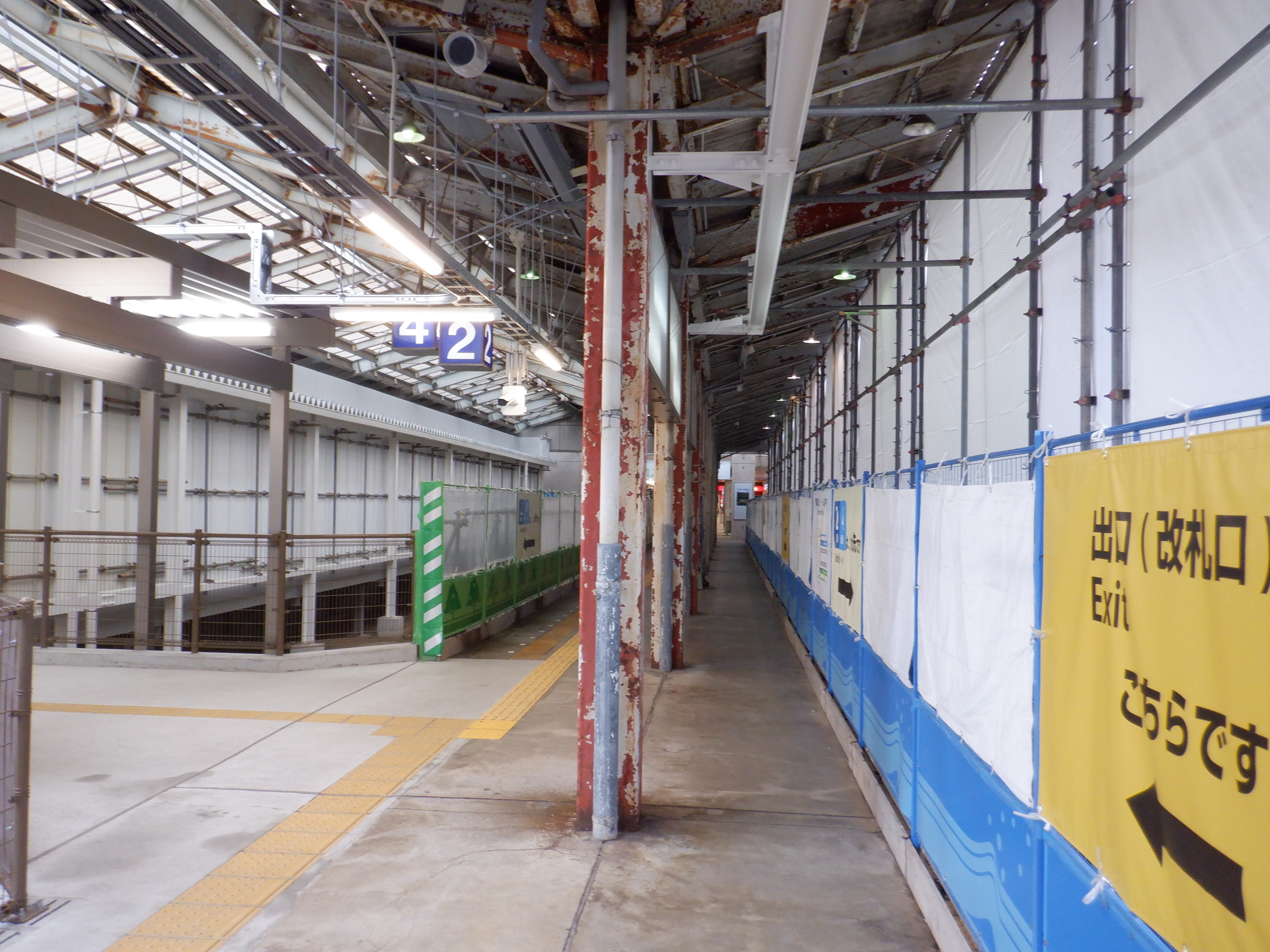 通路を渡ったところから見た旧2・3番のりば。こちらは仮設2・4番のりばへの通路として案内されています。