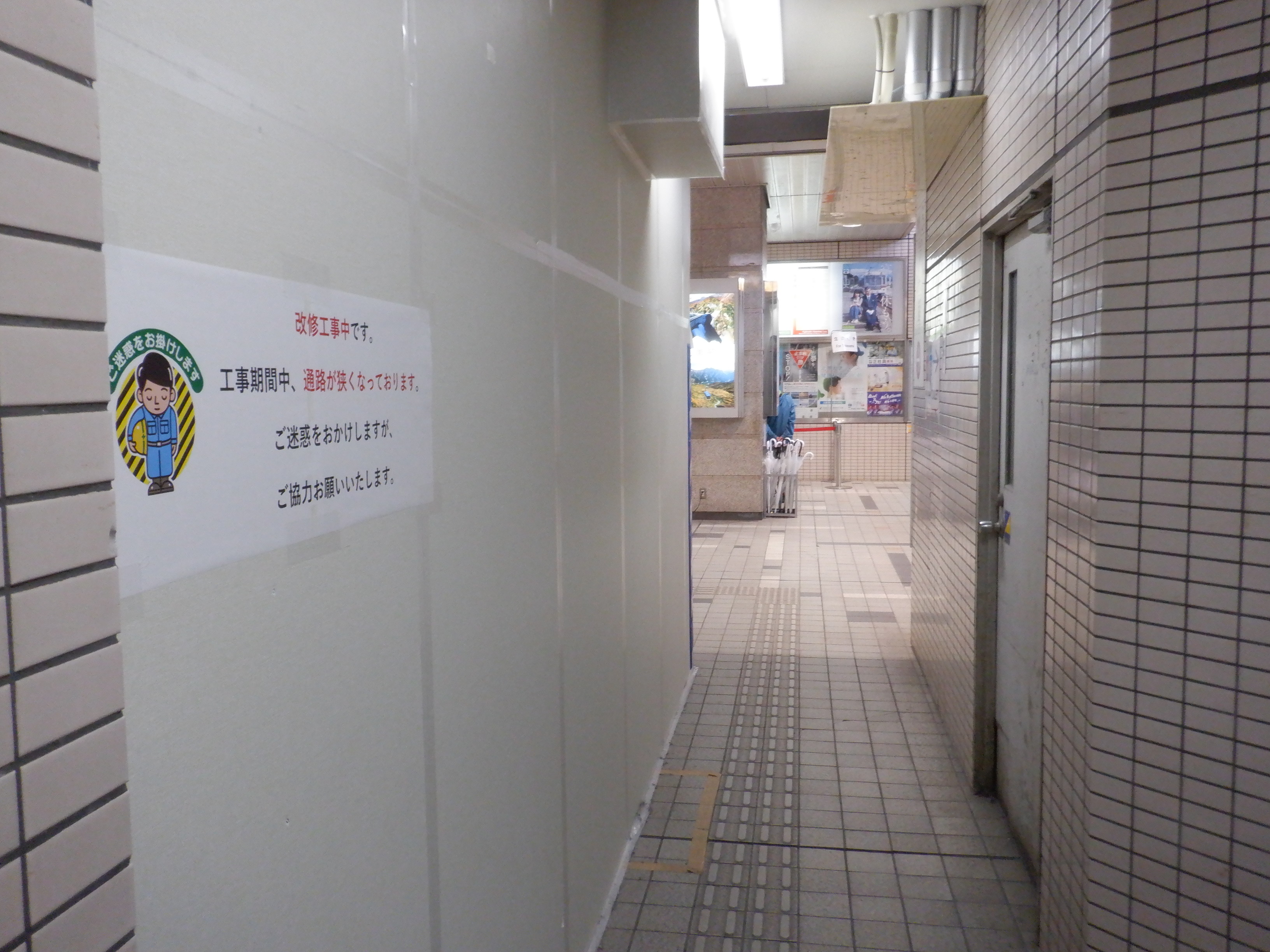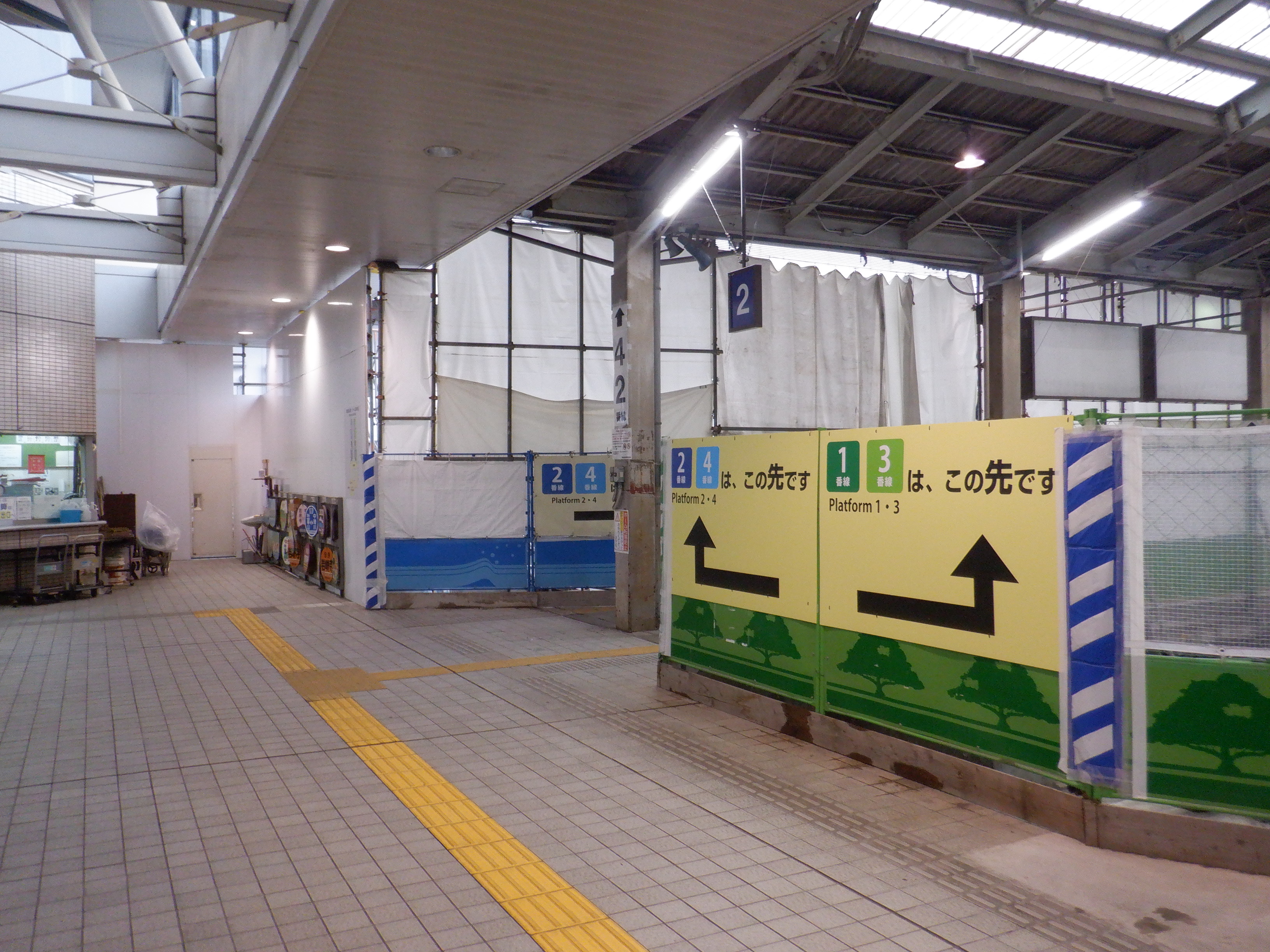 改札内に入って1番のりばへの通路から。この先、仮設改札口となるところを通っています。