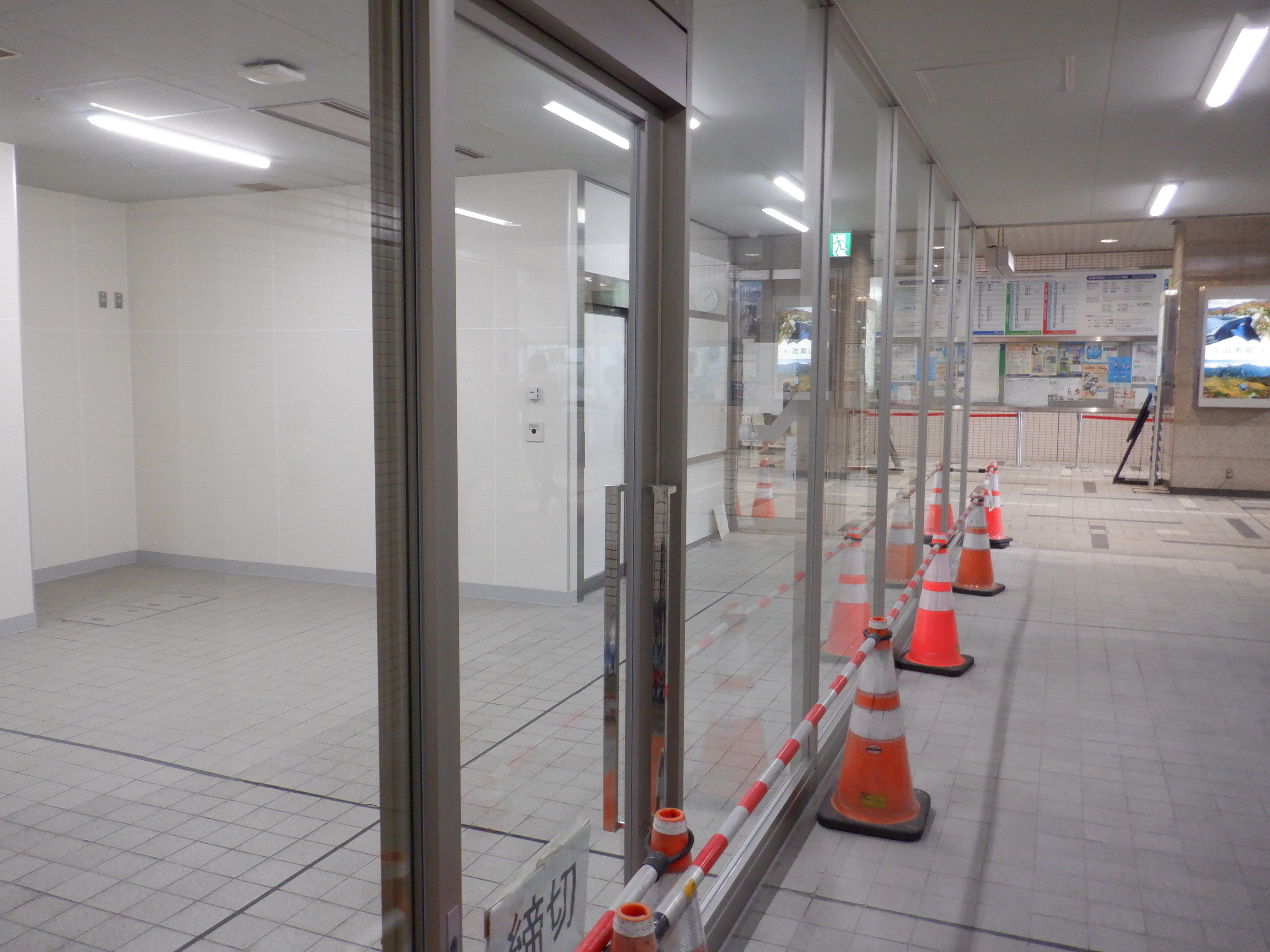その新たに改札口となるところとの行き来で通路を広くするための待合室工事だったようです。