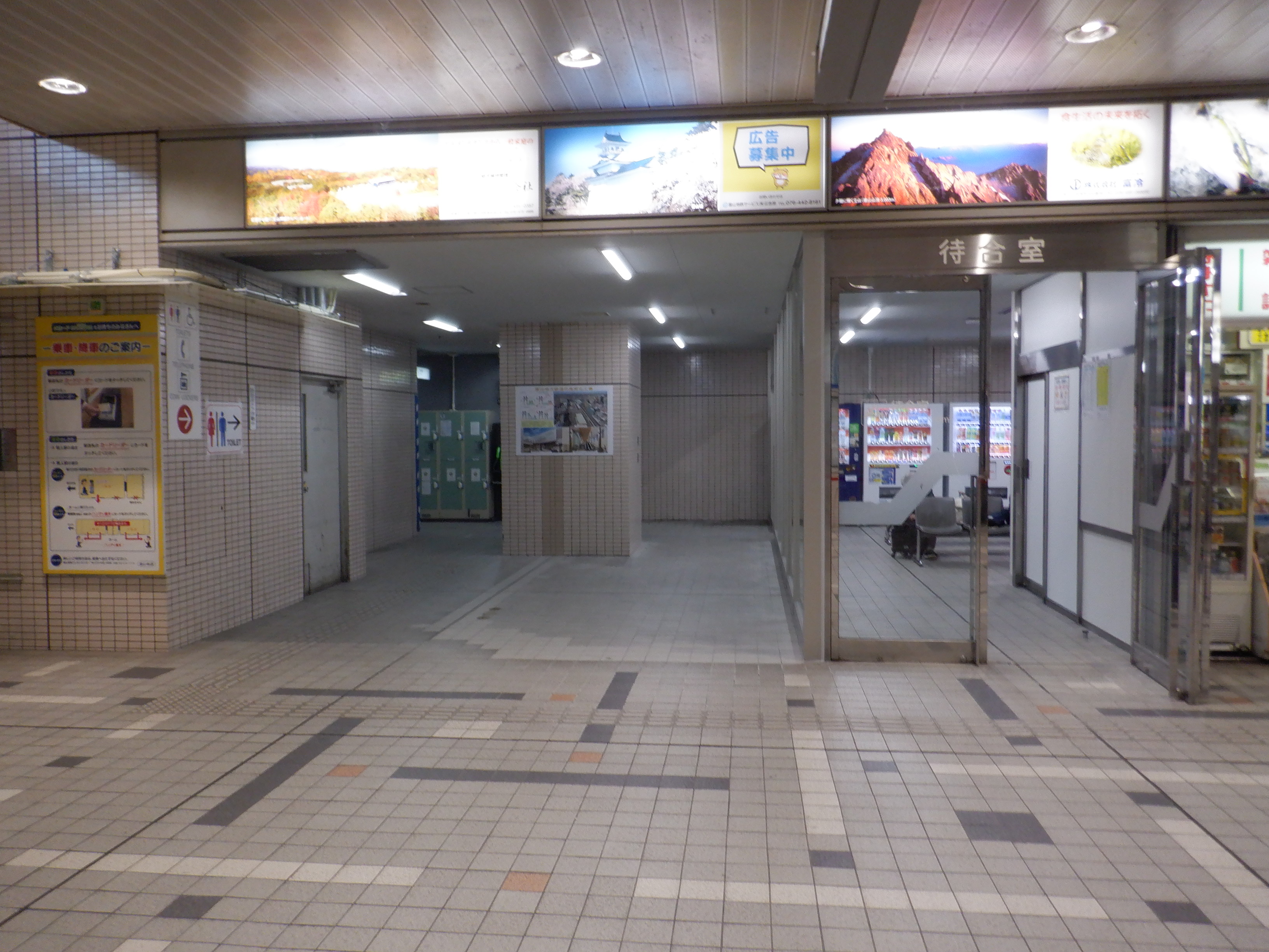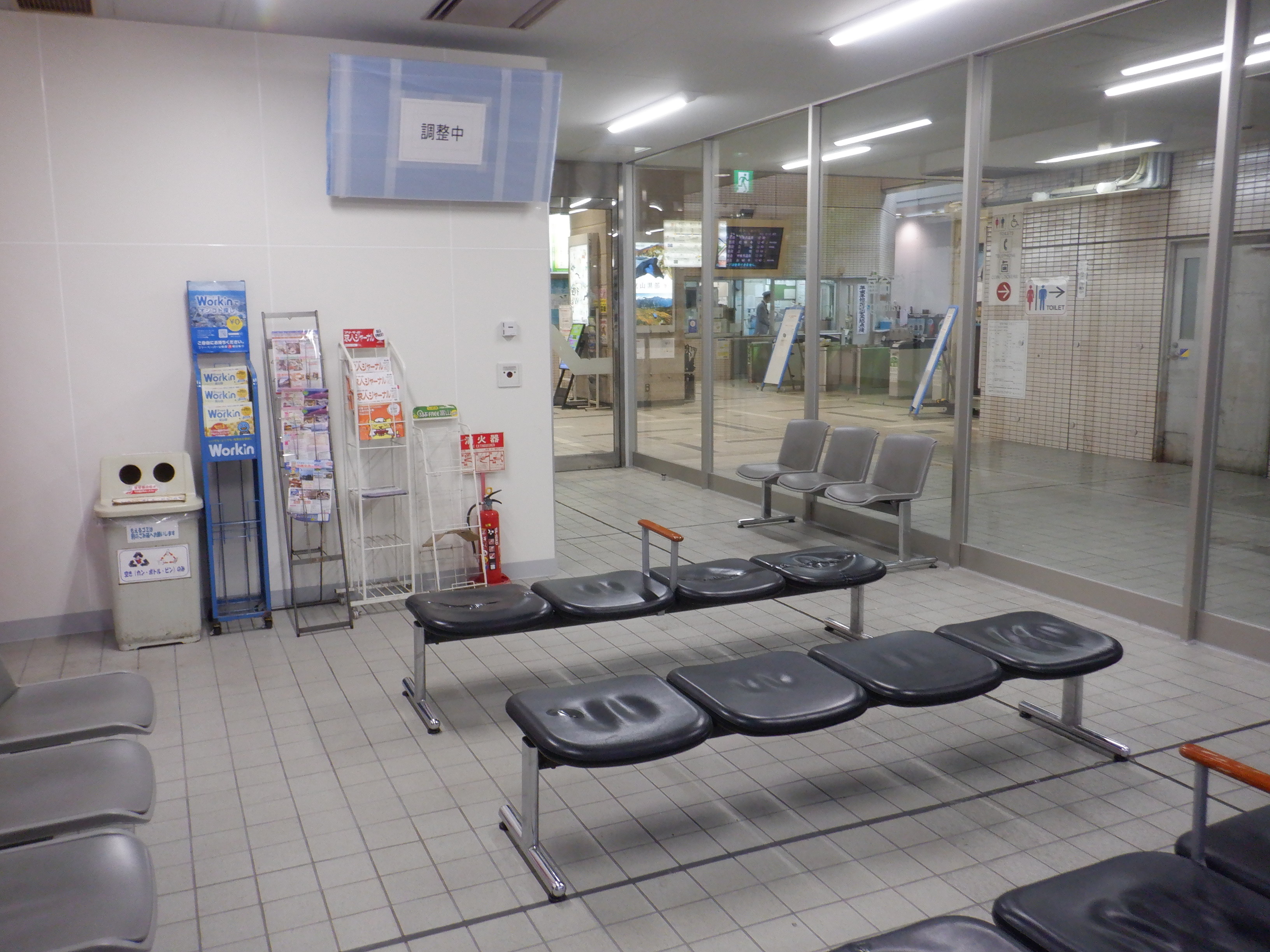 工事の流れで一旦待合室が使用中止になり、駅に入ってすぐの店舗跡が待合室となるようです。その直前(2日前)の様子です。