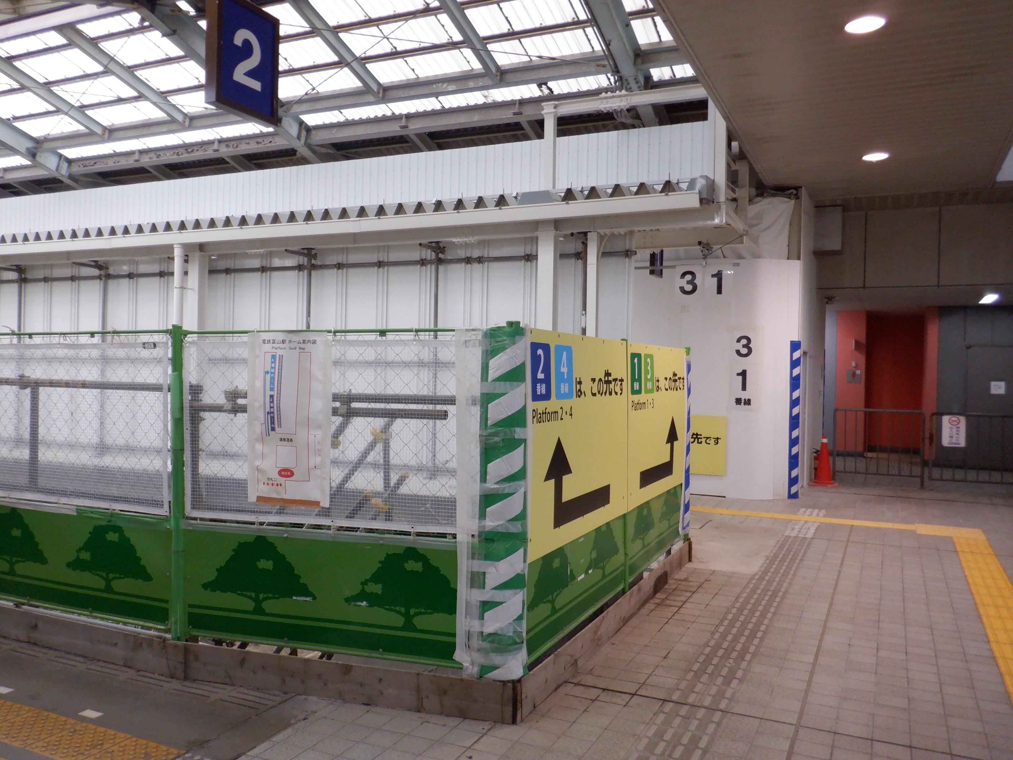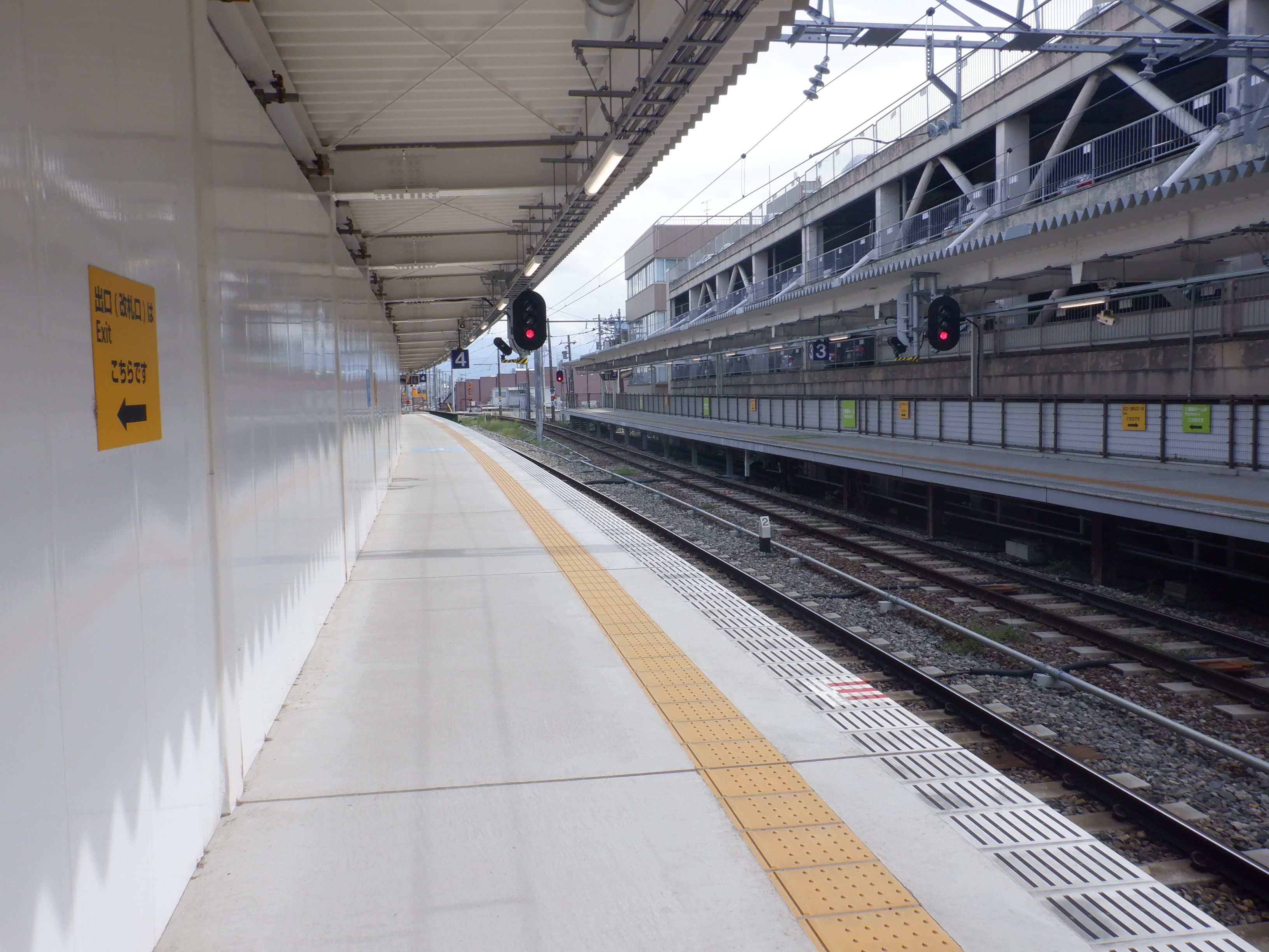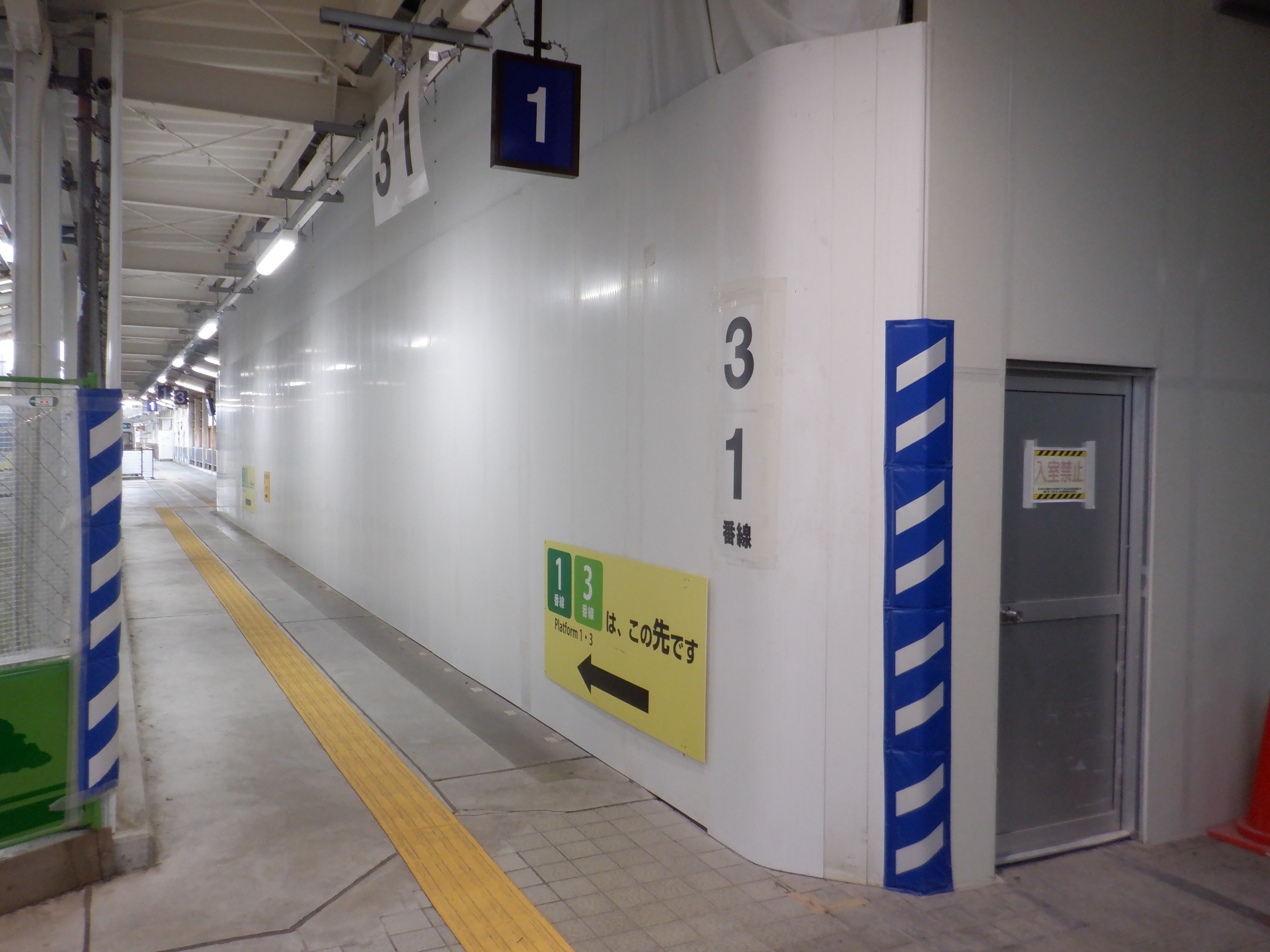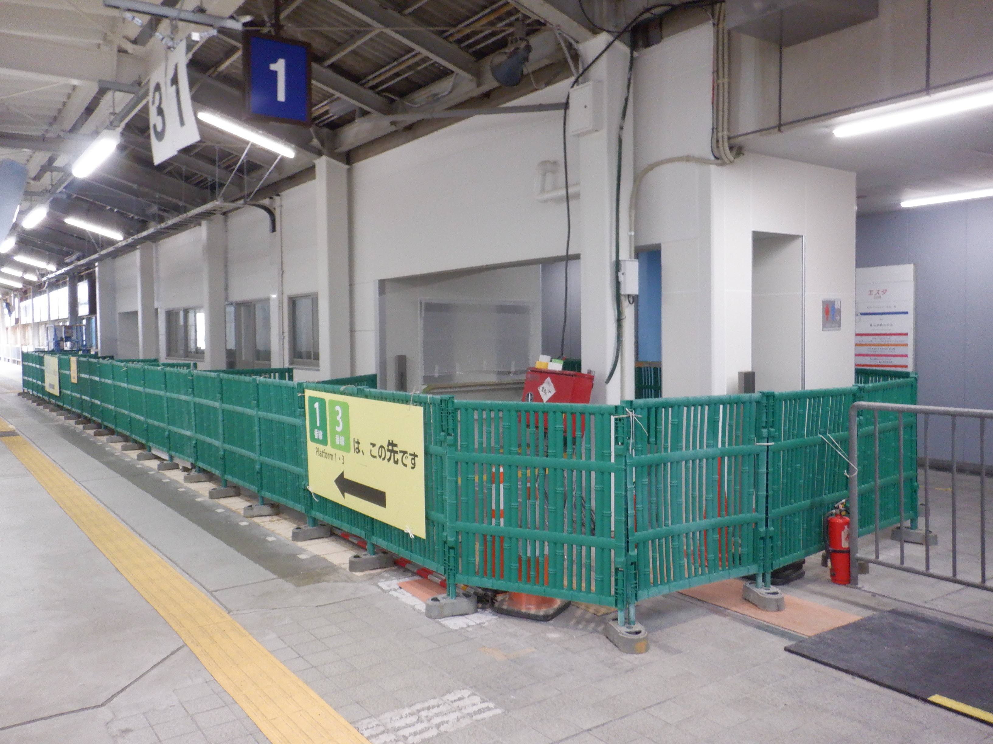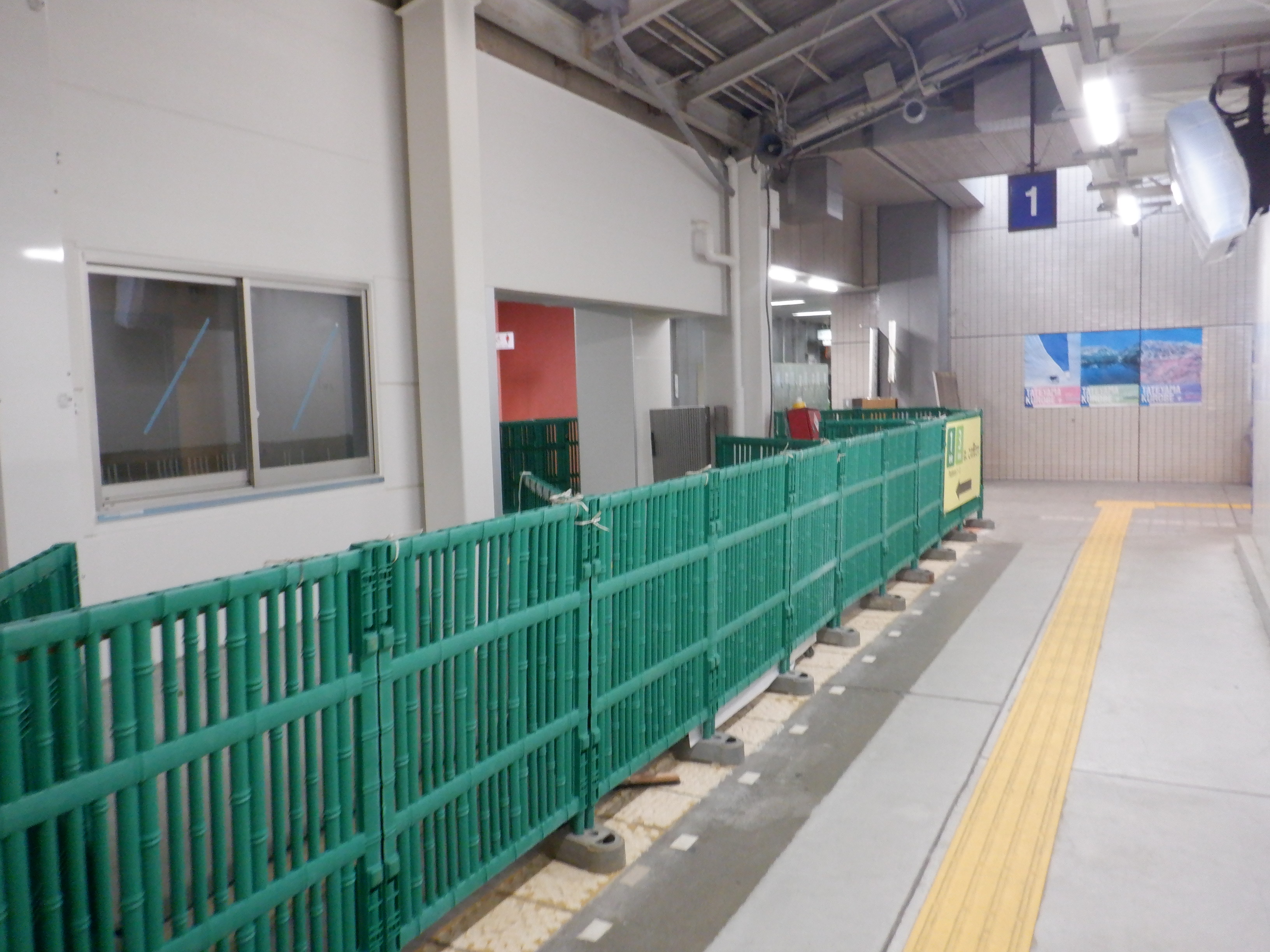 1番のりばの端に囲いがされました。ここがこの後仮設改札口になるところです。