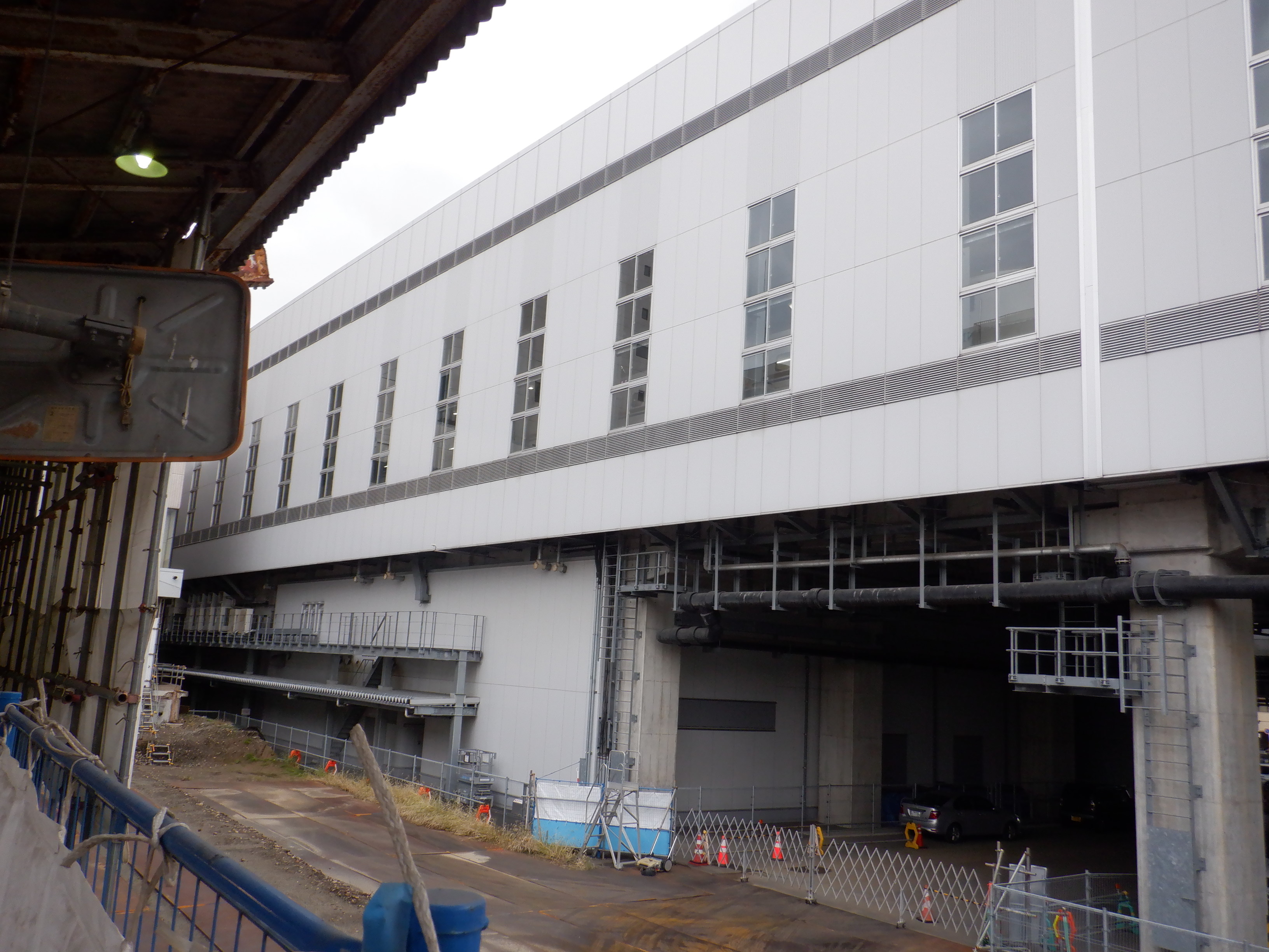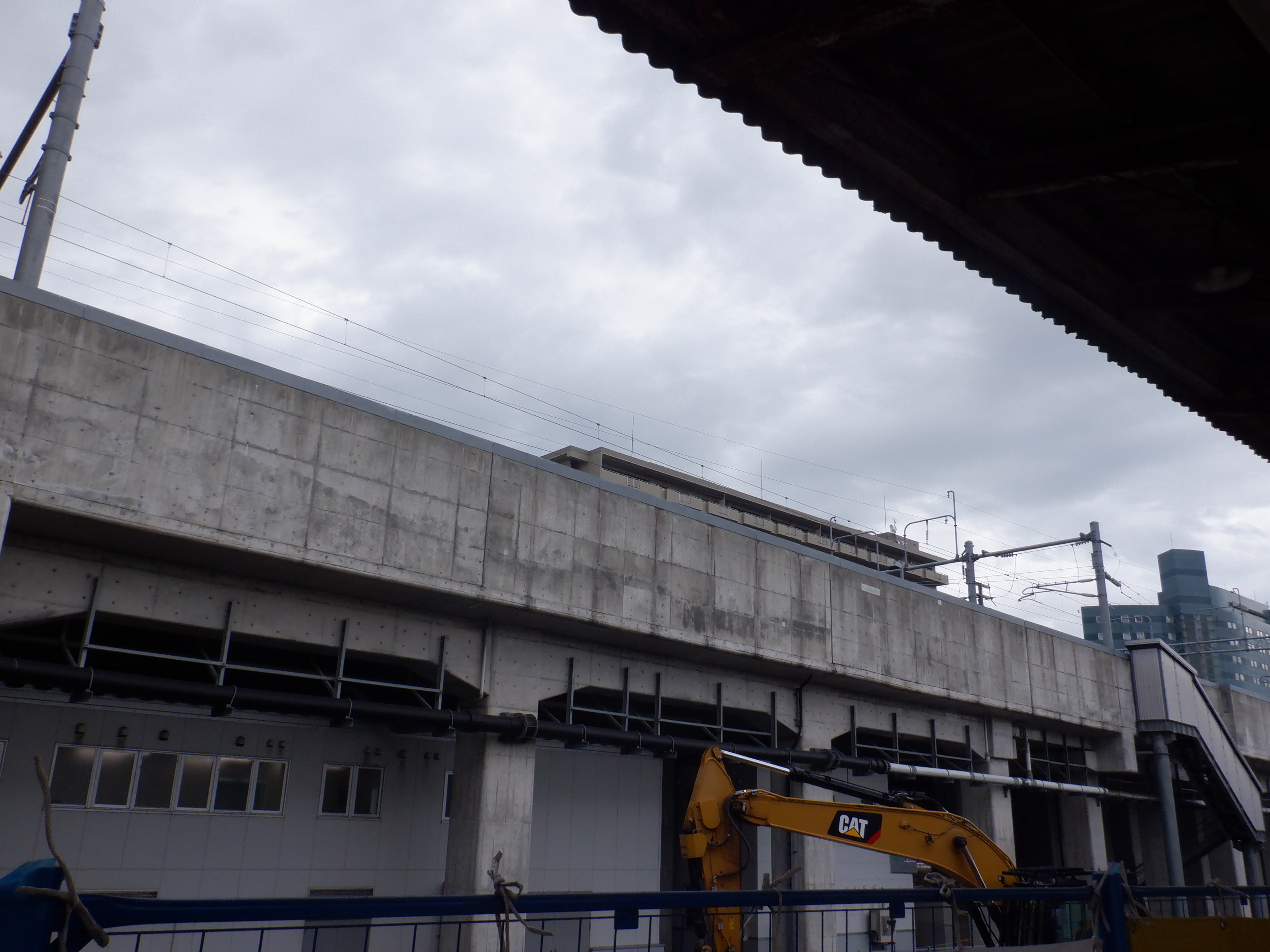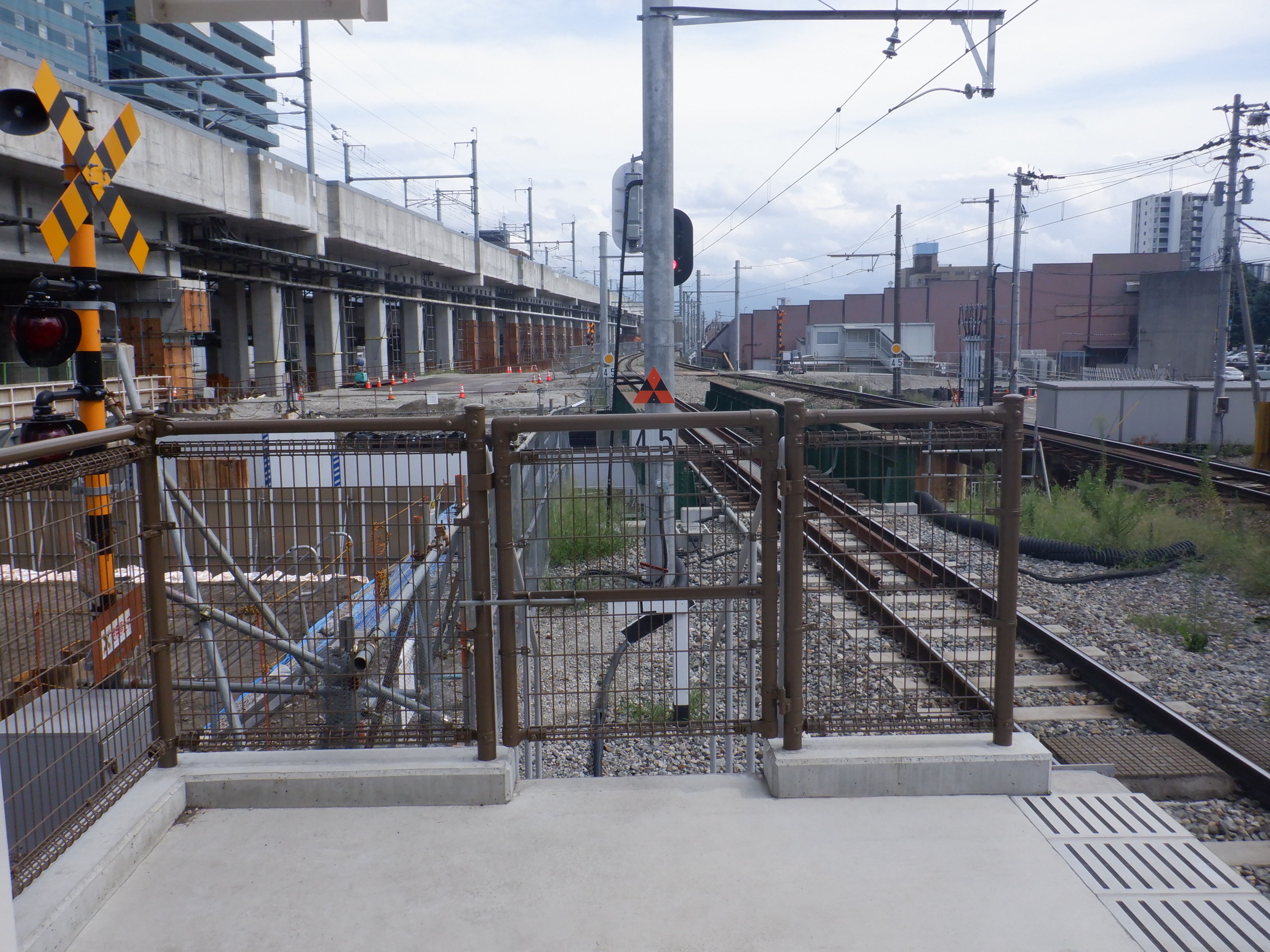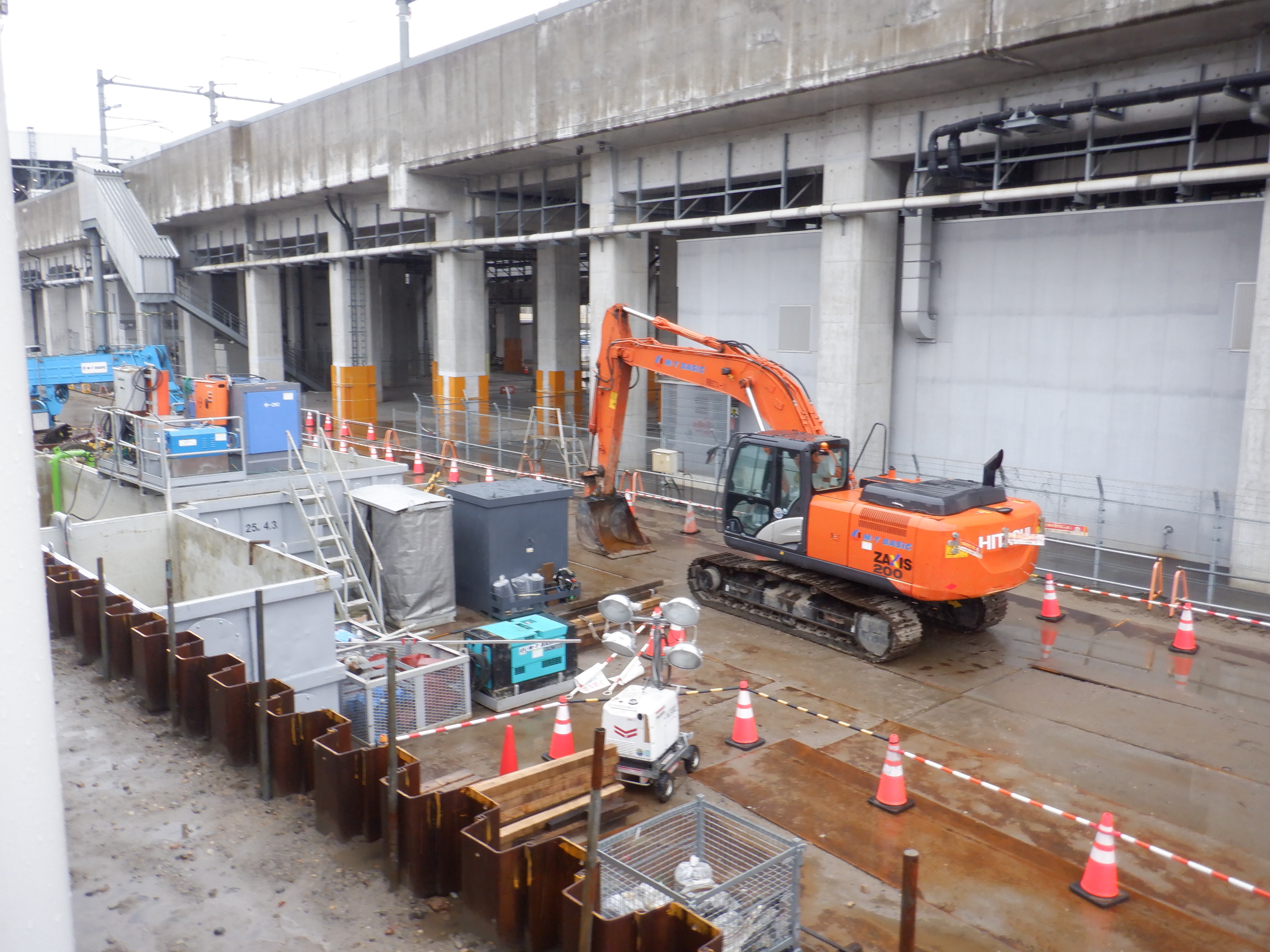 今回は改札内へ入らずに、外からこの先仮設改札口となるところを見ています。