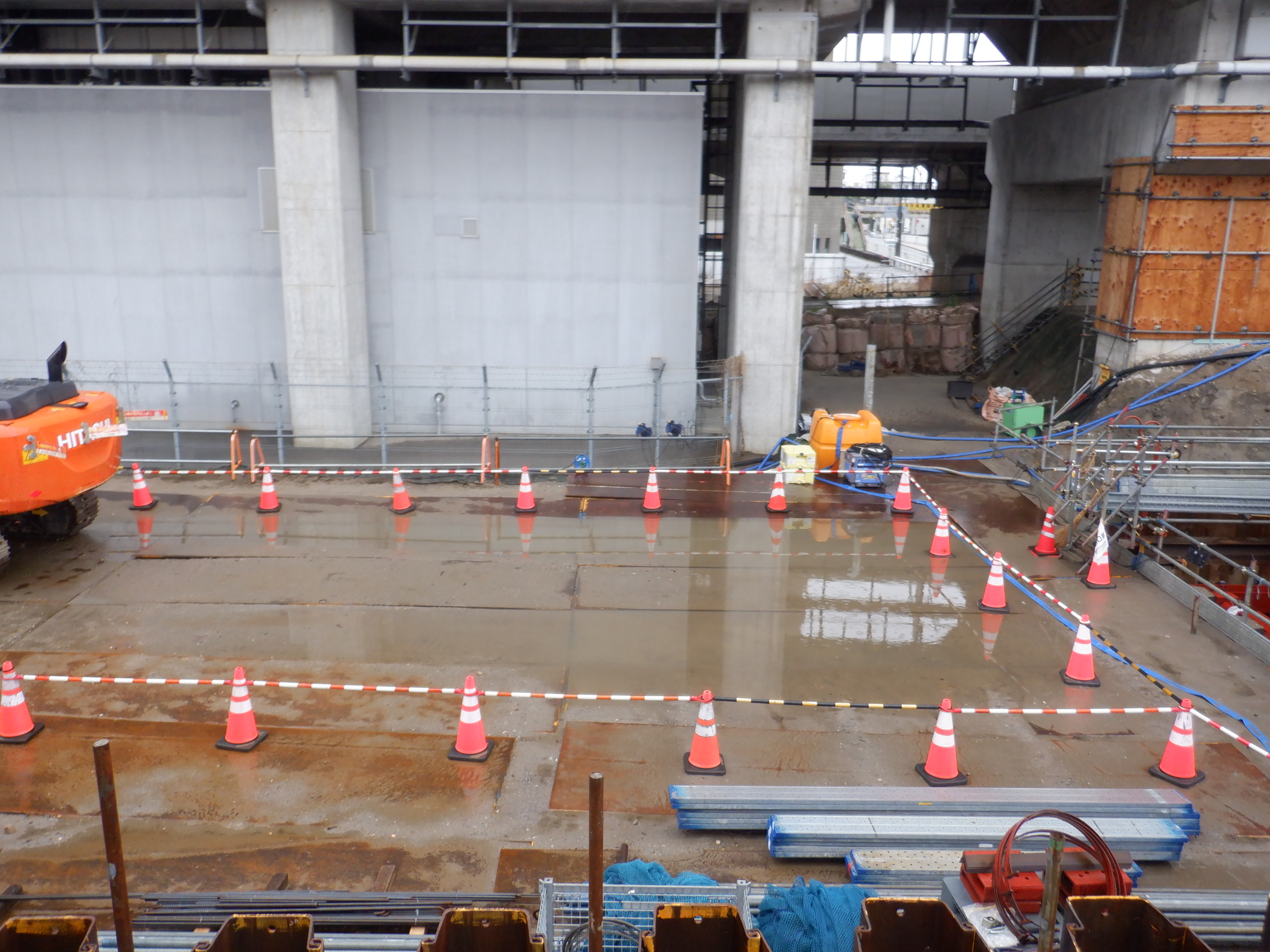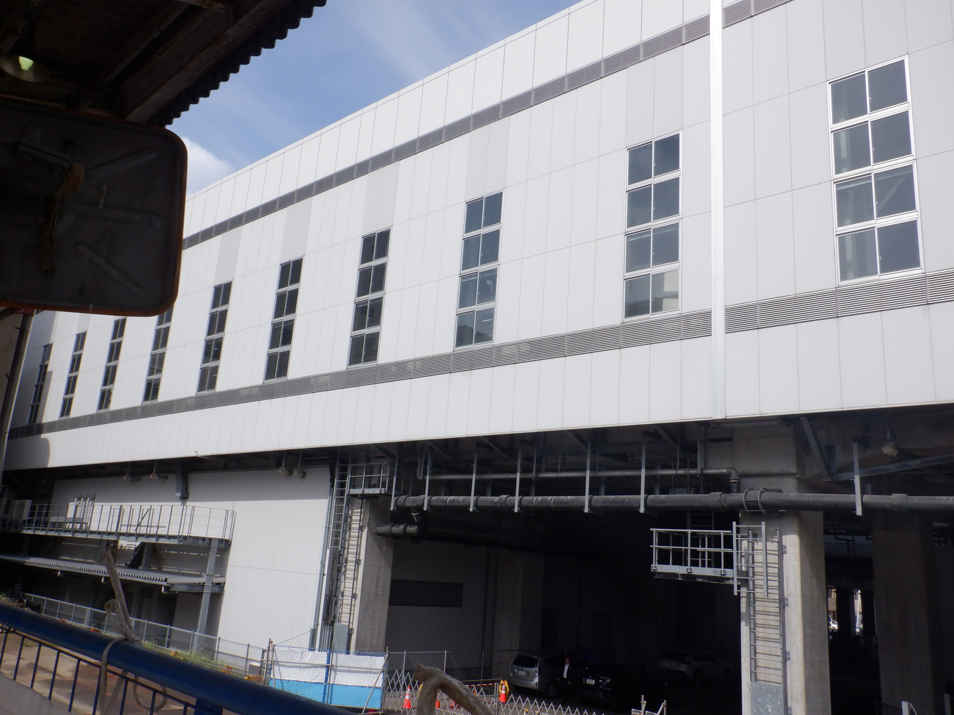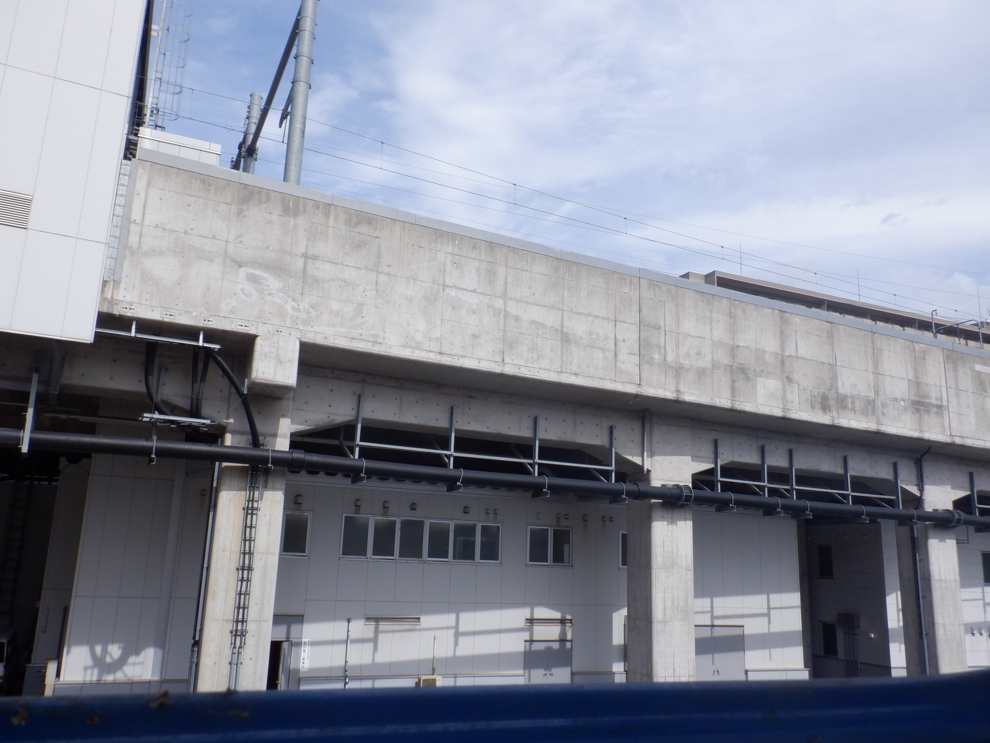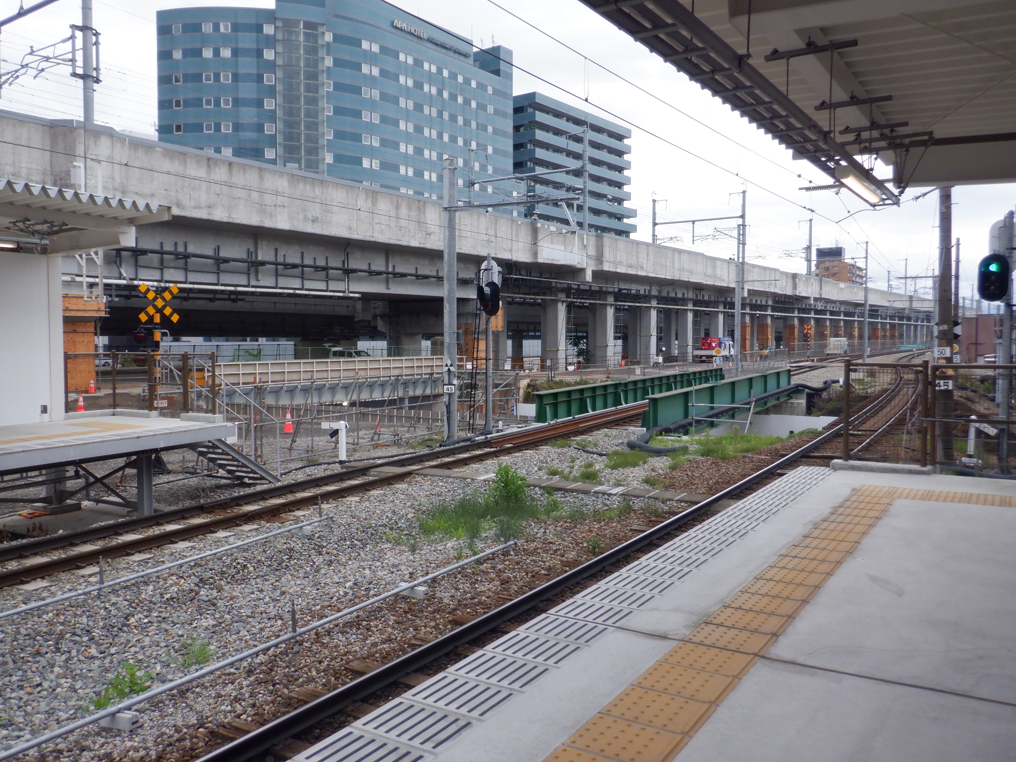 今回は改札内へ入らずに、外からこの先仮設改札口となるところを見ています。