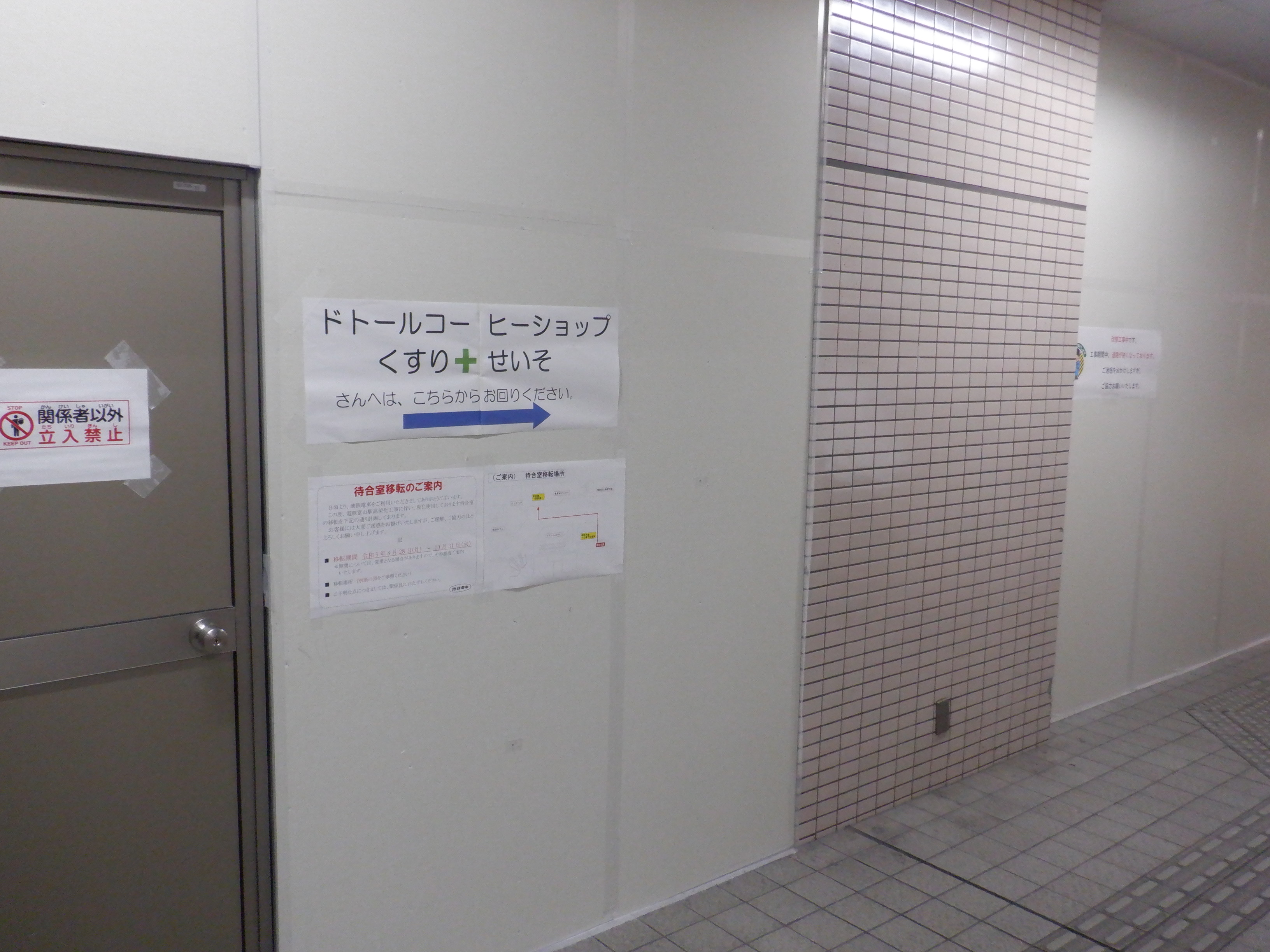 本来の待合室の囲いがなくなりました。1枚目の画像の柱が従来の待合室に含まれていたので、通路が広くなる形で待合室の形が変わりました。