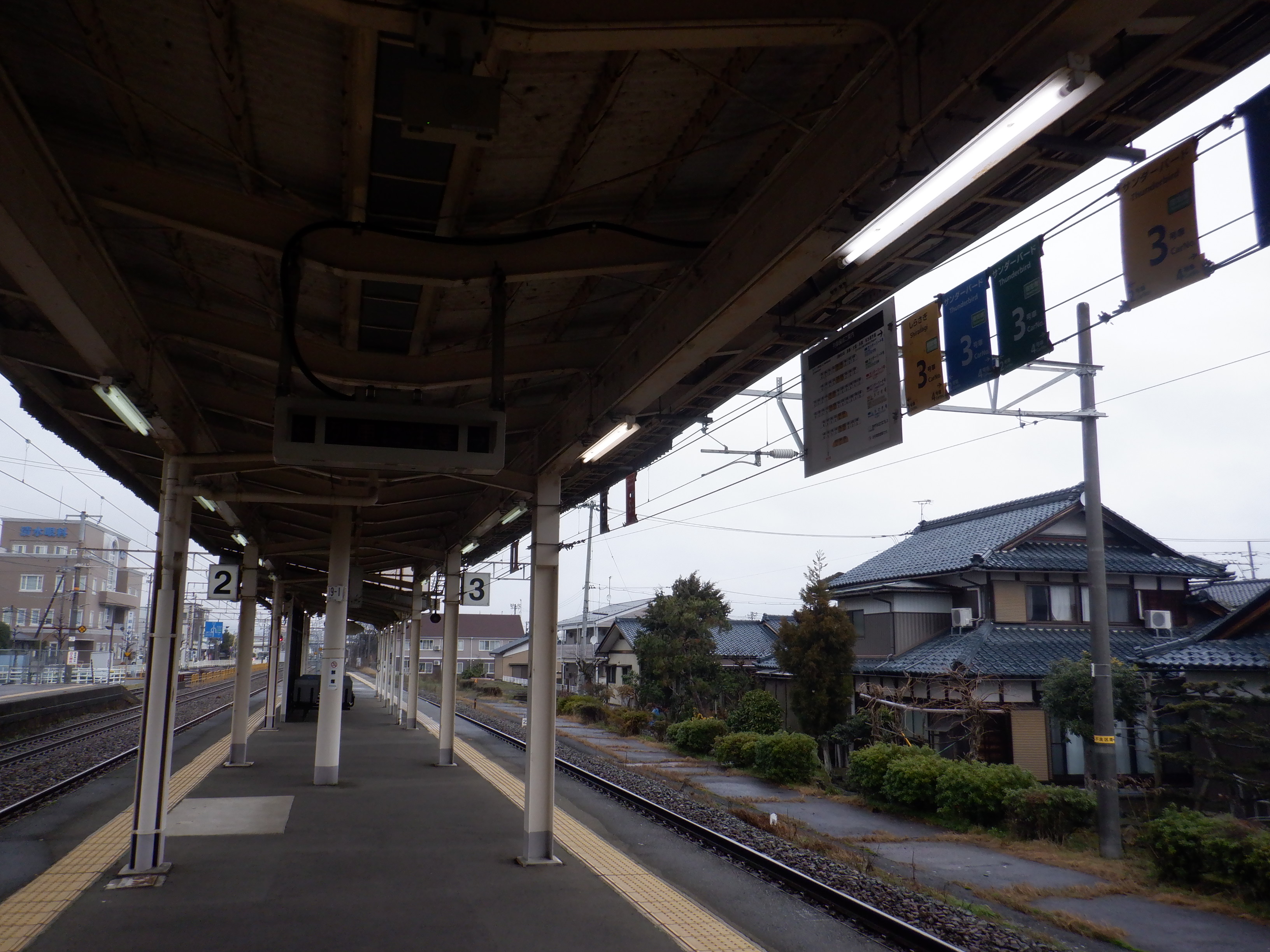 2・3番のりばの番線標・駅名標など。