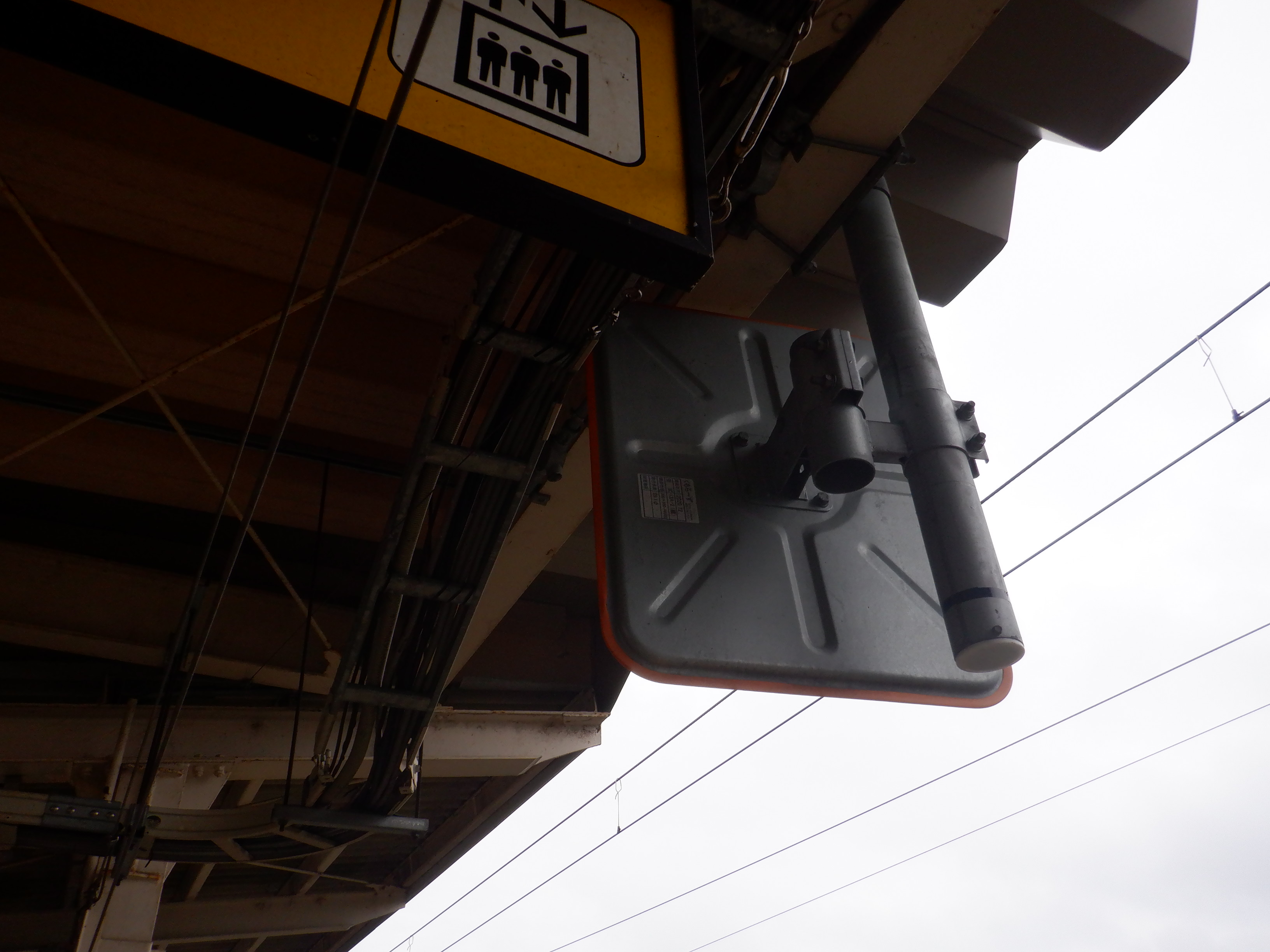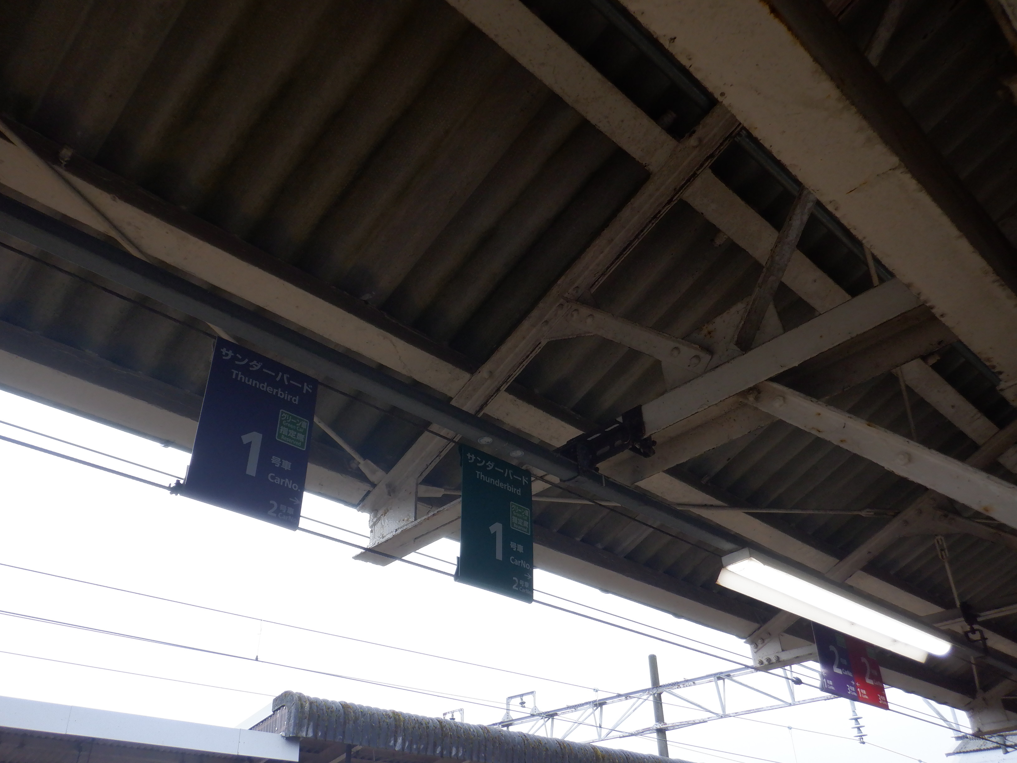 跨線橋内の特急列車の乗車位置案内。この時点ではランプは残っています。